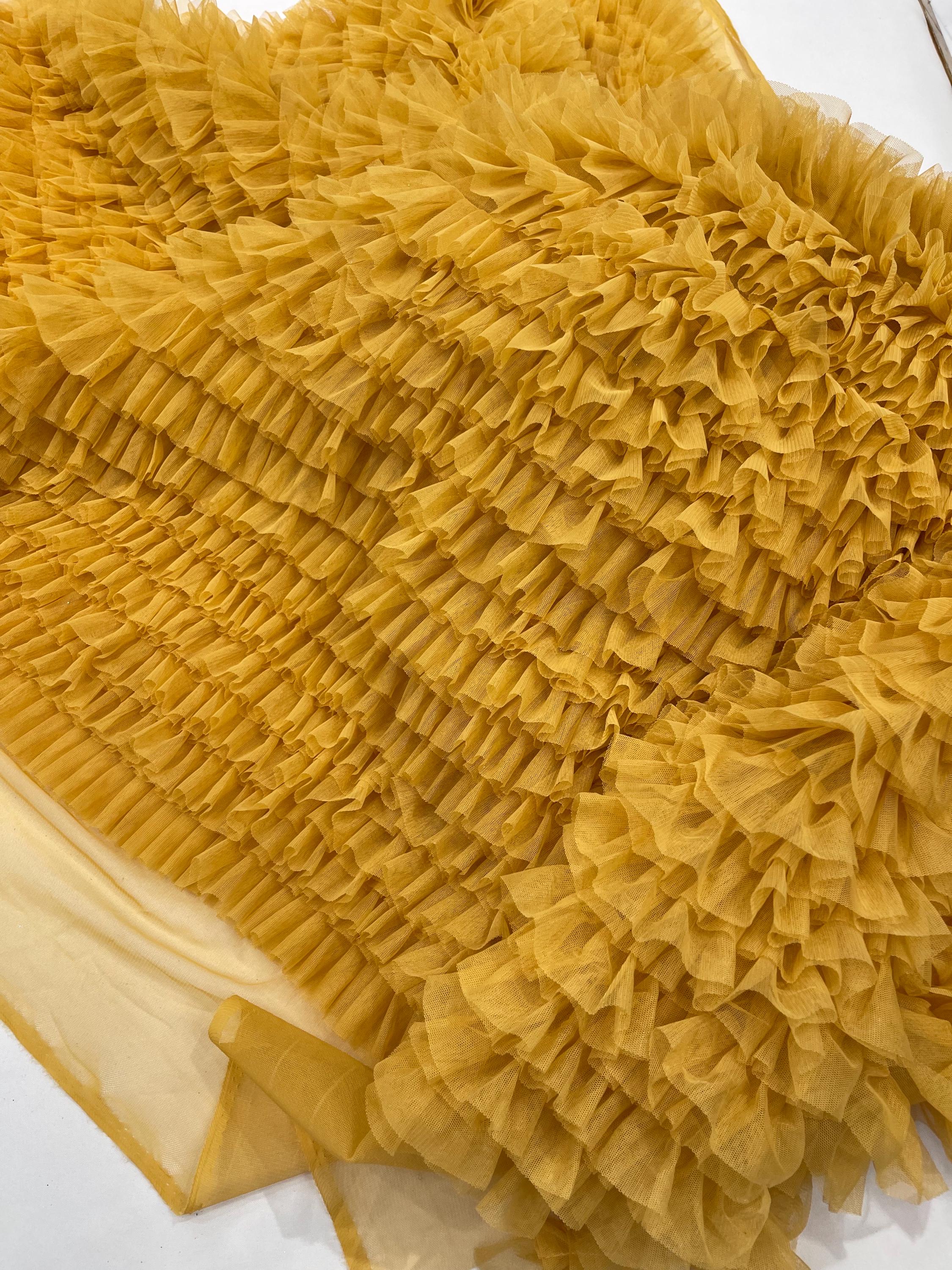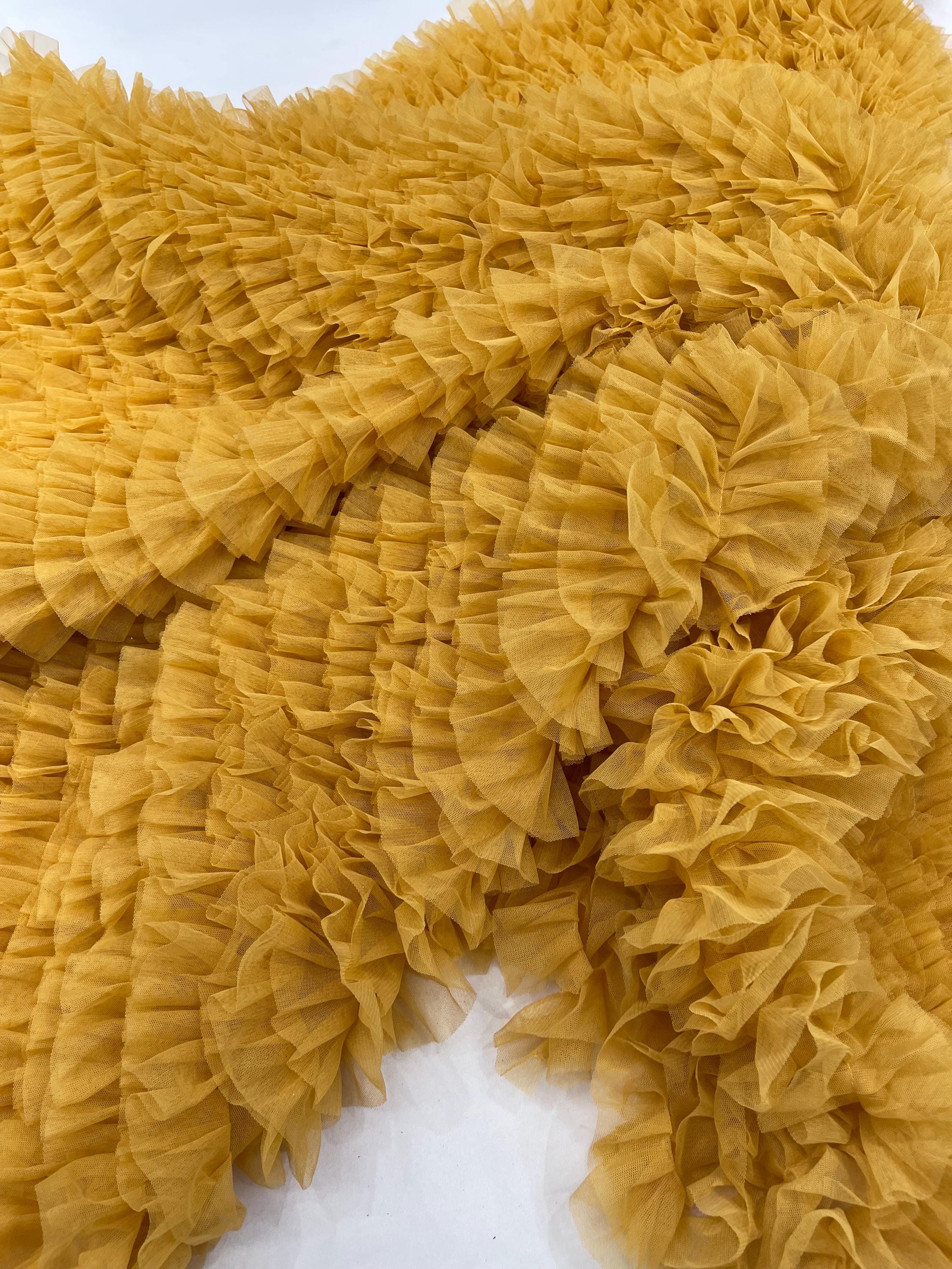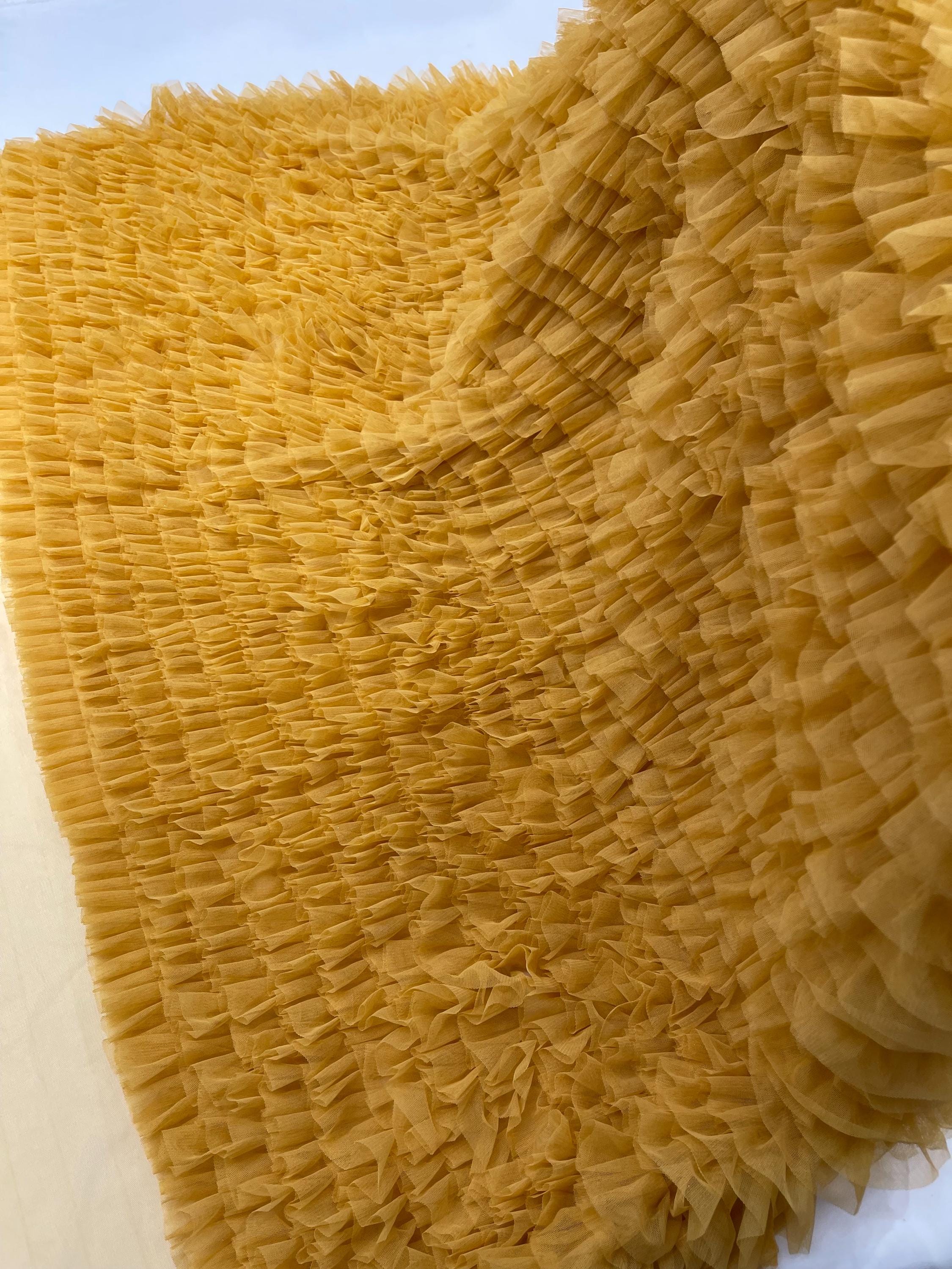 Gold Tulle Ruffle Fabric, 60" Wide Waves - Prom Dress Wedding & Decoration