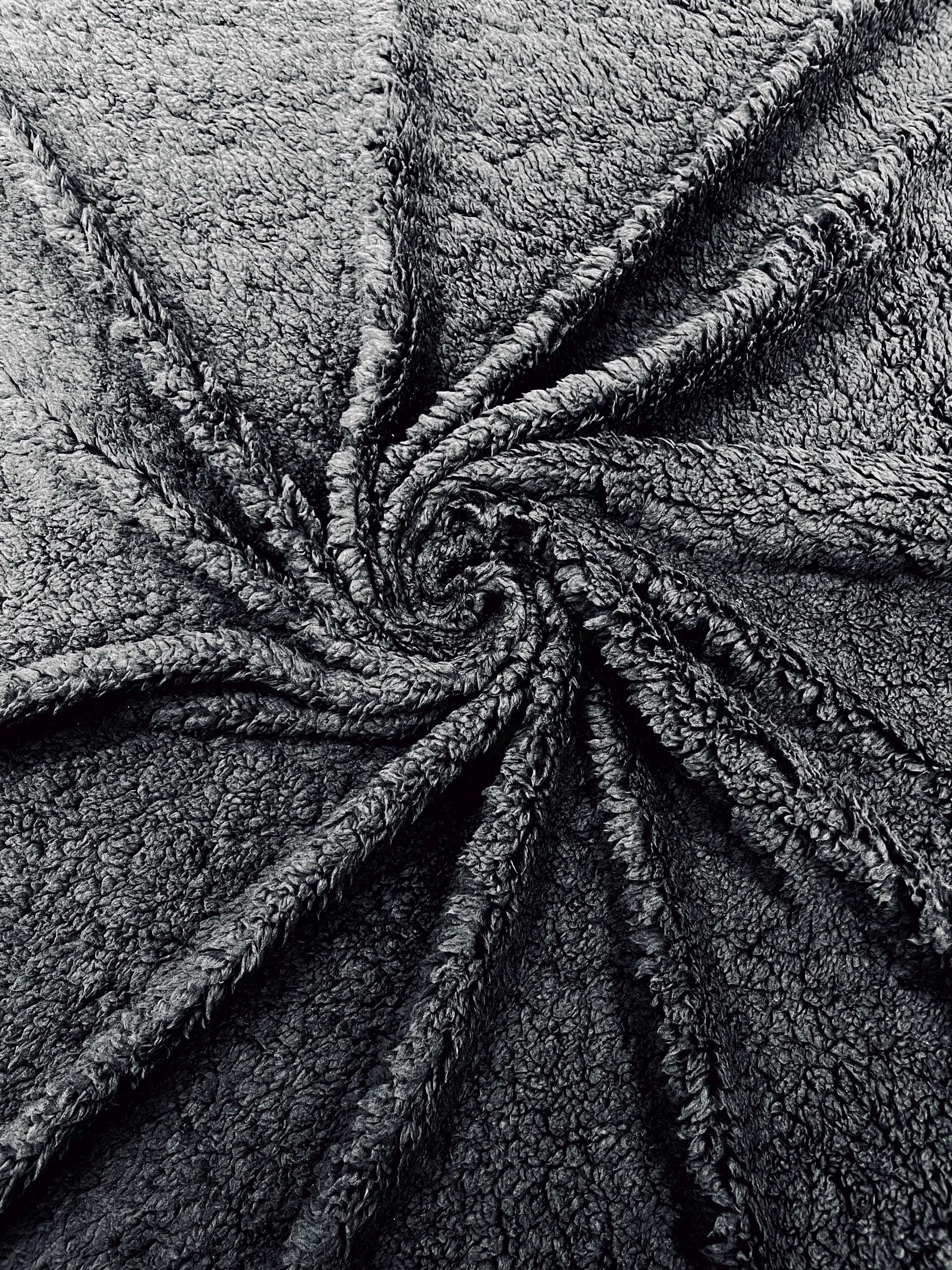 Black Minky Sherpa Fleece Fabric - Lamb Wool Design By The Yard