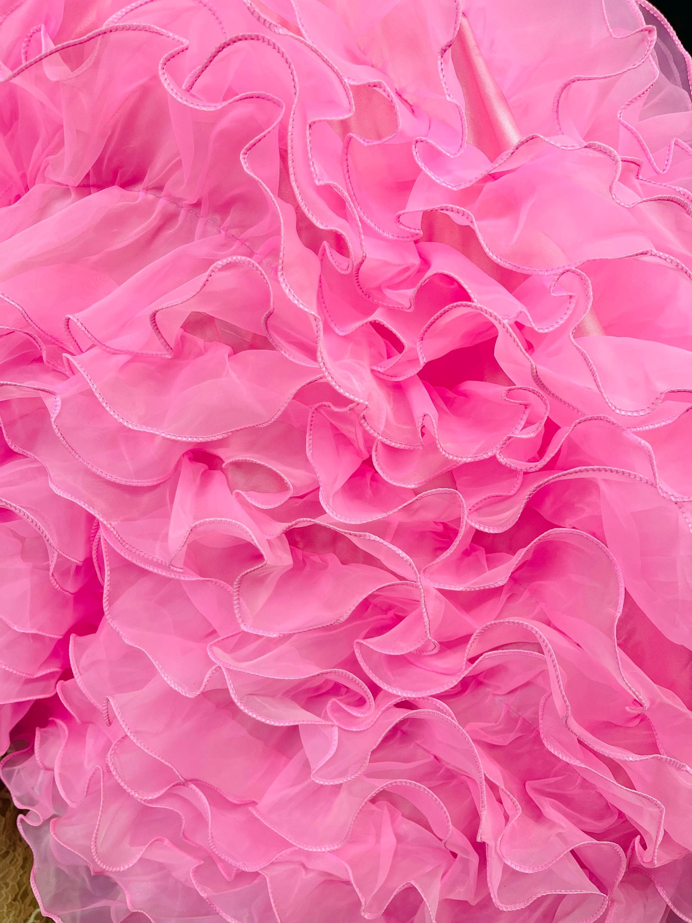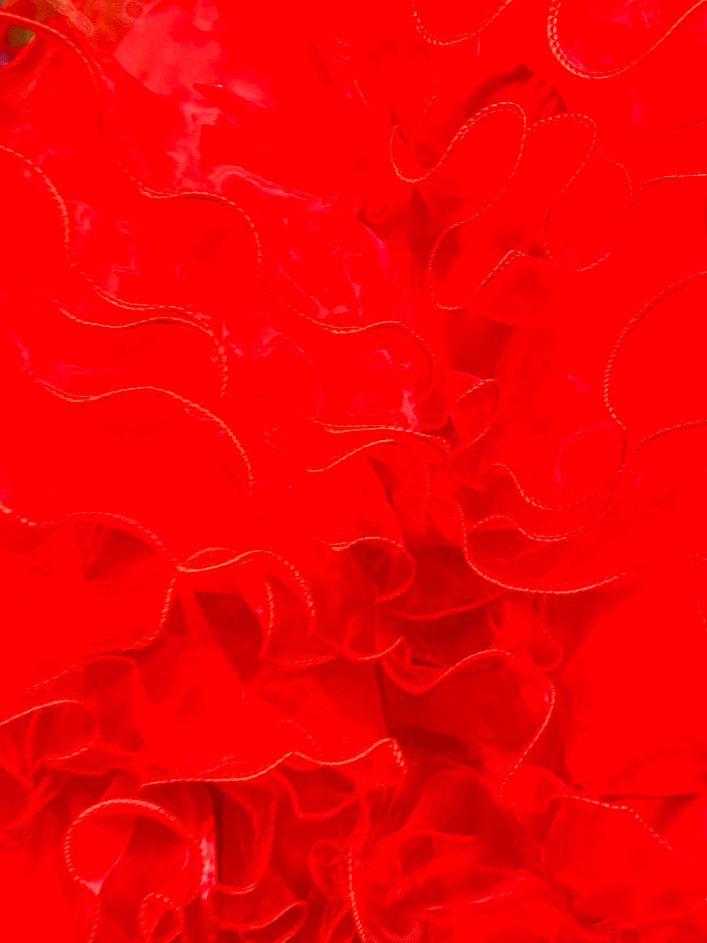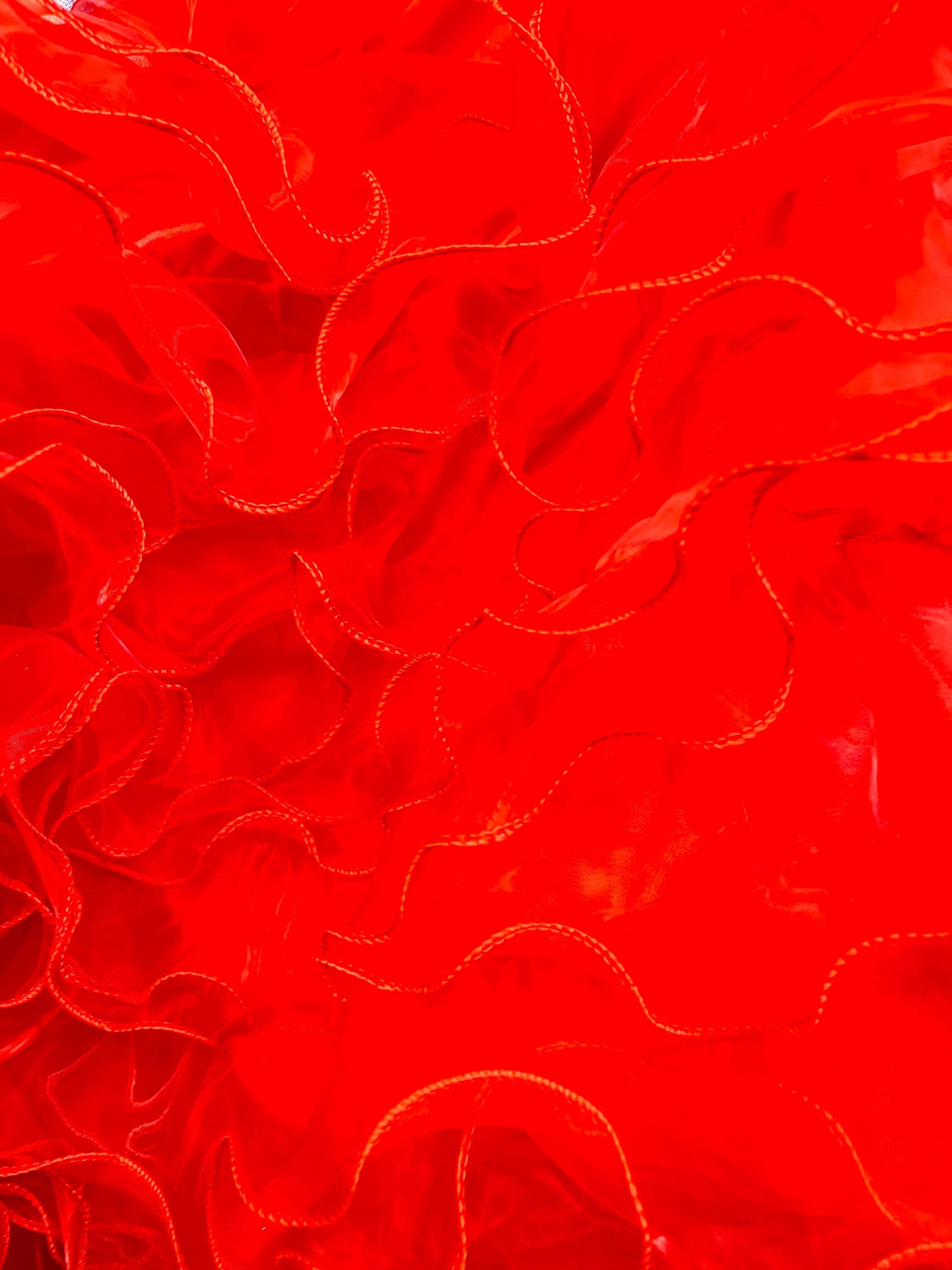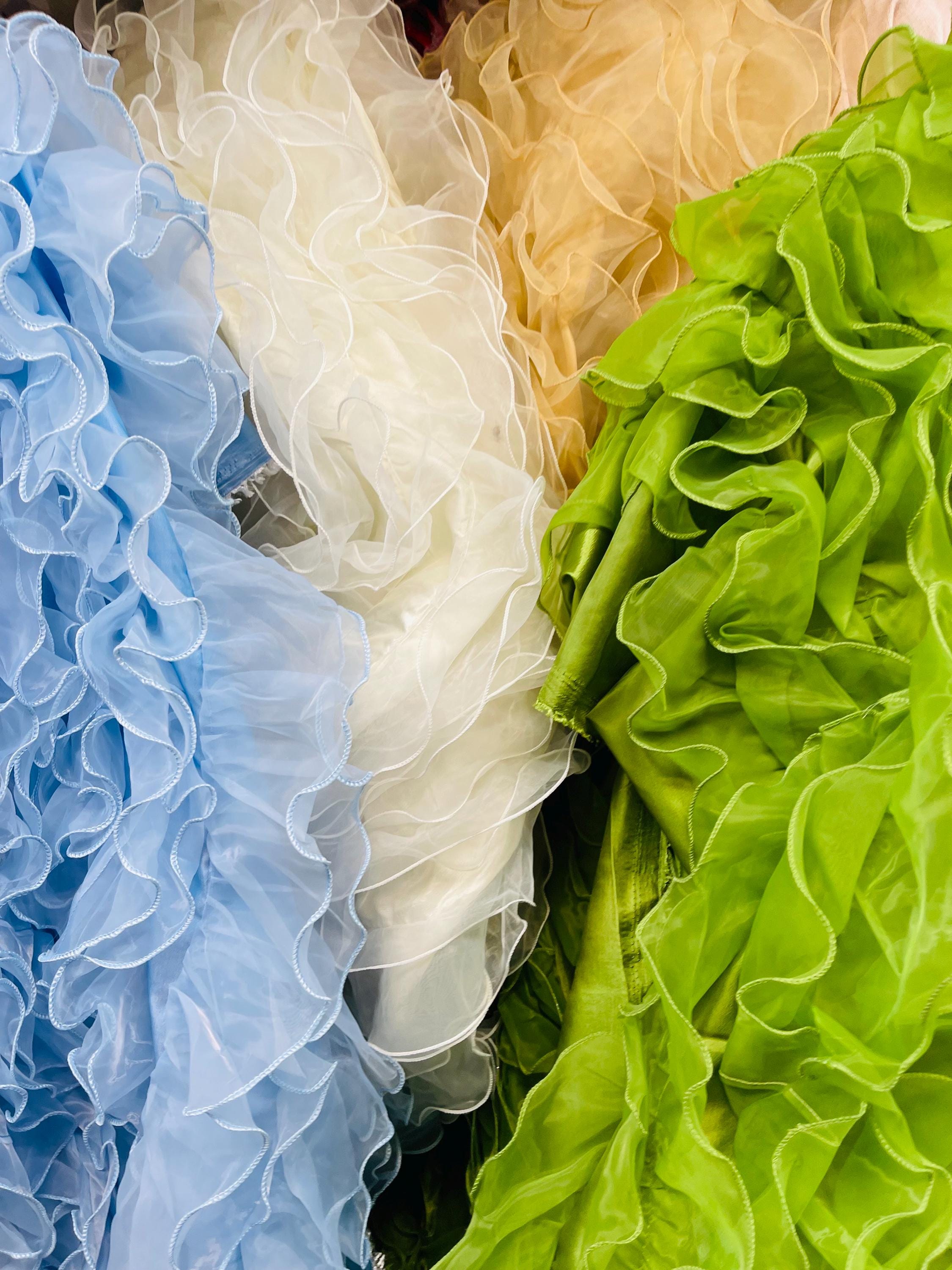 Organza Ruffle Design Embroidered on Taffeta Backing is a transparent fabric that is used to make fabric for formal wear and ribbon. It is a thin poly mesh fabric that is accented and designed with puffy waves that resemble ruffle shapes making it ideal for puffy dresses and high end gowns. This carries a very elegant and extravagant style that will surely amaze you. There are also many uses for this fabric in sewing and crafting projects.