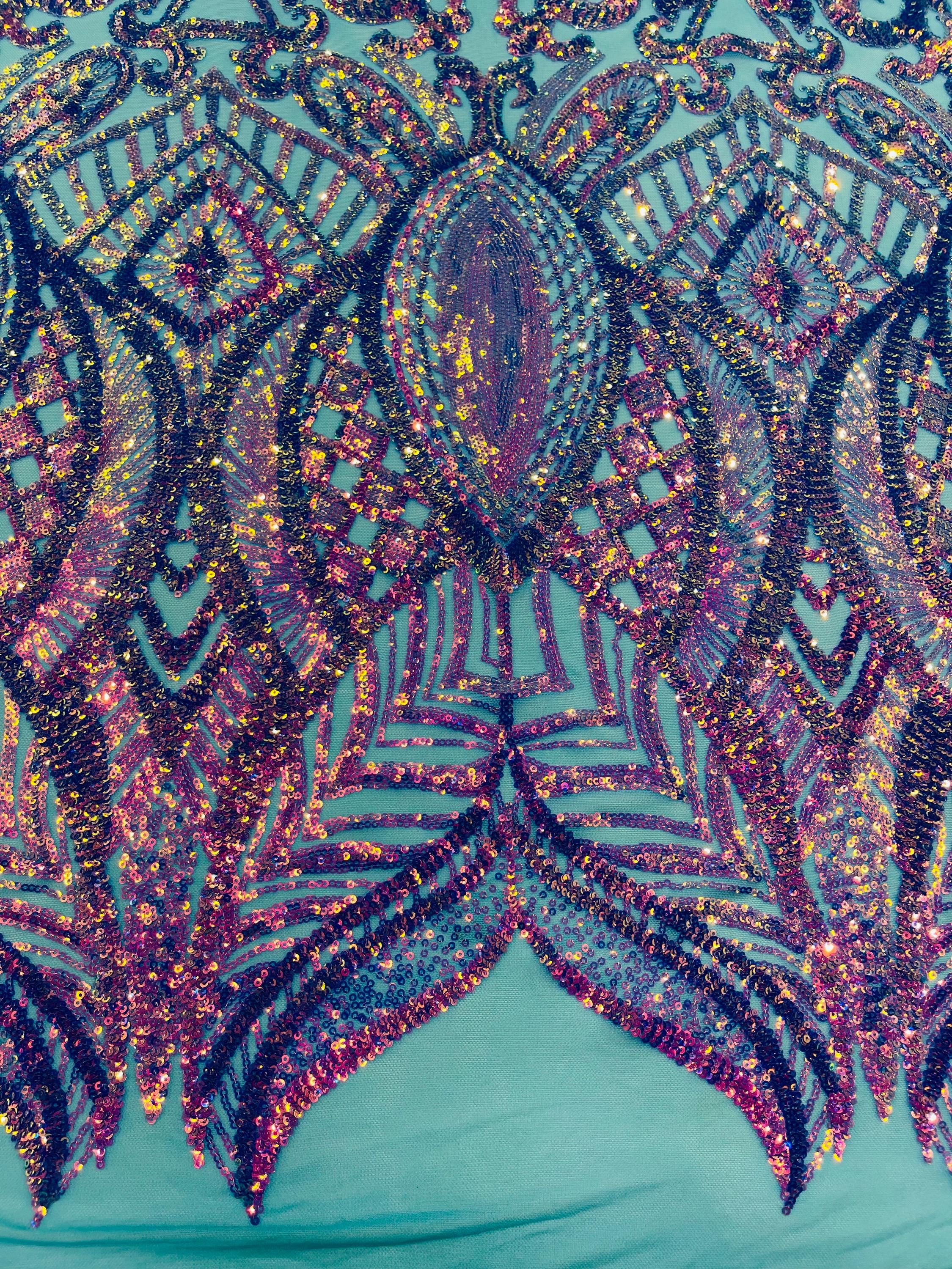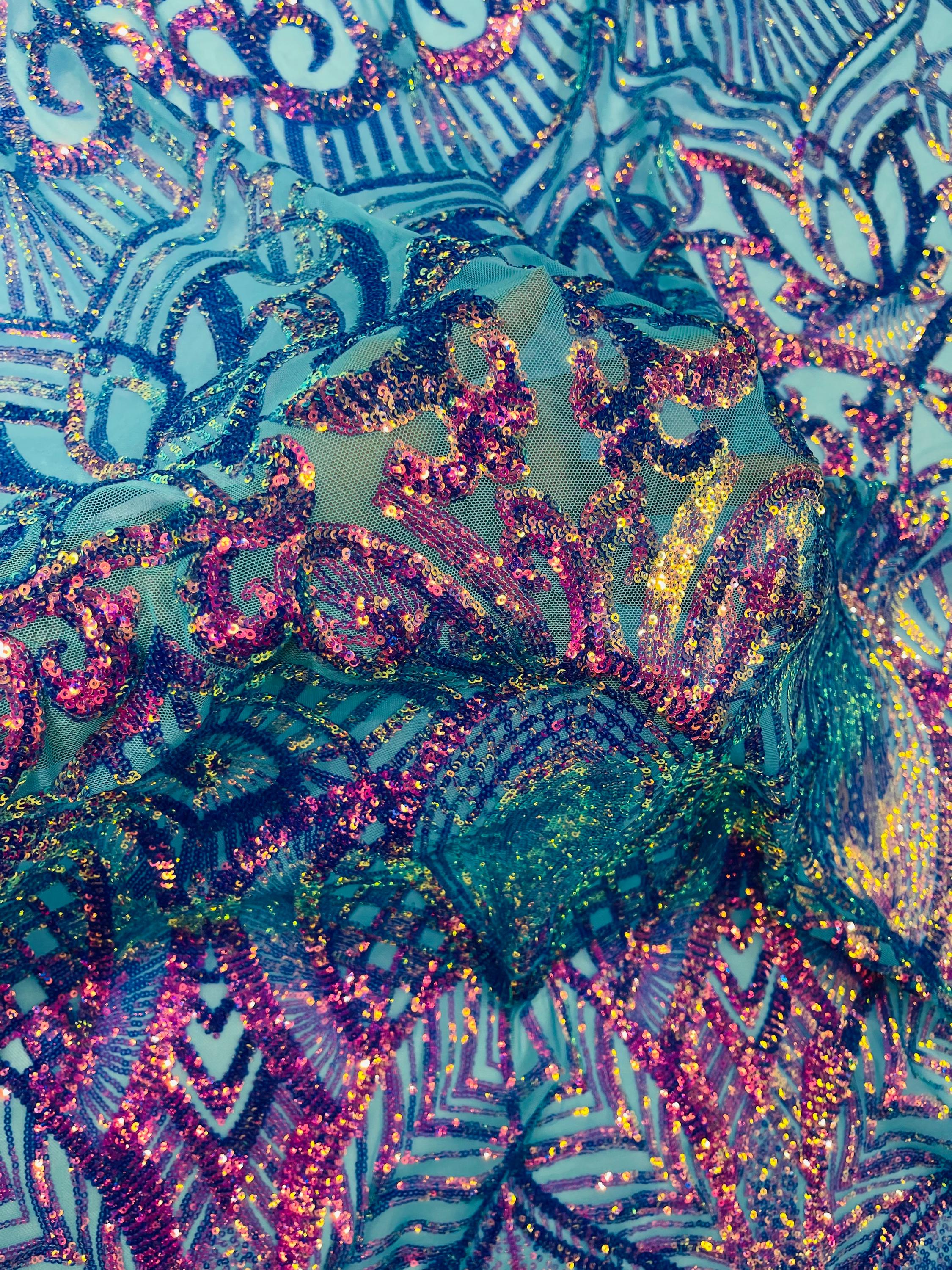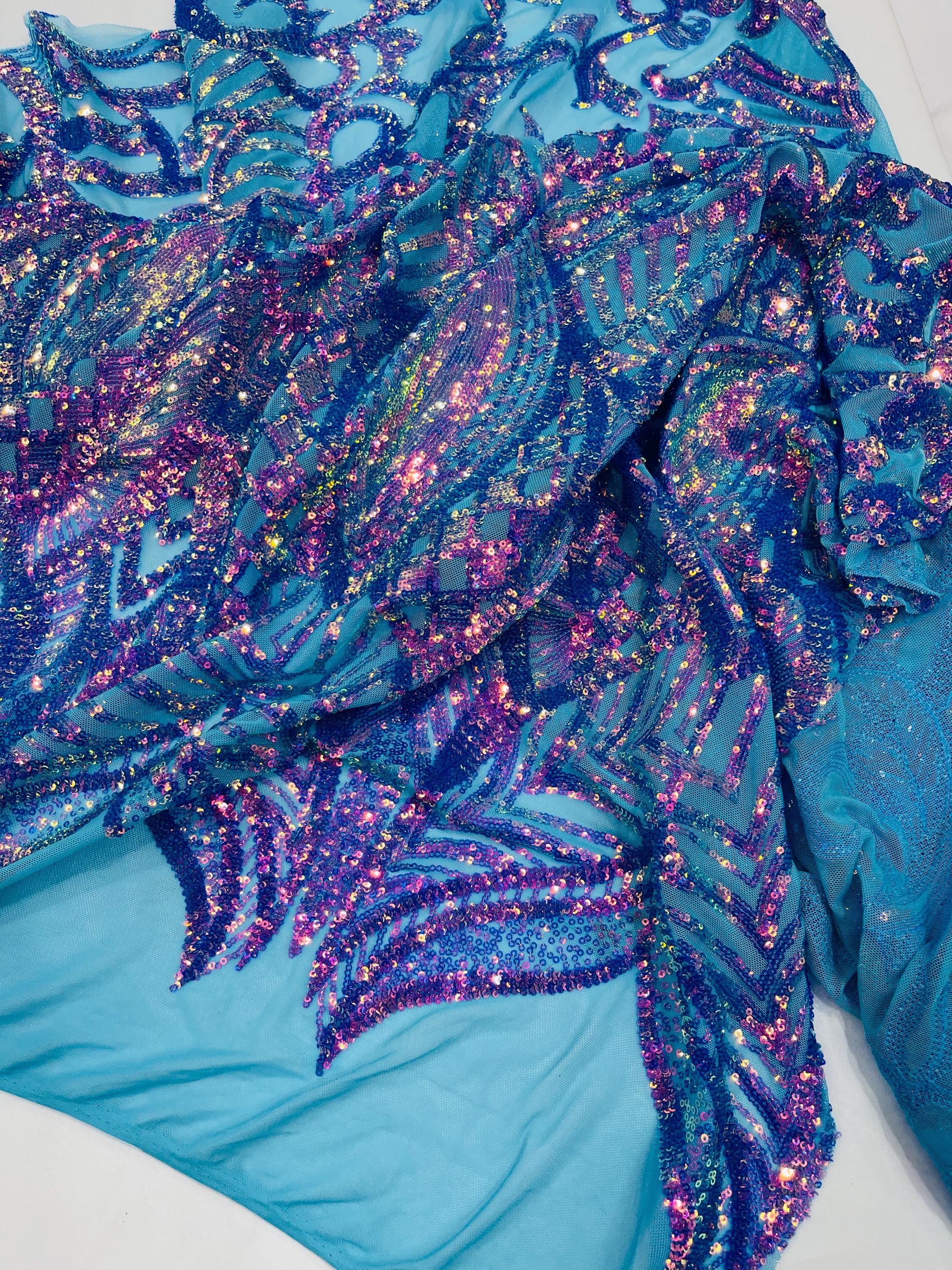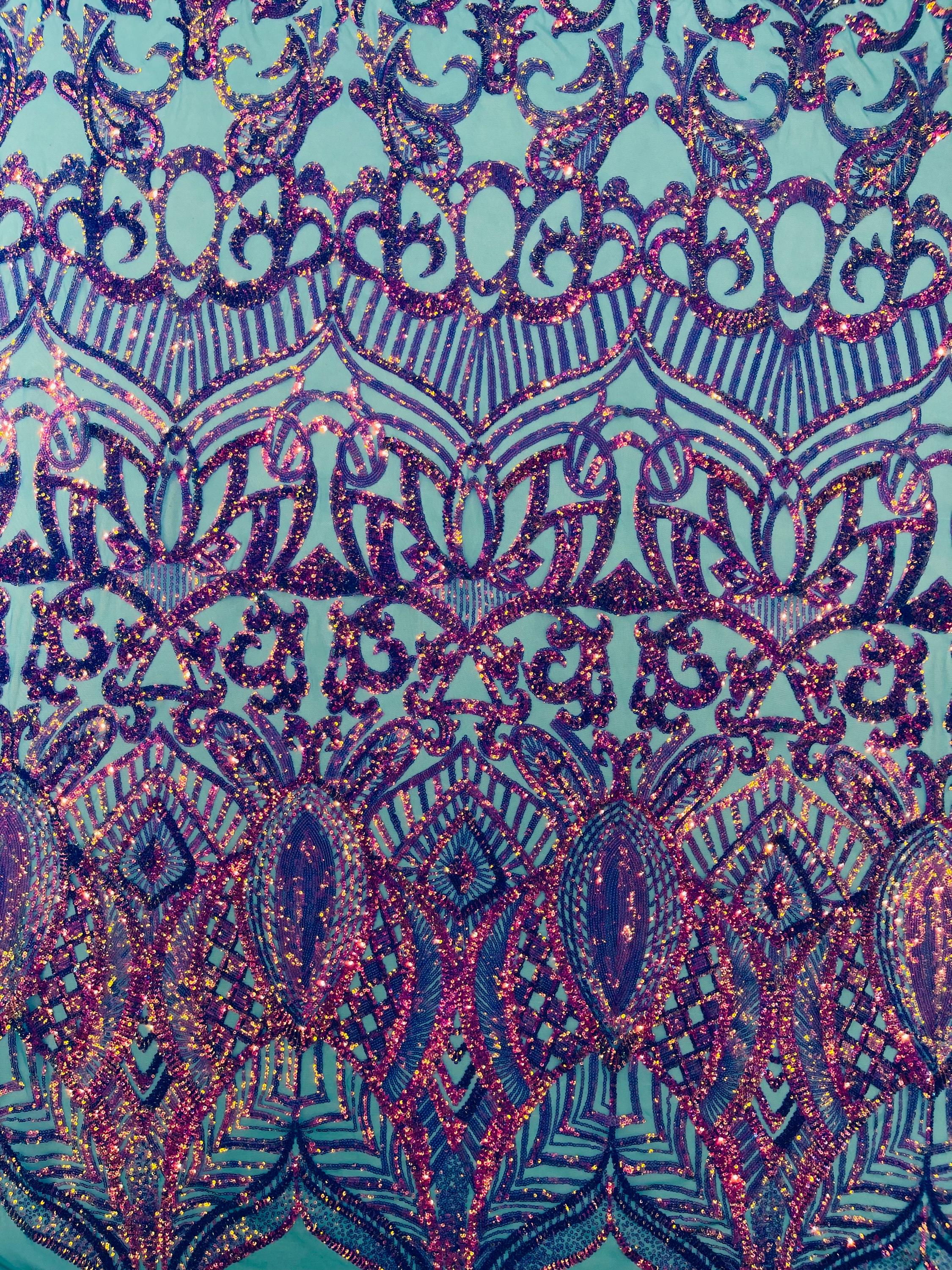The sequins has especial and extraordinary design on the Mesh . It is super elegant and classy, The royalty design is embroidered with sequins on a mesh and can be used for dresses, tablecloths, backdrops, night gowns, skirts, prom dresses, wedding dresses, runners for tables, decorations and much more.