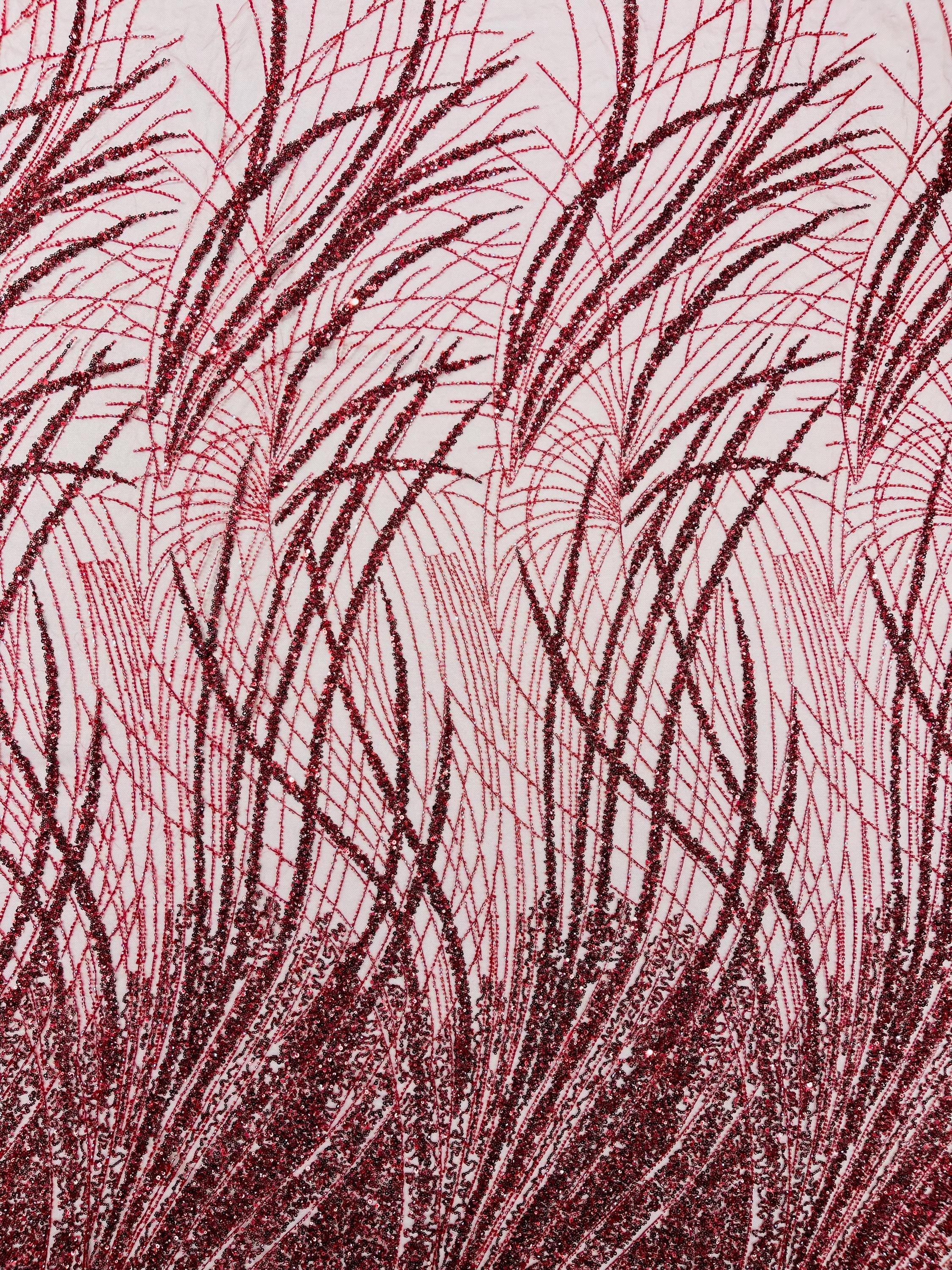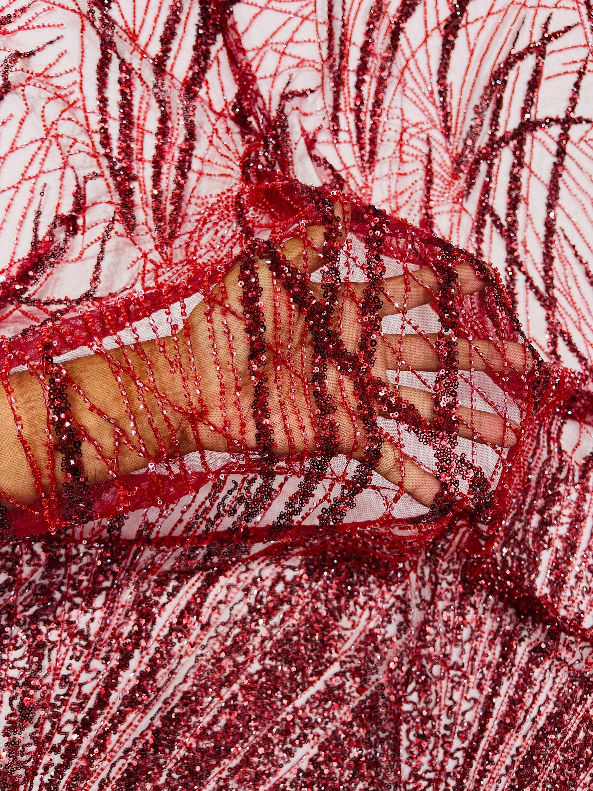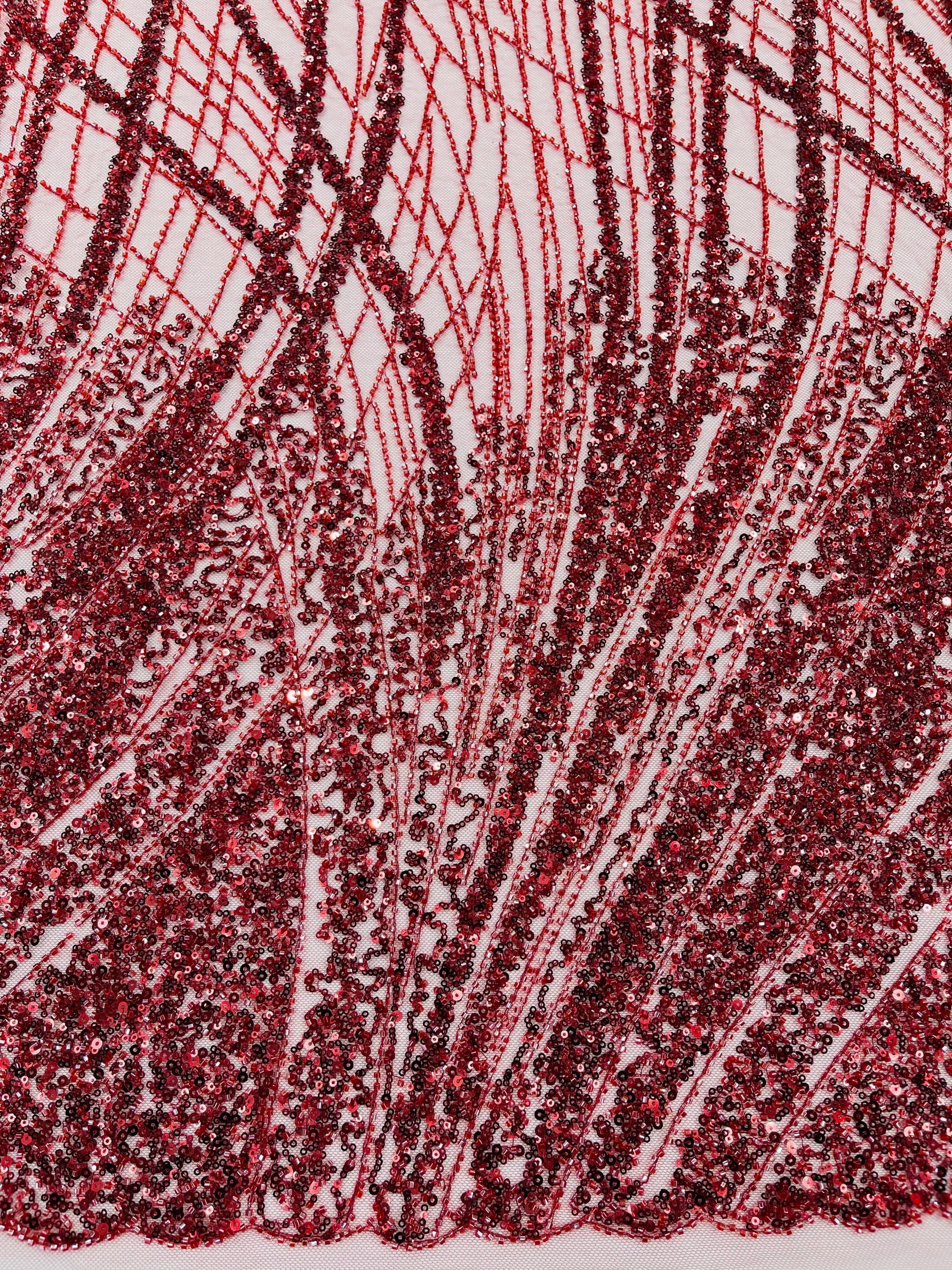 Burgundy Beaded Fabric Sold By The Yard, Fashion Design Beads and Sequins