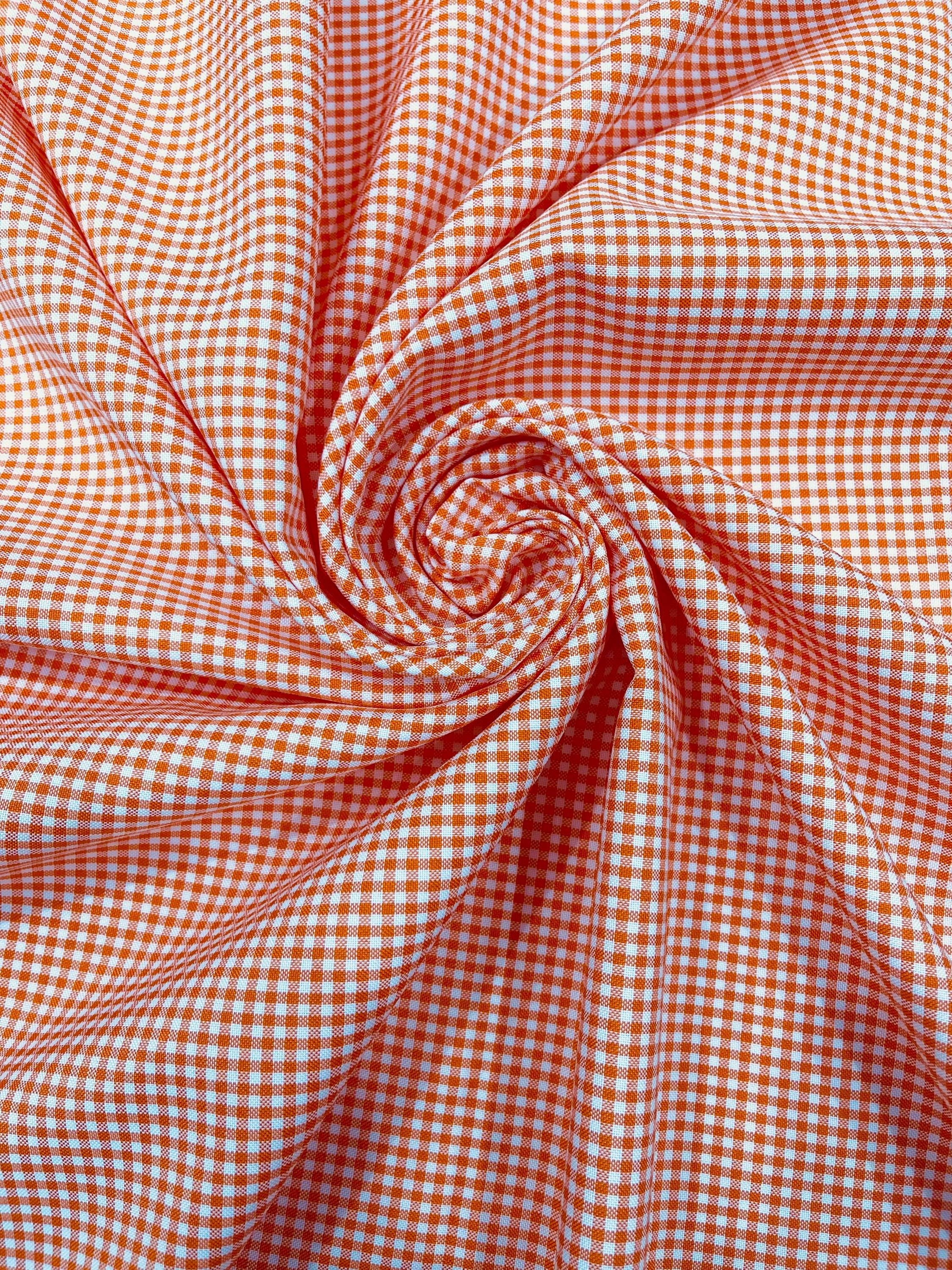 Orange & White Gingham Fabric by Yard 1/8” Squares, Poly Cotton Checkered Fabric
