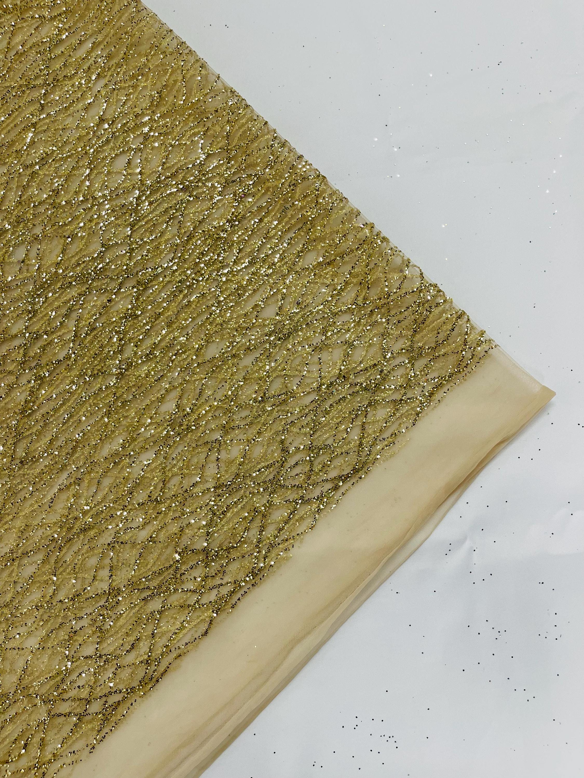 Champagne Gold Glitter Mesh, Glitter Tulle Lace Fabric: Bridal, Prom, Quinceañera Decor