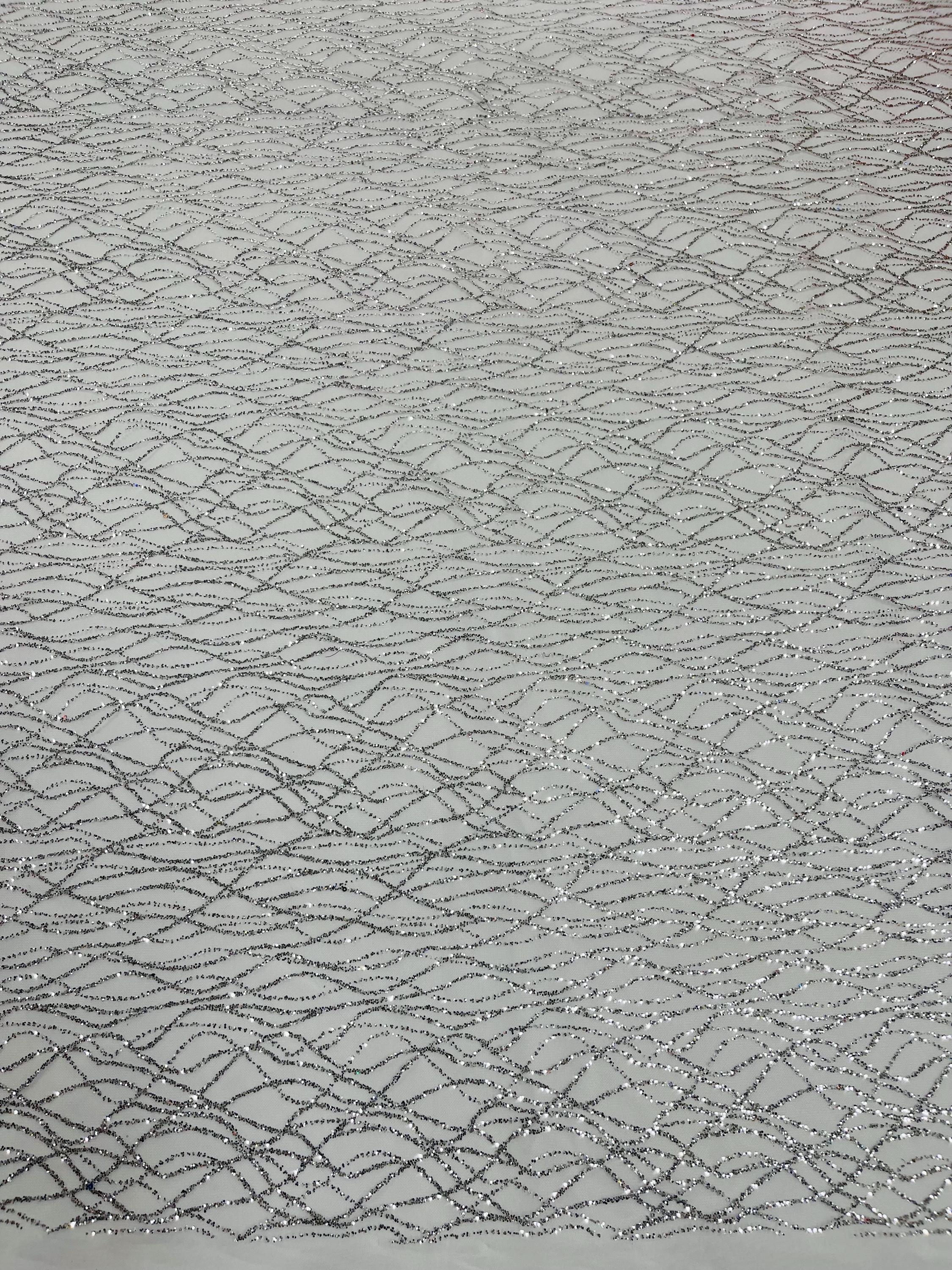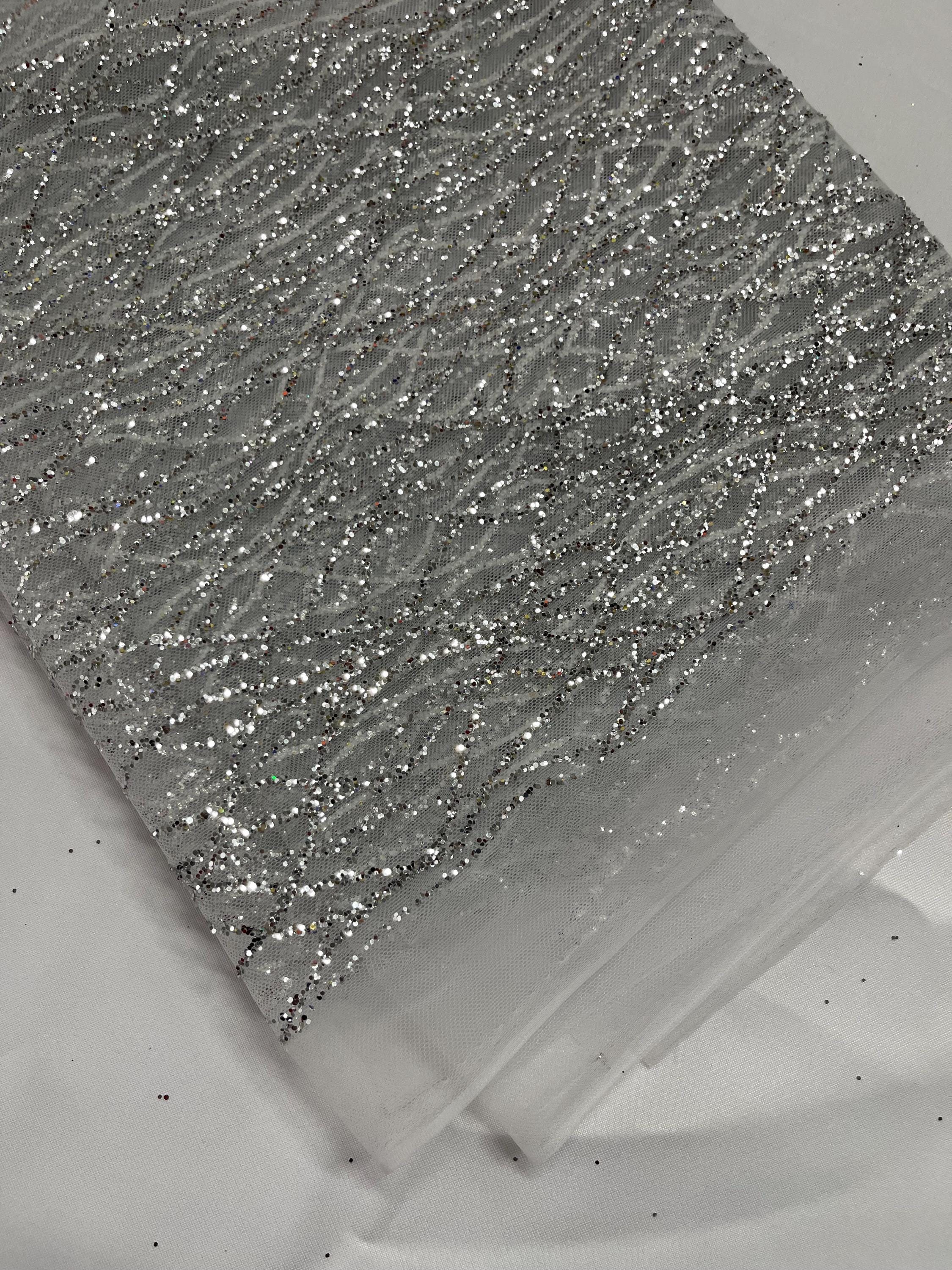 Silver Glitter Mesh, Glitter Tulle Lace Fabric: White Mesh Bridal, Prom, Quinceañera Decor