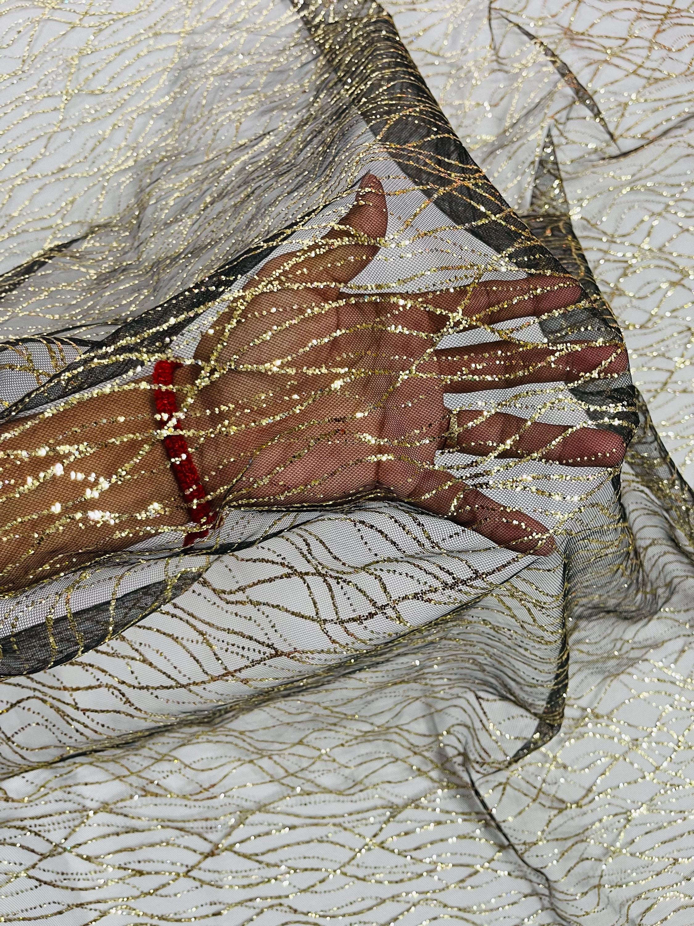 Gold Glitter Mesh, Glitter Tulle Lace Fabric: Black Mesh Bridal, Prom, Quinceañera Decor