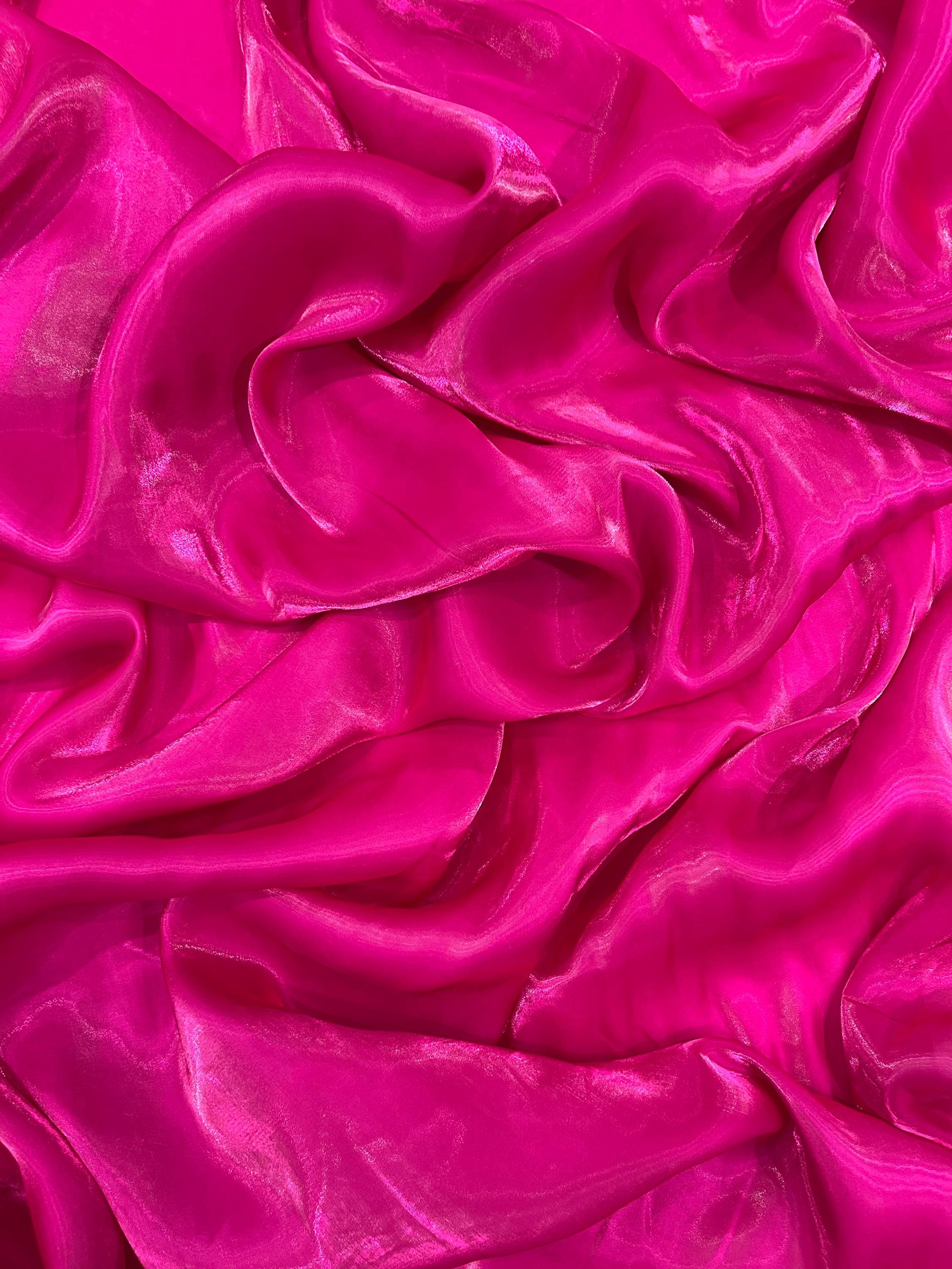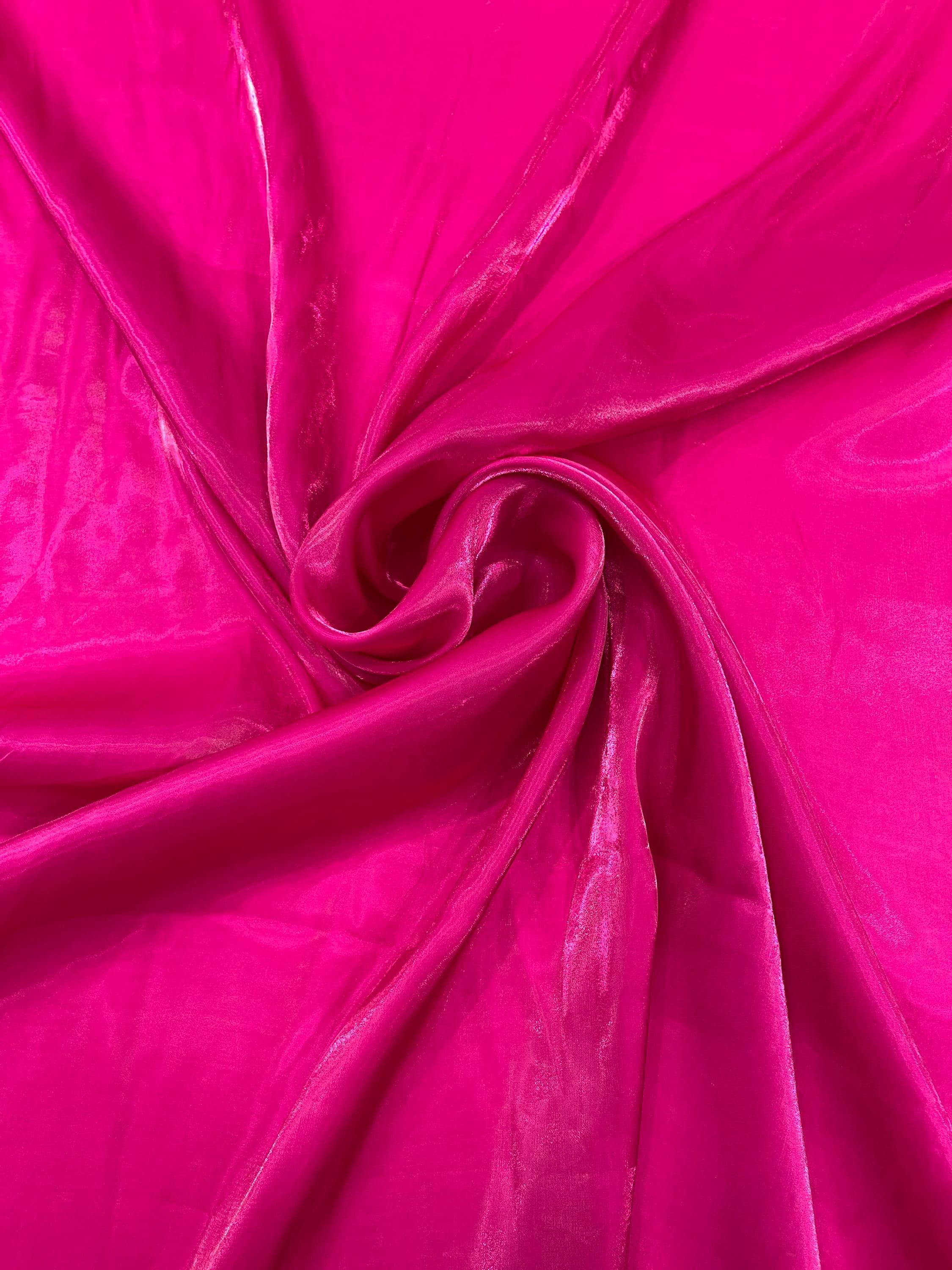 Magenta Ultra Glossy Shimmer Chiffon Fabric, Bridal Liquid Crystal, 100% Polyester By The Yard