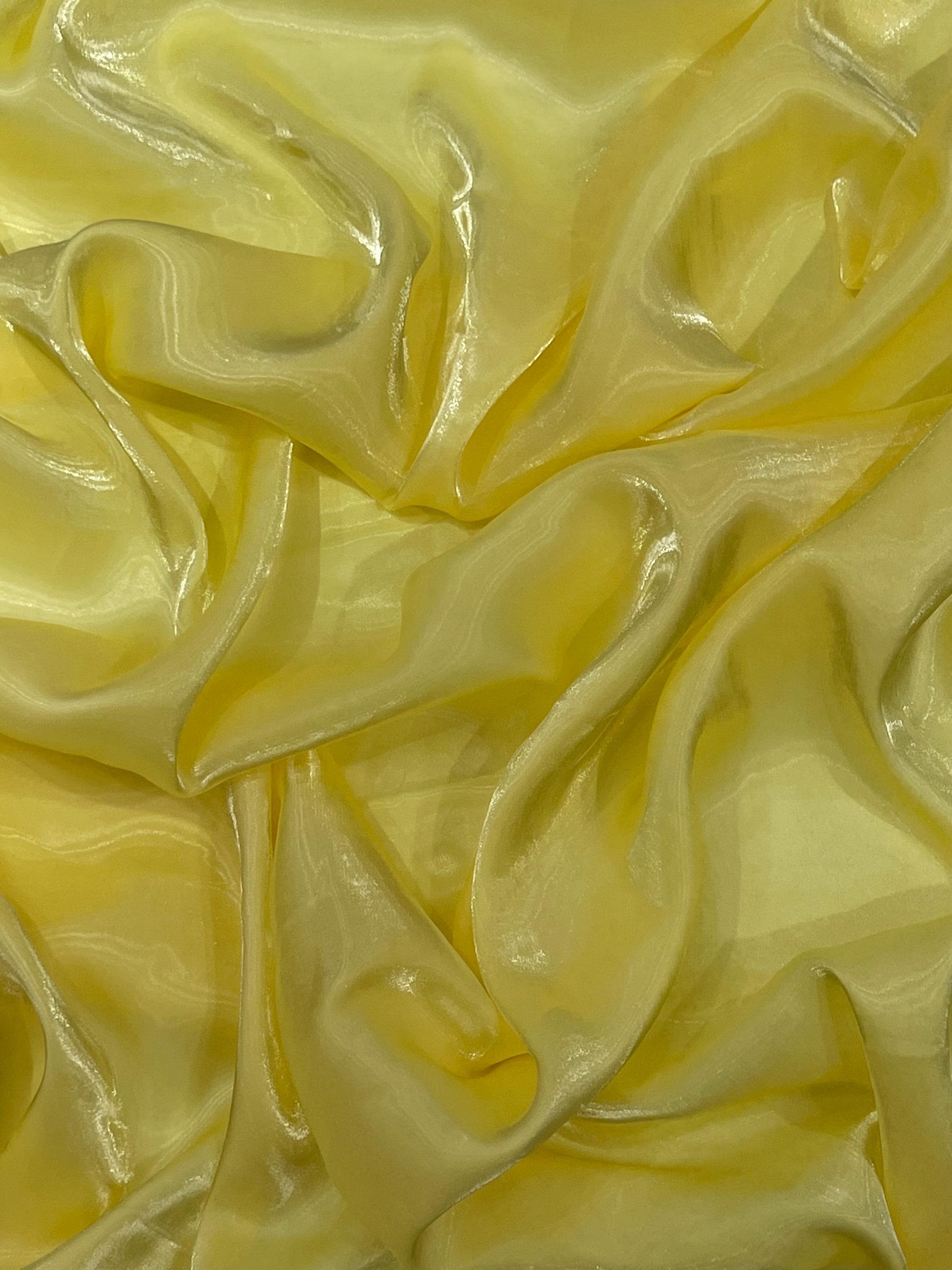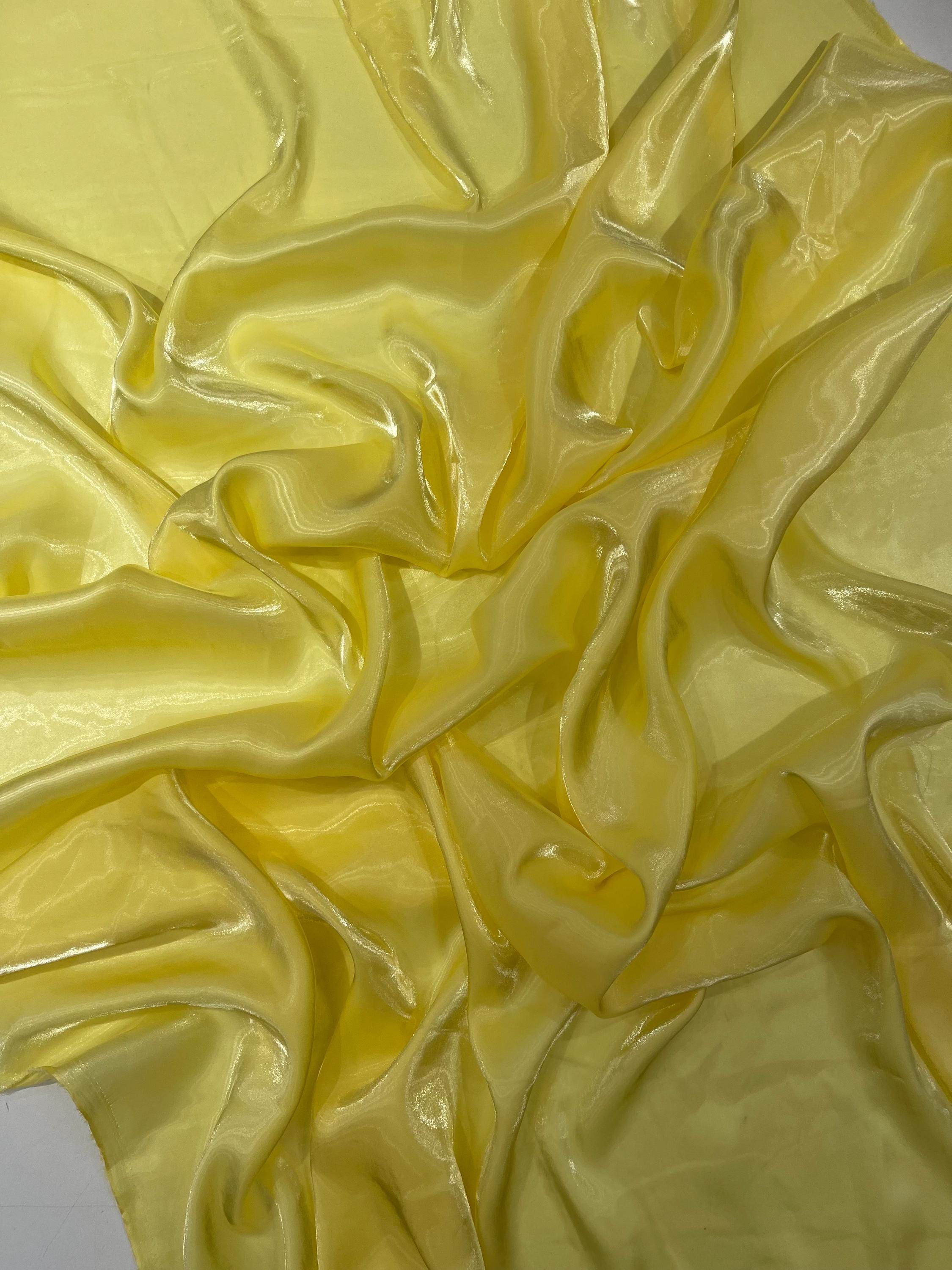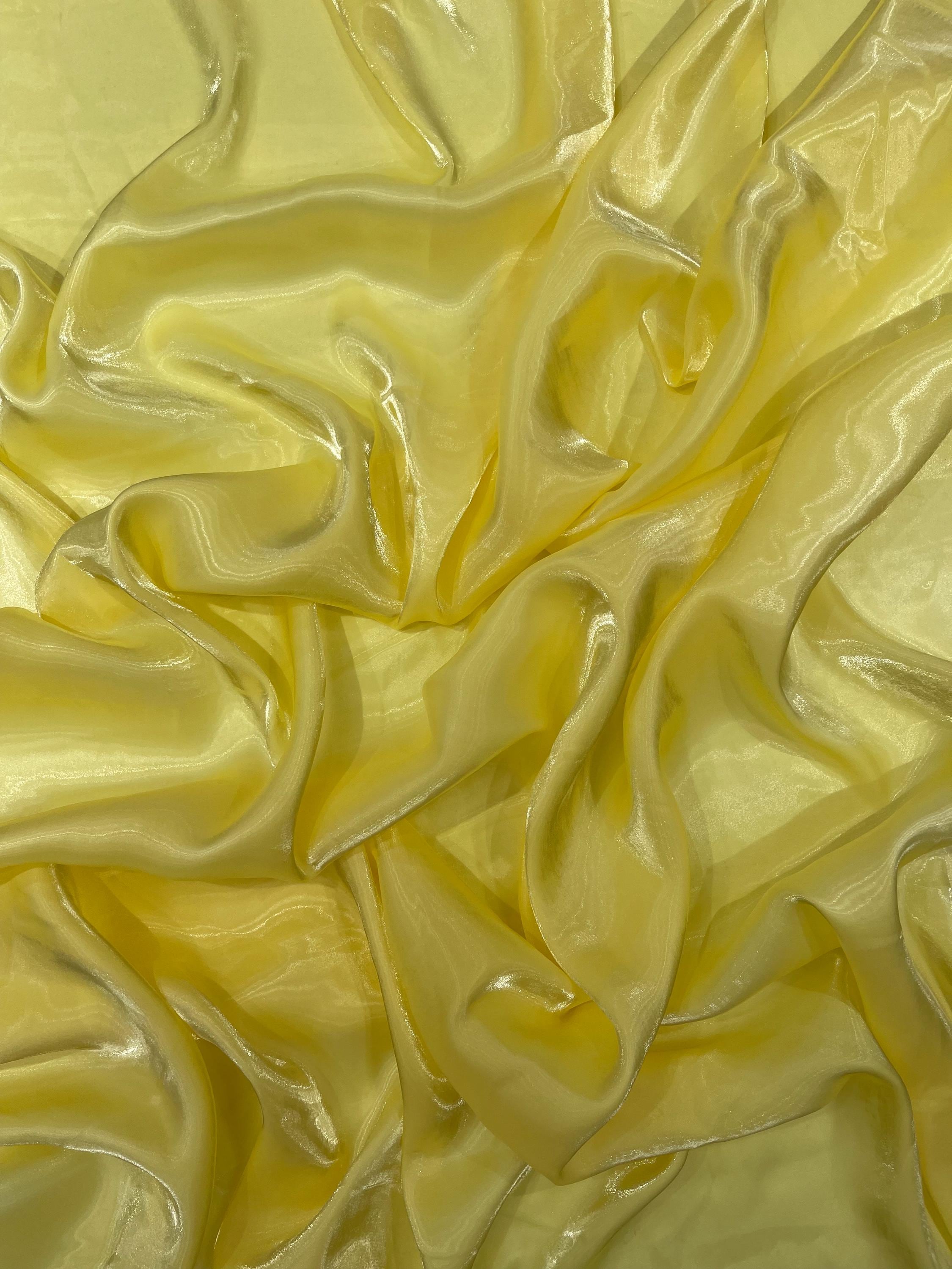 Light Yellow Ultra Glossy Shimmer Chiffon Fabric, Bridal Liquid Crystal, 100% Polyester By The Yard