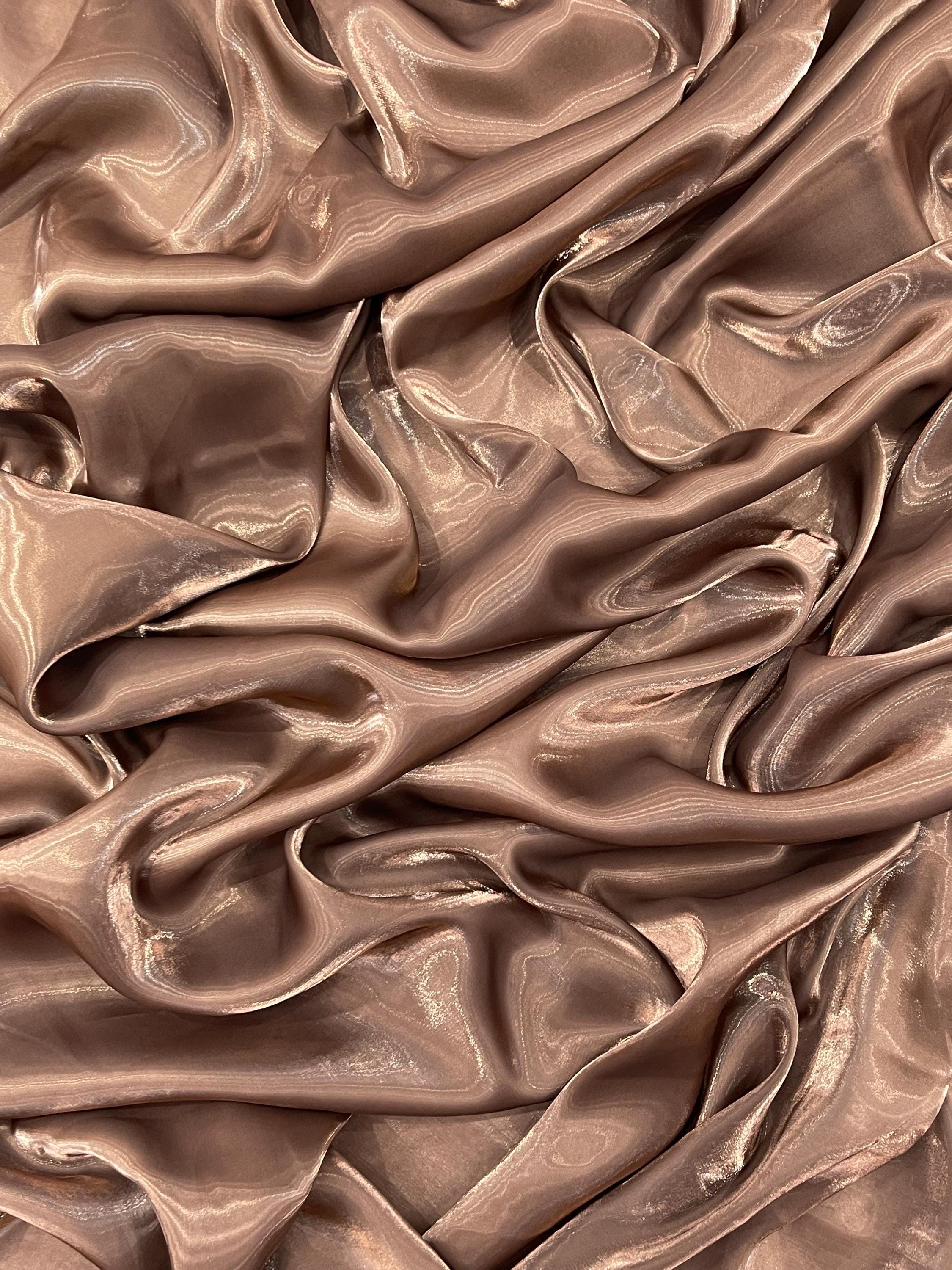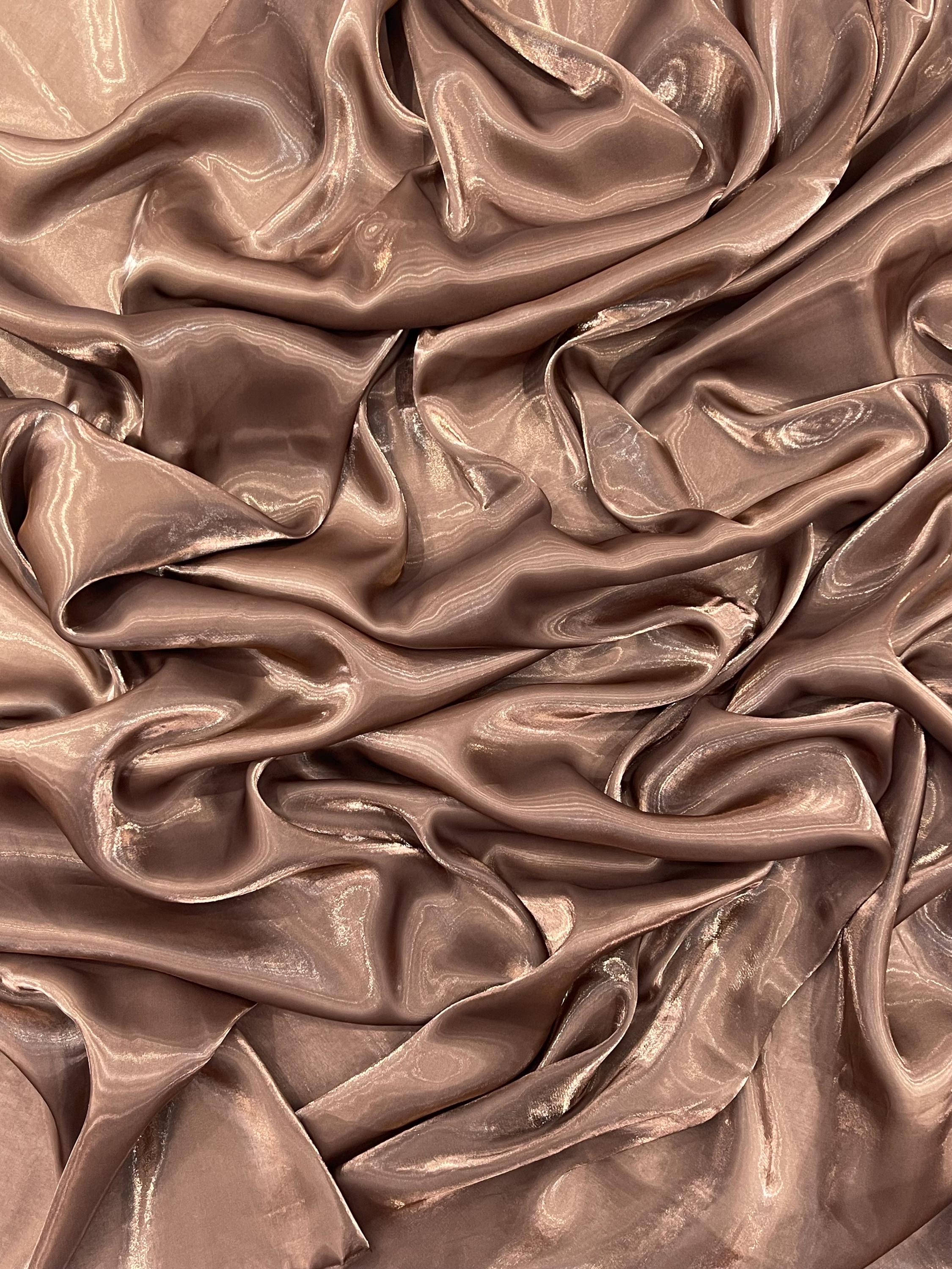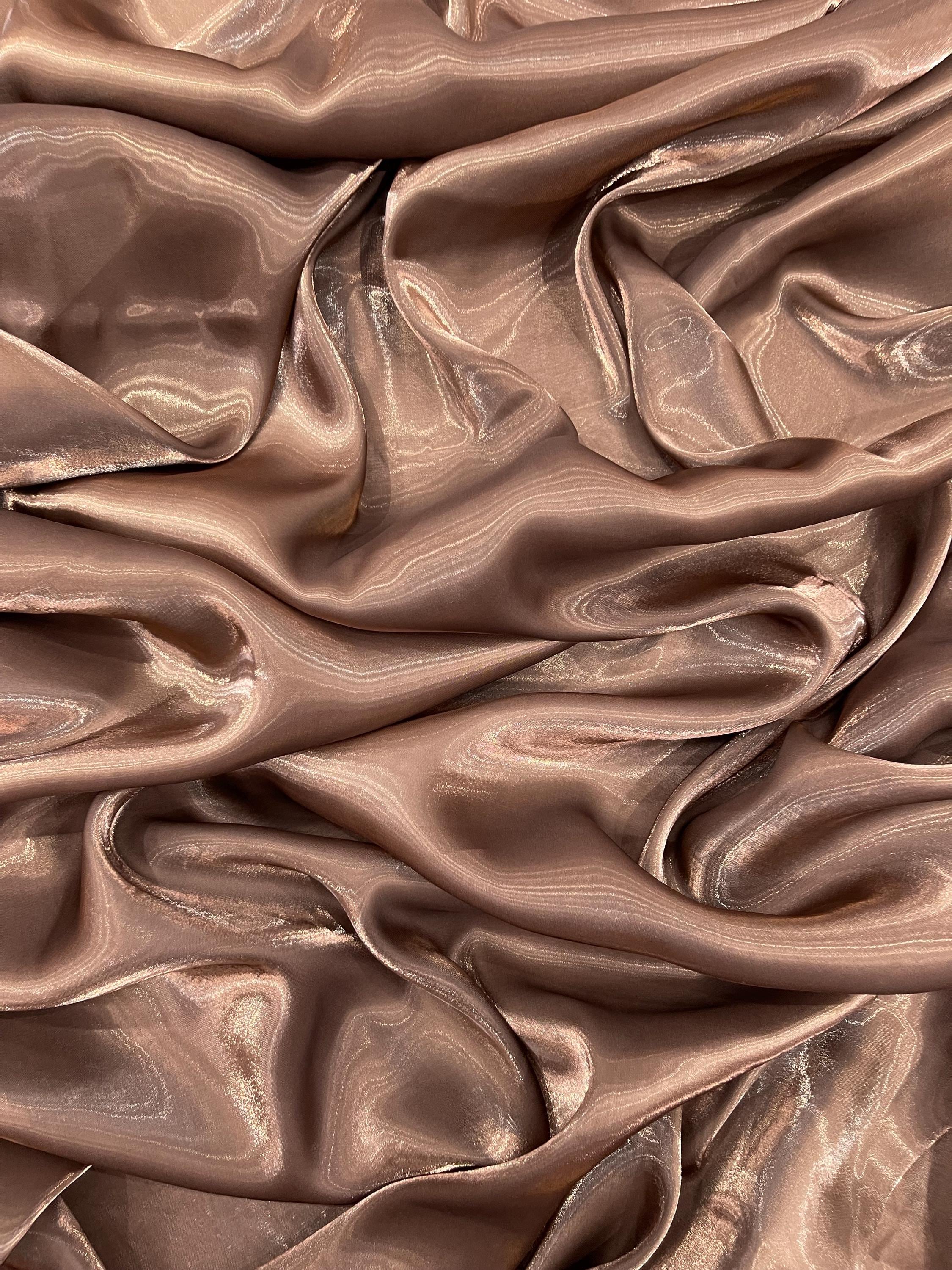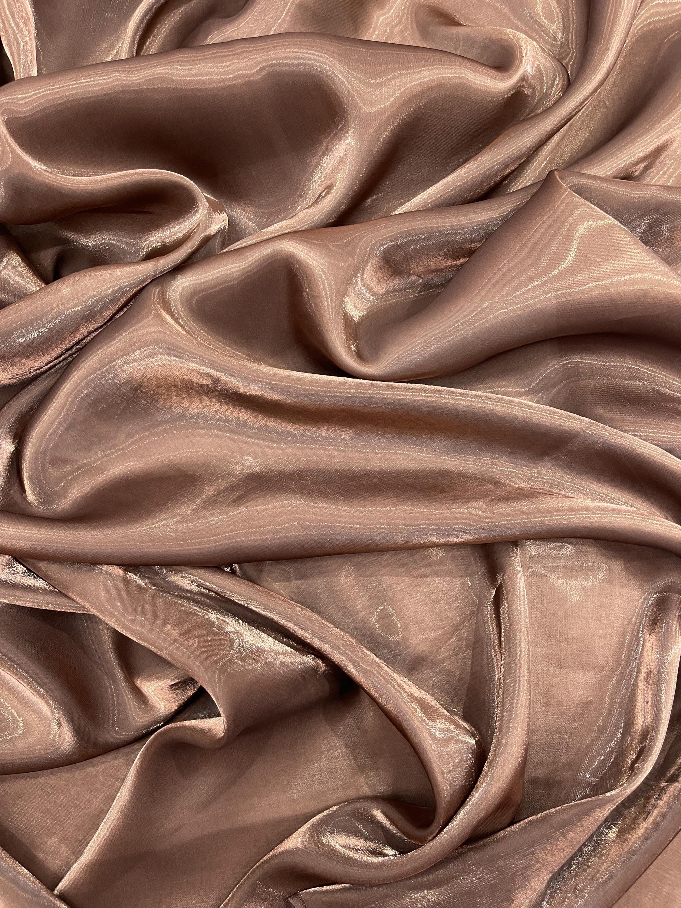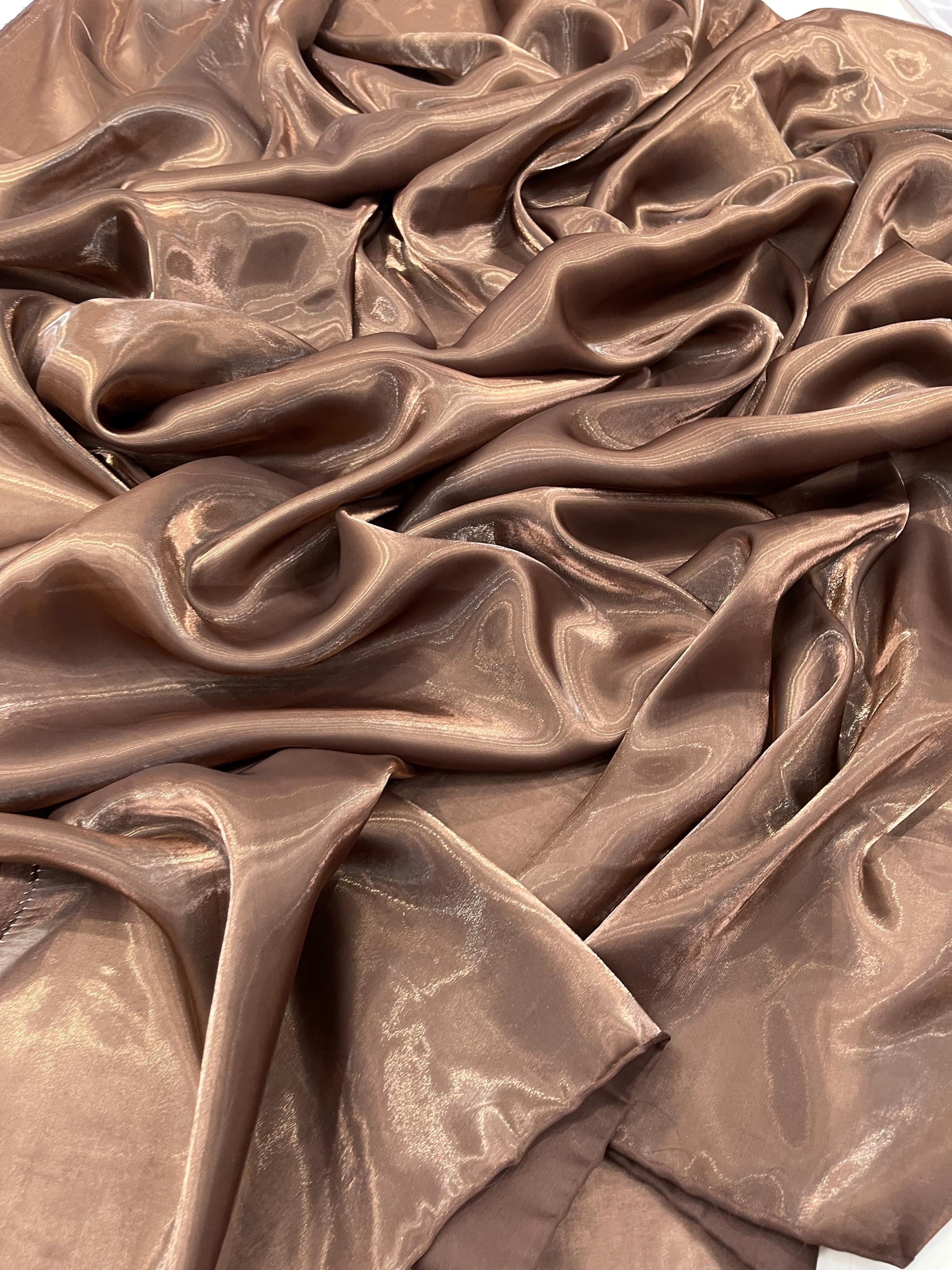 Brown Ultra Glossy Shimmer Chiffon Fabric, Bridal Liquid Crystal, 100% Polyester By The Yard