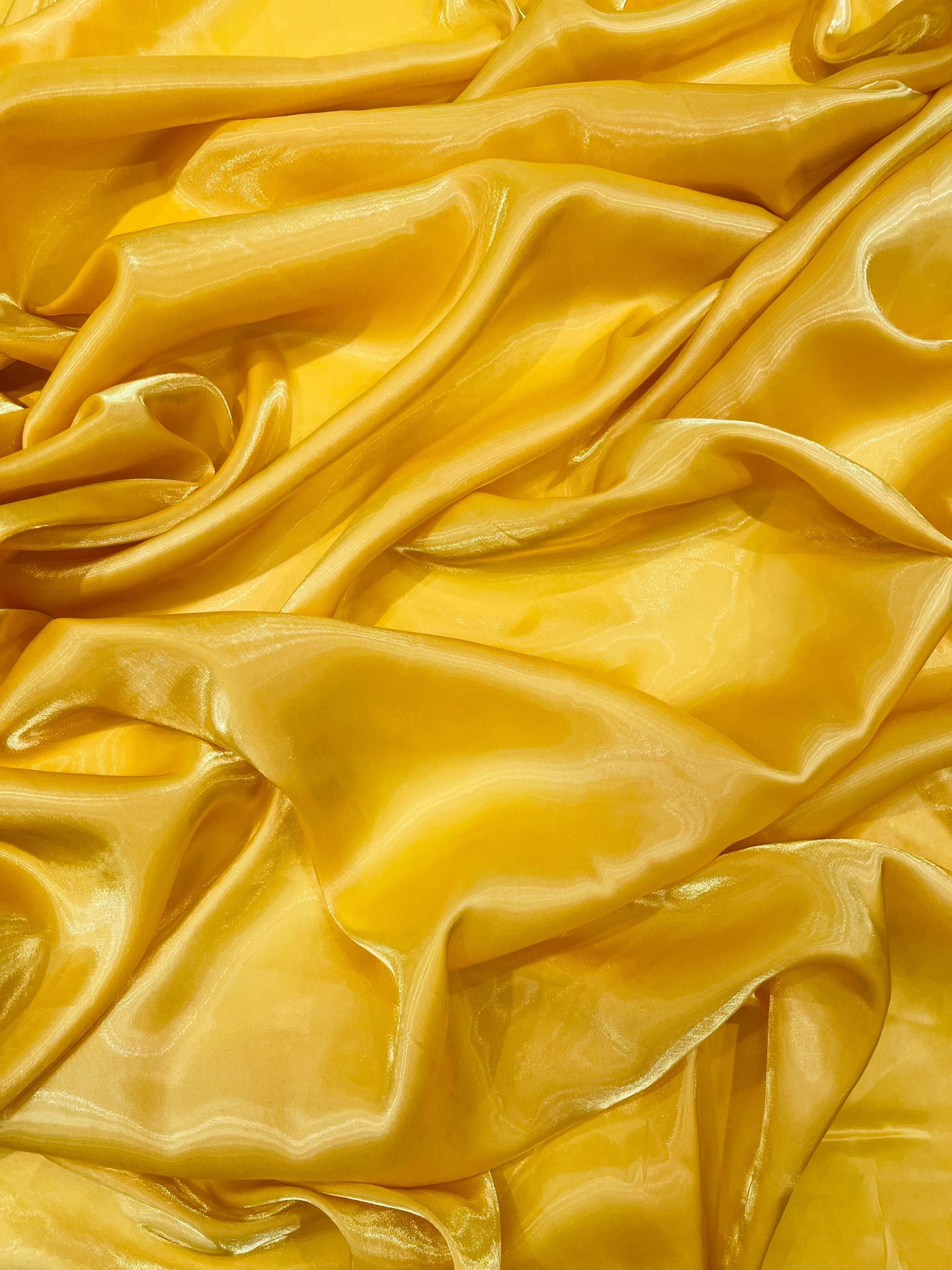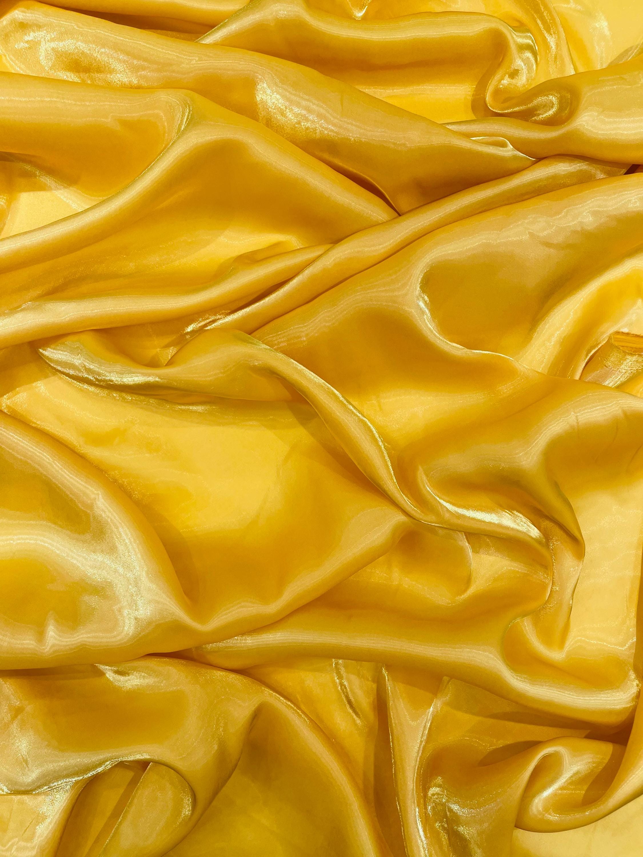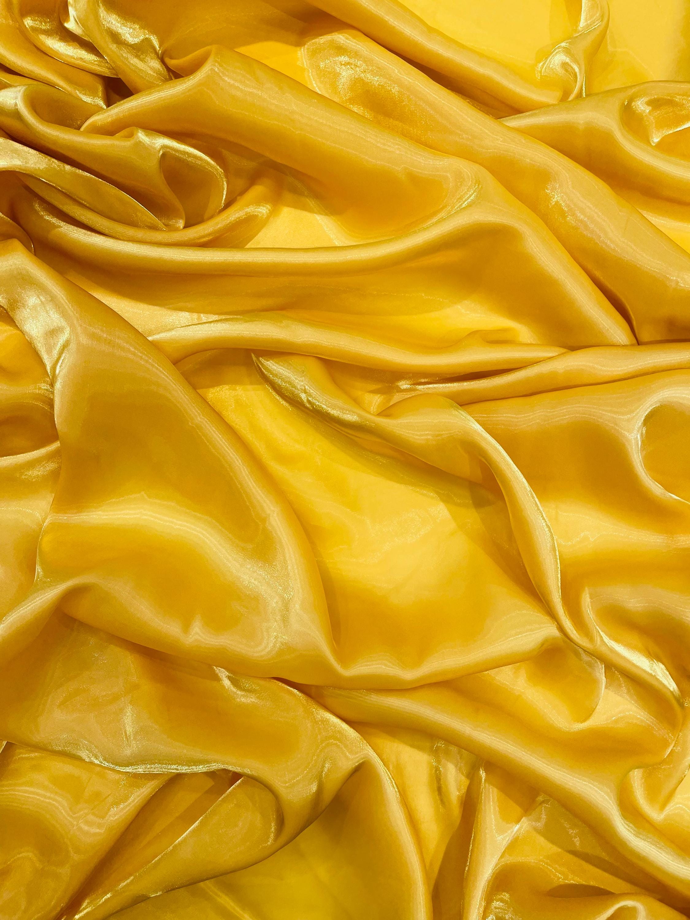 Gold Ultra Glossy Shimmer Chiffon Fabric, Bridal Liquid Crystal, 100% Polyester By The Yard