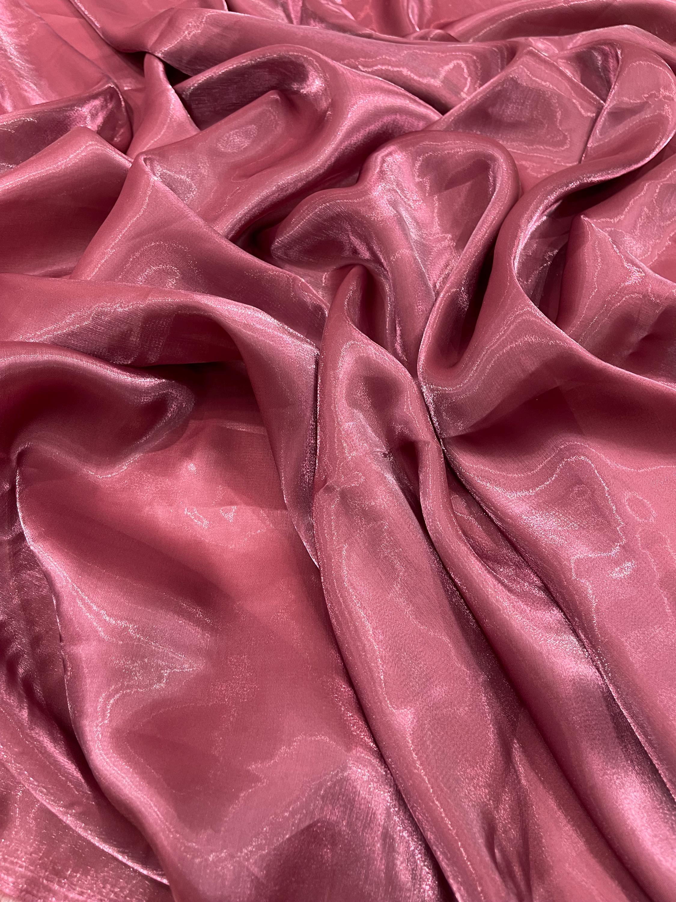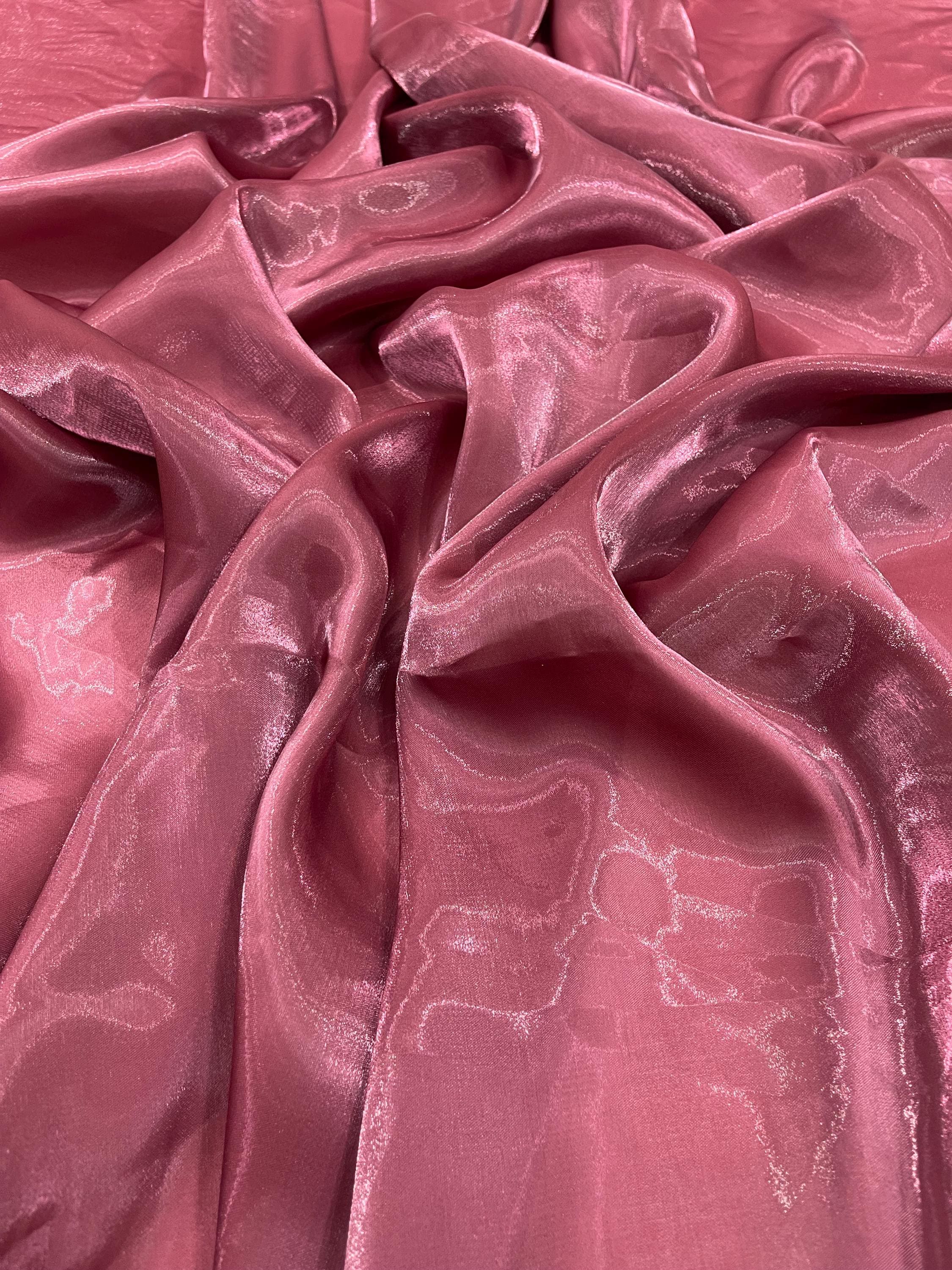 Water gloss chiffon, also known as liquid chiffon, is a luxurious and lightweight fabric characterized by its smooth, fluid drape and subtle sheen. This semi-sheer material combines the delicate, airy qualities of traditional chiffon with a glossy finish, giving it an elegant and sophisticated appearance. It is made from 100% polyester , but has a very silky feel to it. The fabric has a soft, almost liquid-like feel, with a natural flow that makes it ideal for creating flowing dresses, evening gowns, scarves, and other garments where movement and fluidity are desired. Water gloss chiffon is popular in high-fashion and formal wear due to its ability to catch and reflect light beautifully, adding a touch of glamour to any design. Its versatility allows for both structured and loose silhouettes, making it suitable for a wide range of styles.