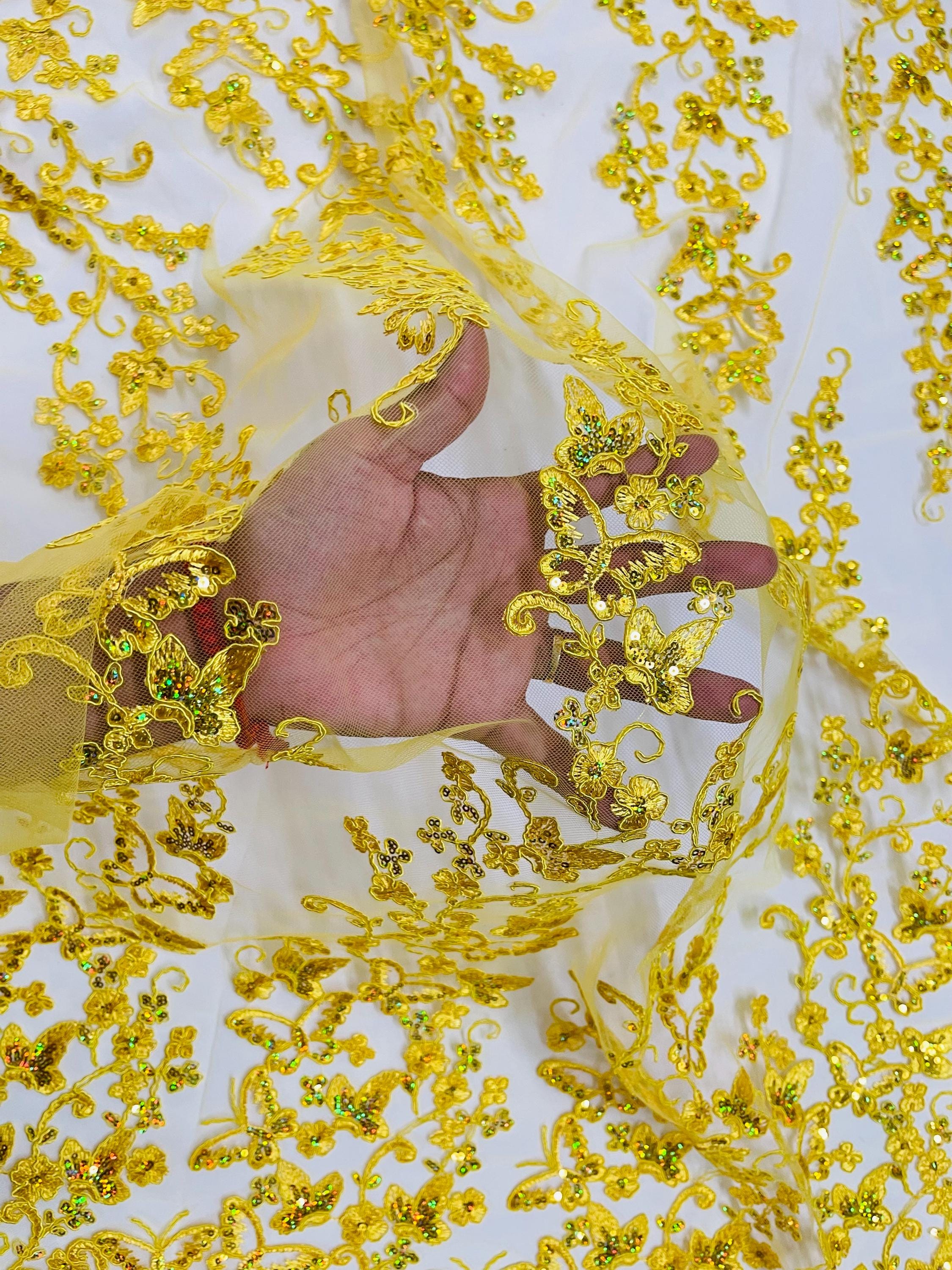 This beautiful fabric is embroider on a 2 way stretch mesh. The lace stretches on the width. This lace has a beautiful border on both sides of the width and beautifully stitch all over .The lace can be use for dresses, tablecloths, runners, decoration, skirts, jackets, nightgowns, prom dresses and much more, Wedding dress, evening gown, formal wear, dresses tops, skirts, costumes, crafts, etc.
