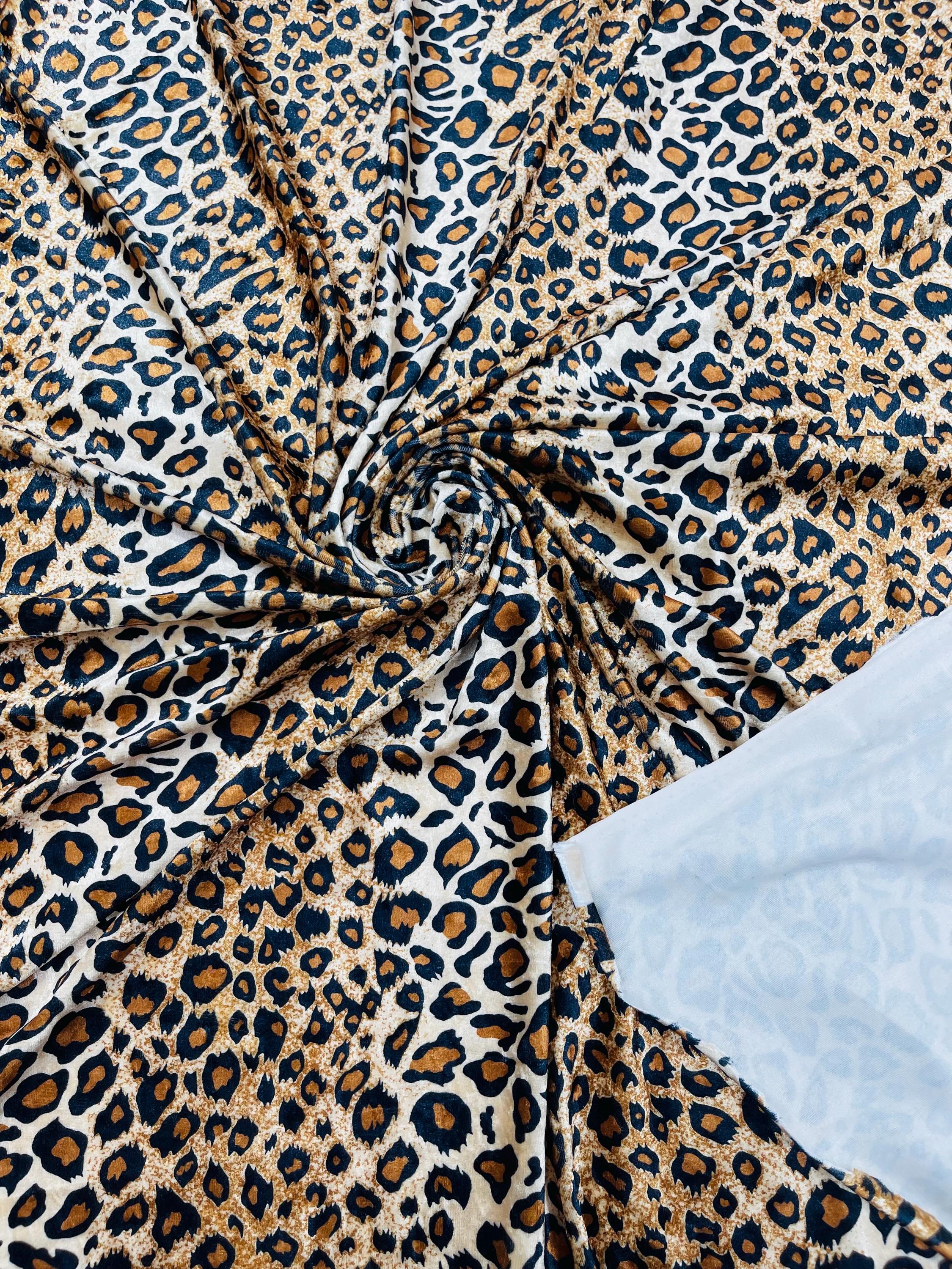 Leopard Print 2 Way Stretch Velvet Fabric, Brown Gold Black | 58"/60" | By The Yard