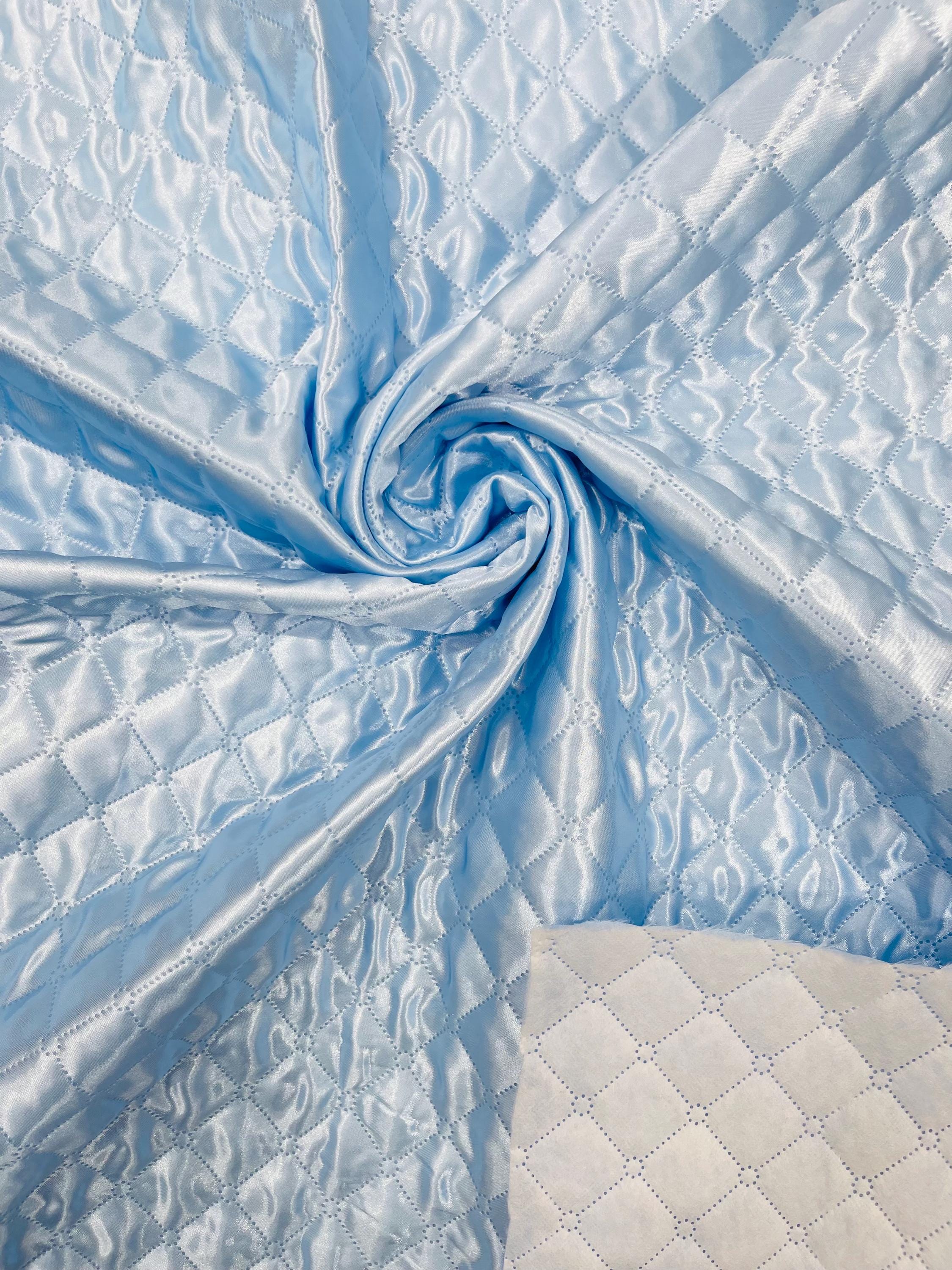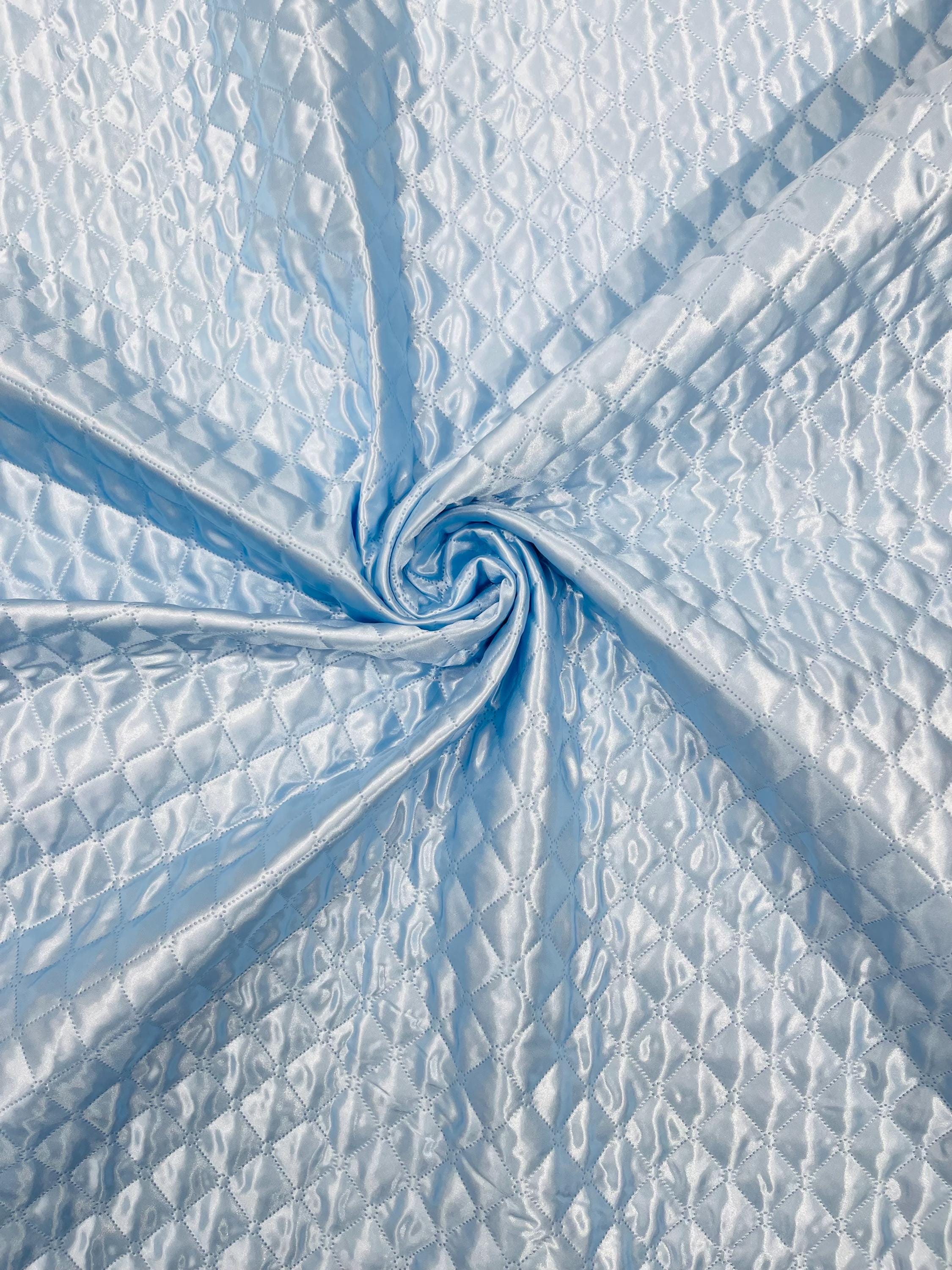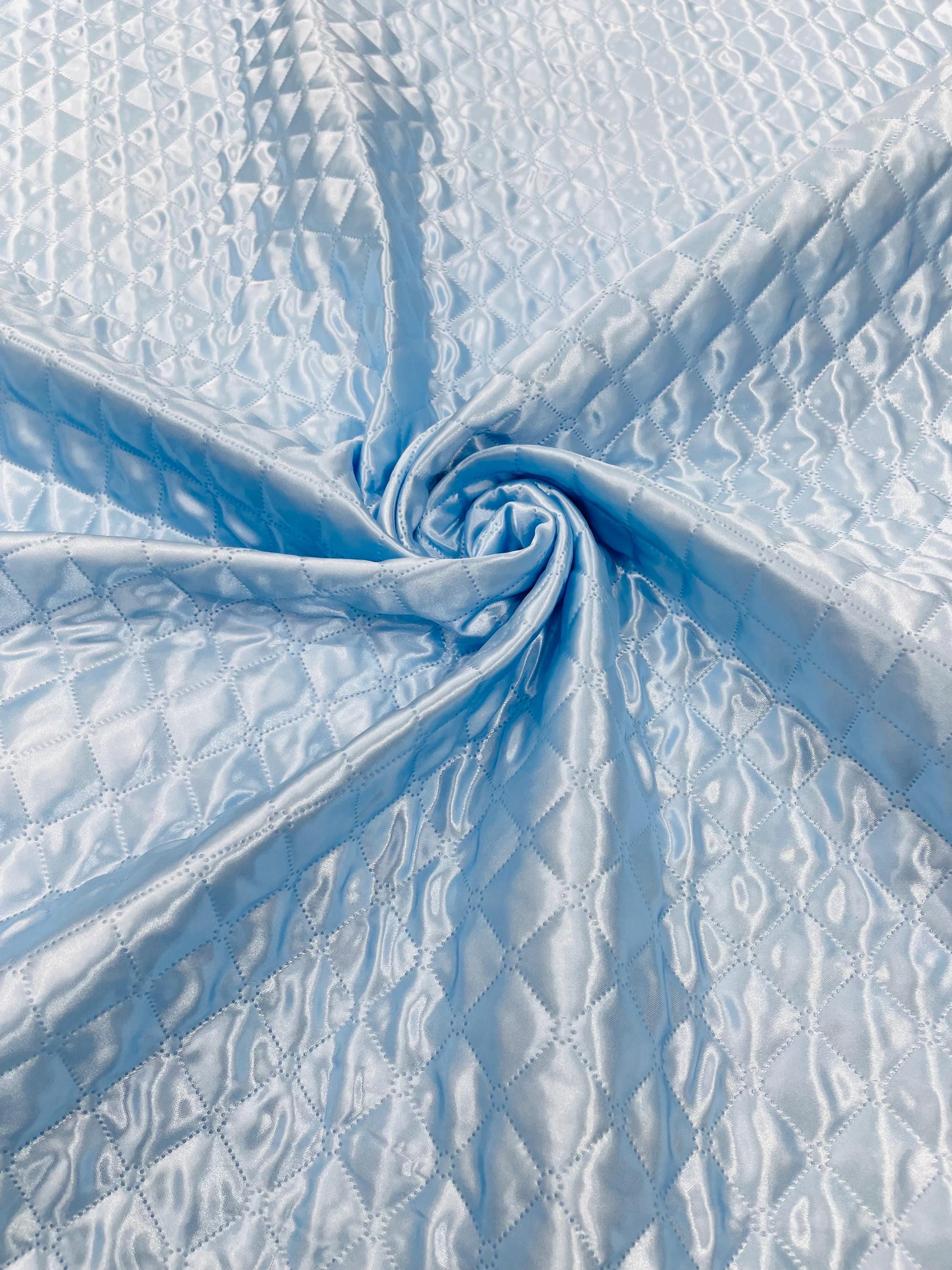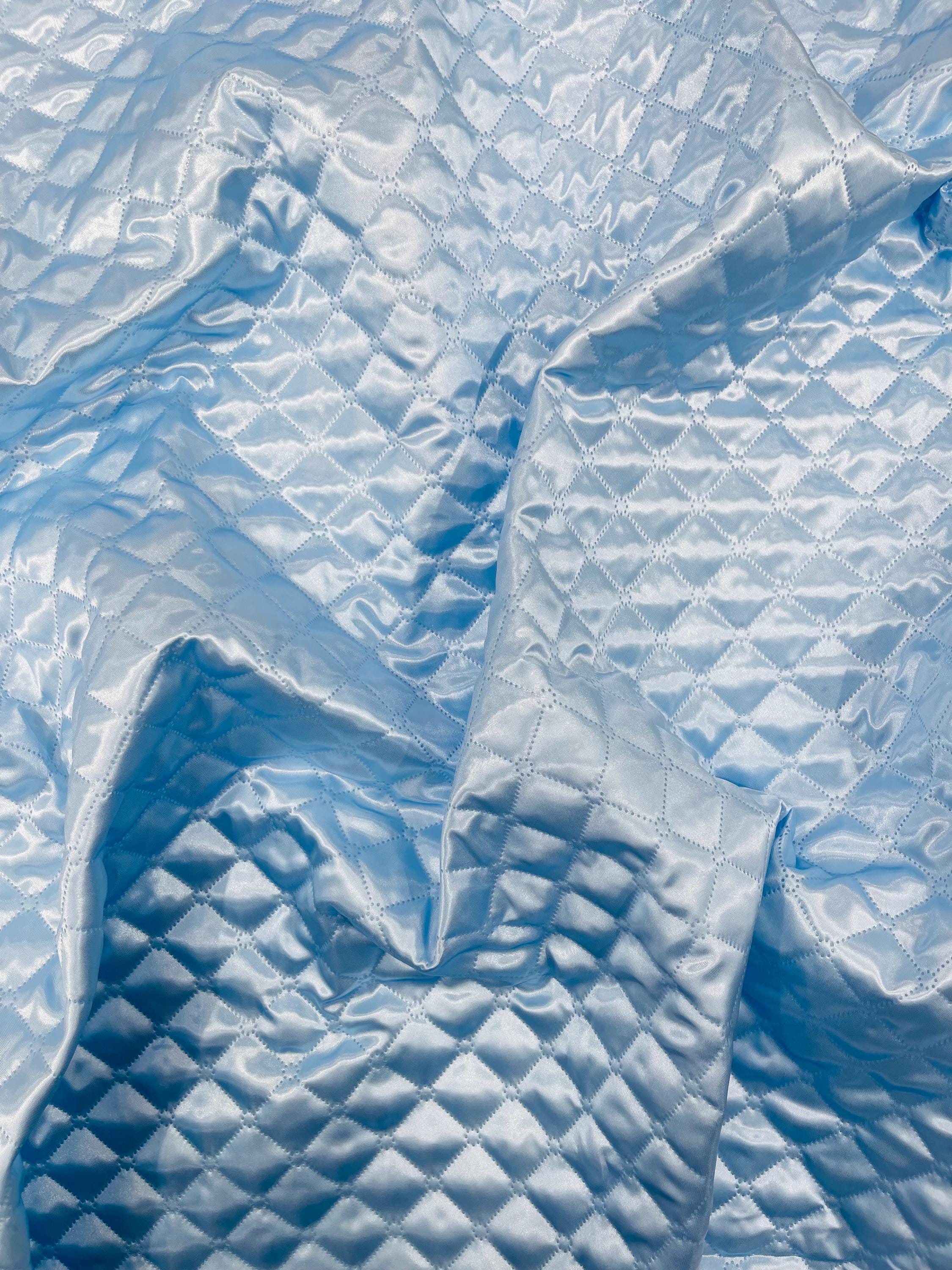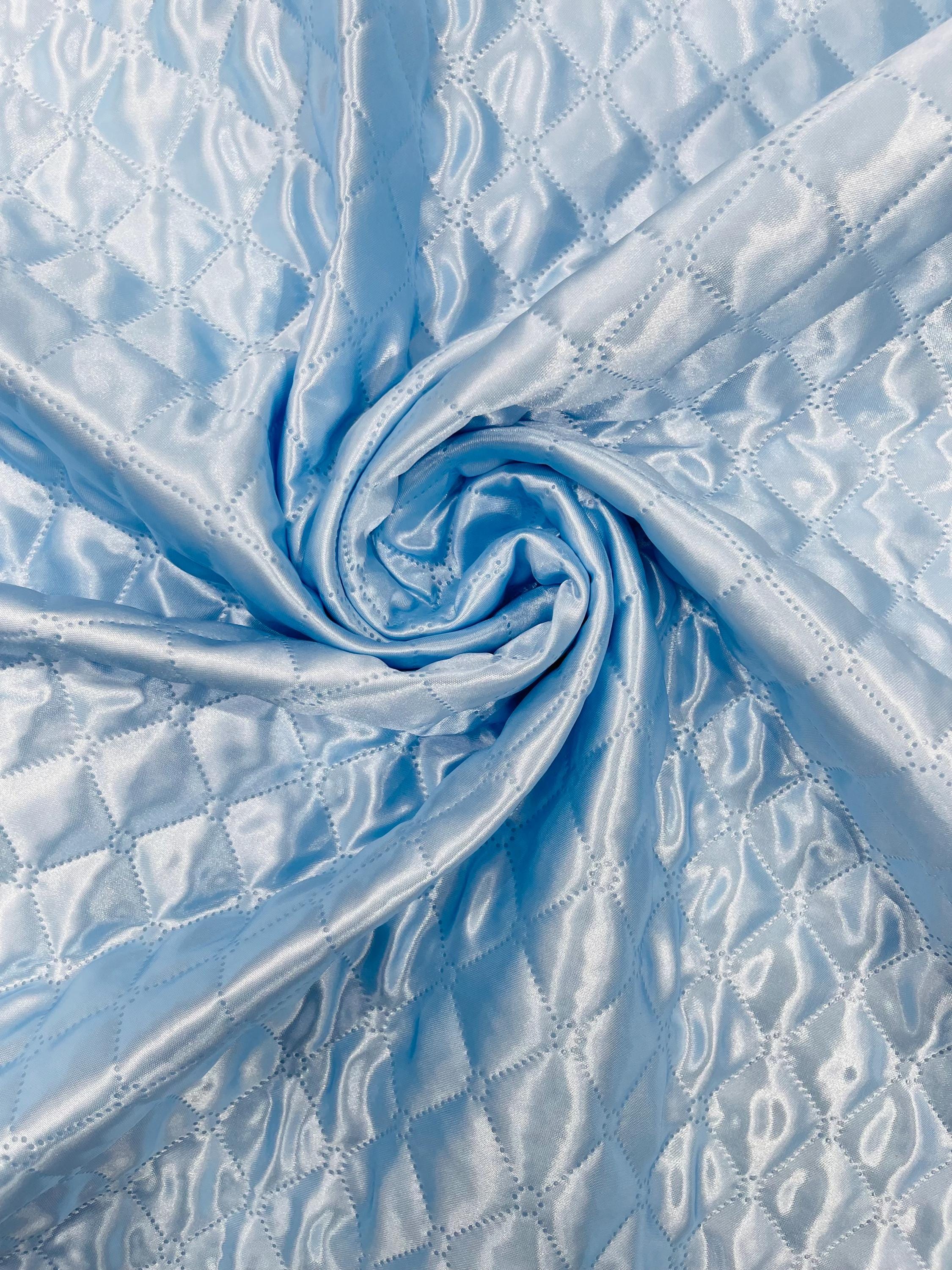Baby Blue Quilted Polyester Fabric: Diamond Pattern, 60" Wide, Padded Lining