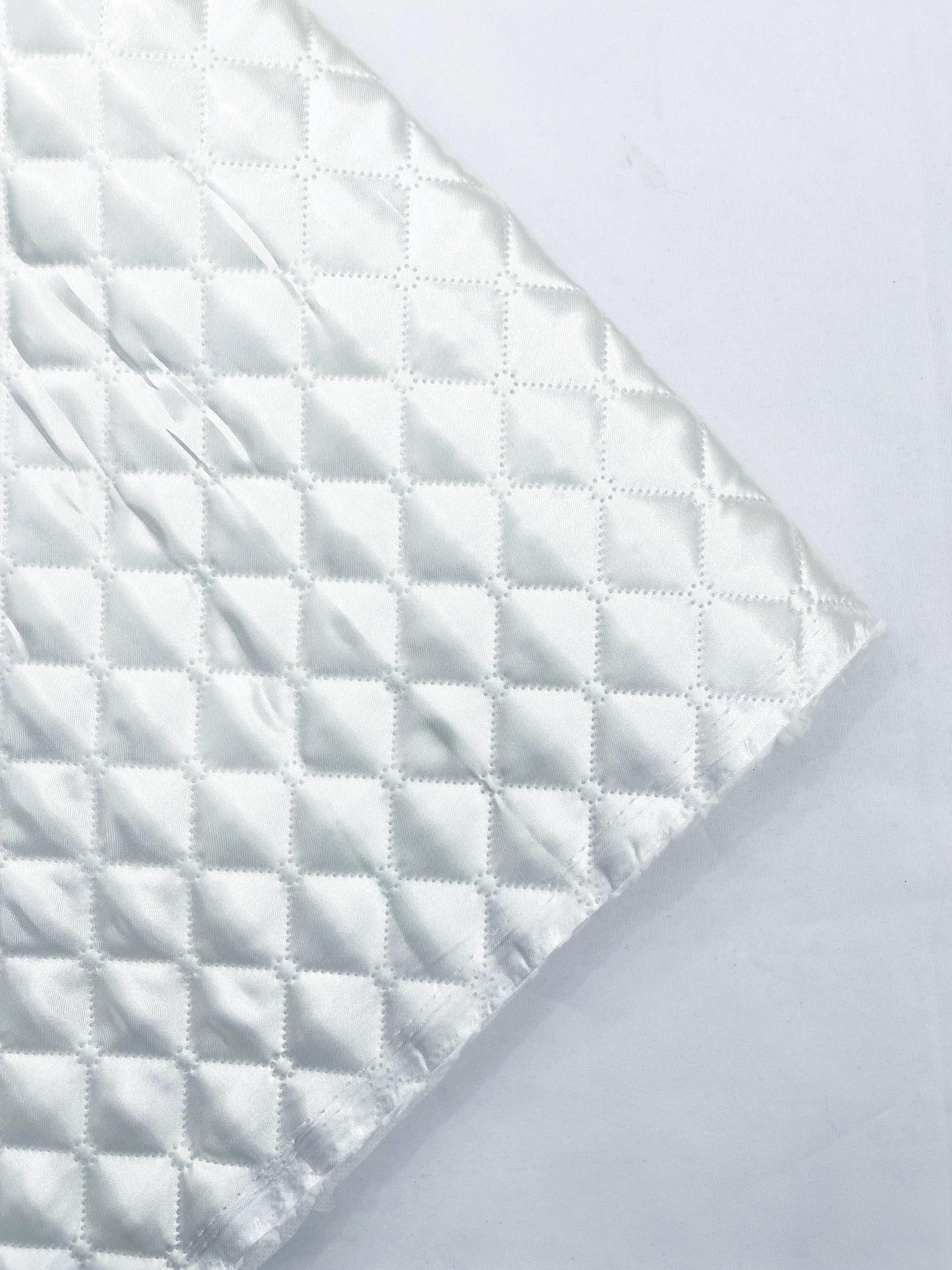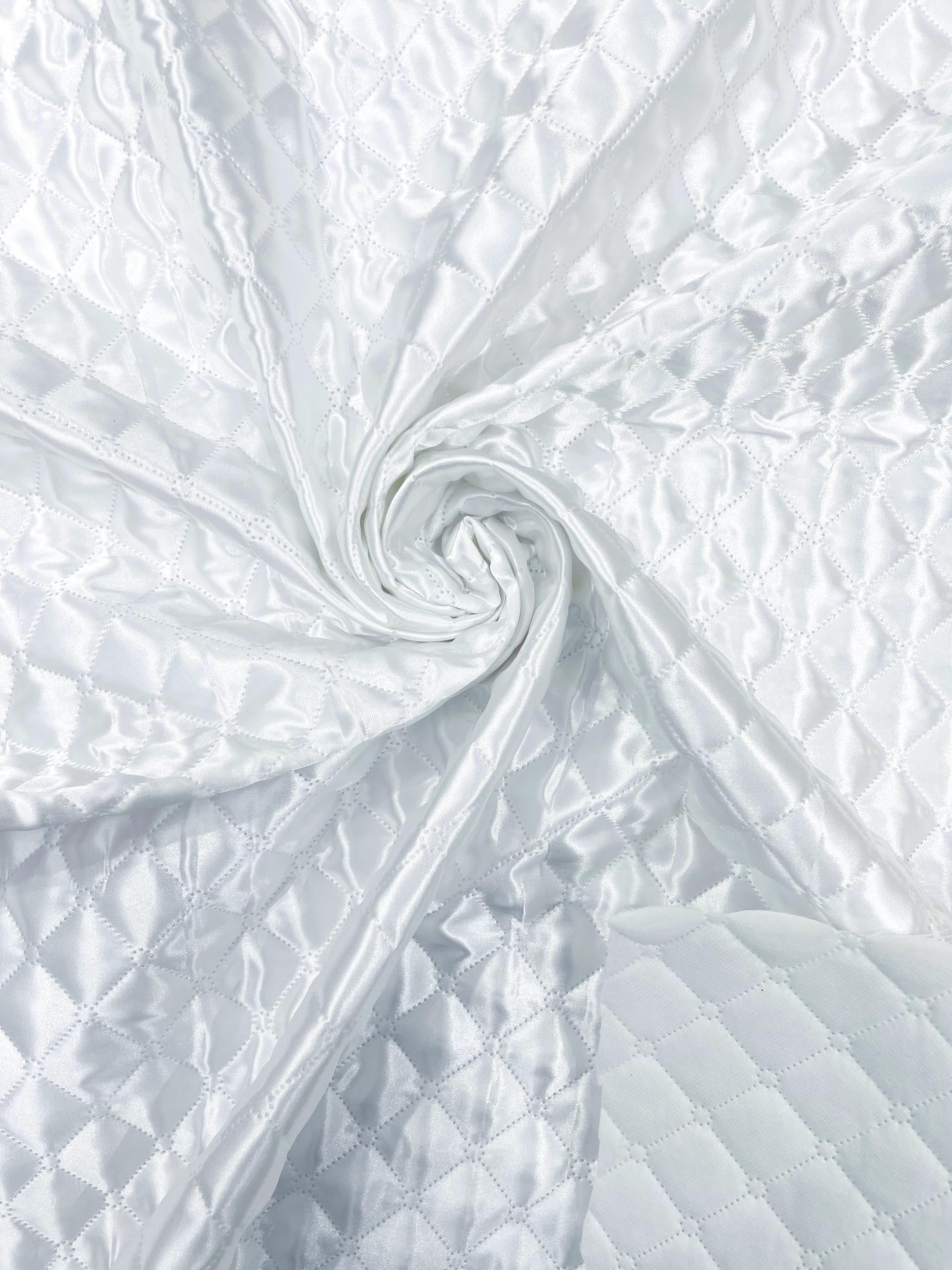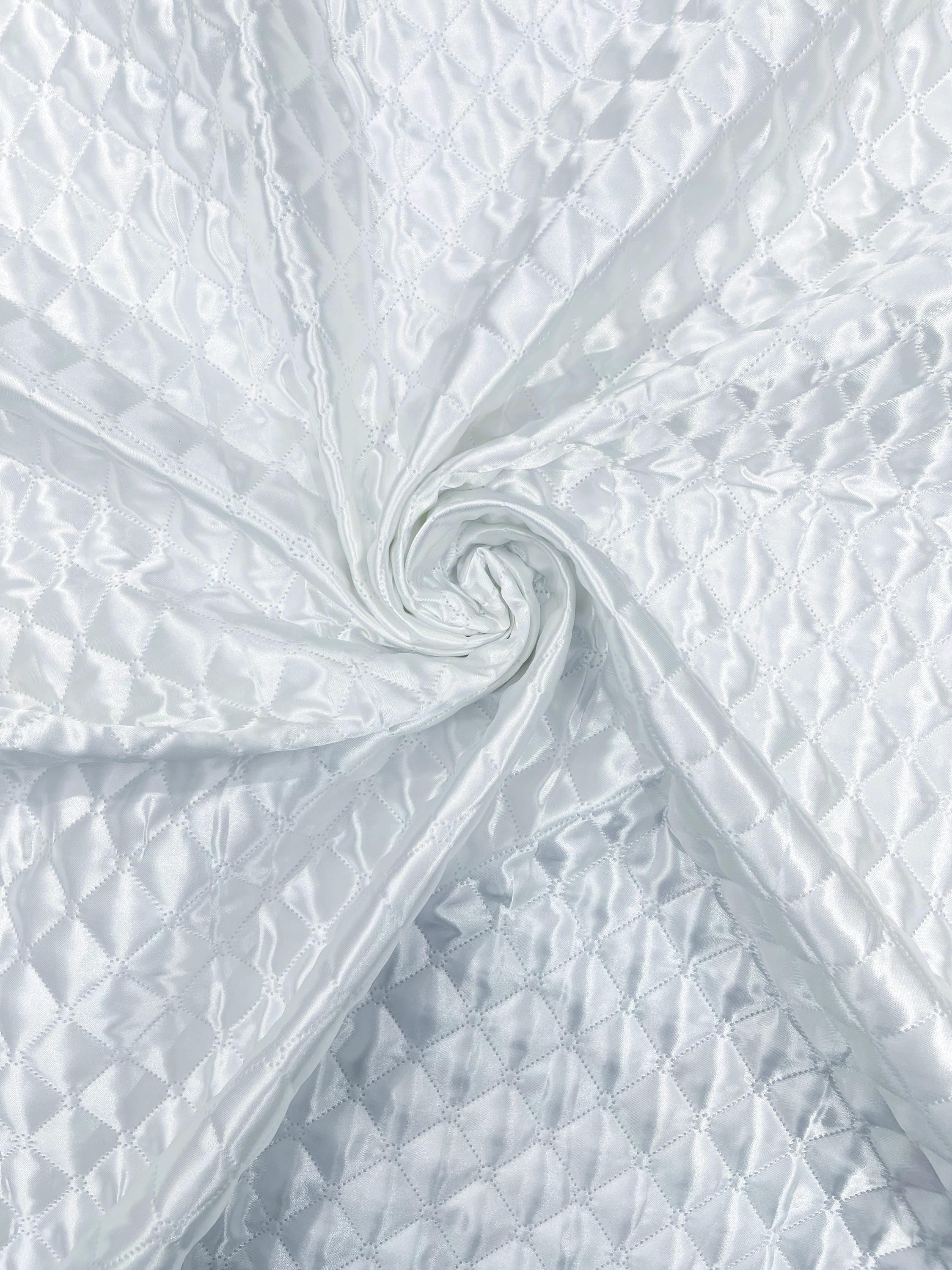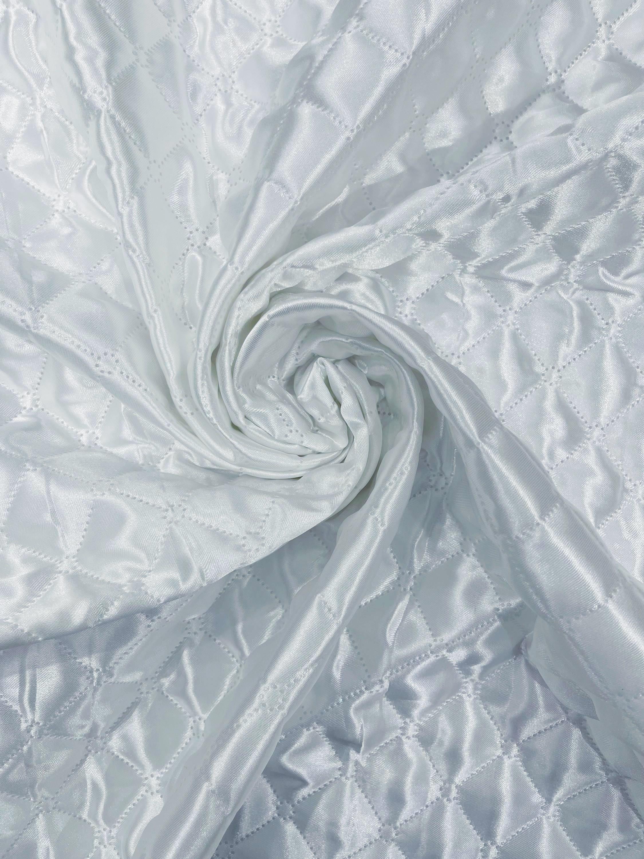 White Quilted Polyester Fabric: Diamond Pattern, 60" Wide, Padded Lining