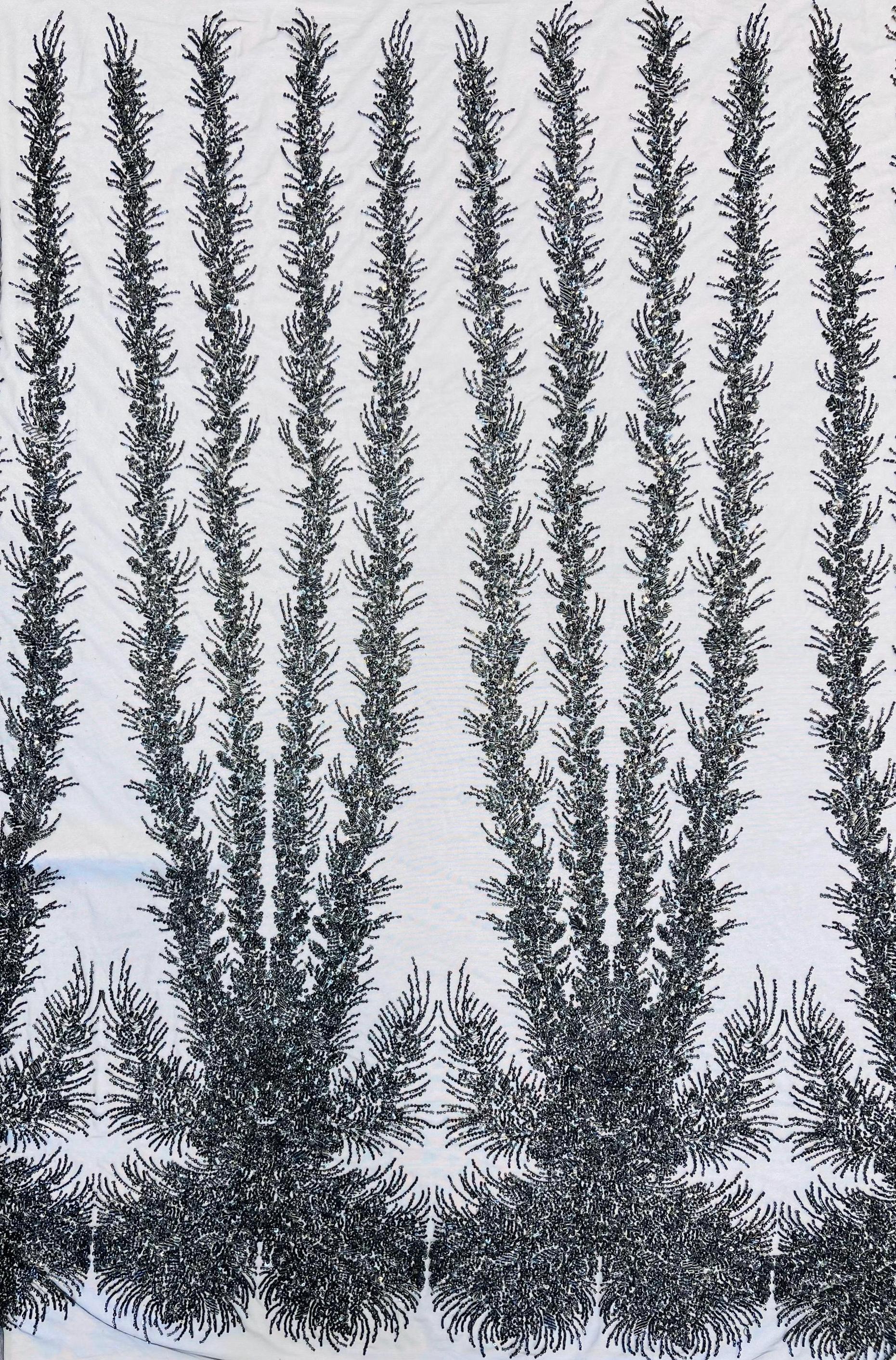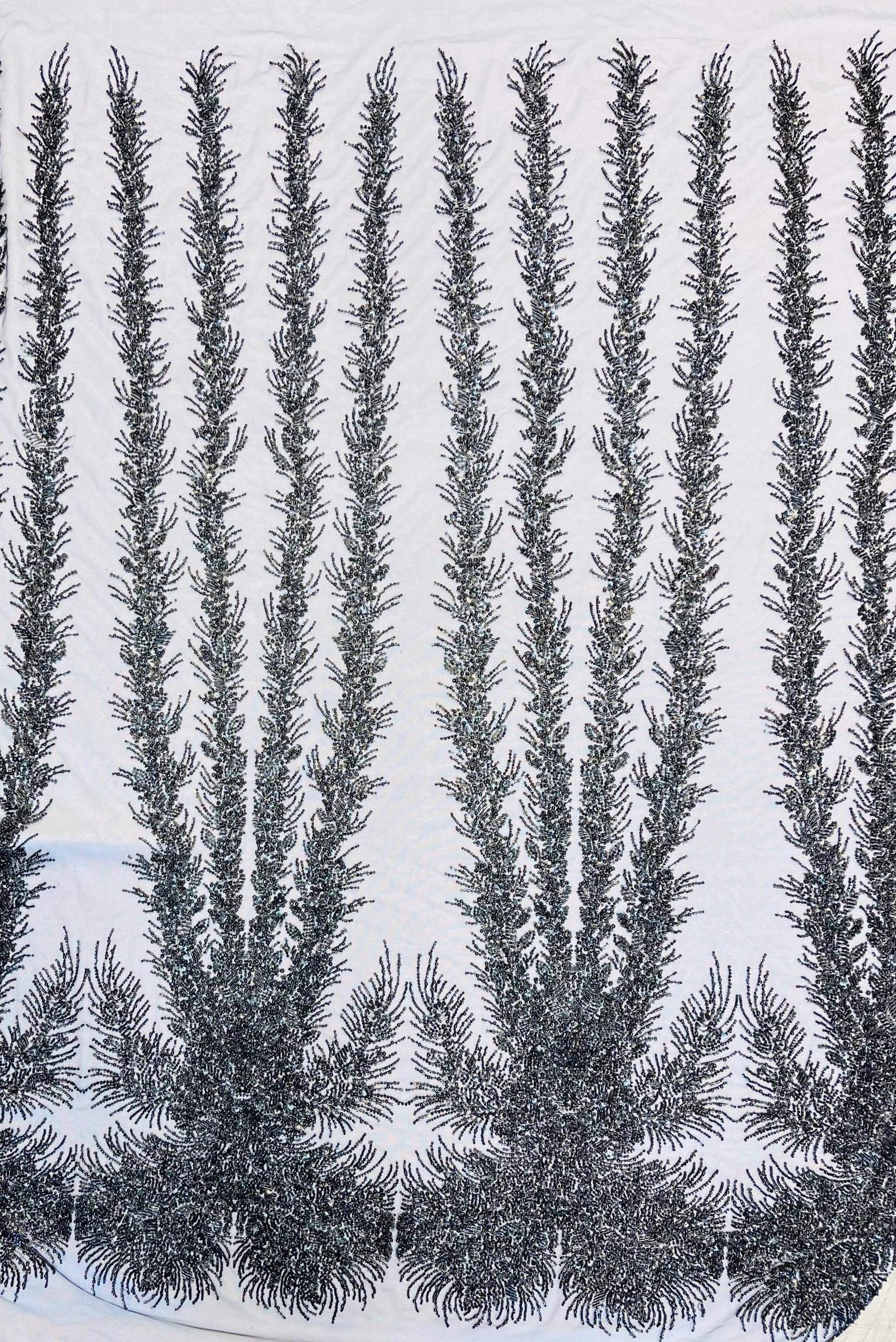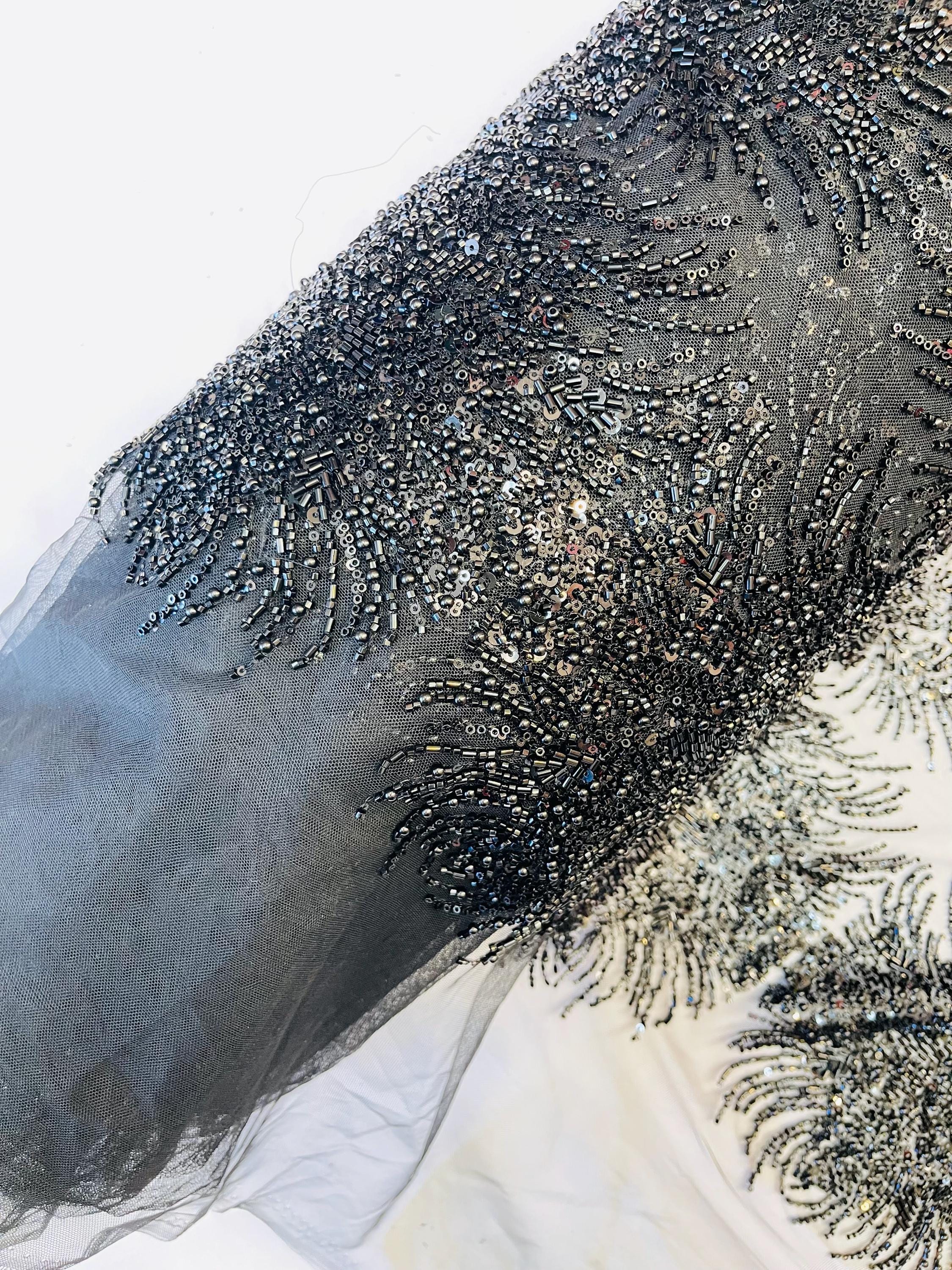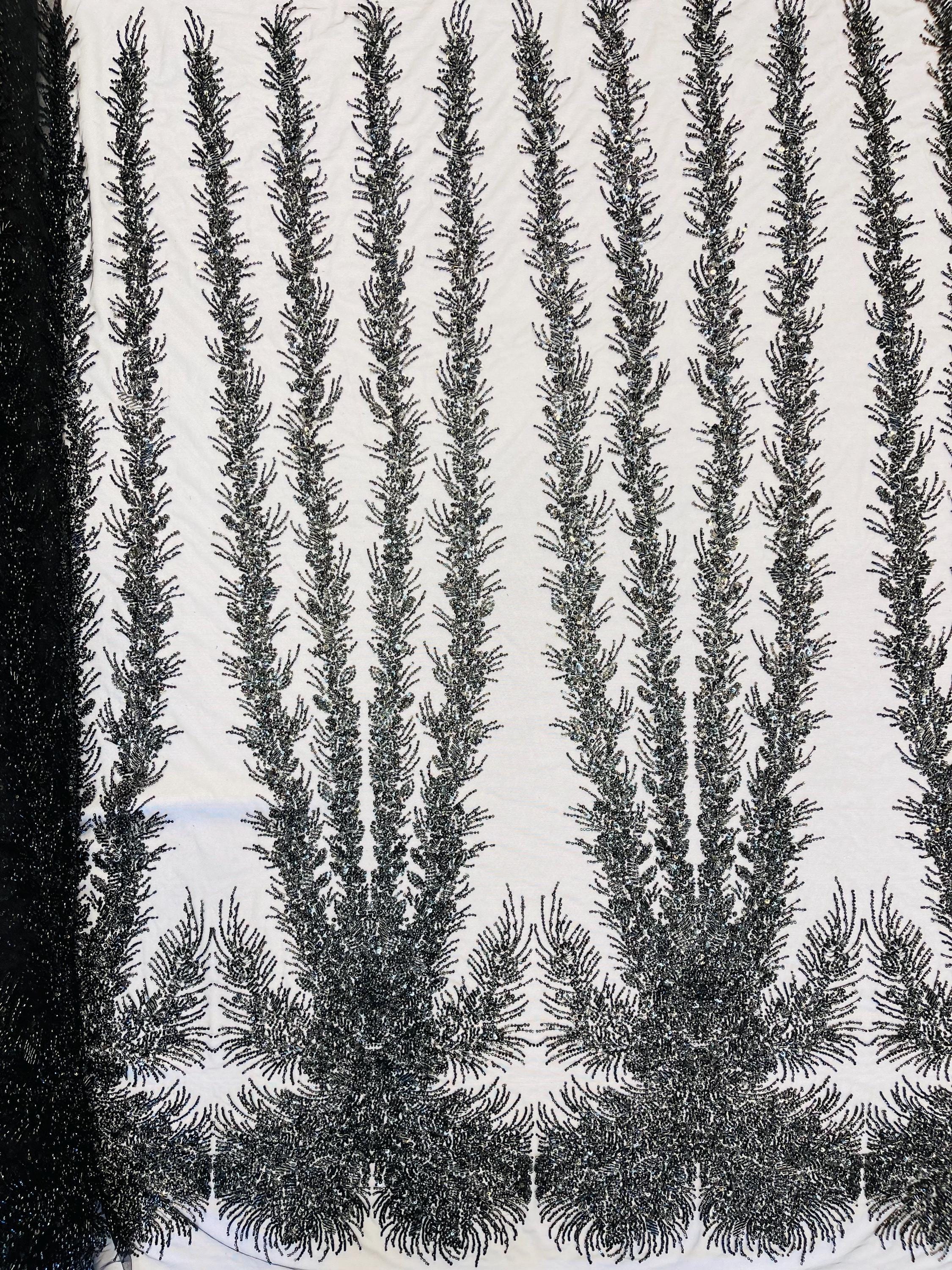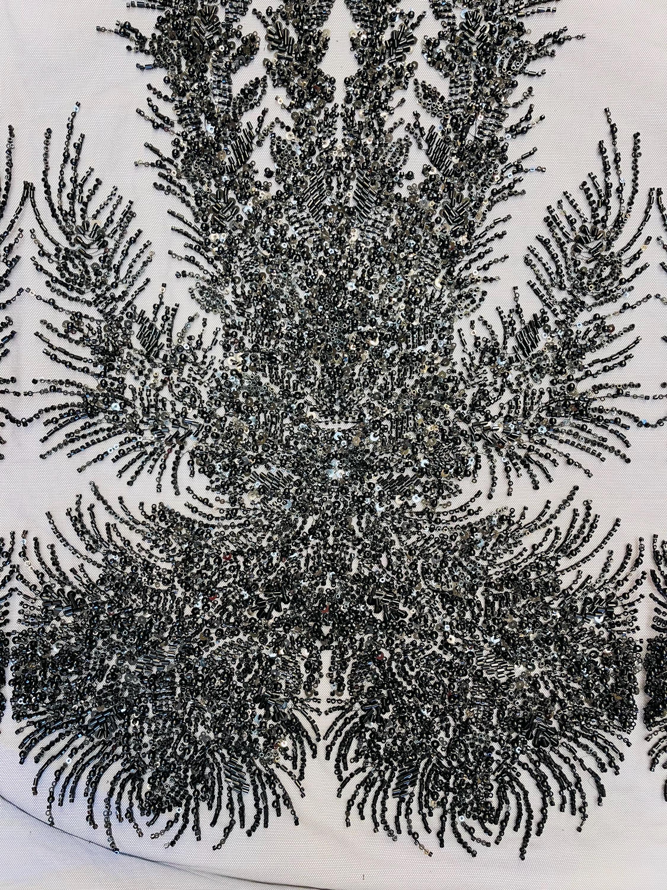 Black Beaded Fabric | Fashion Pattern With Pearls Beads and Sequin, Bridal beaded Prom Dress