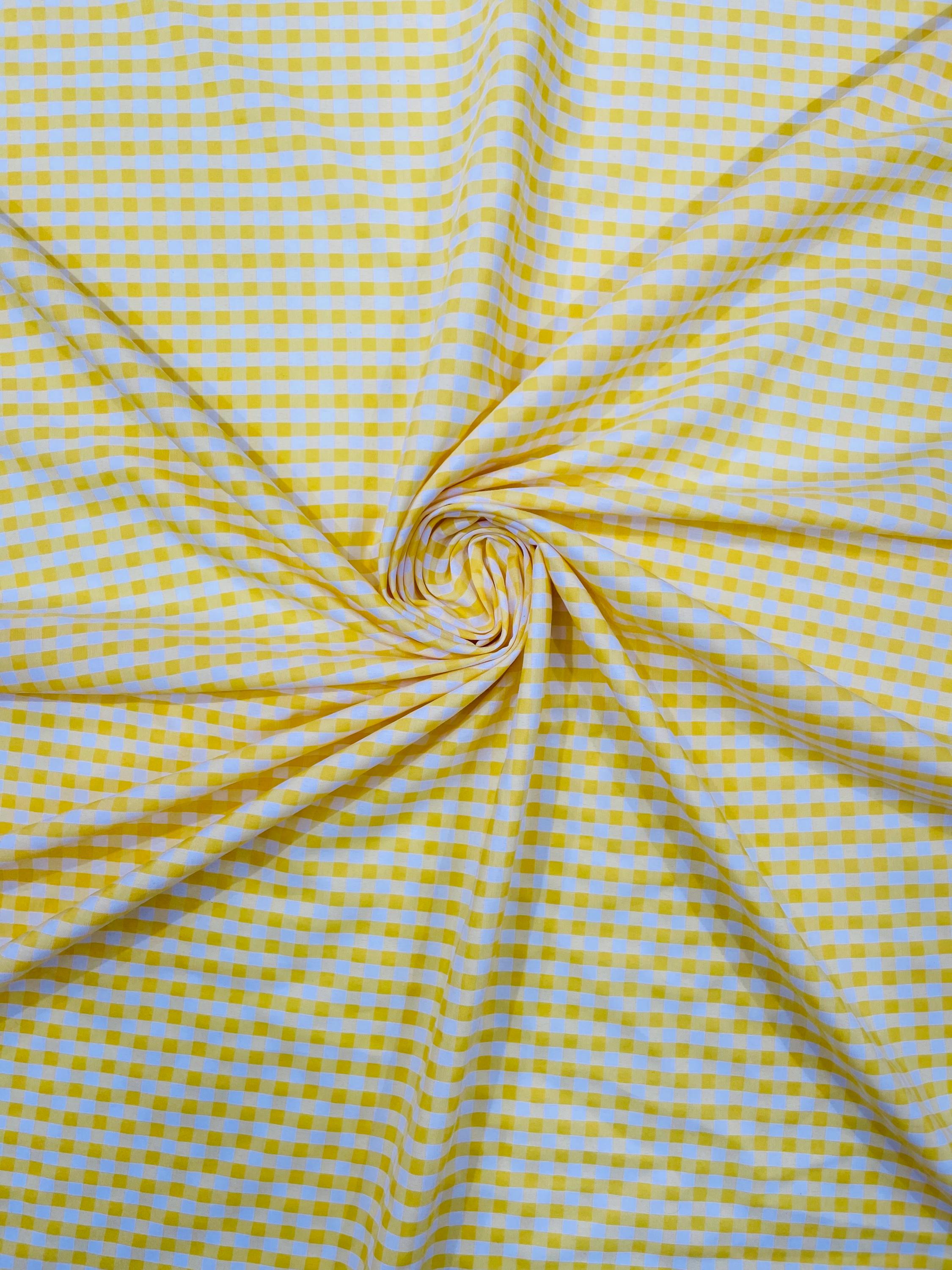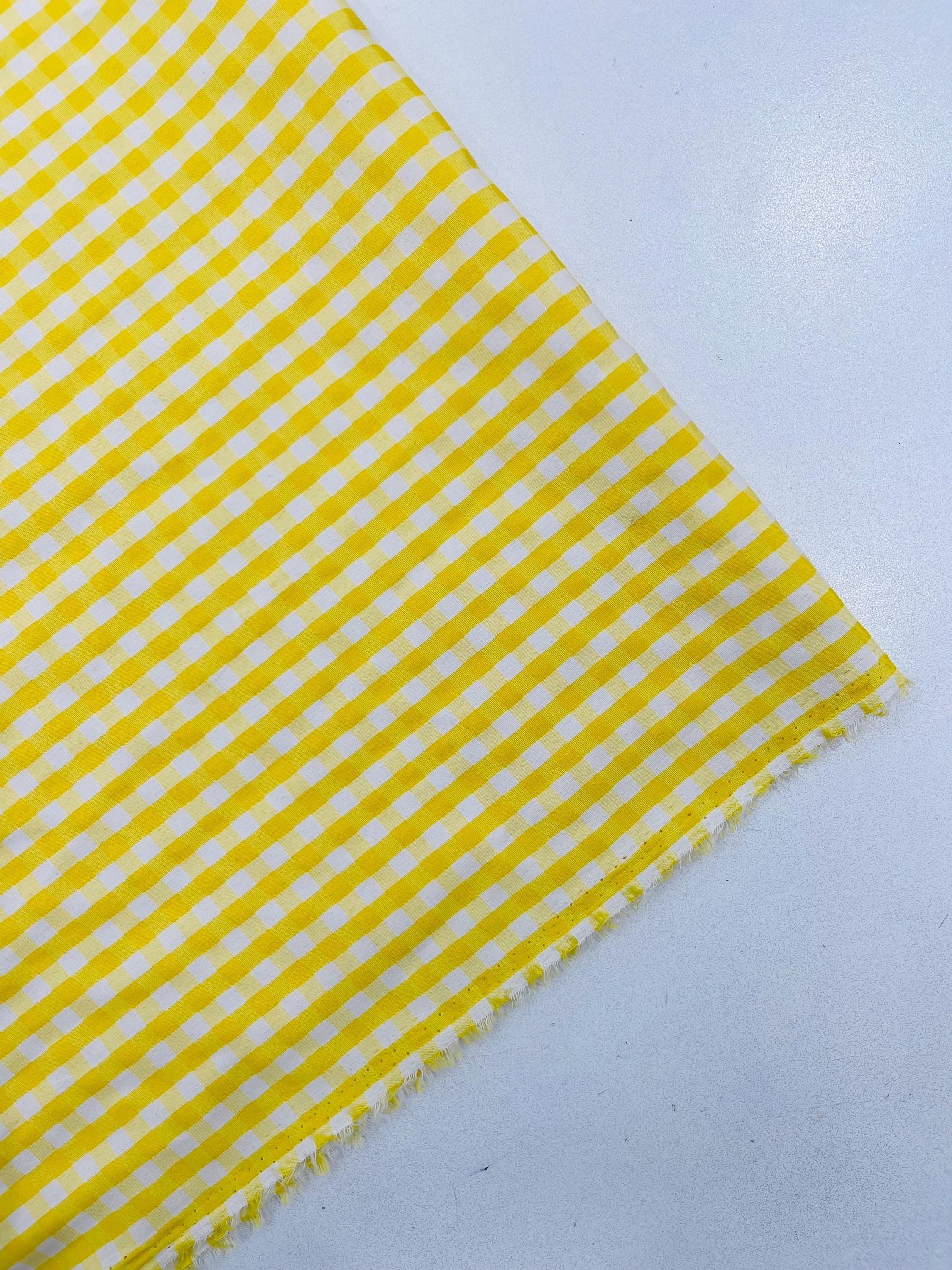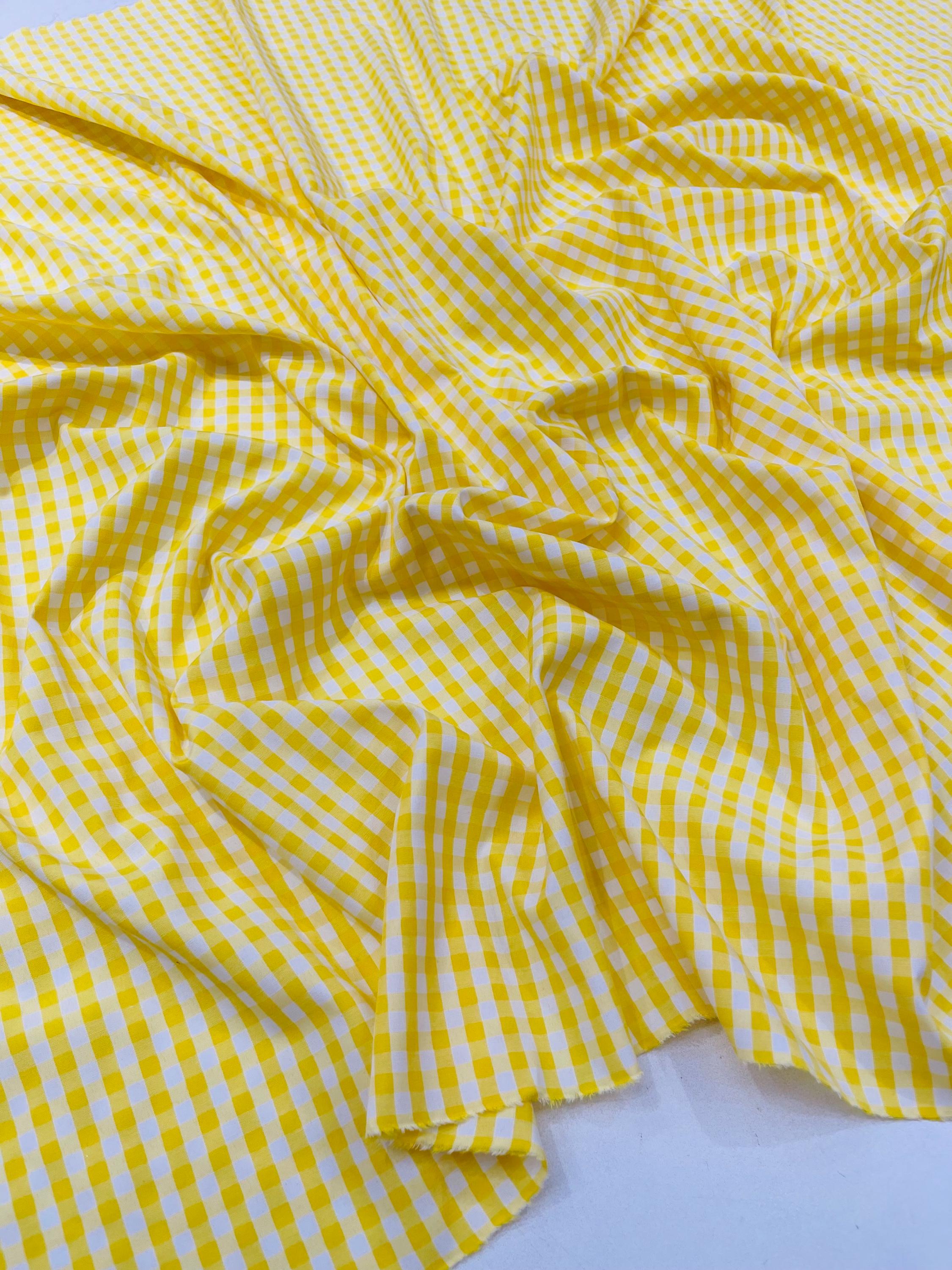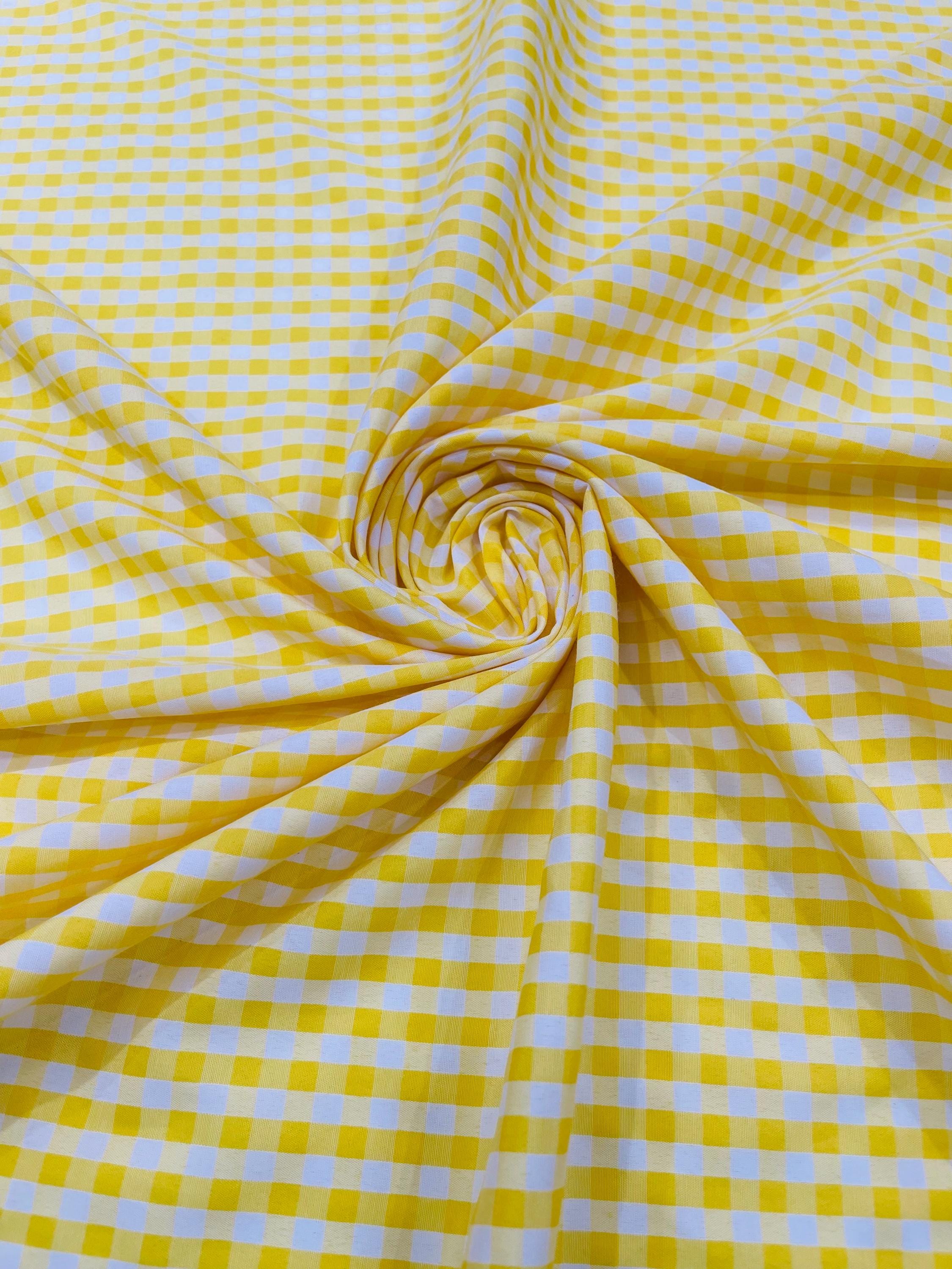 Yellow & White Gingham Poly Cotton Fabric by Yard 1/4” Squares, Checkered Fabric