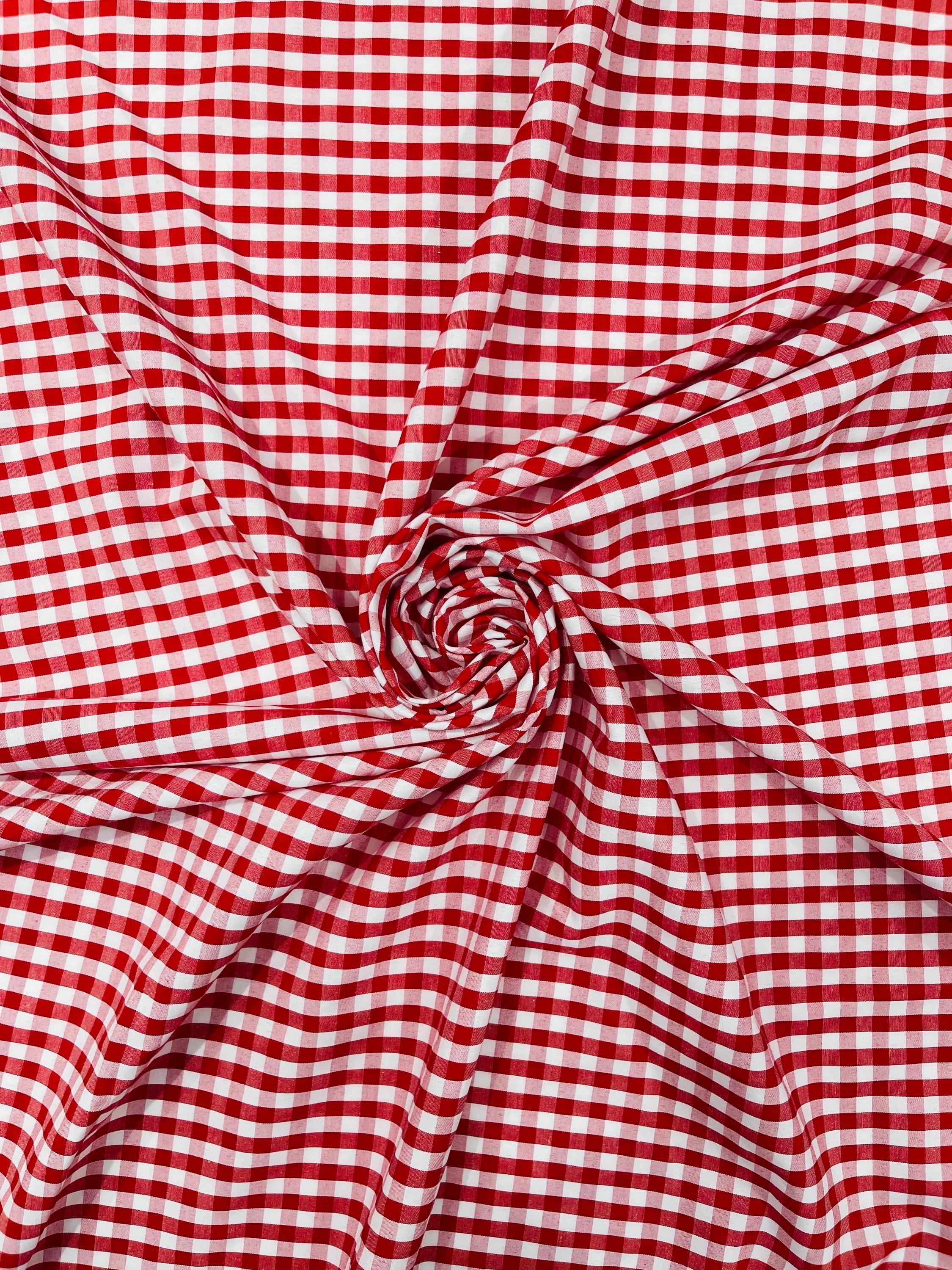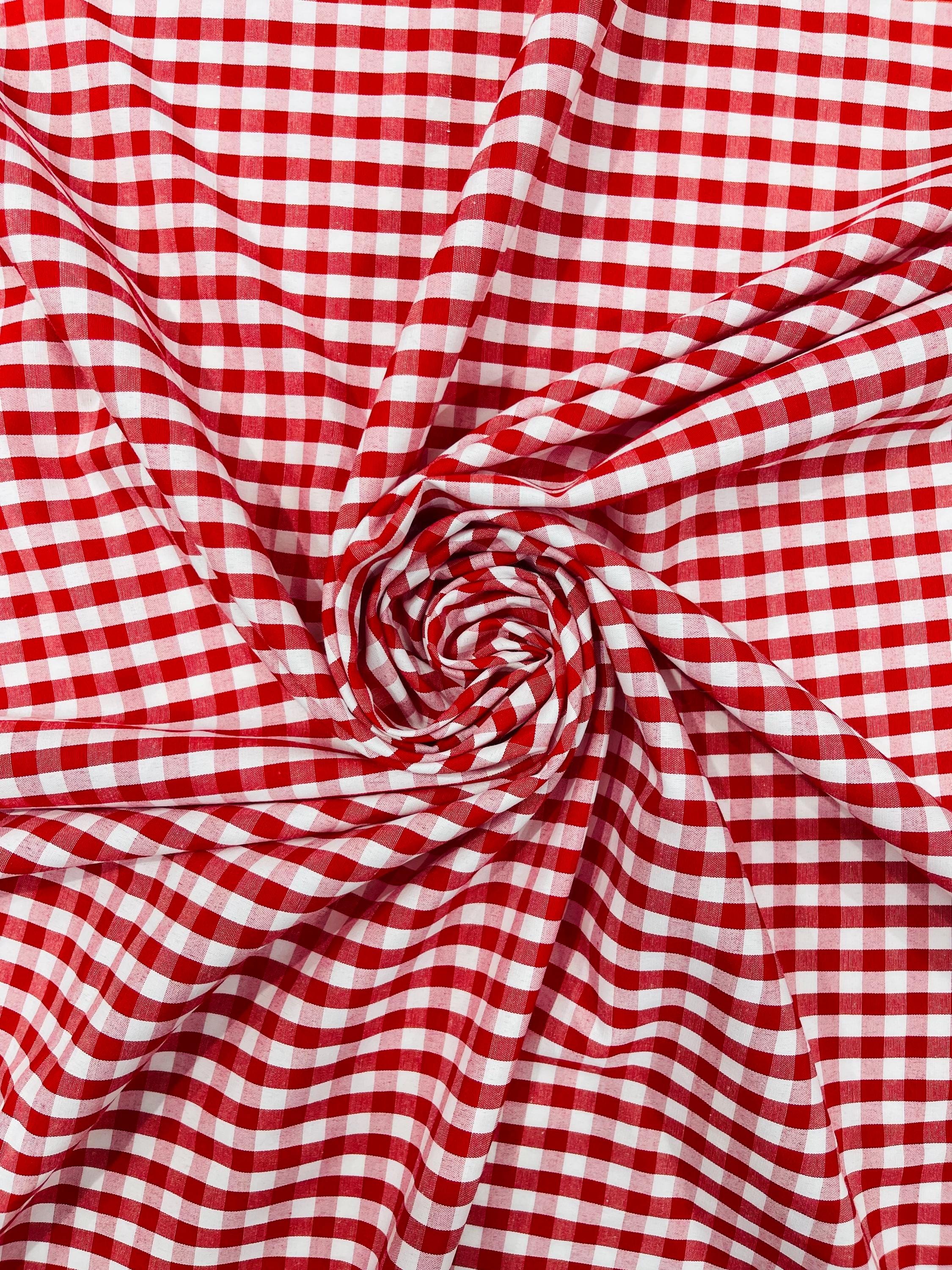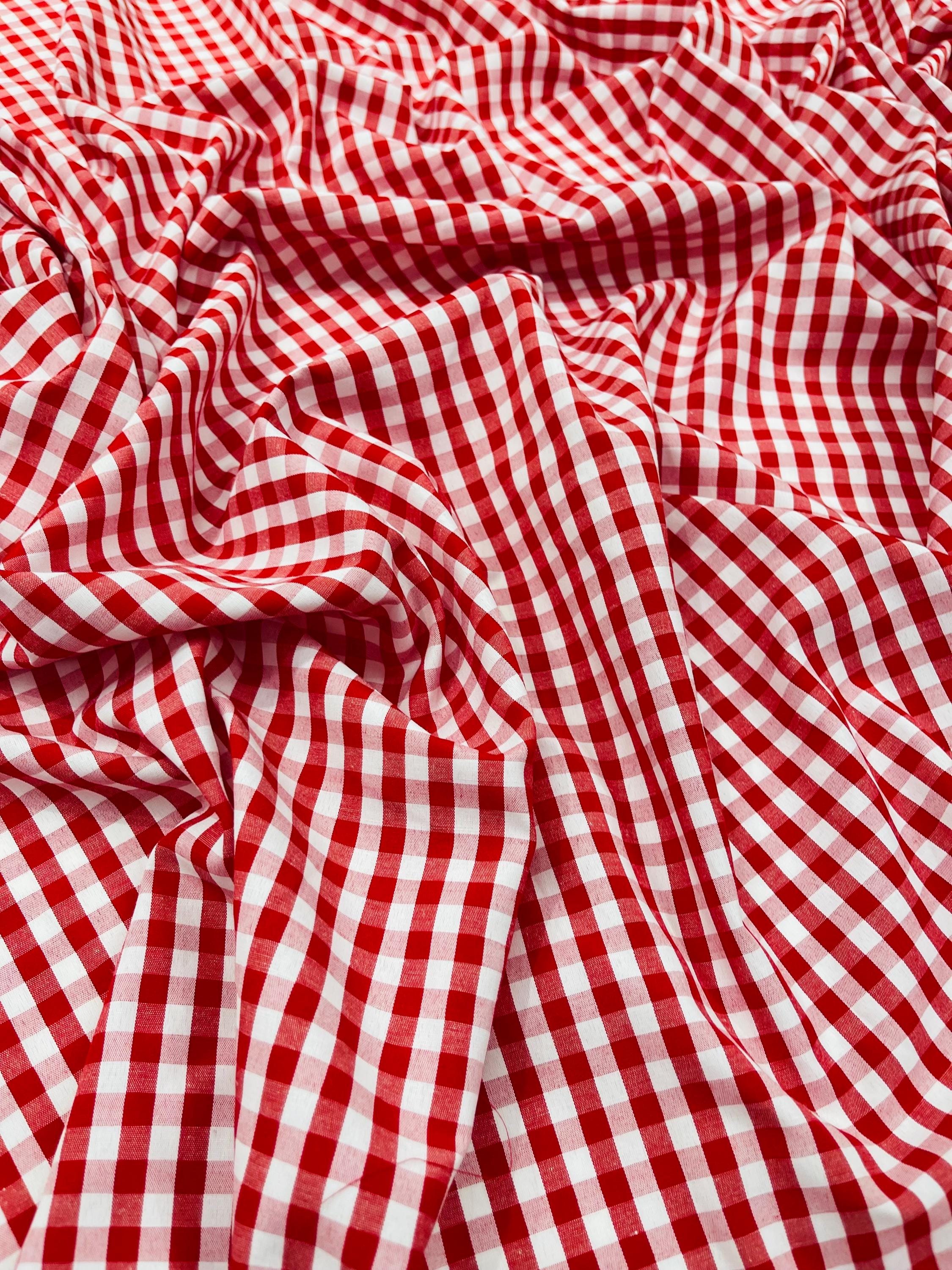 Red & White Gingham Poly Cotton Fabric by Yard 1/4” Squares, Checkered Fabric