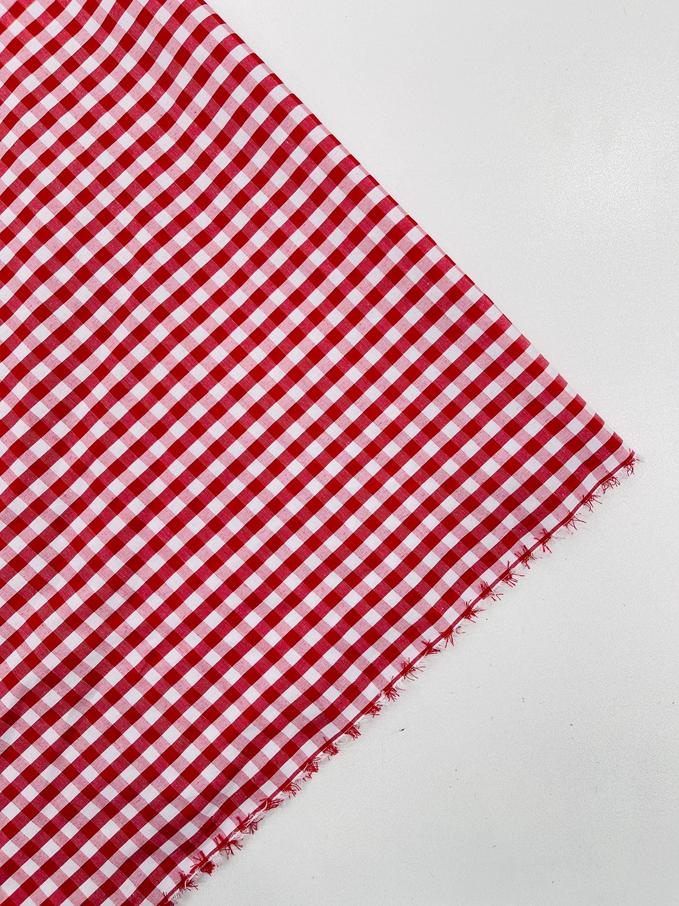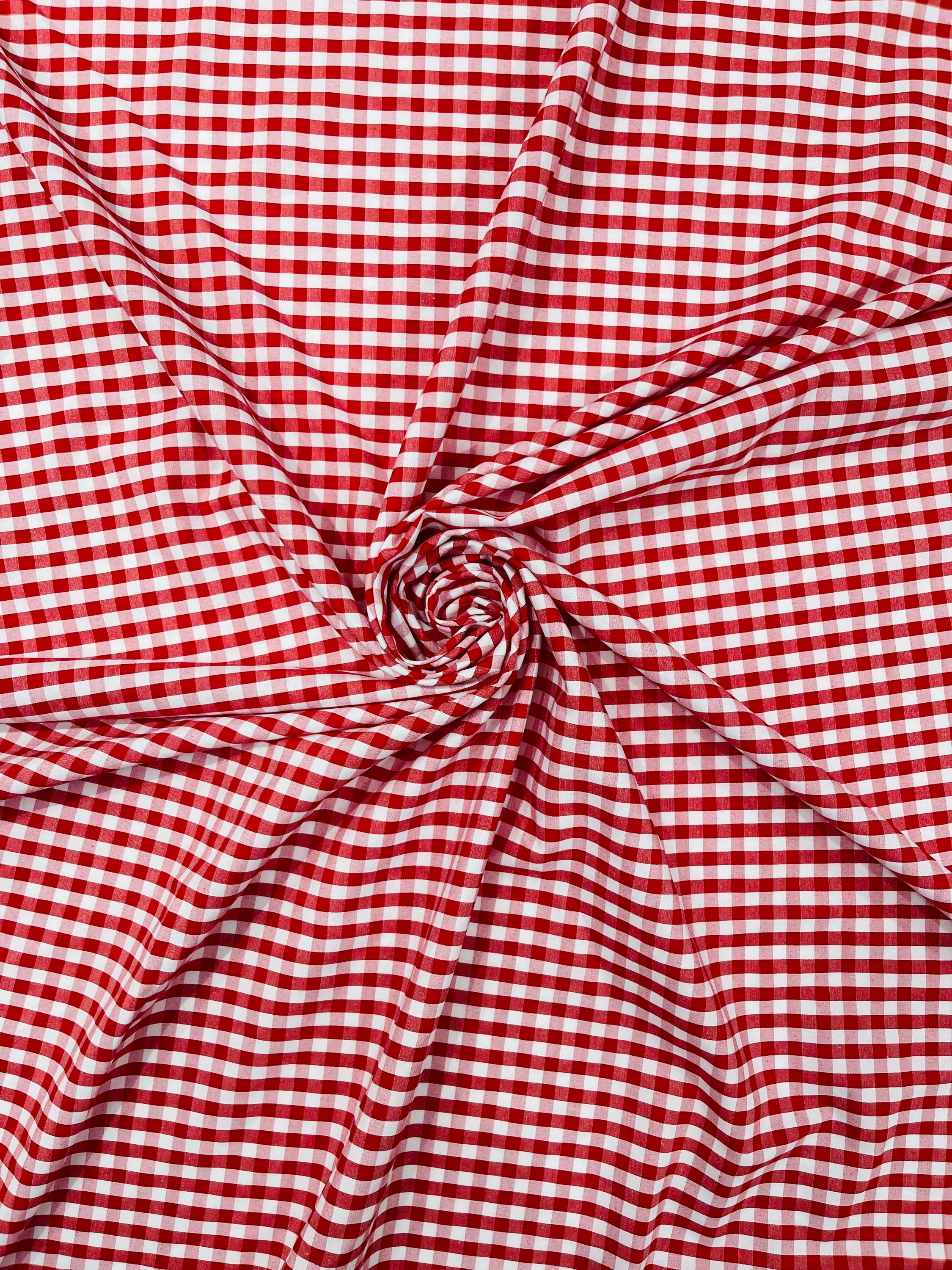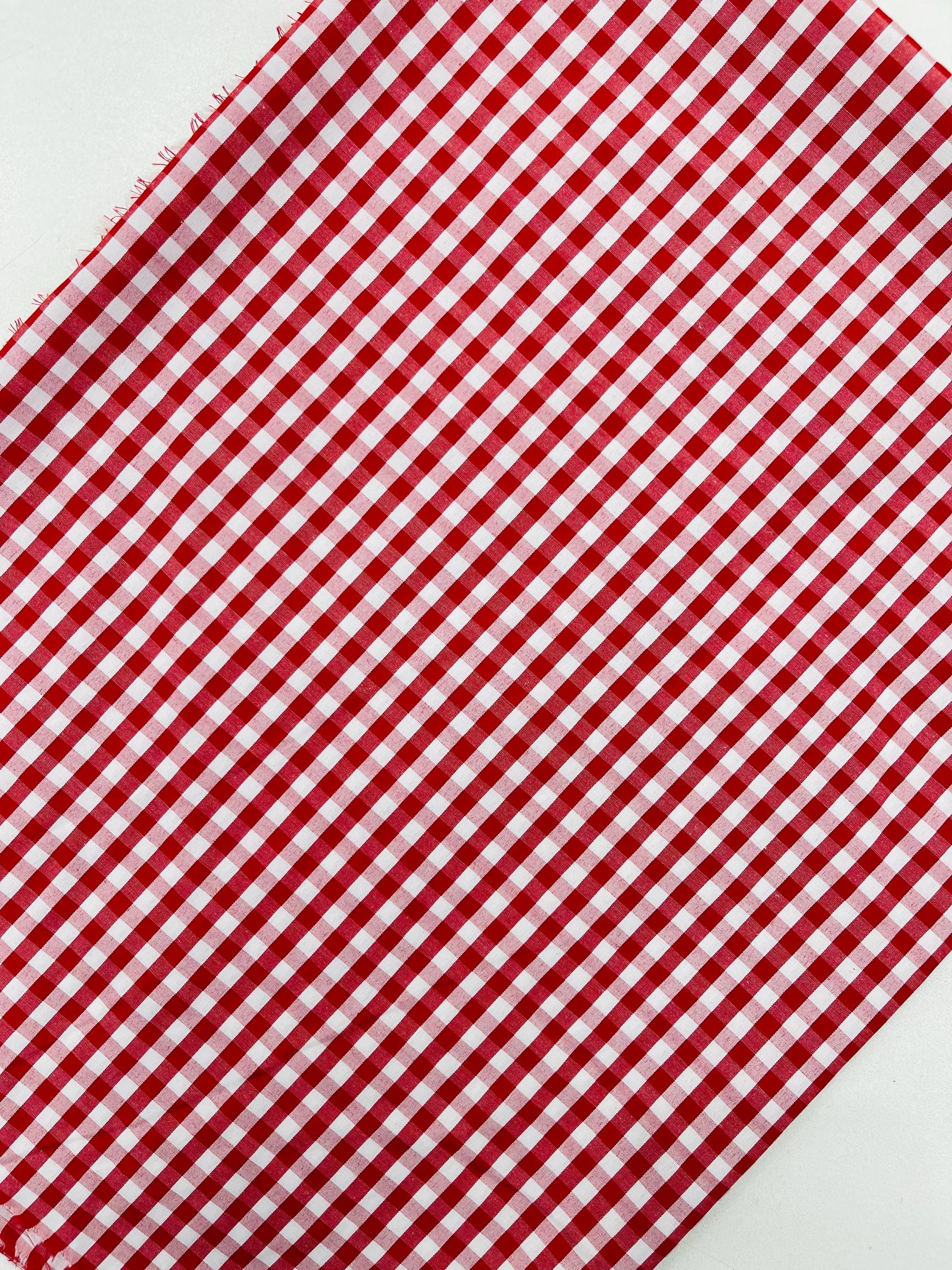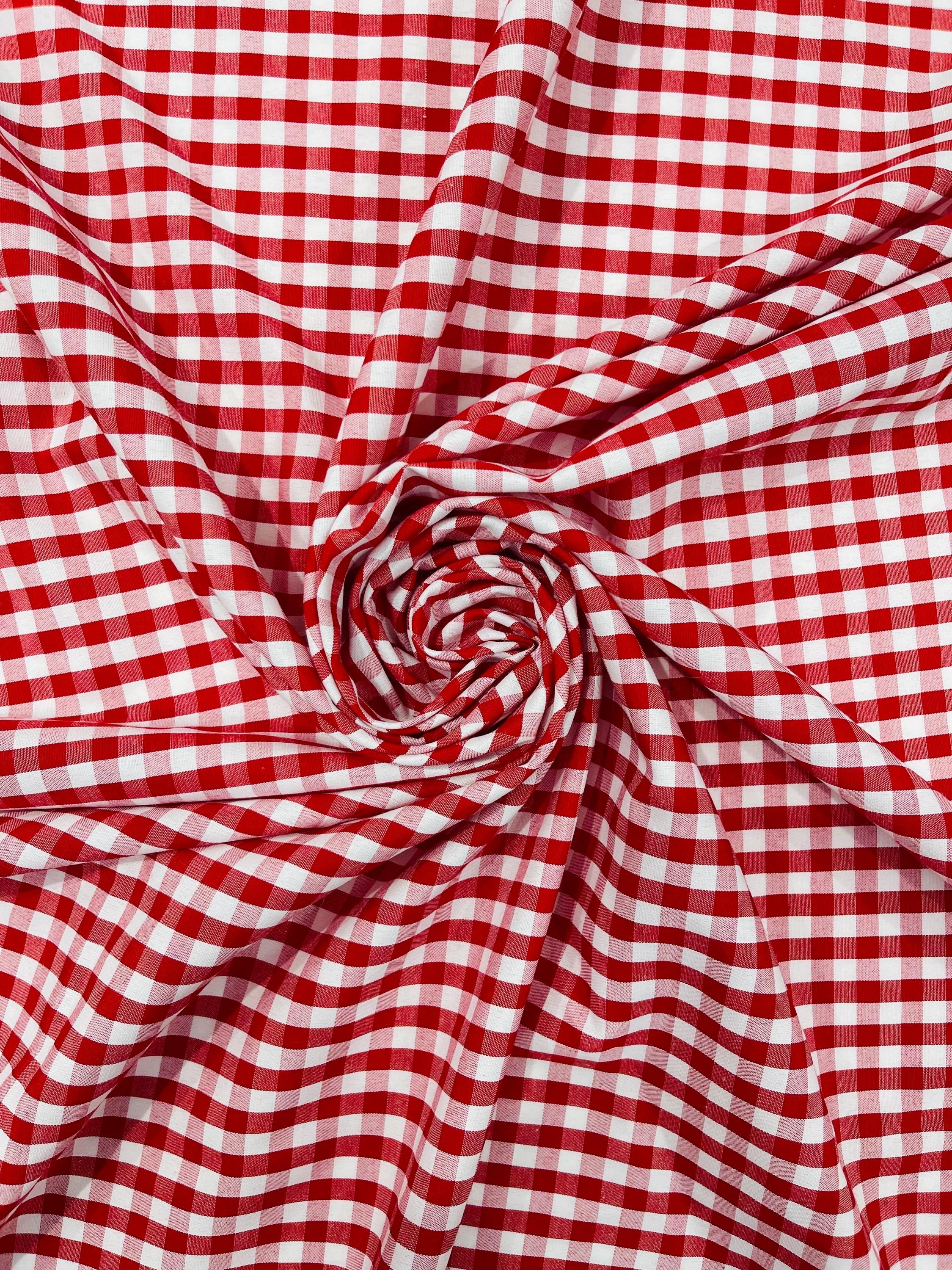 Red & White Gingham Poly Cotton Fabric by Yard 1/4” Squares, Checkered Fabric