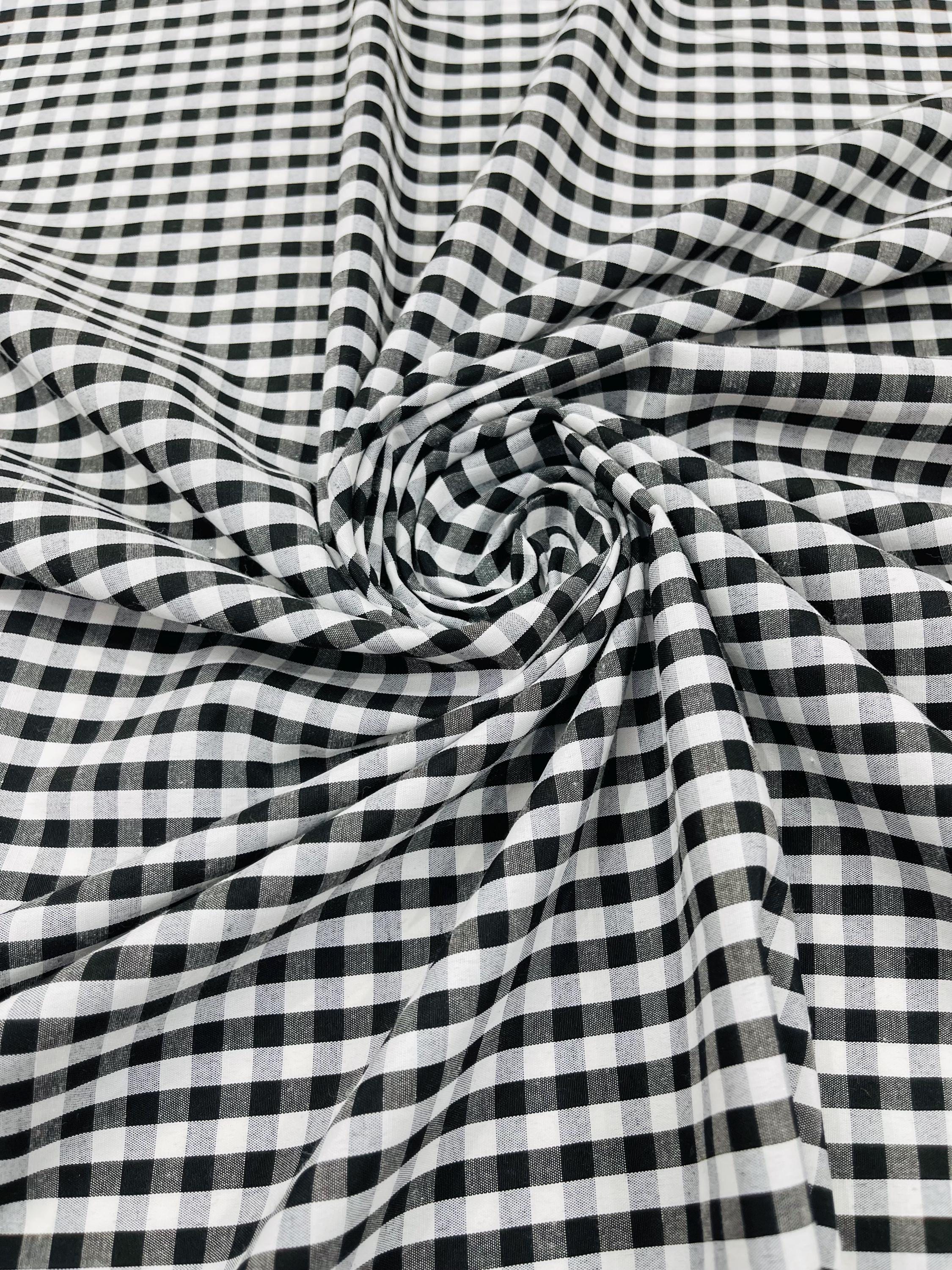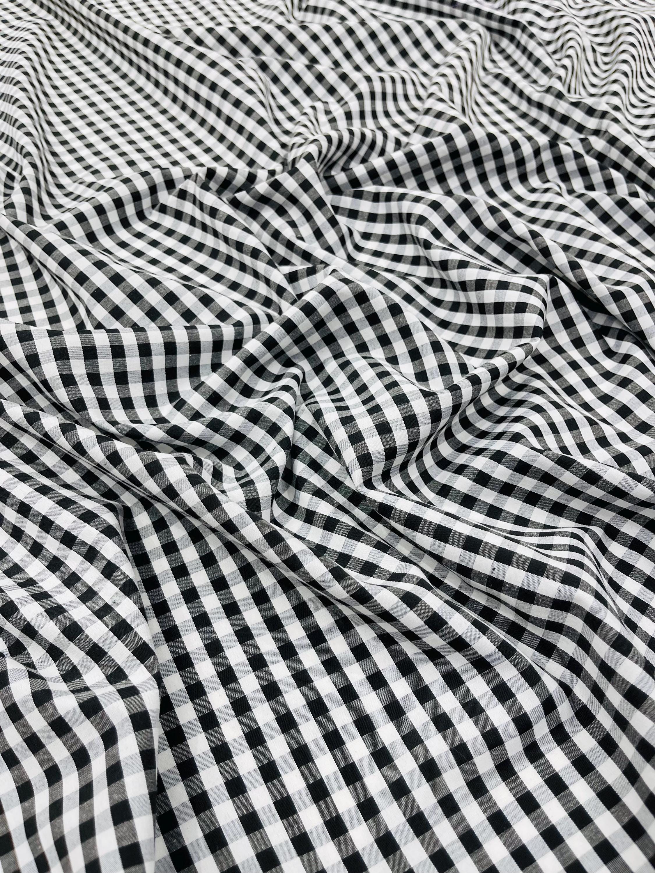 Black & White Gingham Poly Cotton Fabric by Yard 1/4” Squares, Checkered Fabric