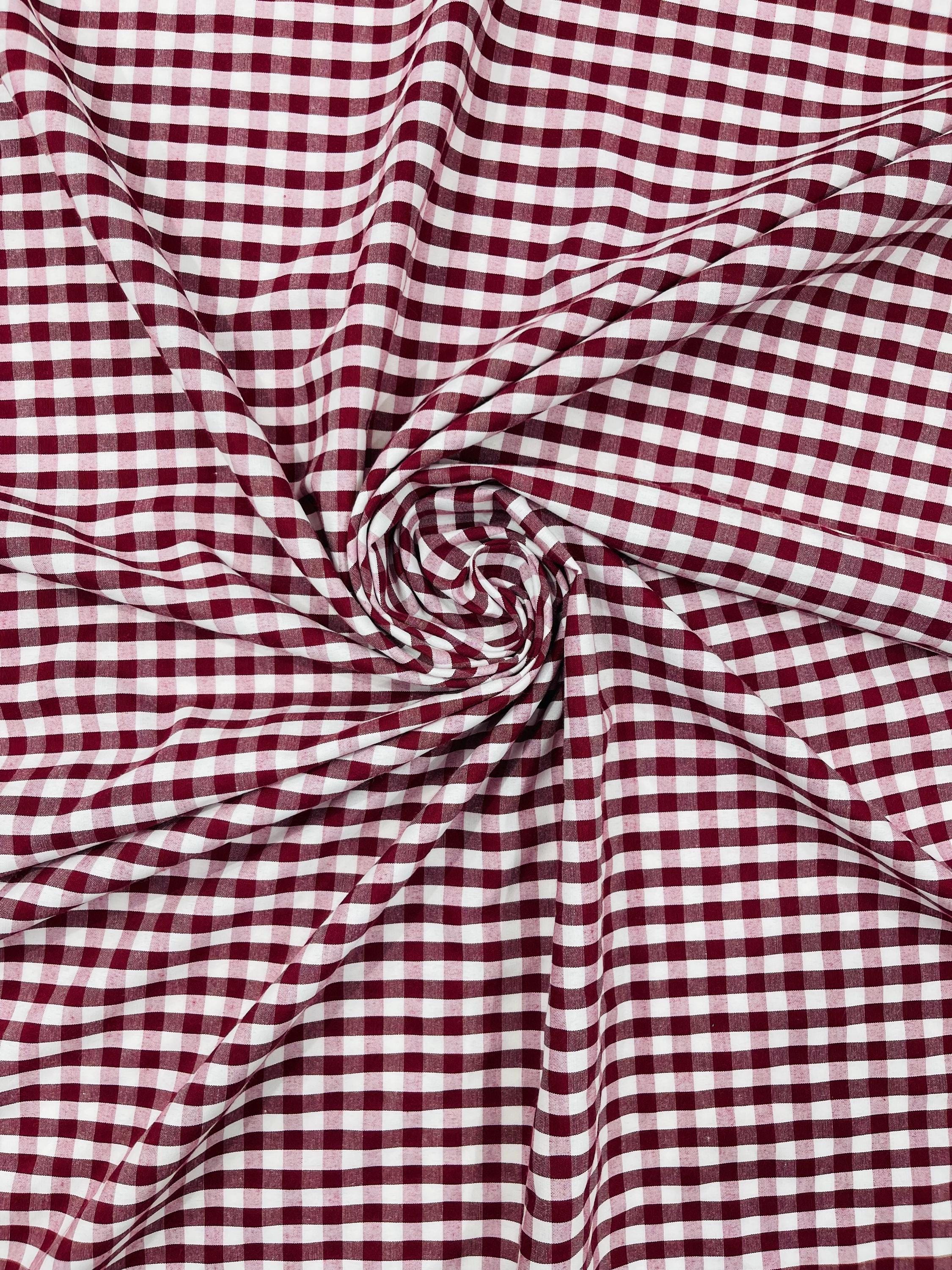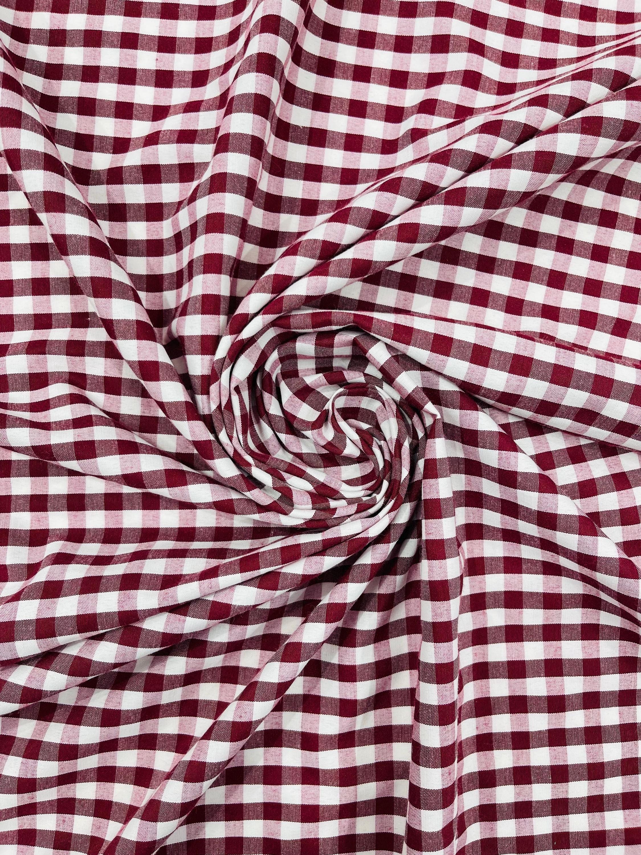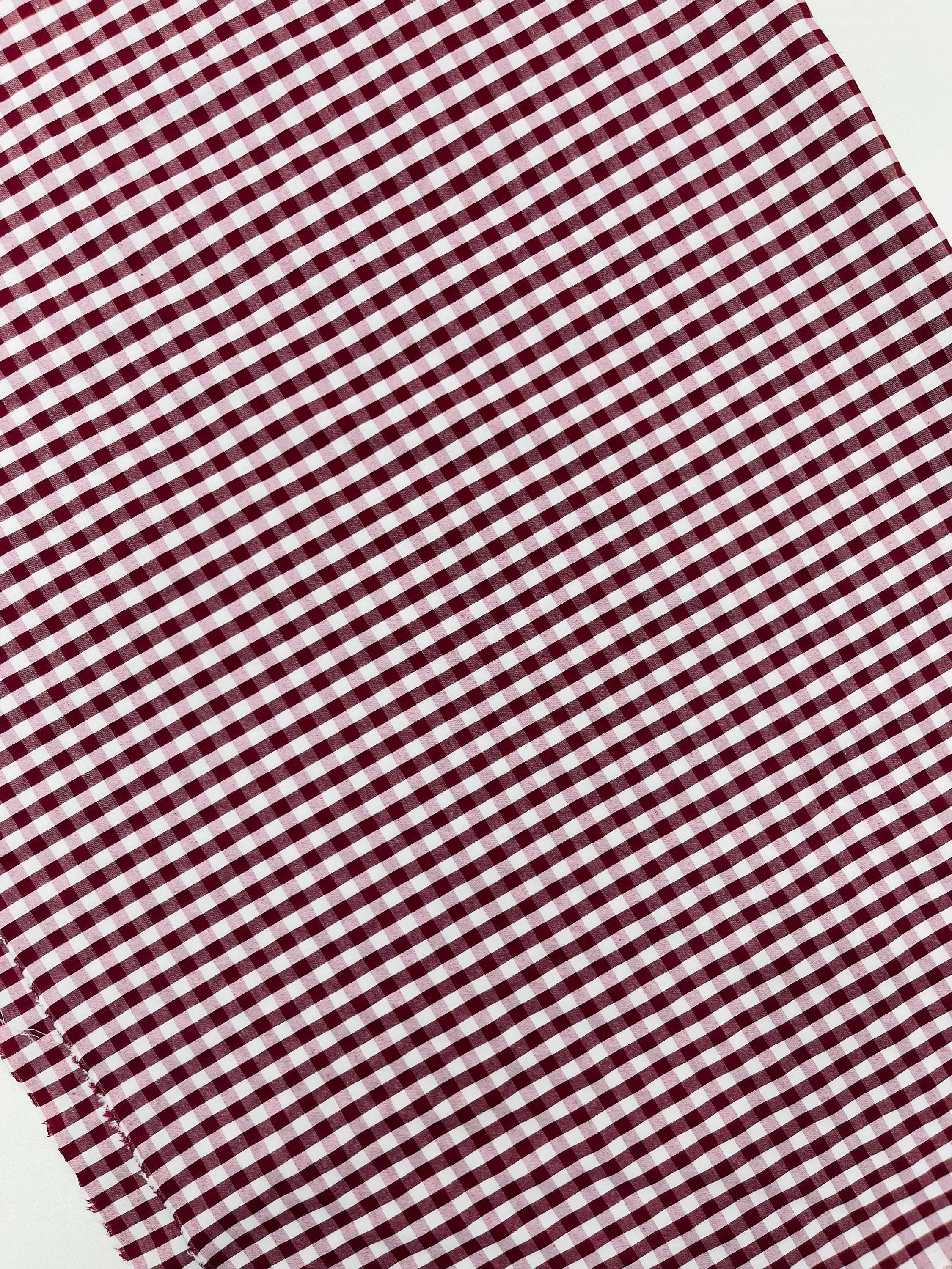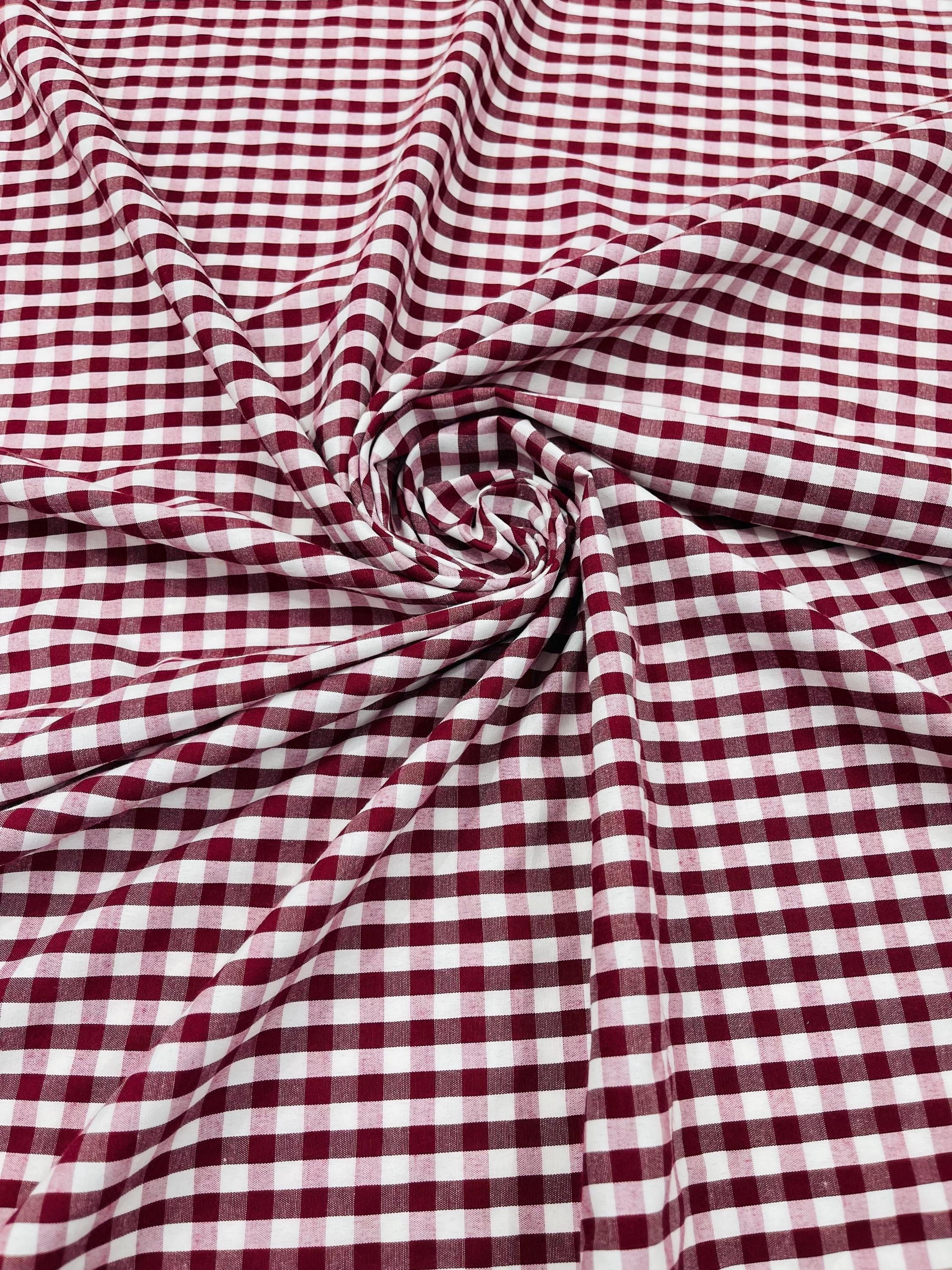 Burgundy & White Gingham Poly Cotton Fabric by Yard 1/4” Squares, Checkered Fabric