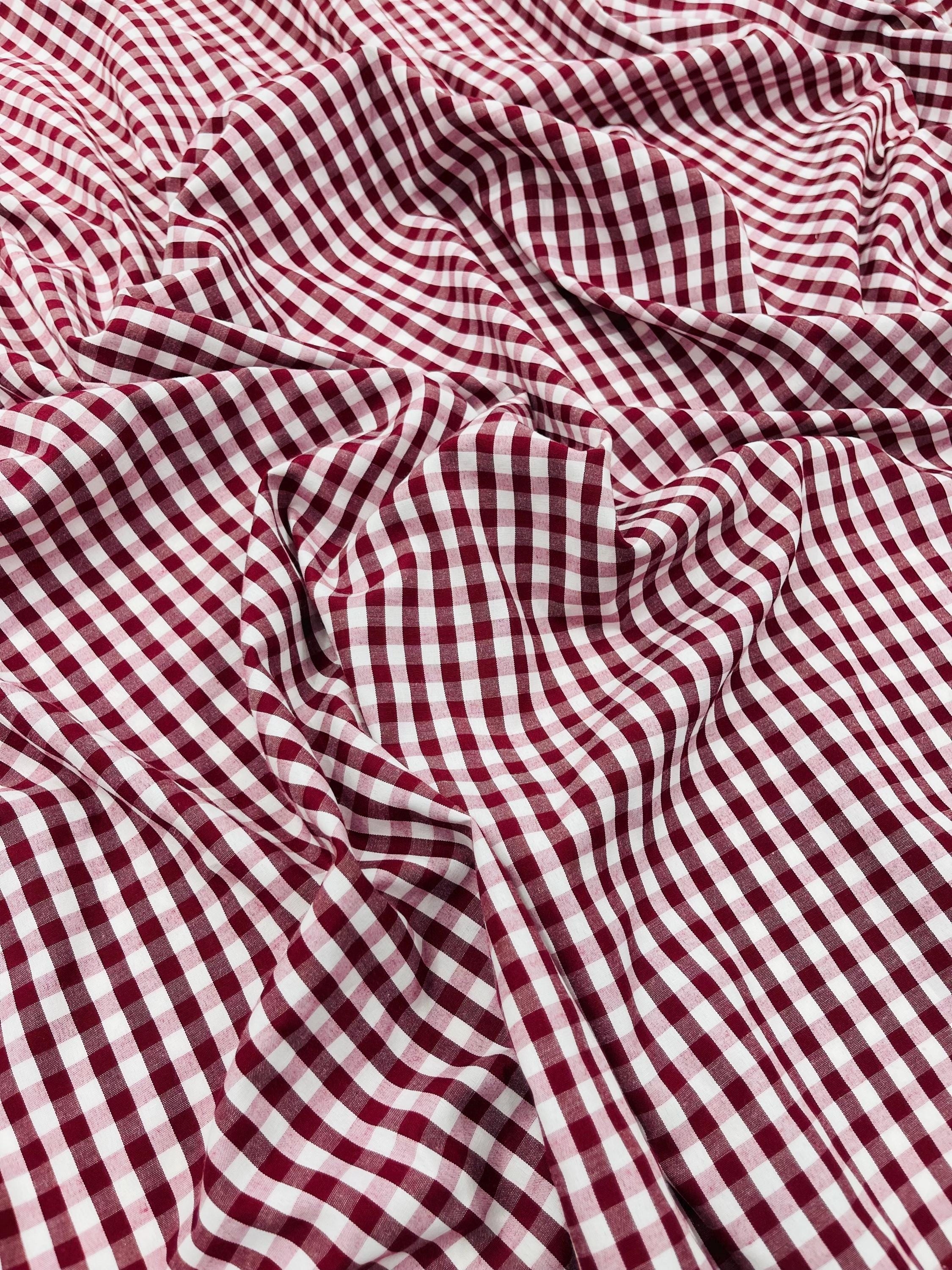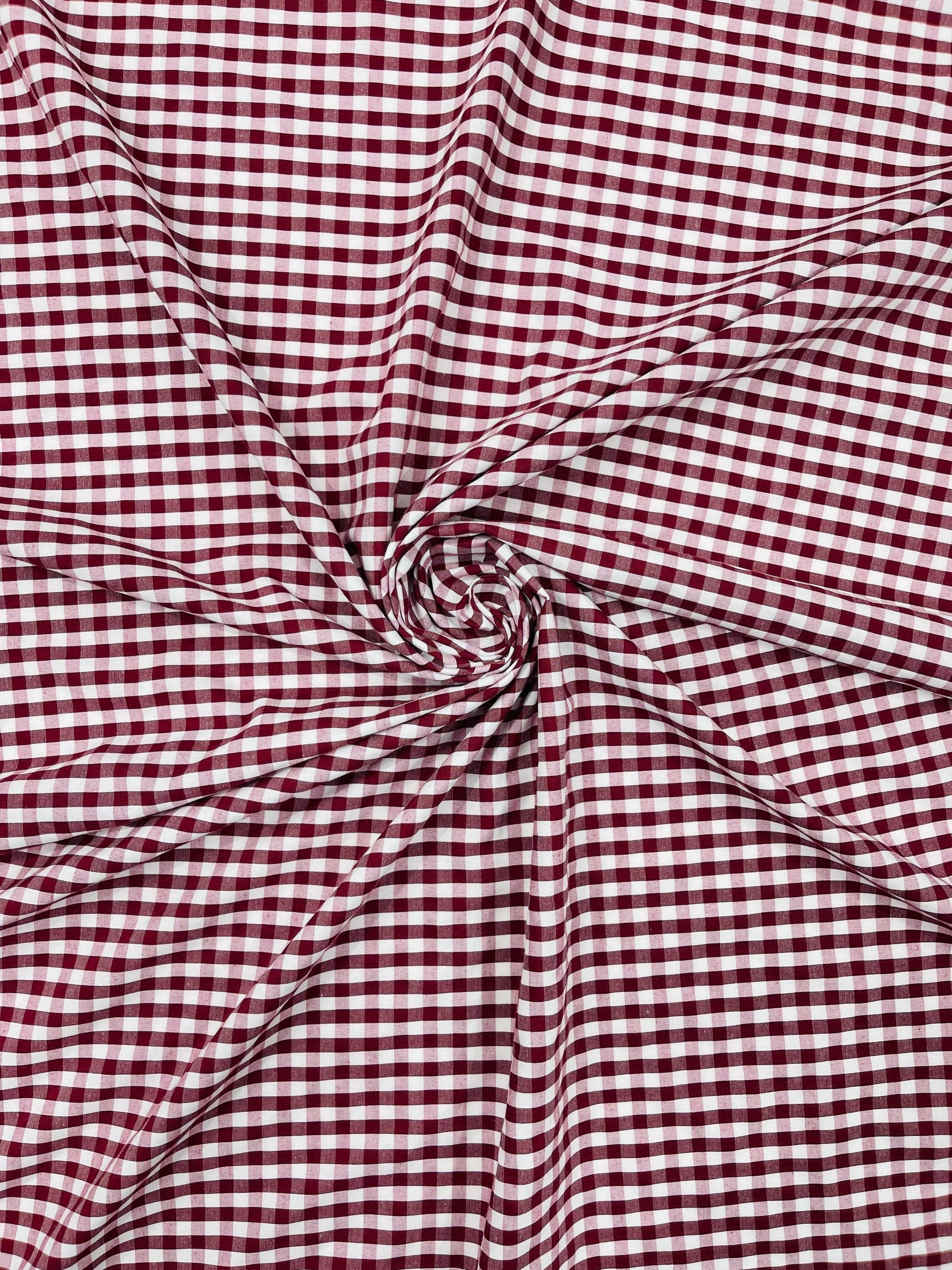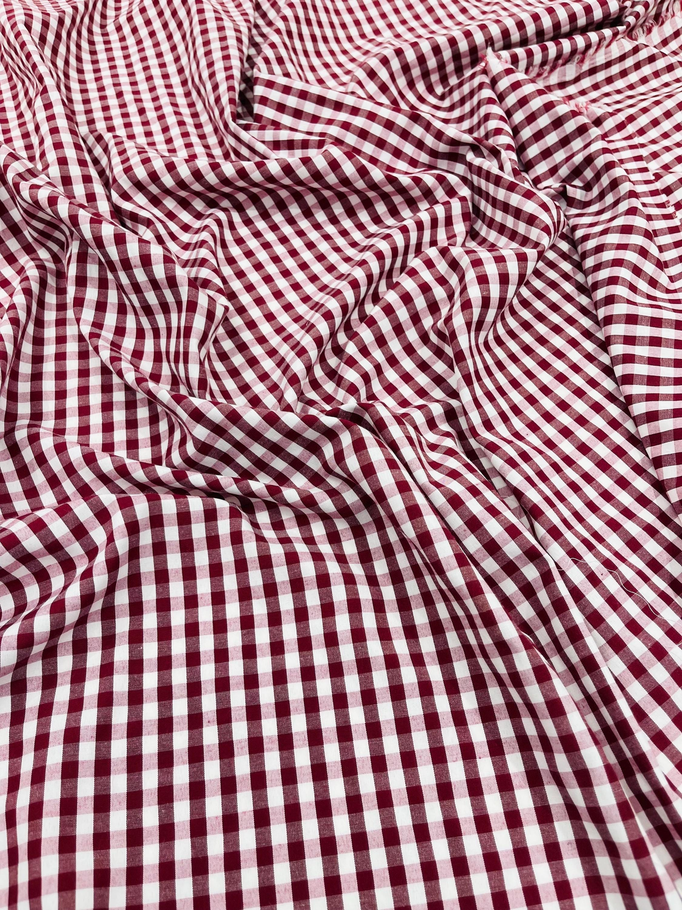 Burgundy & White Gingham Poly Cotton Fabric by Yard 1/4” Squares, Checkered Fabric