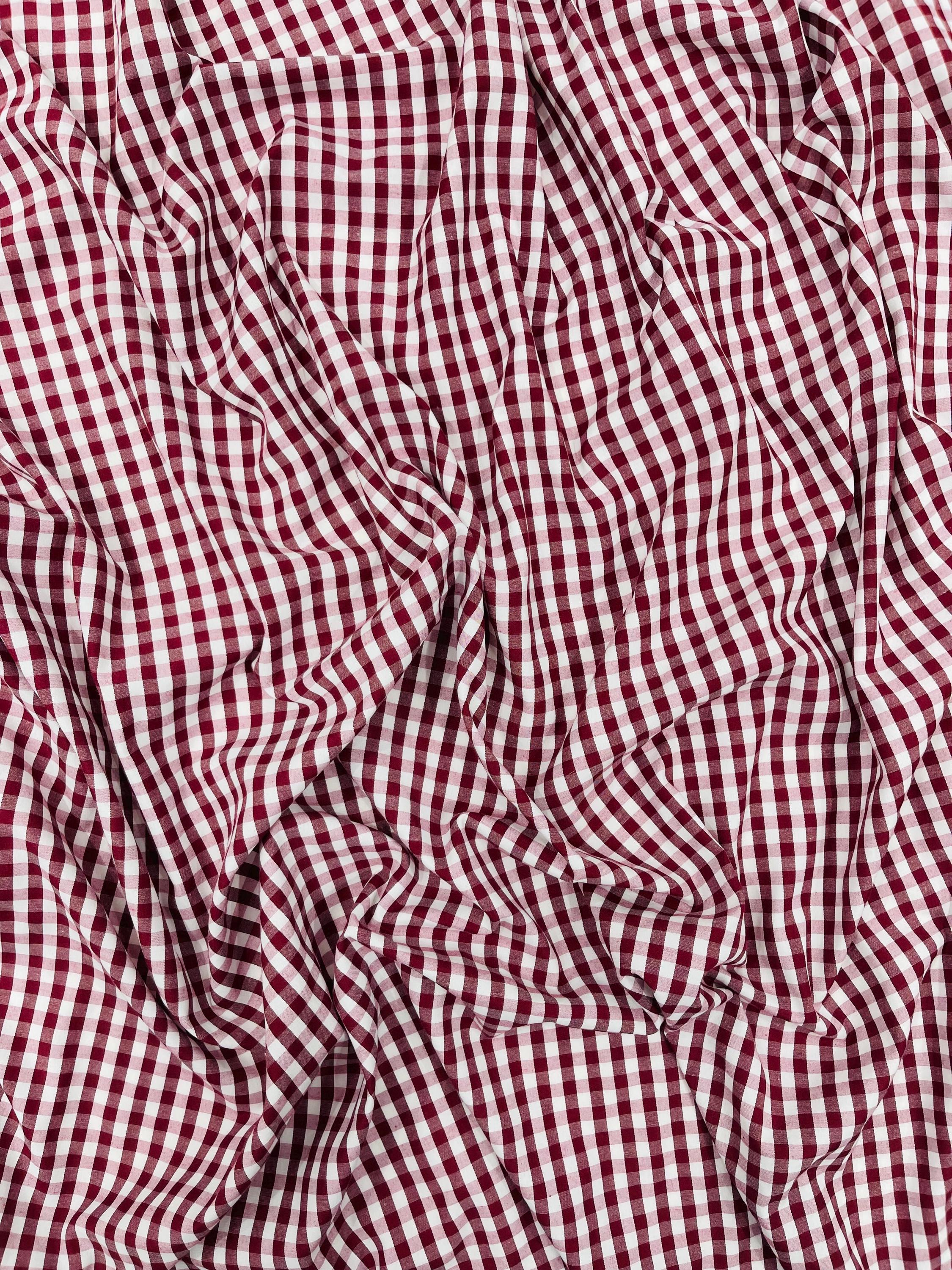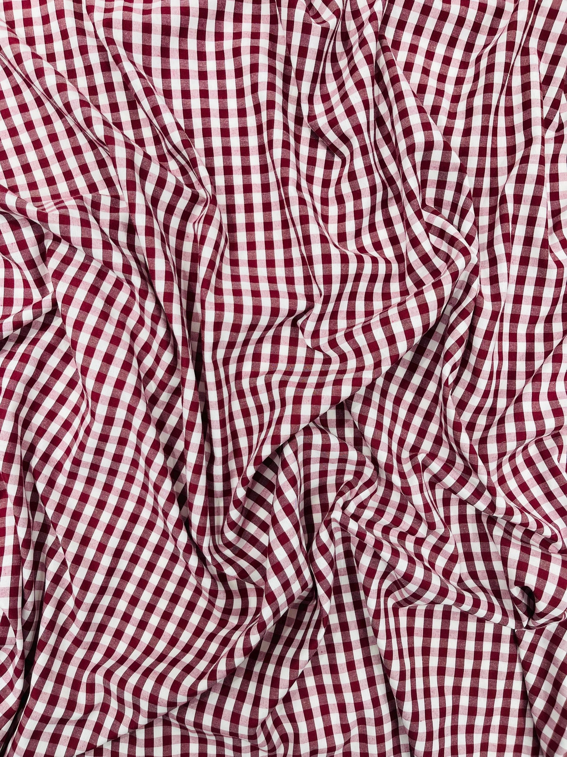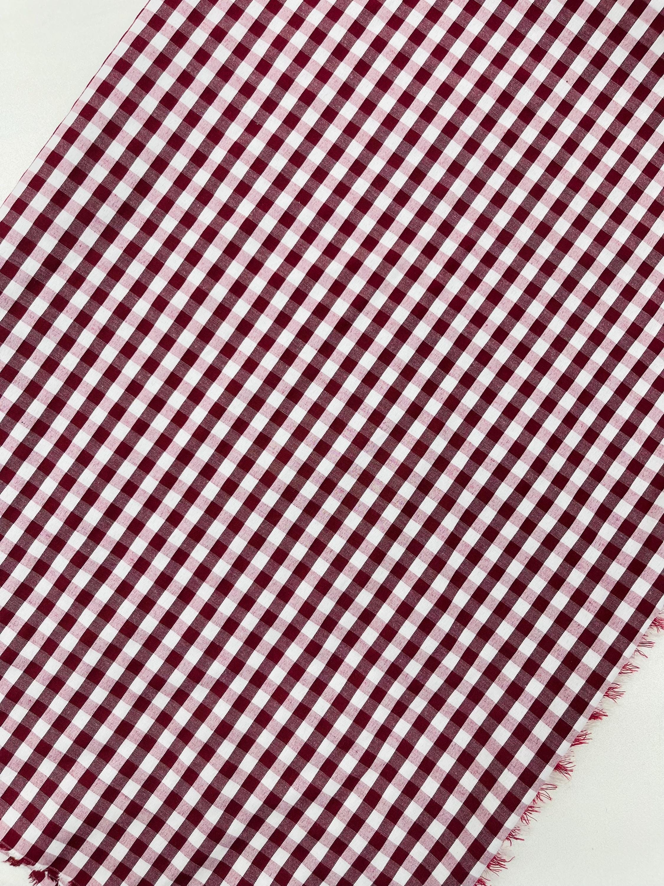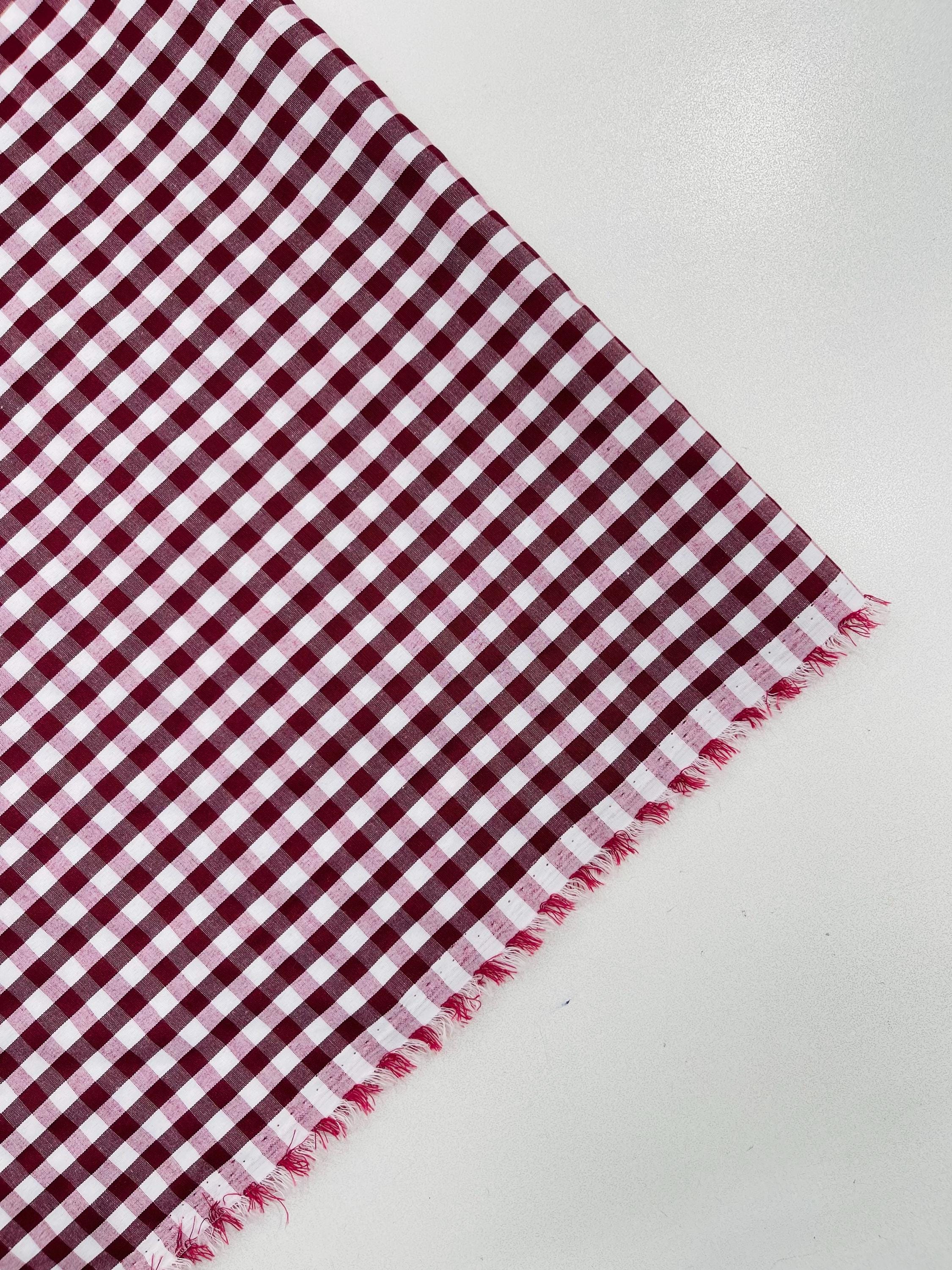 Burgundy & White Gingham Poly Cotton Fabric by Yard 1/4” Squares, Checkered Fabric