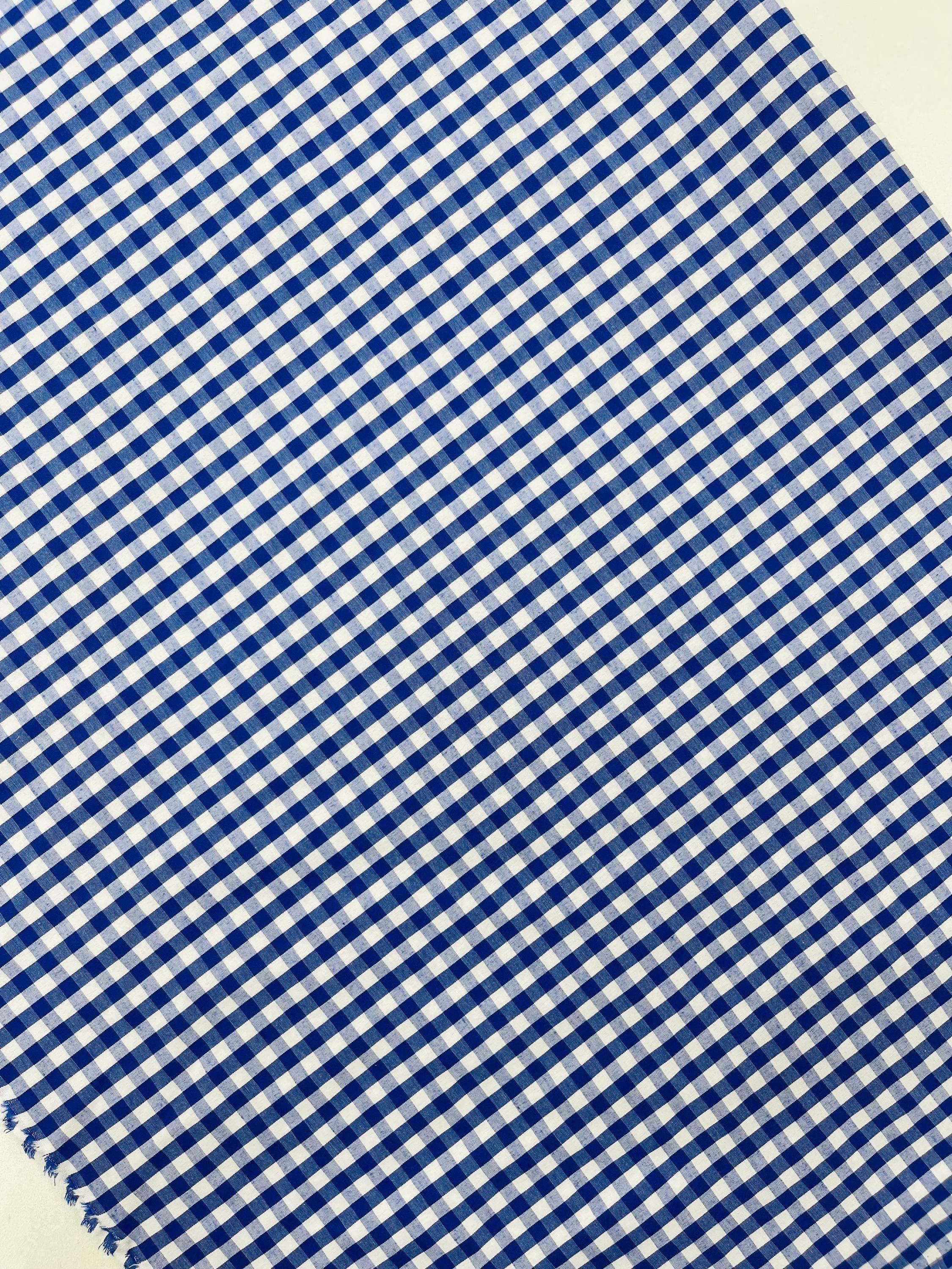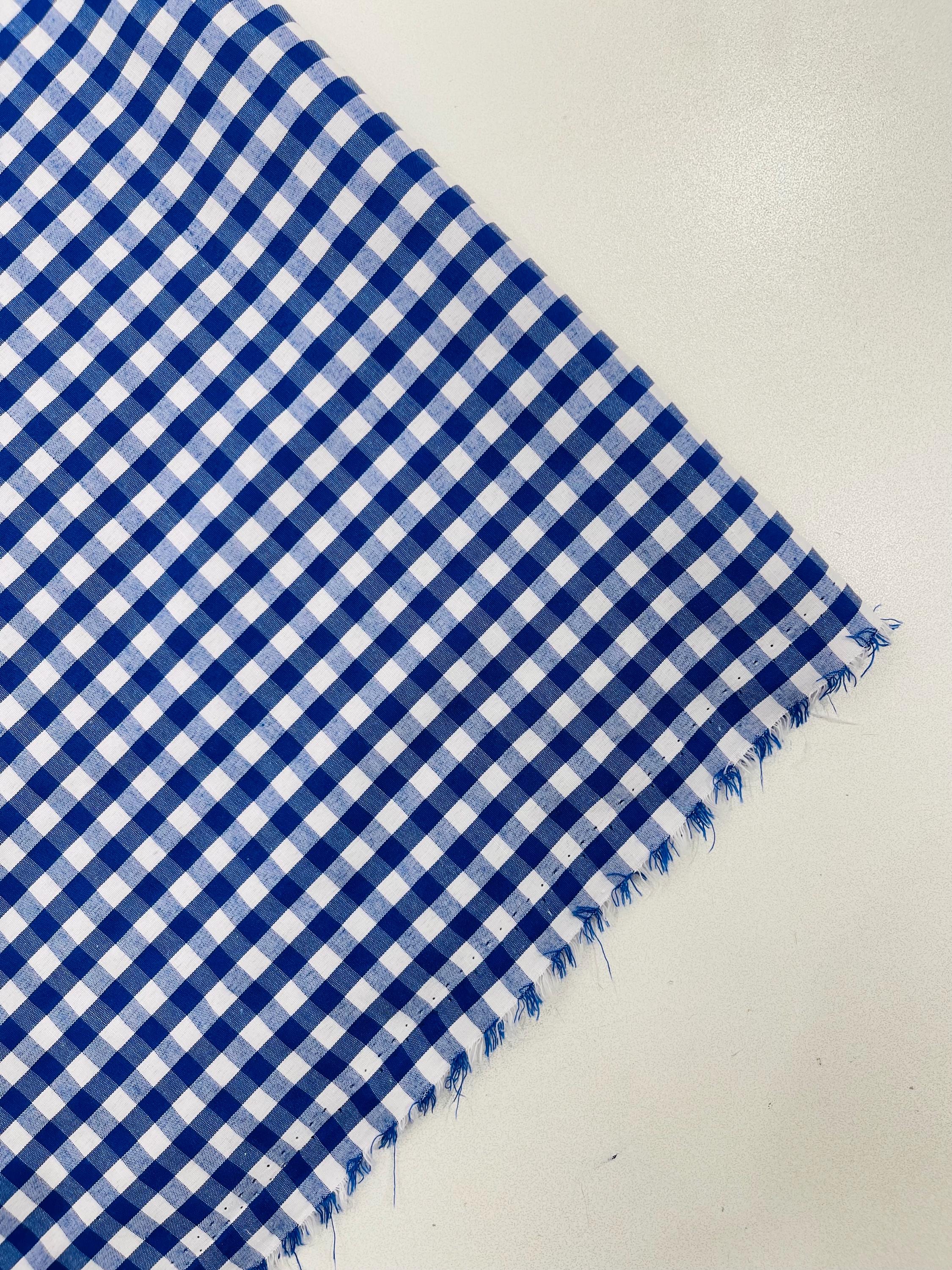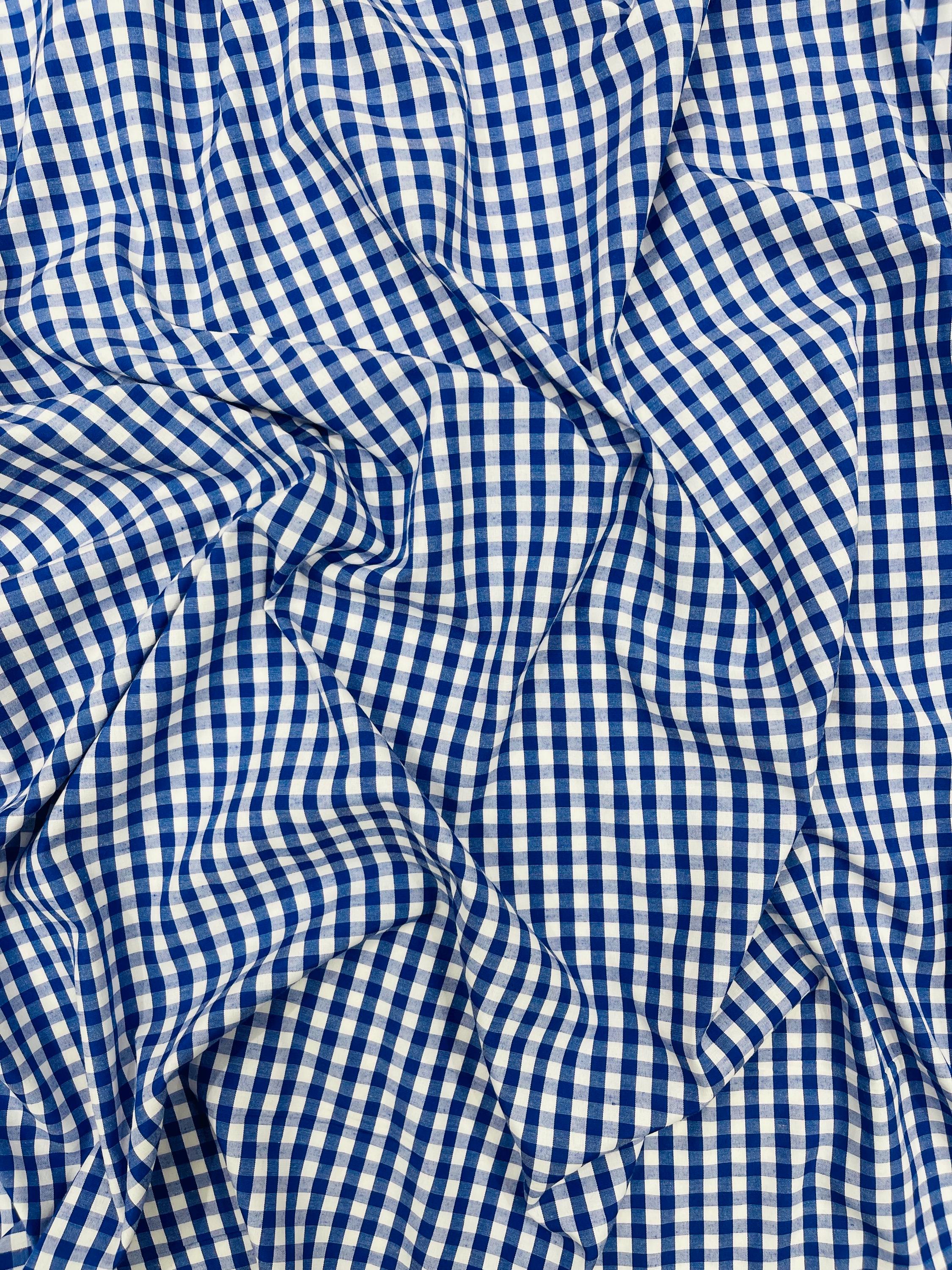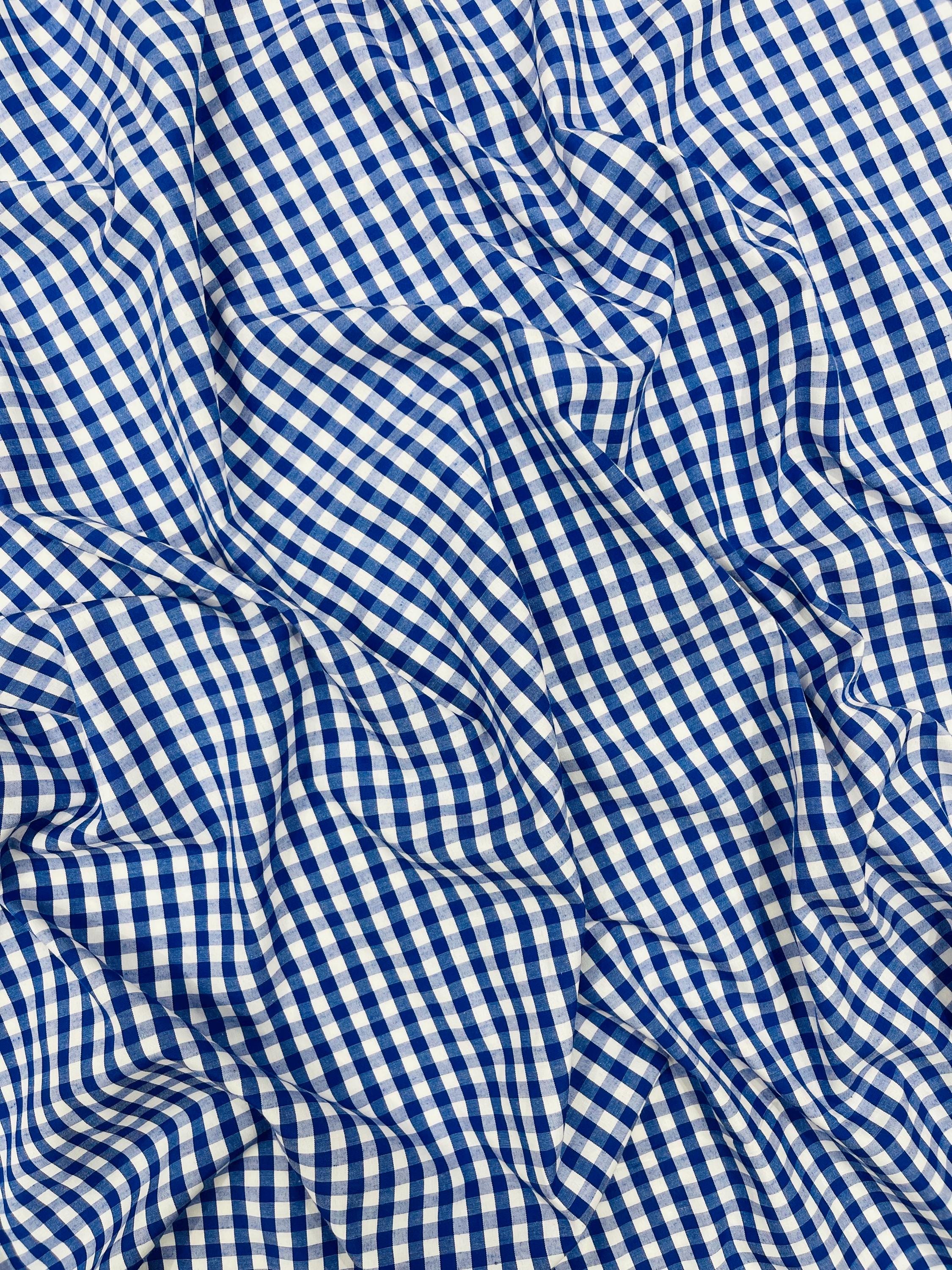 Royal Blue & White Gingham Poly Cotton Fabric by Yard 1/4” Squares, Checkered Fabric