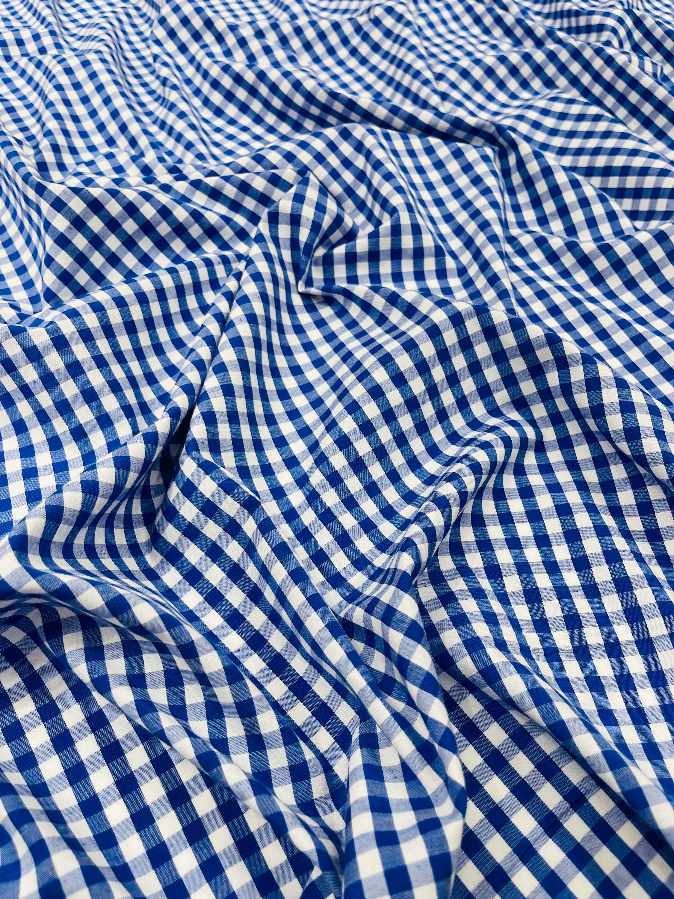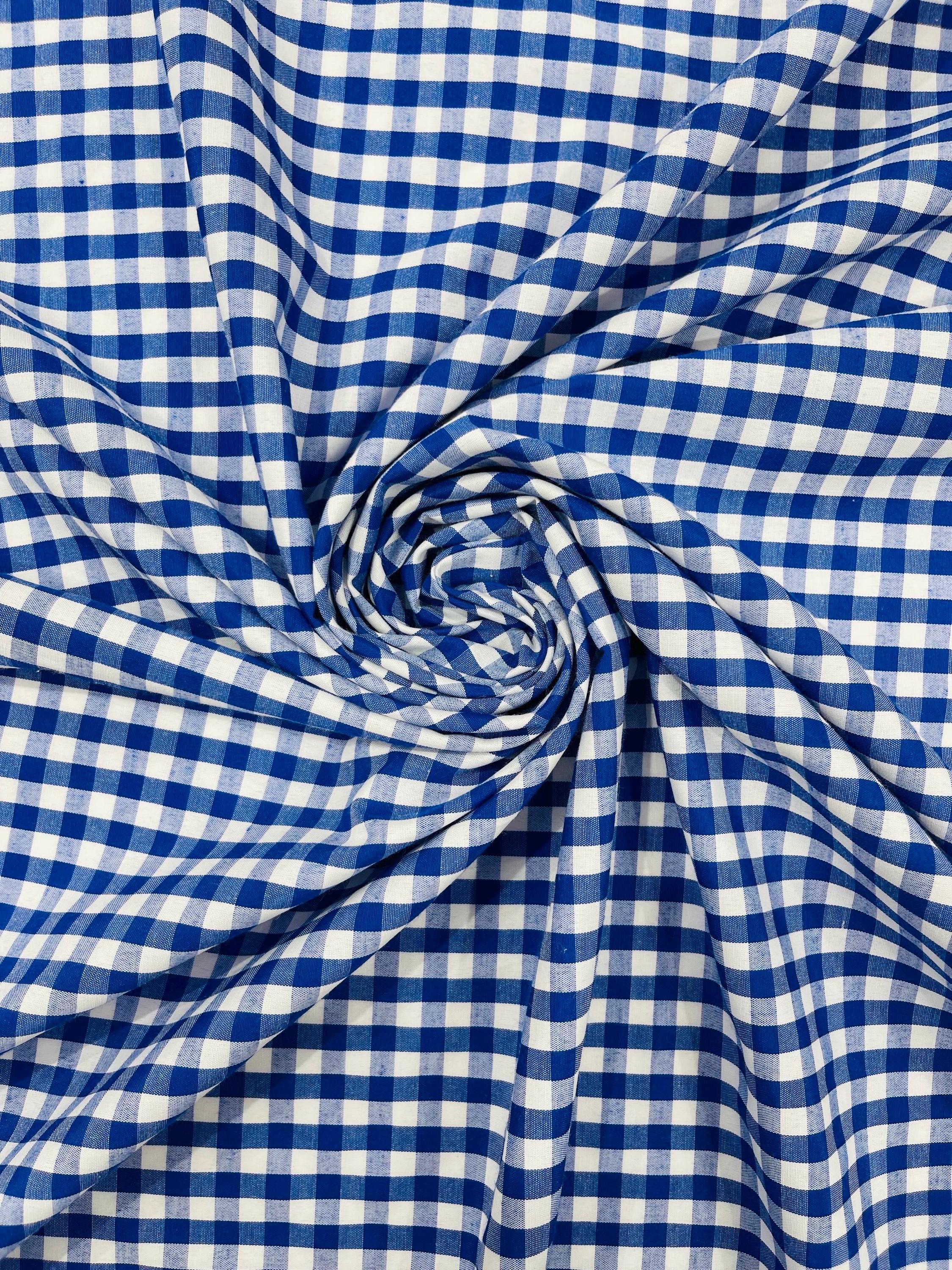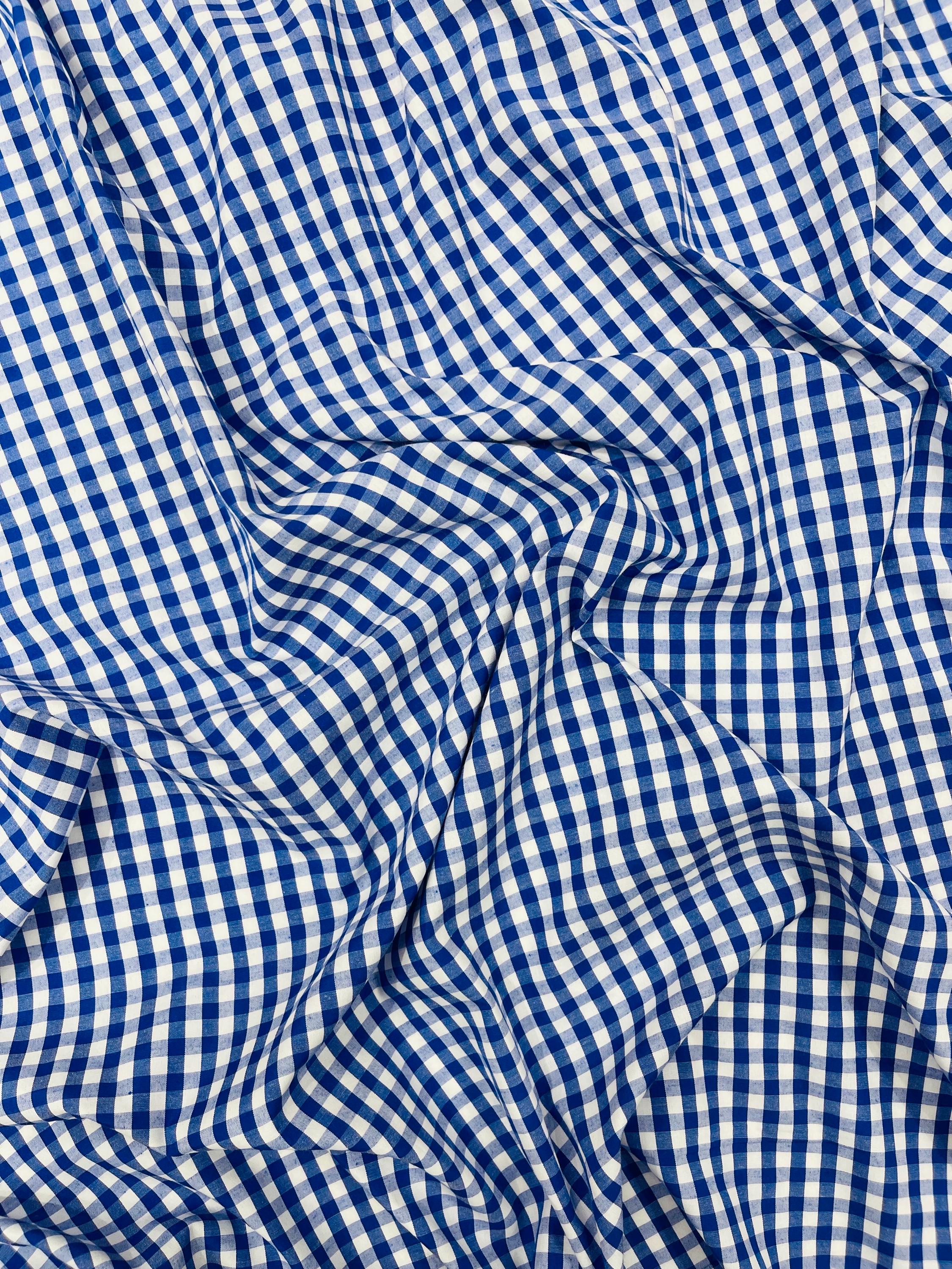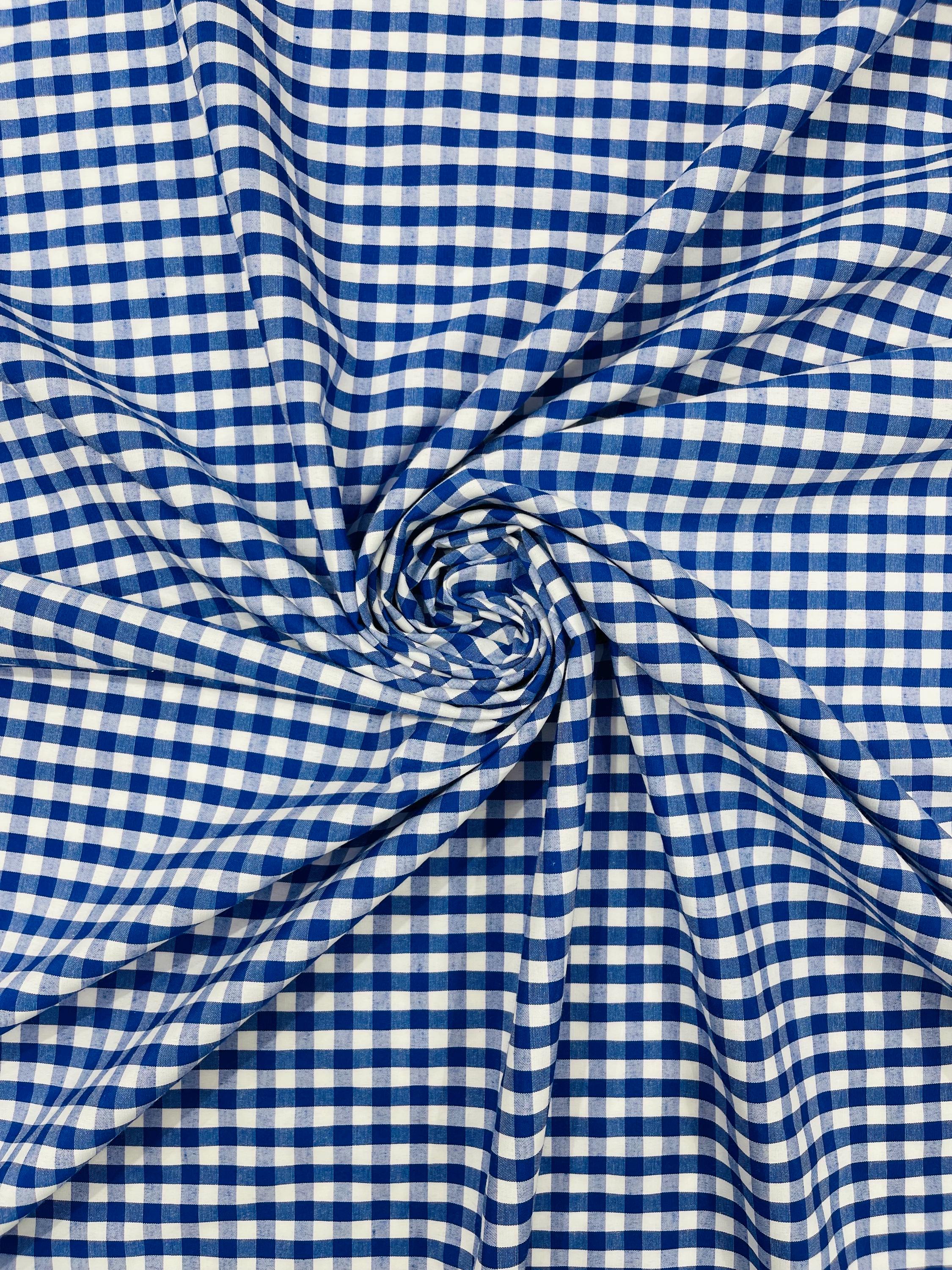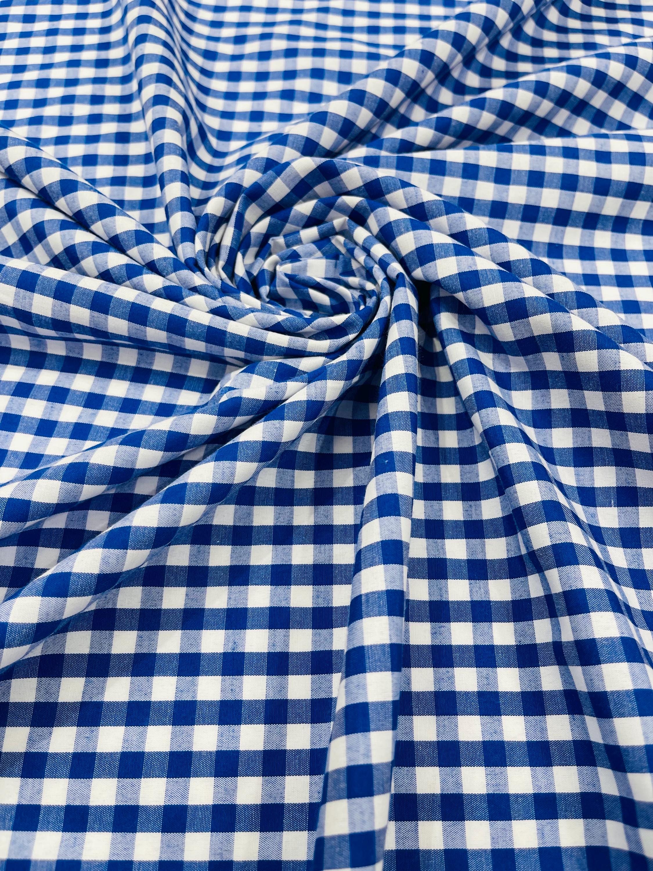 Royal Blue & White Gingham Poly Cotton Fabric by Yard 1/4” Squares, Checkered Fabric