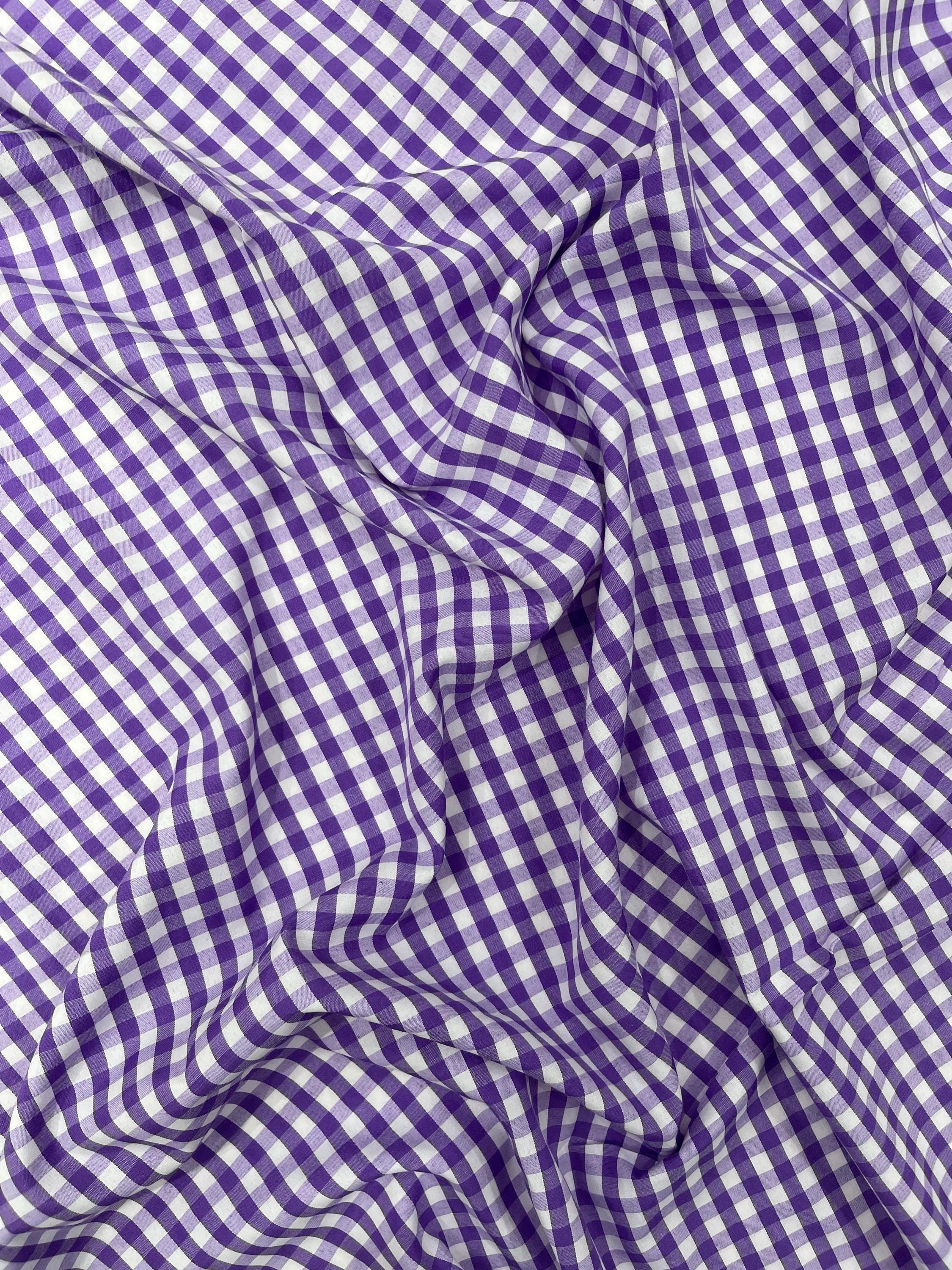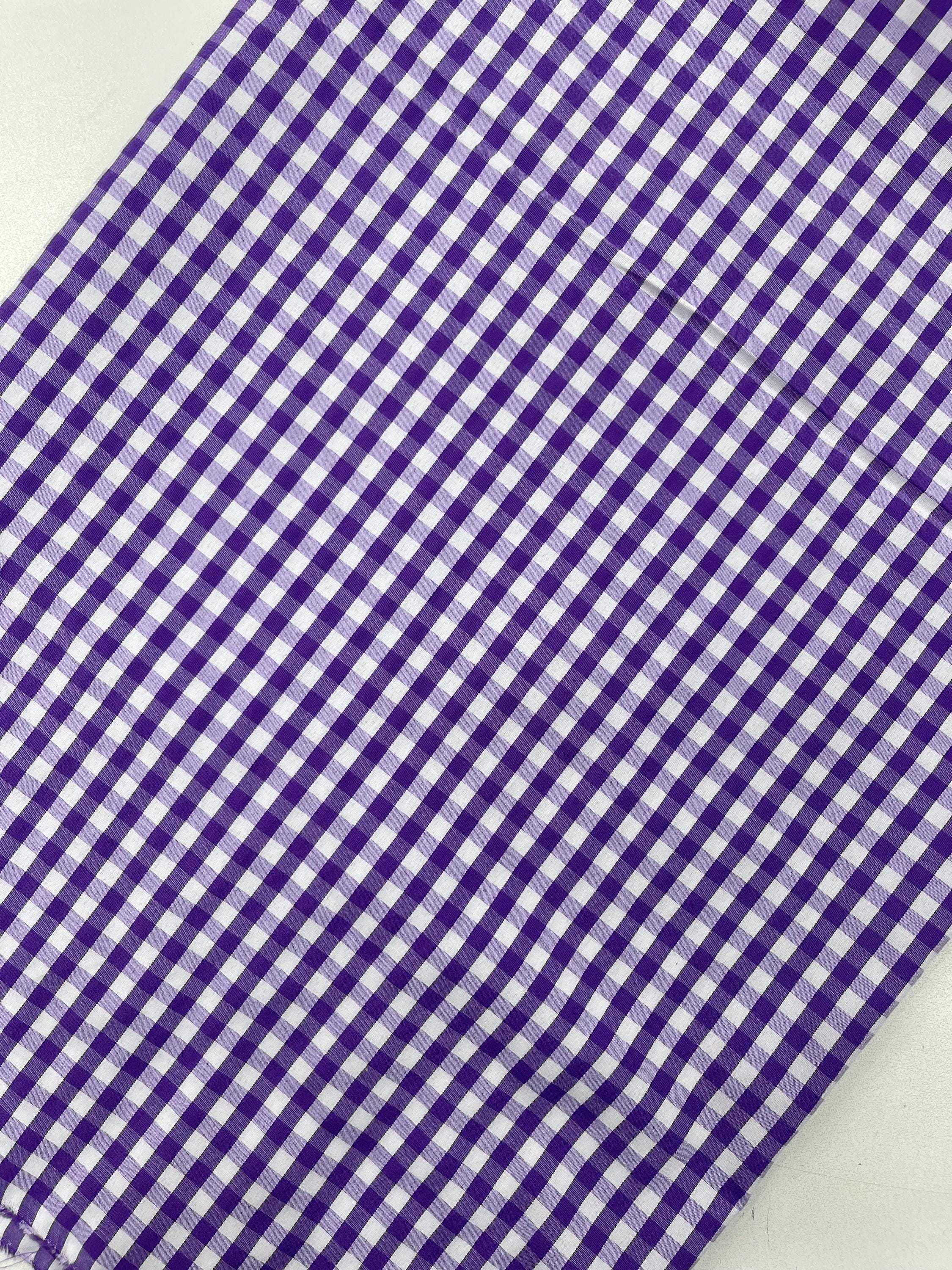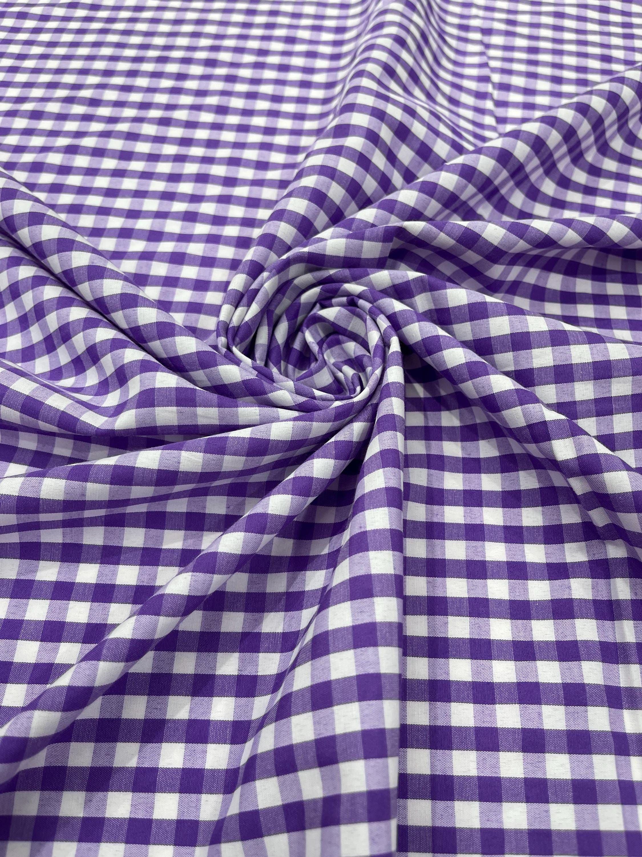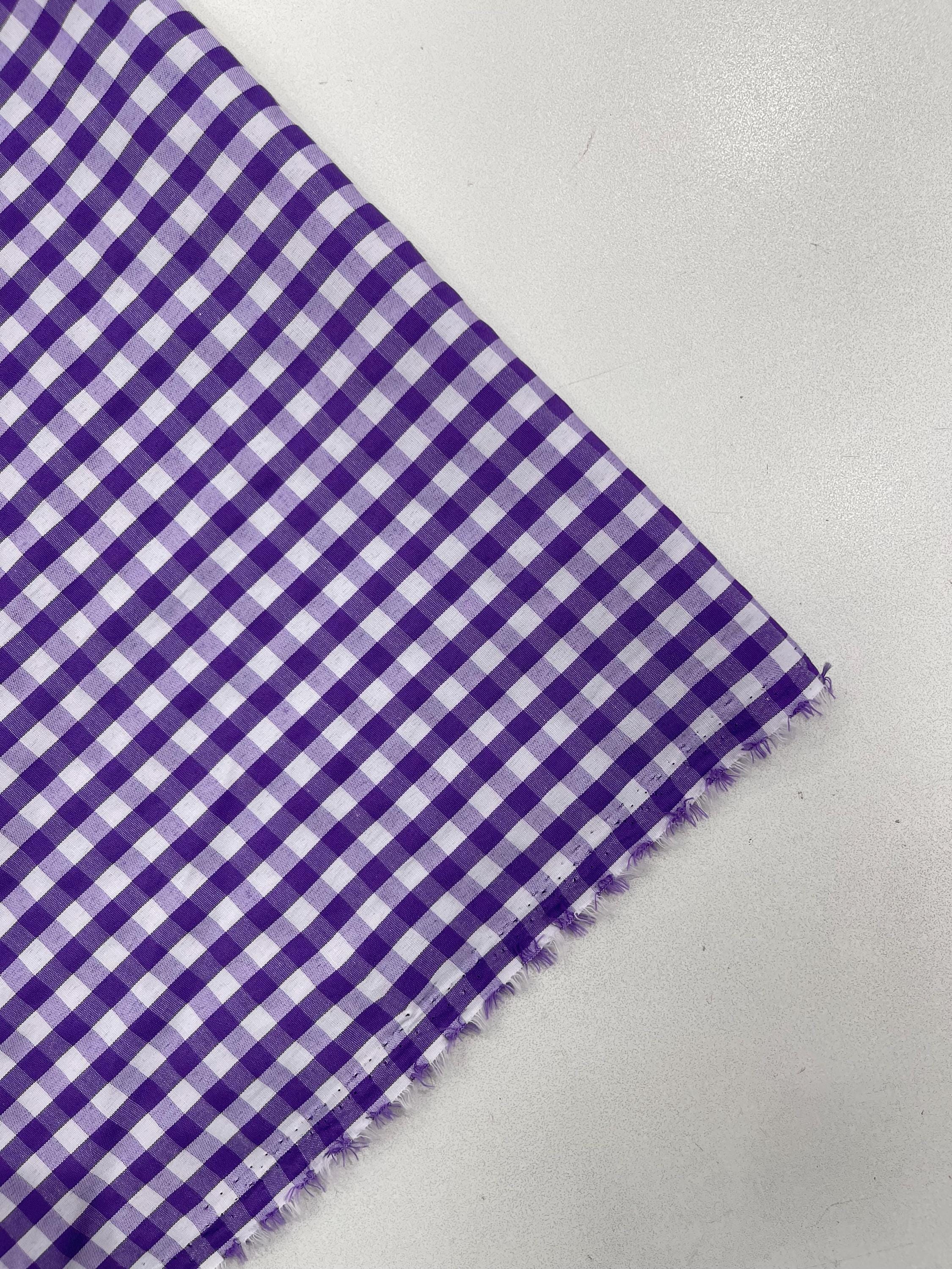 Purple & White Gingham Poly Cotton Fabric by Yard 1/4” Squares, Checkered Fabric
