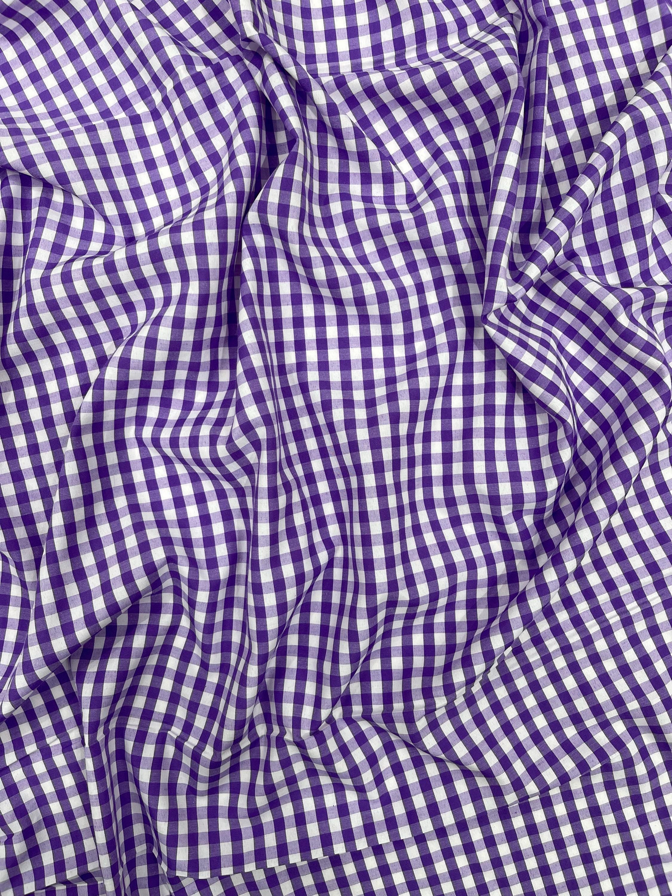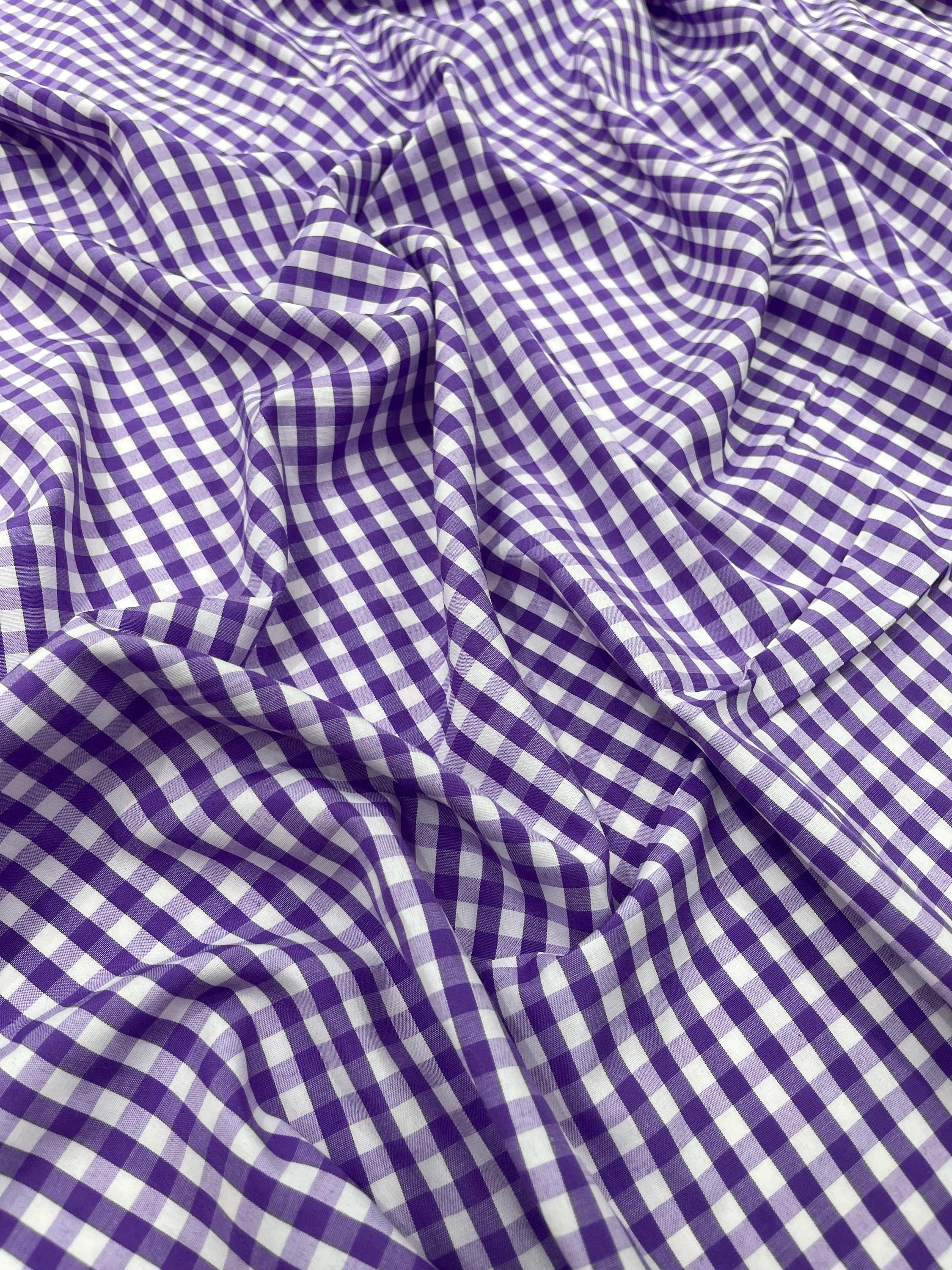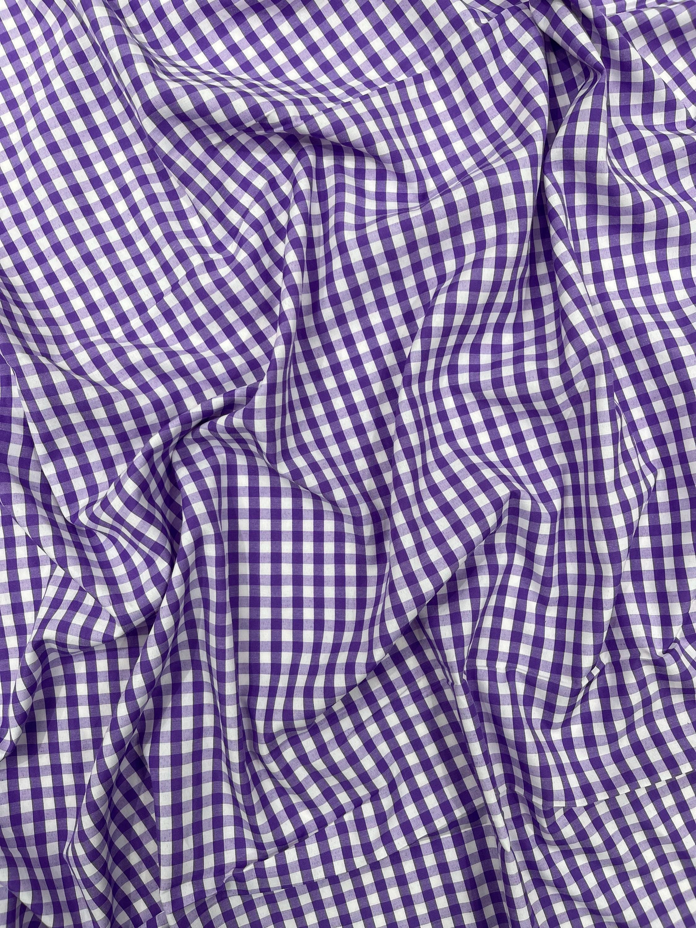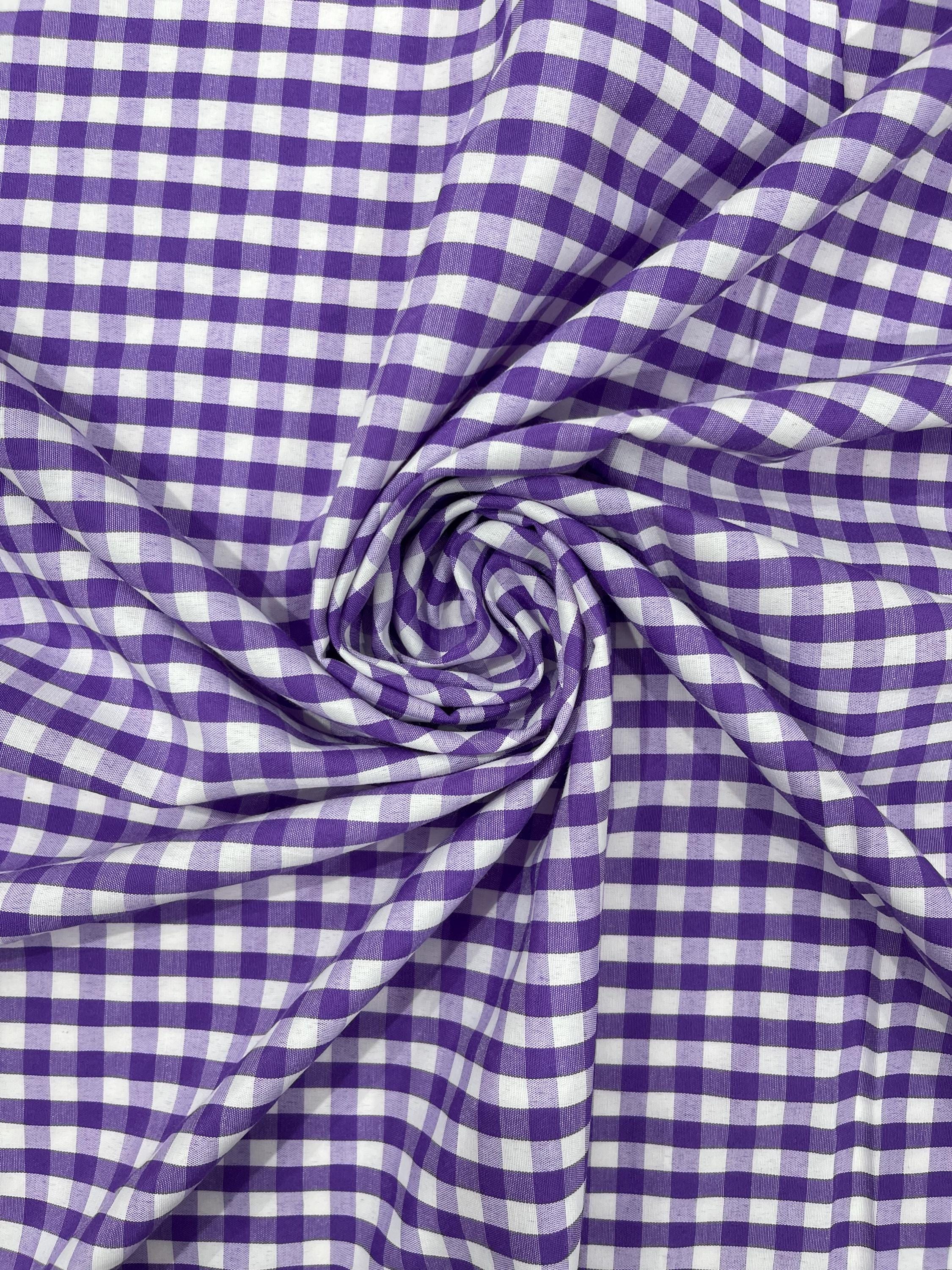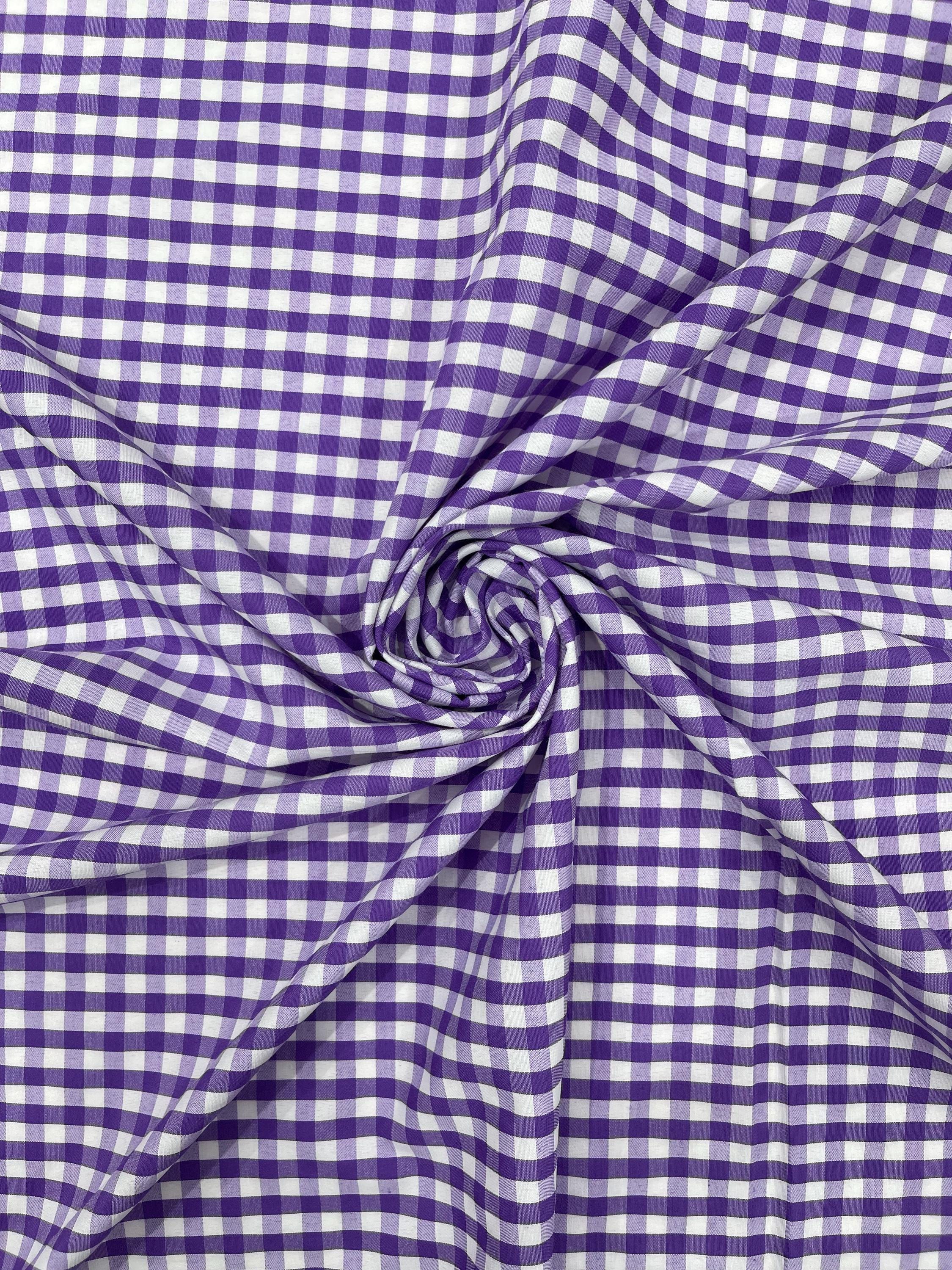 Purple & White Gingham Poly Cotton Fabric by Yard 1/4” Squares, Checkered Fabric