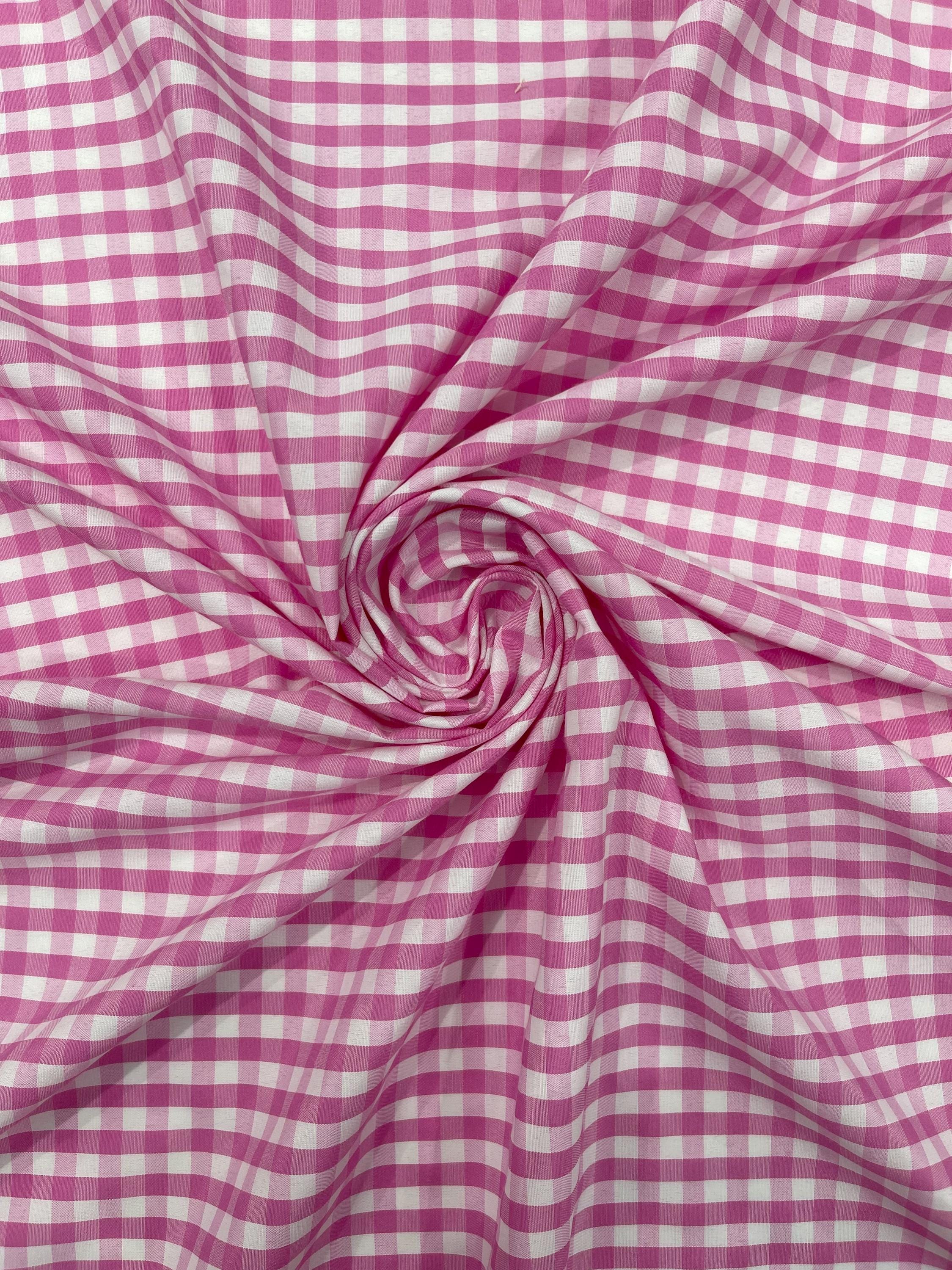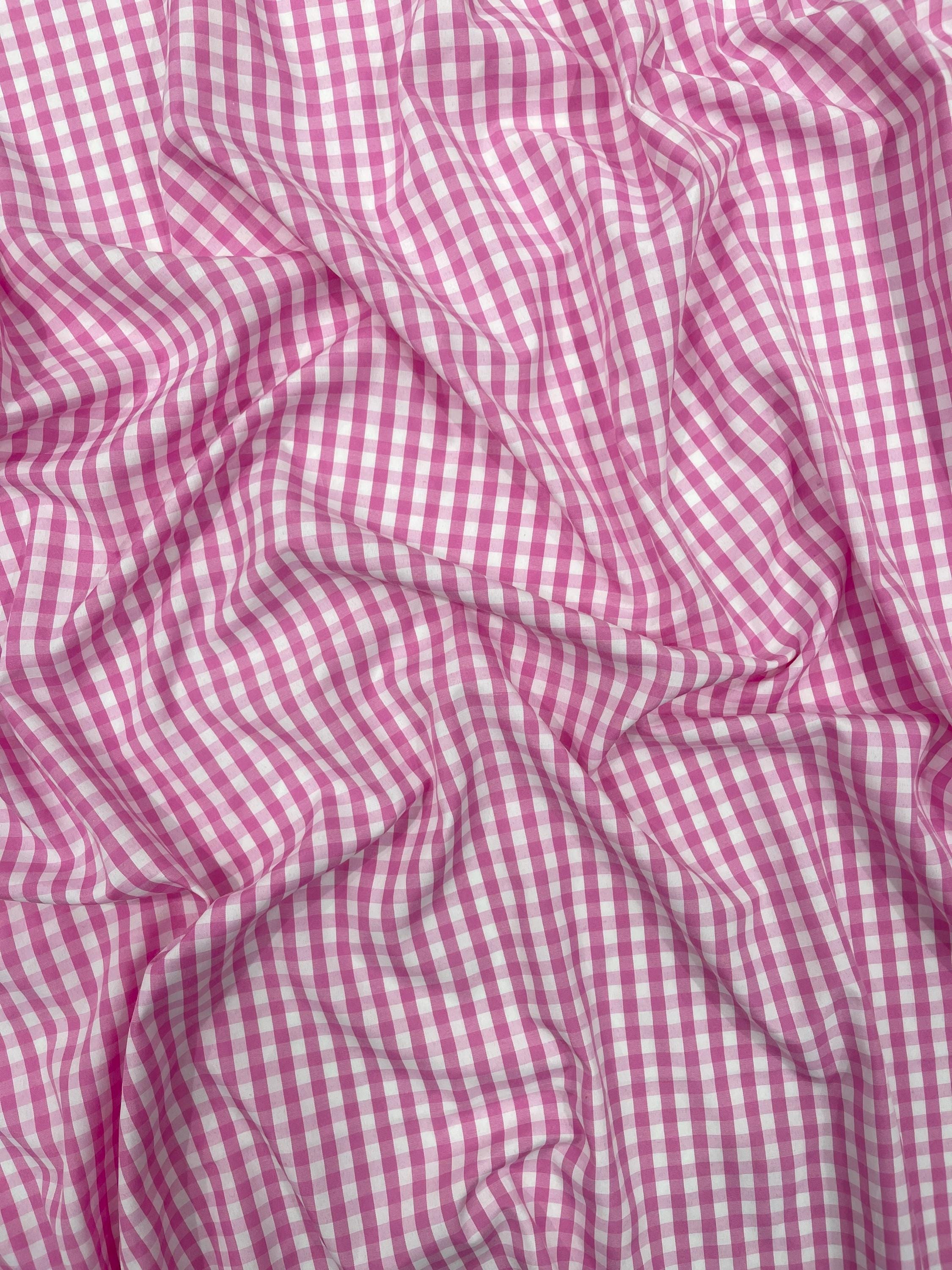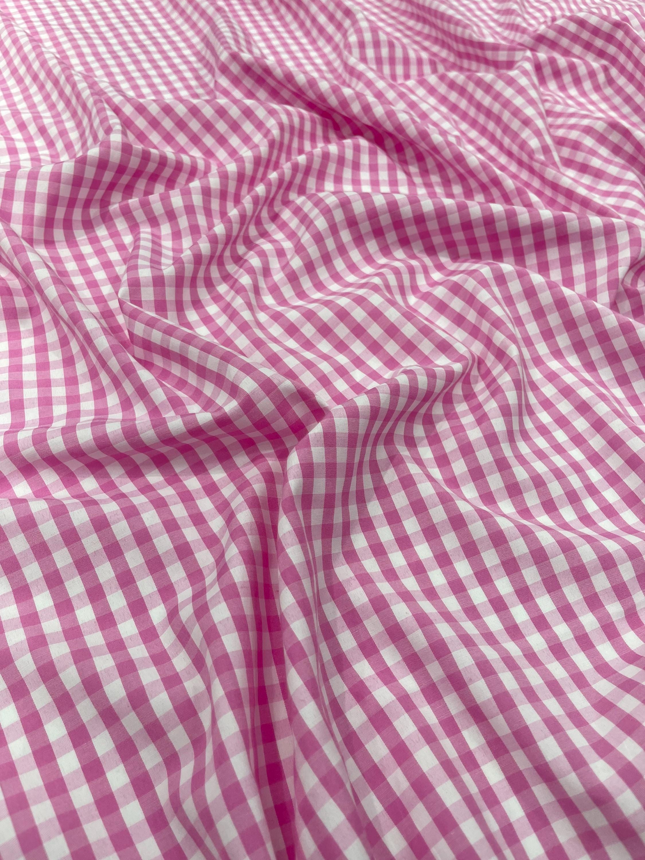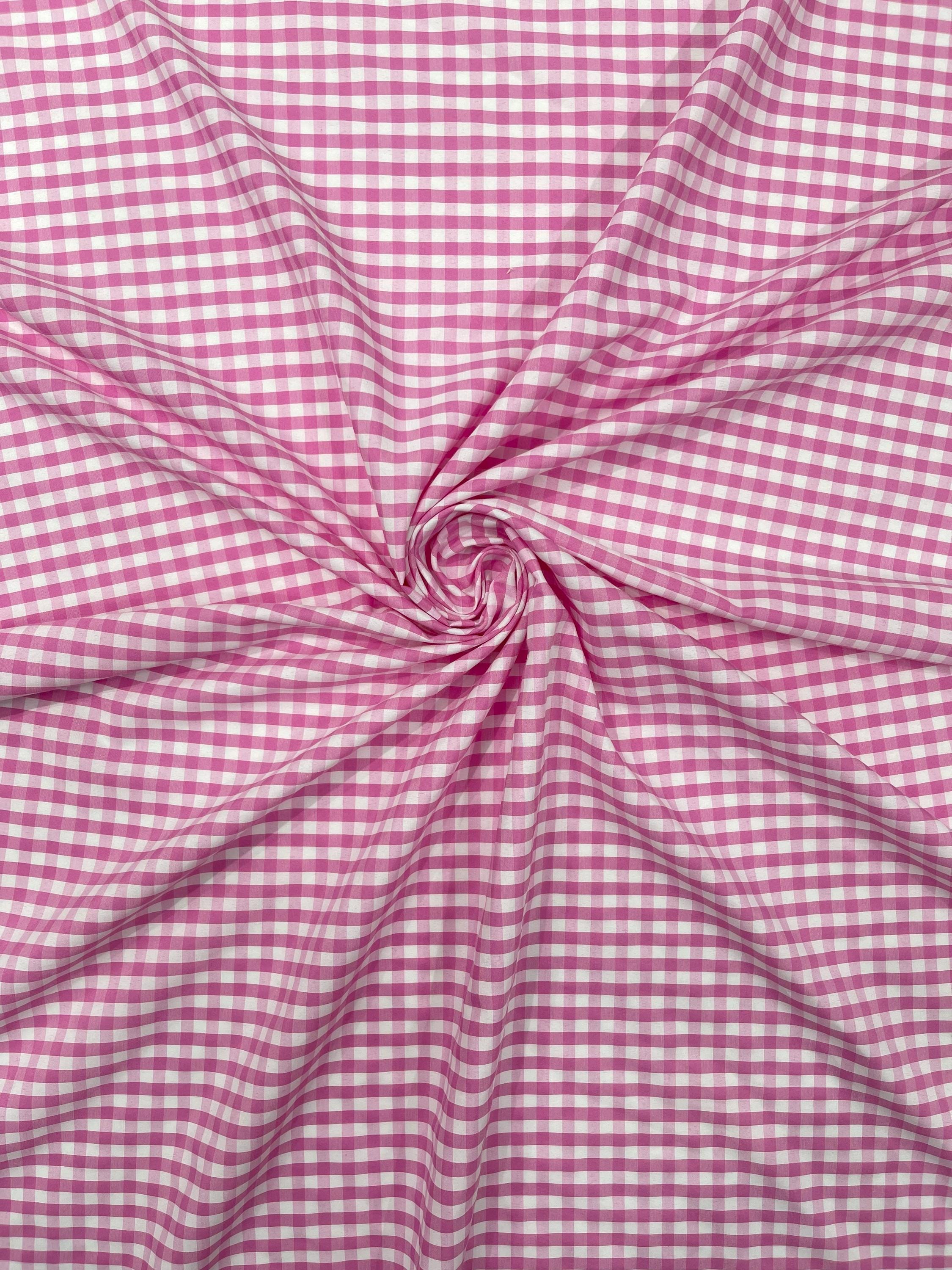 Pink & White Gingham Poly Cotton Fabric by Yard 1/4” Squares, Checkered Fabric