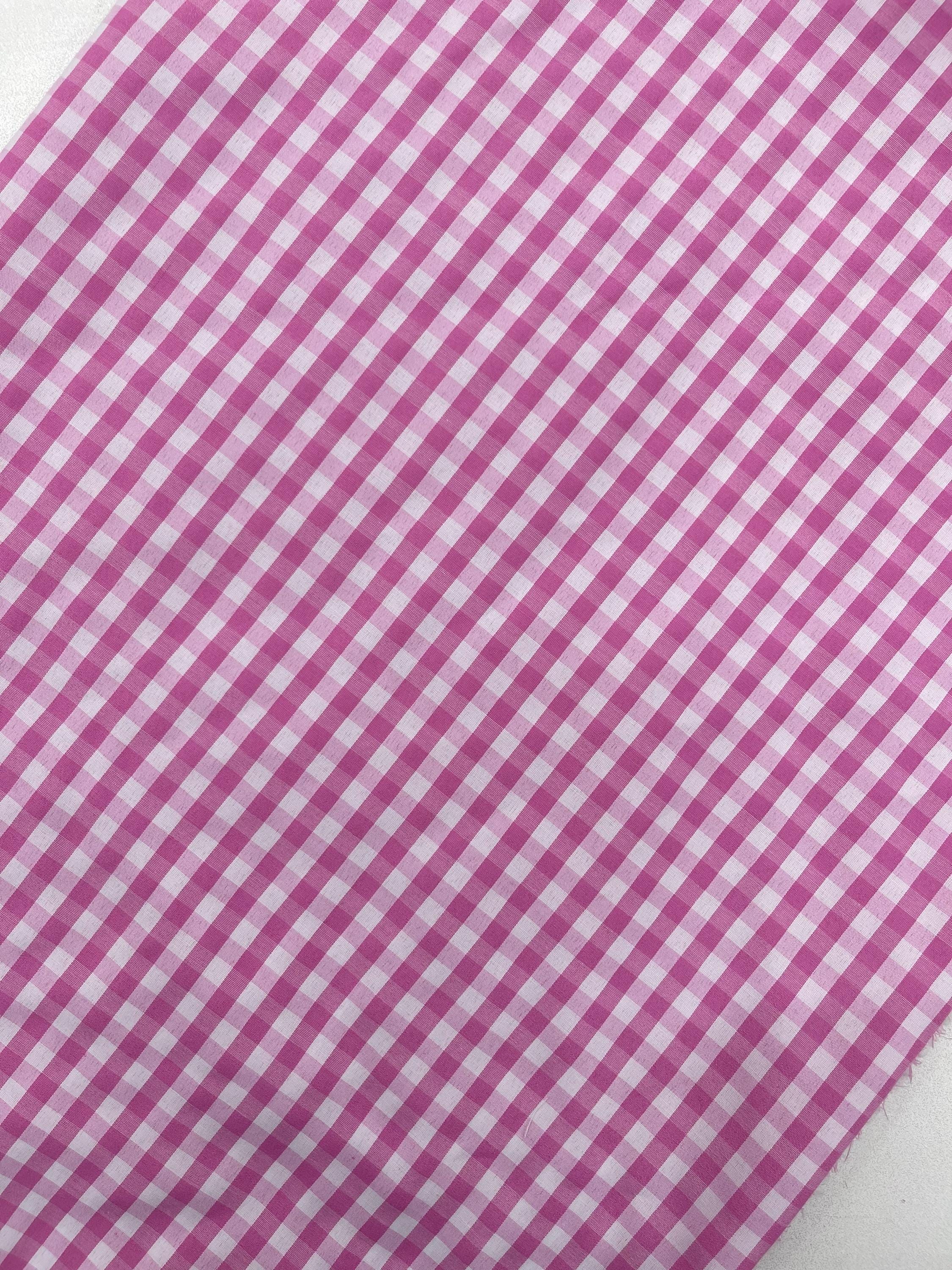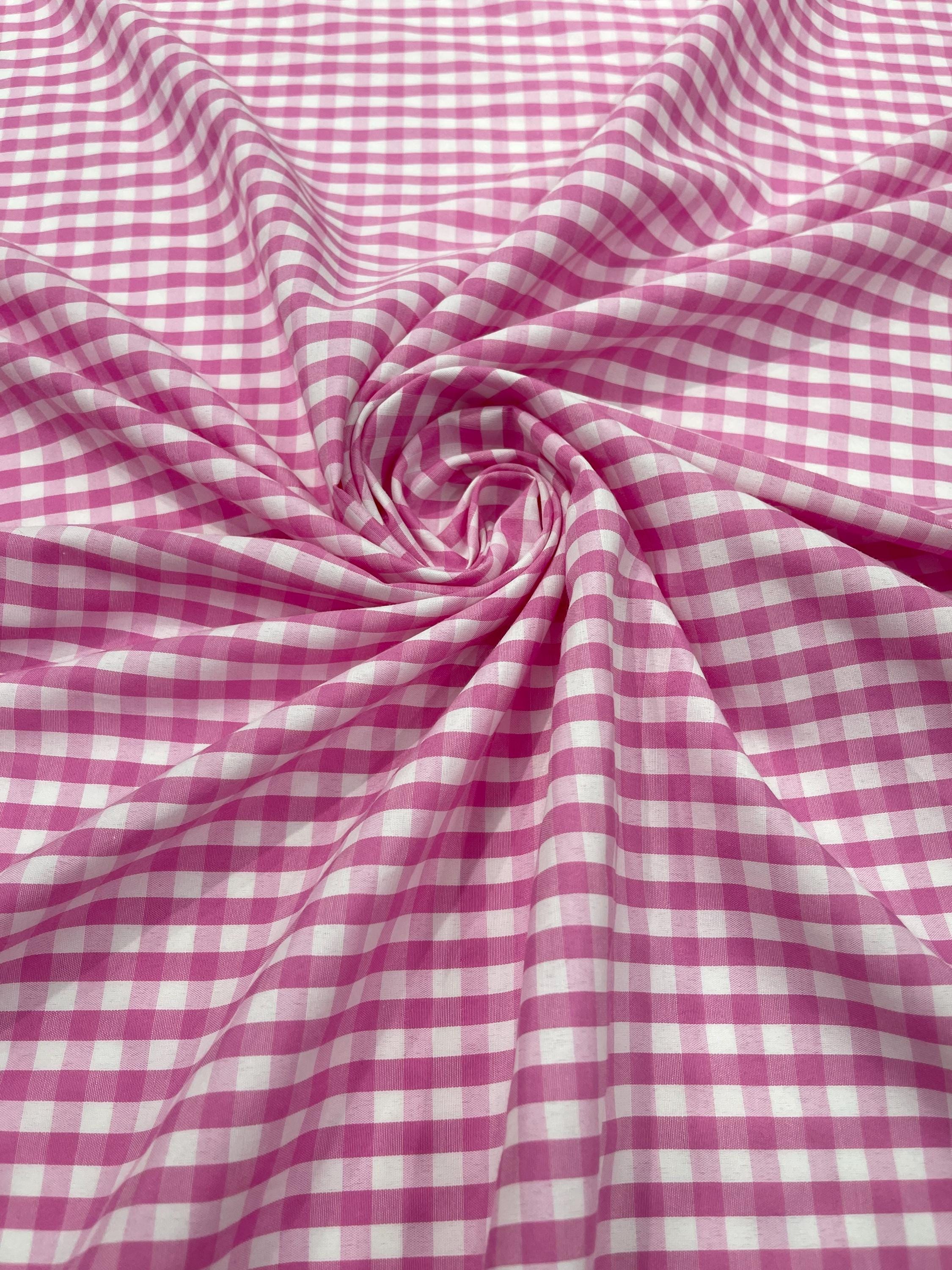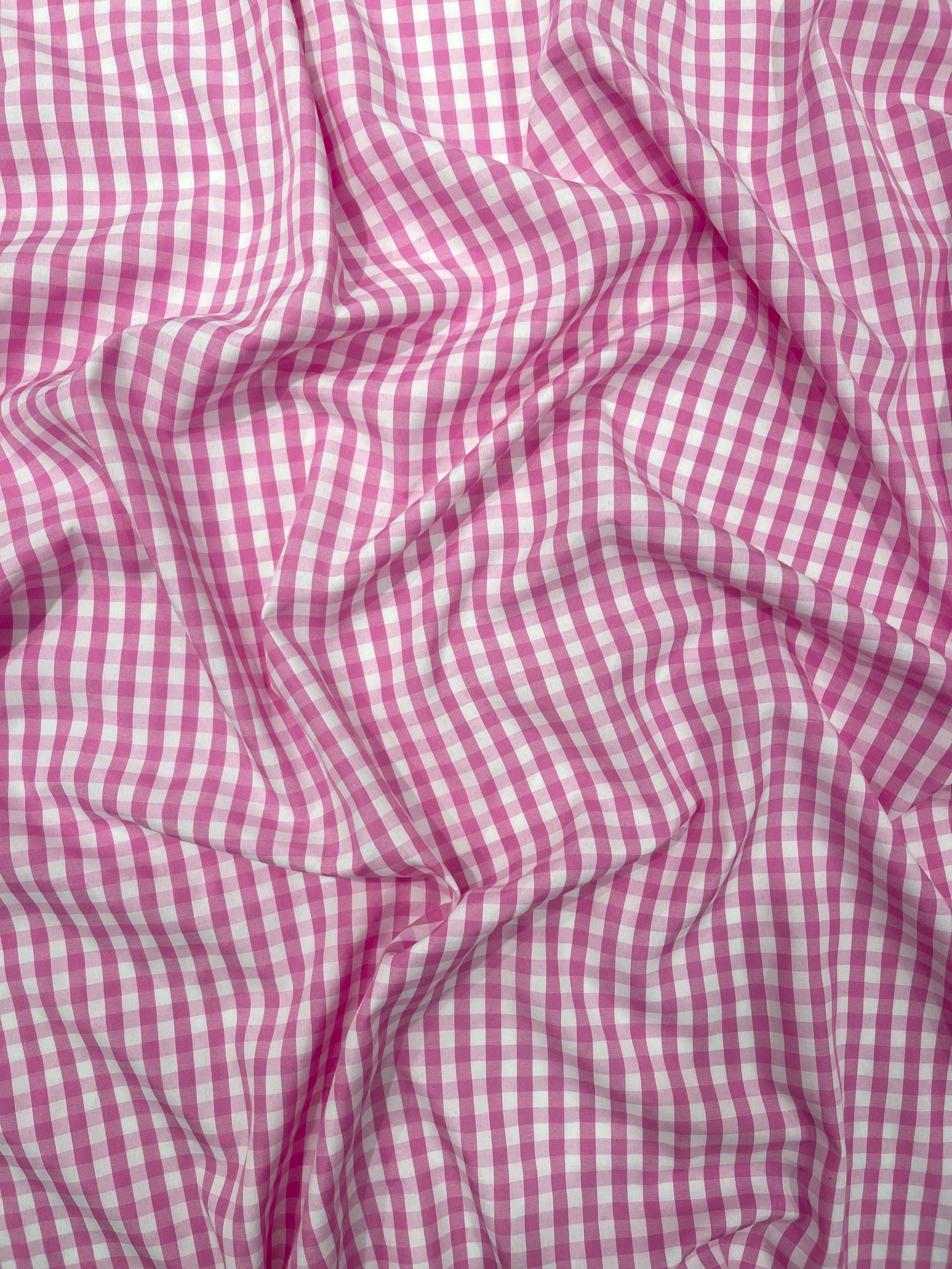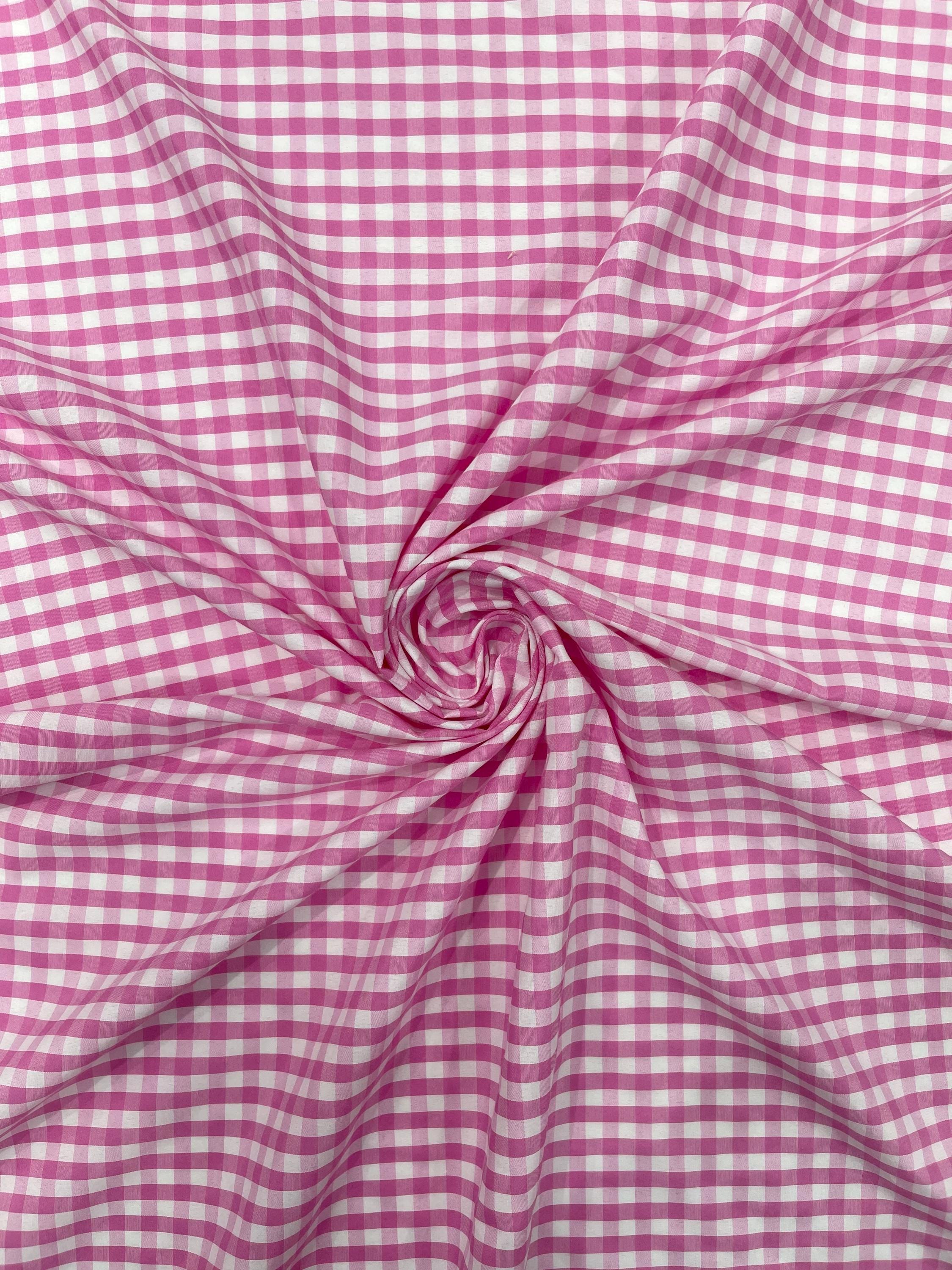 Pink & White Gingham Poly Cotton Fabric by Yard 1/4” Squares, Checkered Fabric