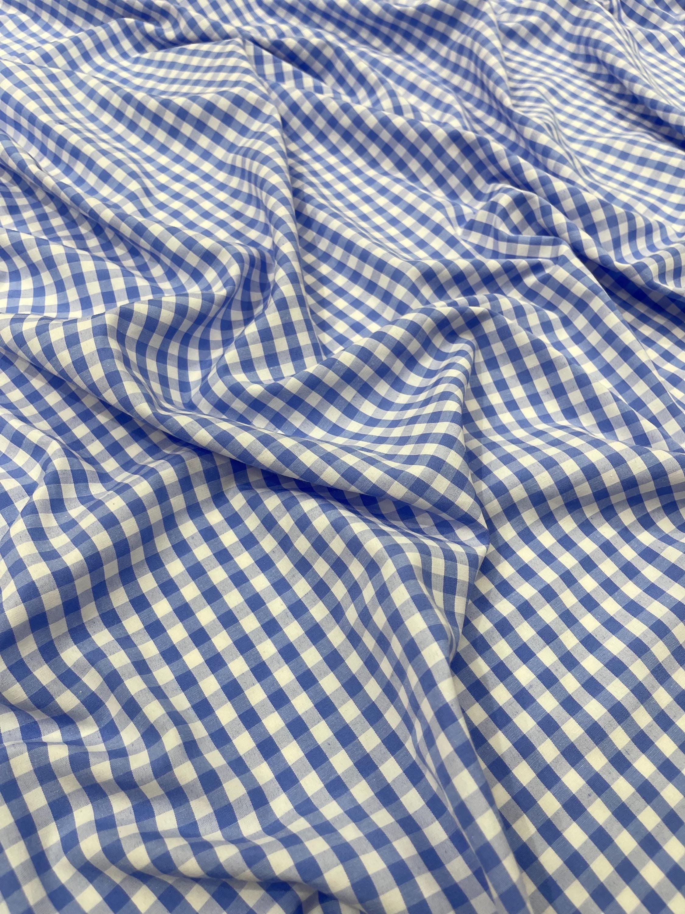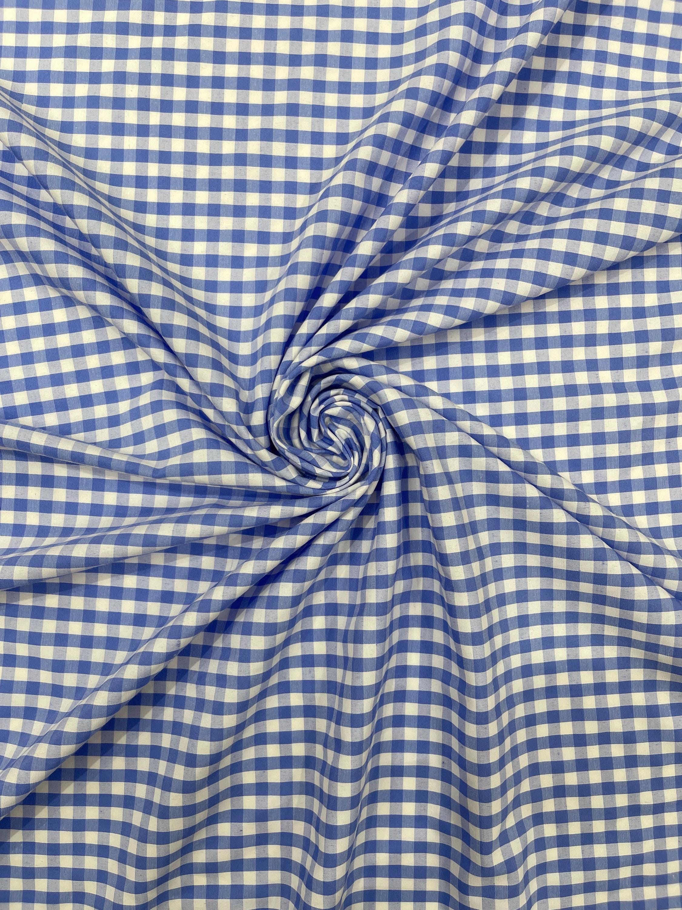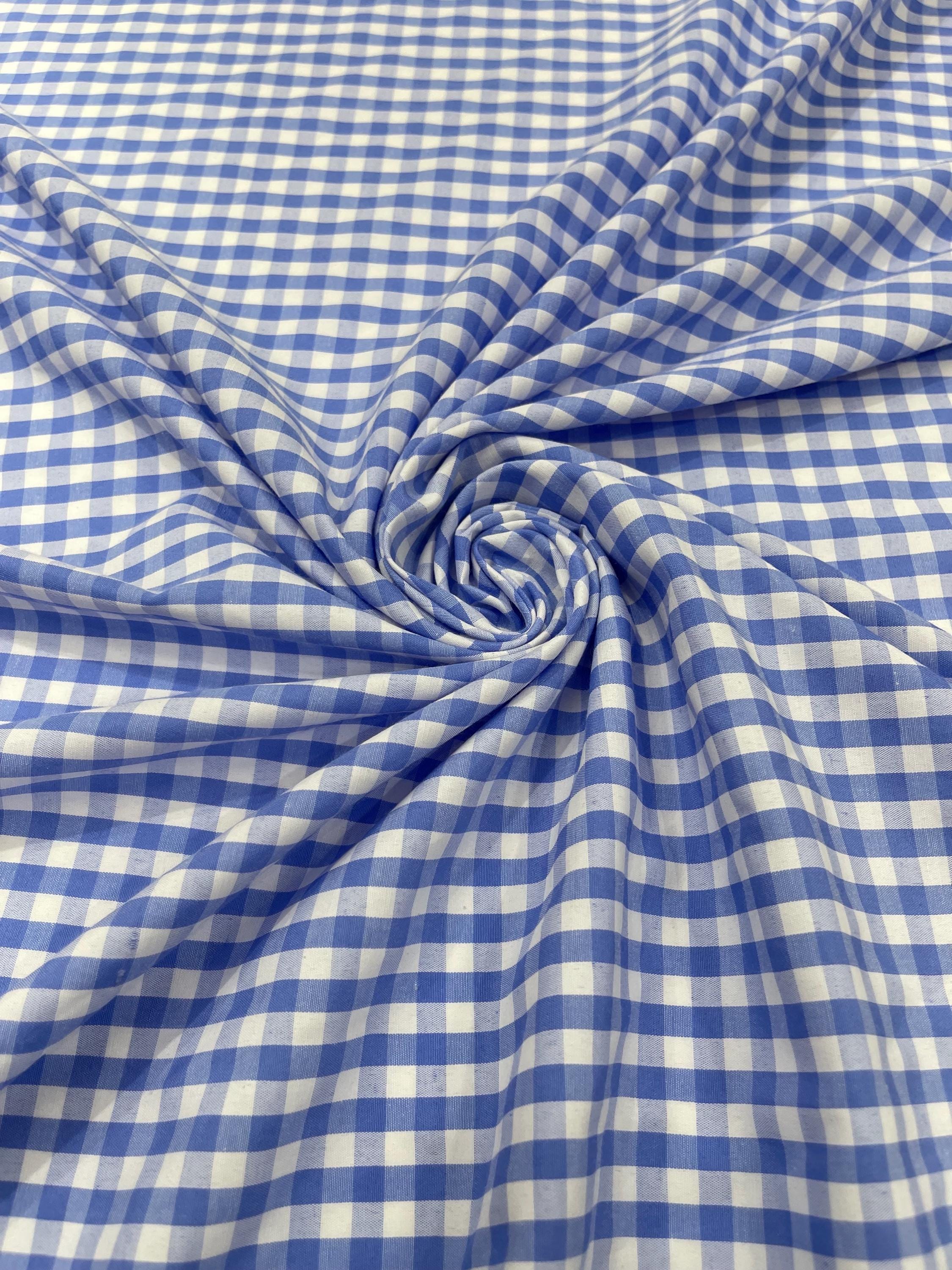 Baby Blue & White Gingham Poly Cotton Fabric by Yard 1/4” Squares, Checkered Fabric