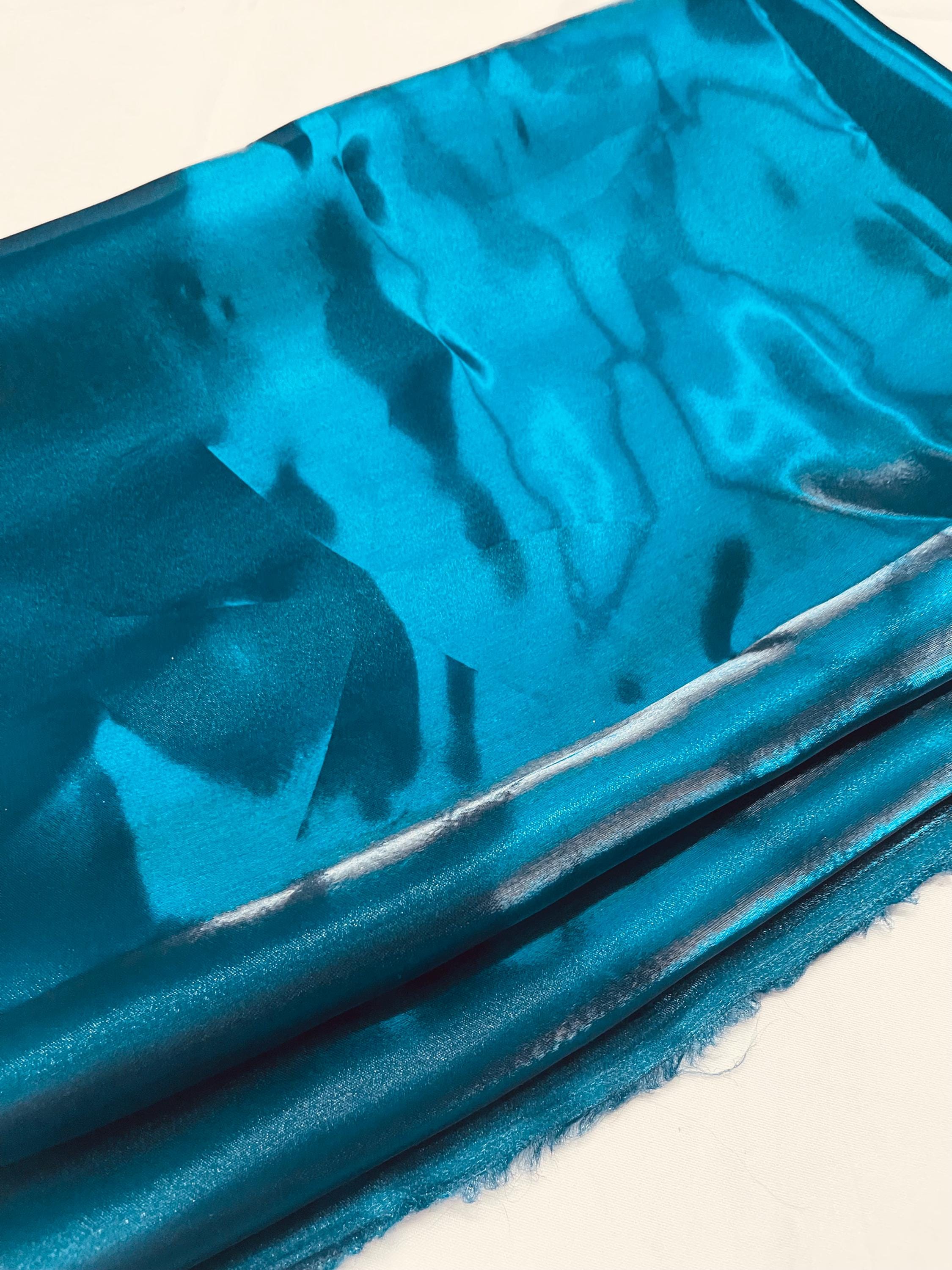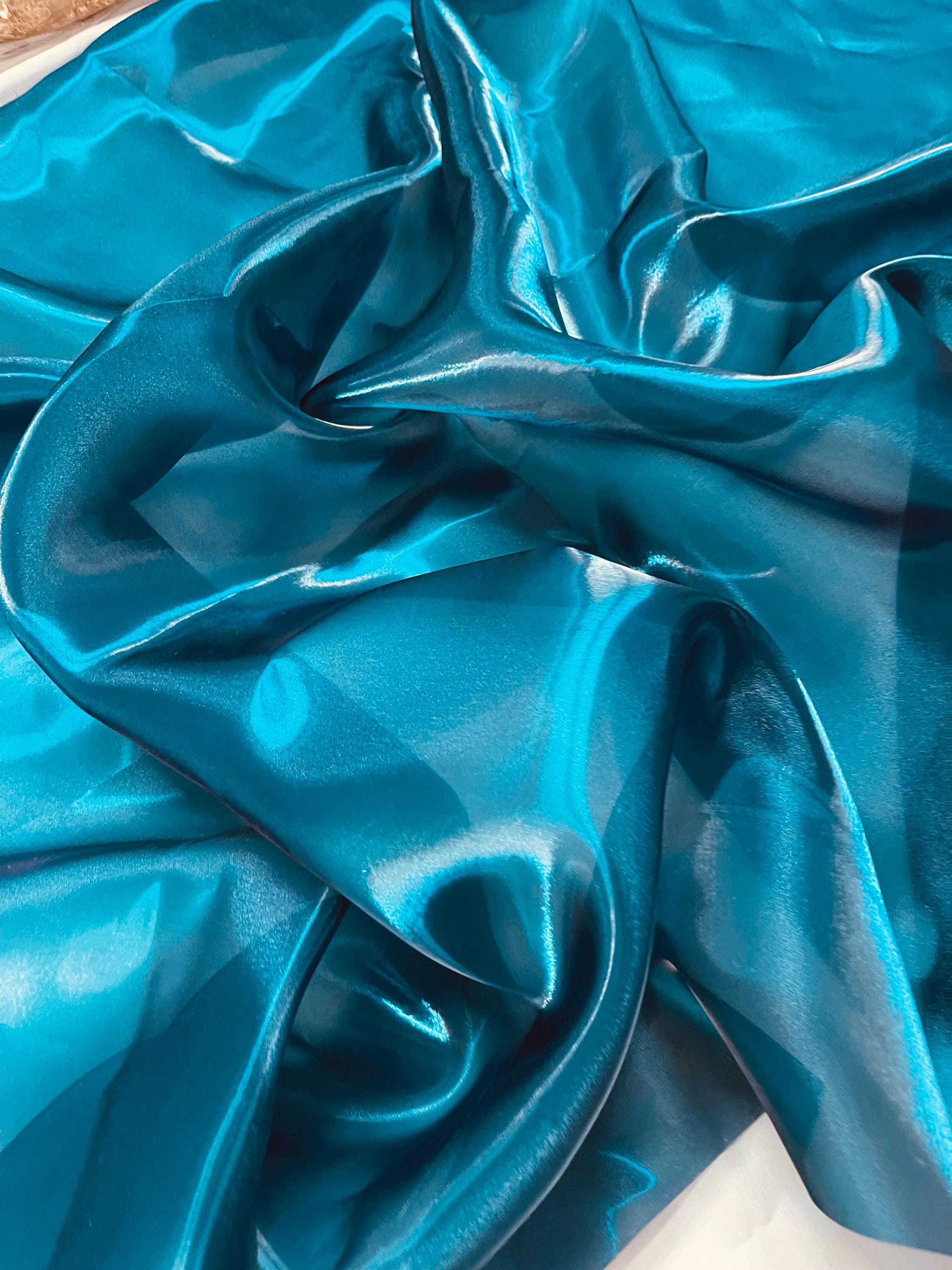 Peacock Blue Liquid Organza Fabric: Crystal Reflective Glossy Sheer Organza, 60" Wide By The Yard