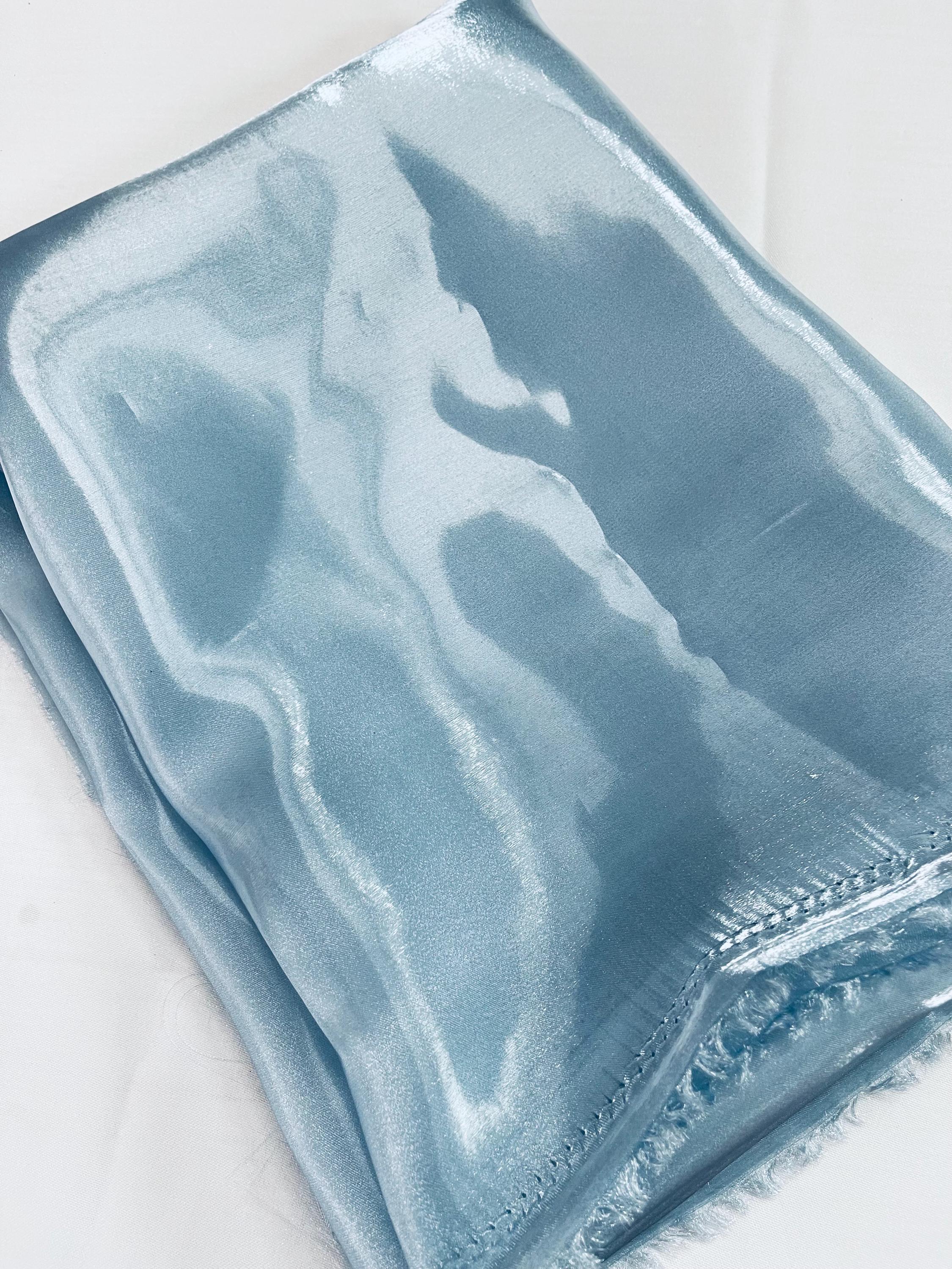 Glossy Organza, also known as liquid Organza, is a luxurious and lightweight fabric characterized by its smooth, fluid drape and subtle sheen. This semi-sheer material combines the delicate, airy qualities of traditional Organza with a glossy finish, giving it an elegant and sophisticated appearance. It is made from 100% polyester , but has a very silky feel to it. The fabric has a soft, almost liquid-like feel, with a natural flow that makes it ideal for creating flowing dresses, evening gowns, scarves, and other garments where movement and fluidity are desired. glossy Organza is popular in high-fashion and formal wear due to its ability to catch and reflect light beautifully, adding a touch of glamour to any design. Its versatility allows for both structured and loose silhouettes, making it suitable for a wide range of styles.