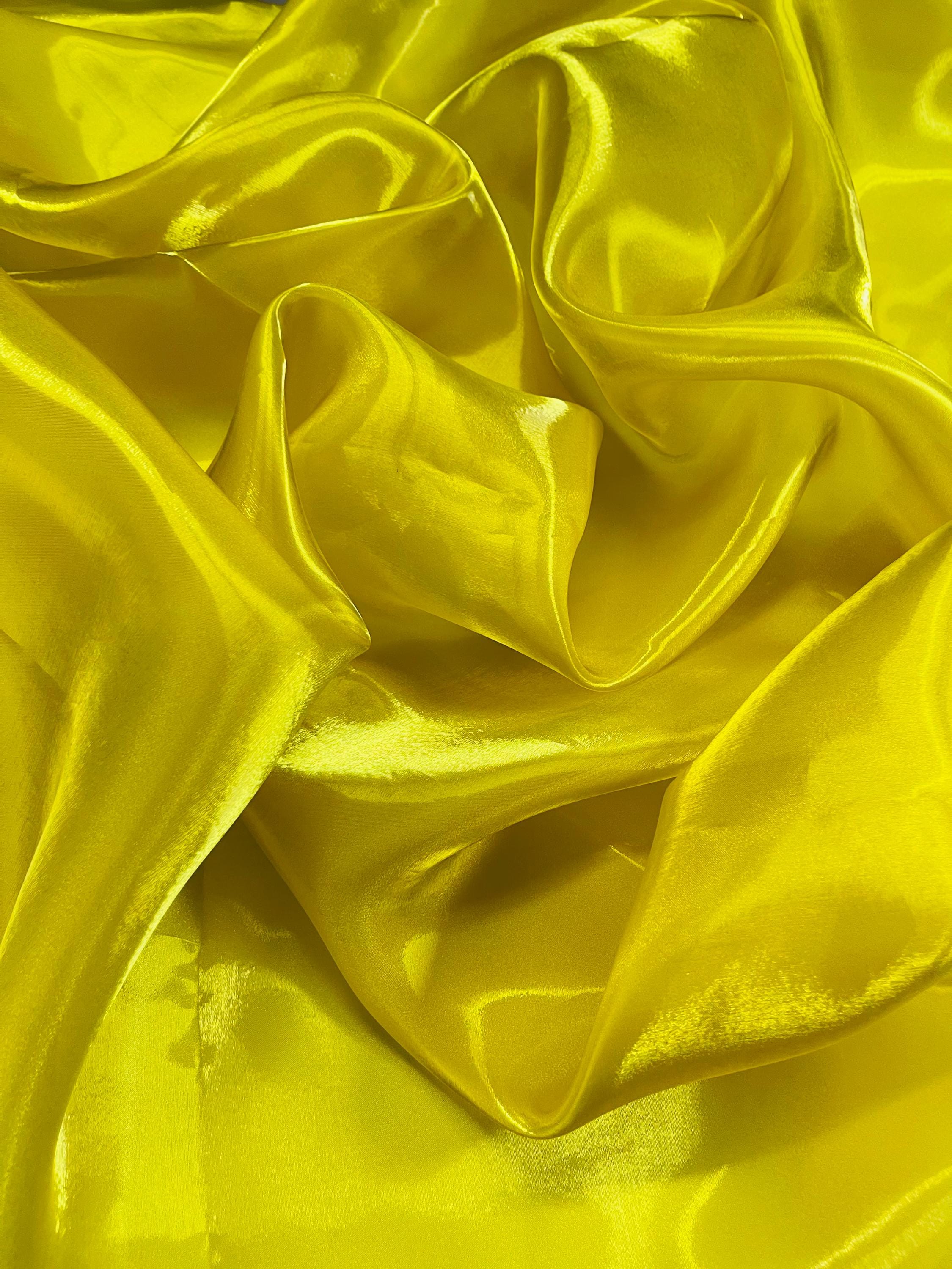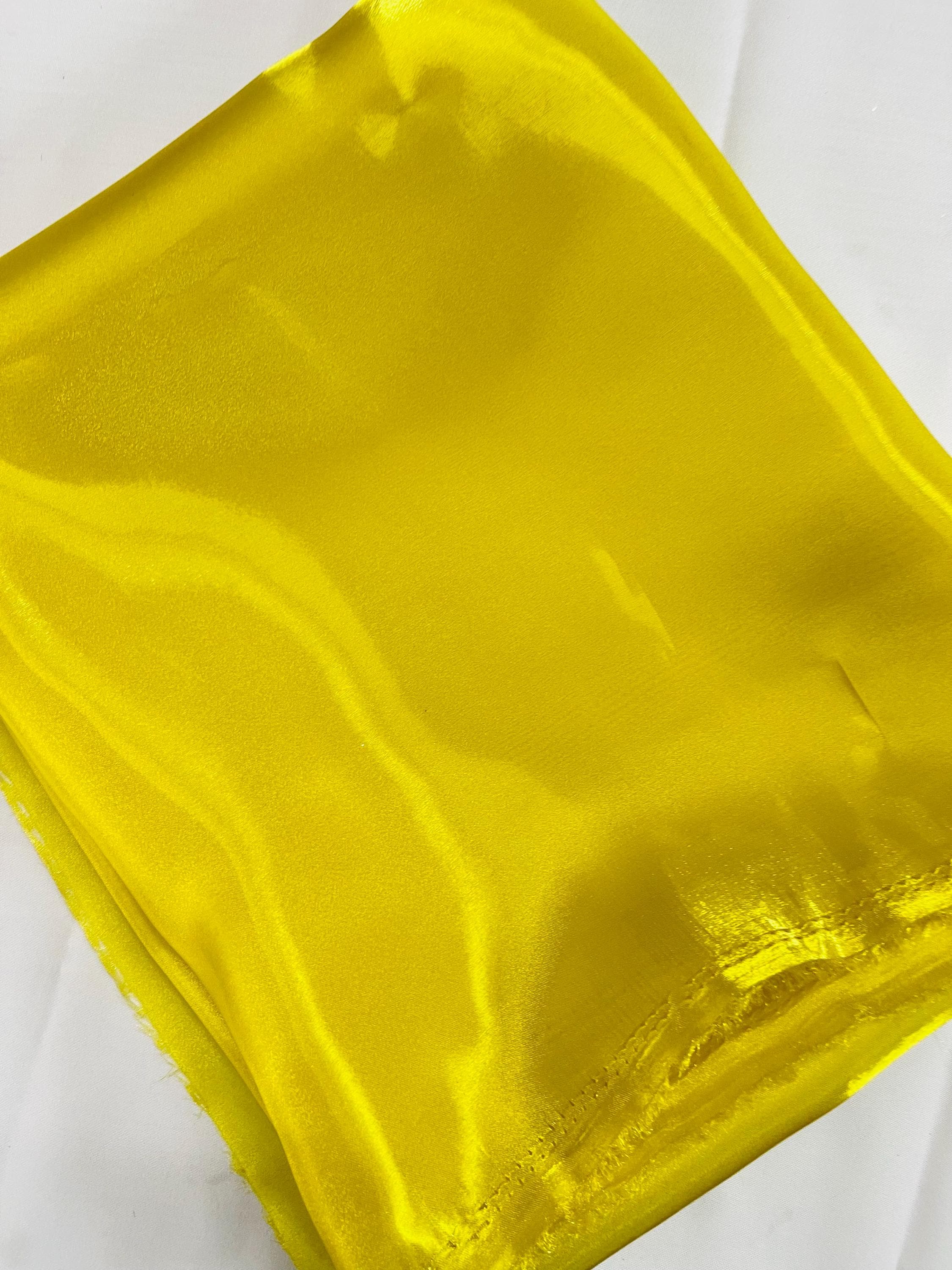 Glossy Organza, also known as liquid Organza, is a luxurious and lightweight fabric characterized by its smooth, fluid drape and subtle sheen. This semi-sheer material combines the delicate, airy qualities of traditional Organza with a glossy finish, giving it an elegant and sophisticated appearance. It is made from 100% polyester , but has a very silky feel to it. The fabric has a soft, almost liquid-like feel, with a natural flow that makes it ideal for creating flowing dresses, evening gowns, scarves, and other garments where movement and fluidity are desired. glossy Organza is popular in high-fashion and formal wear due to its ability to catch and reflect light beautifully, adding a touch of glamour to any design. Its versatility allows for both structured and loose silhouettes, making it suitable for a wide range of styles.
