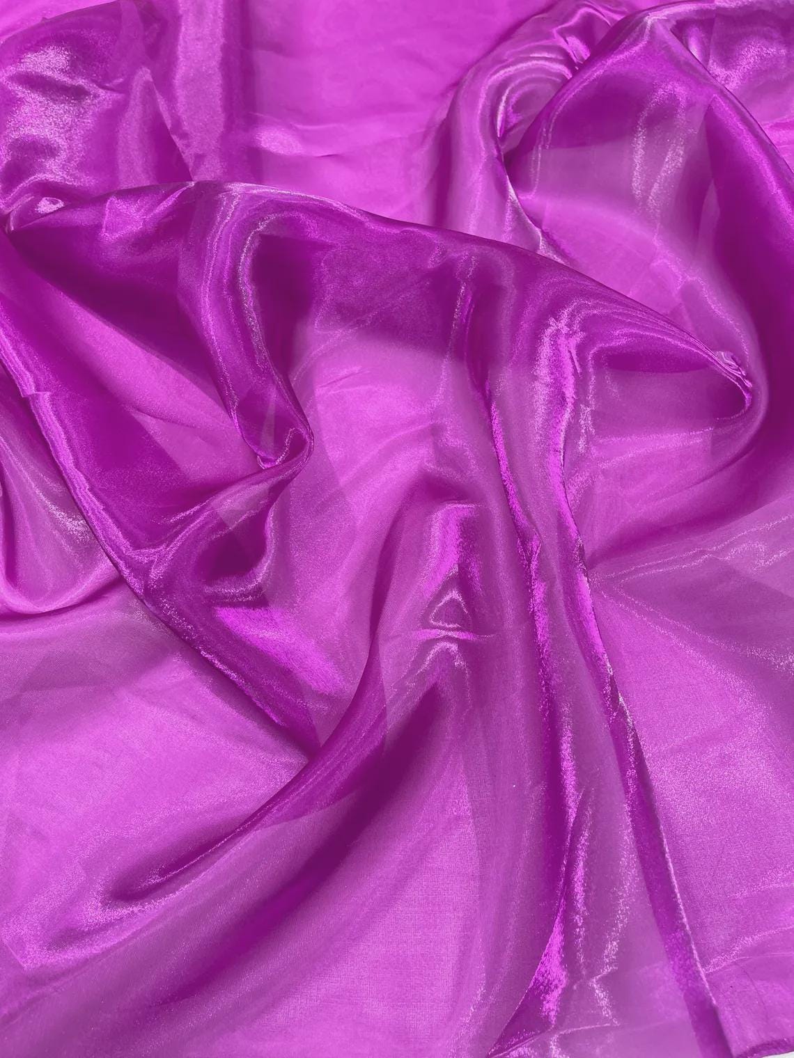 Glossy Organza, also known as liquid Organza, is a luxurious and lightweight fabric characterized by its smooth, fluid drape and subtle sheen. This semi-sheer material combines the delicate, airy qualities of traditional Organza with a glossy finish, giving it an elegant and sophisticated appearance. It is made from 100% polyester , but has a very silky feel to it. The fabric has a soft, almost liquid-like feel, with a natural flow that makes it ideal for creating flowing dresses, evening gowns, scarves, and other garments where movement and fluidity are desired. glossy Organza is popular in high-fashion and formal wear due to its ability to catch and reflect light beautifully, adding a touch of glamour to any design. Its versatility allows for both structured and loose silhouettes, making it suitable for a wide range of styles.
