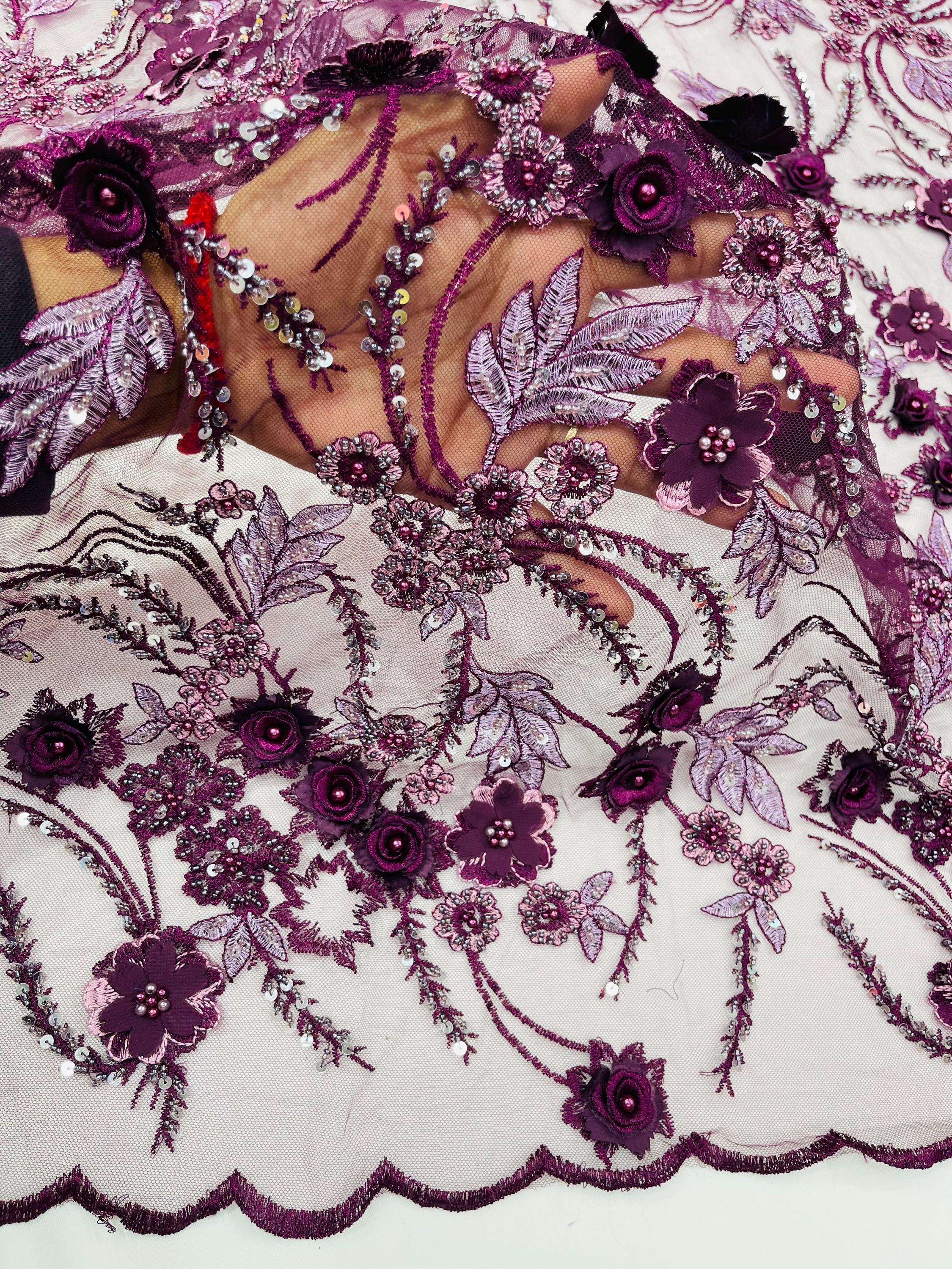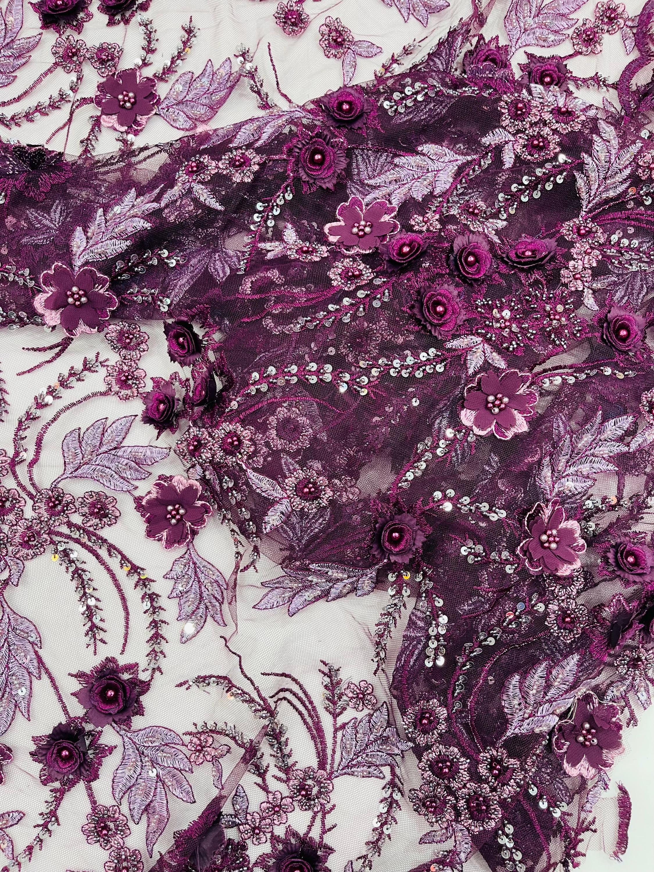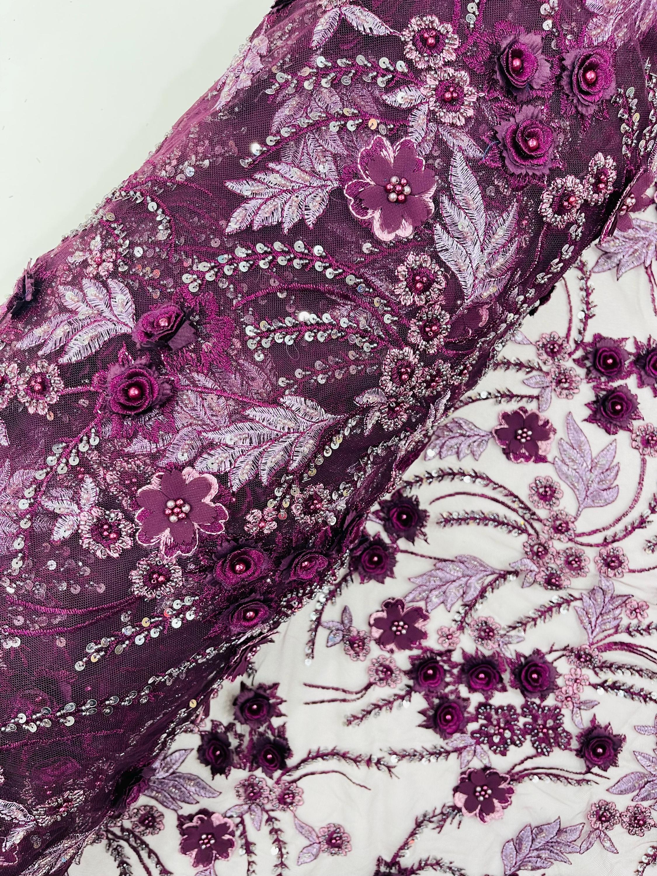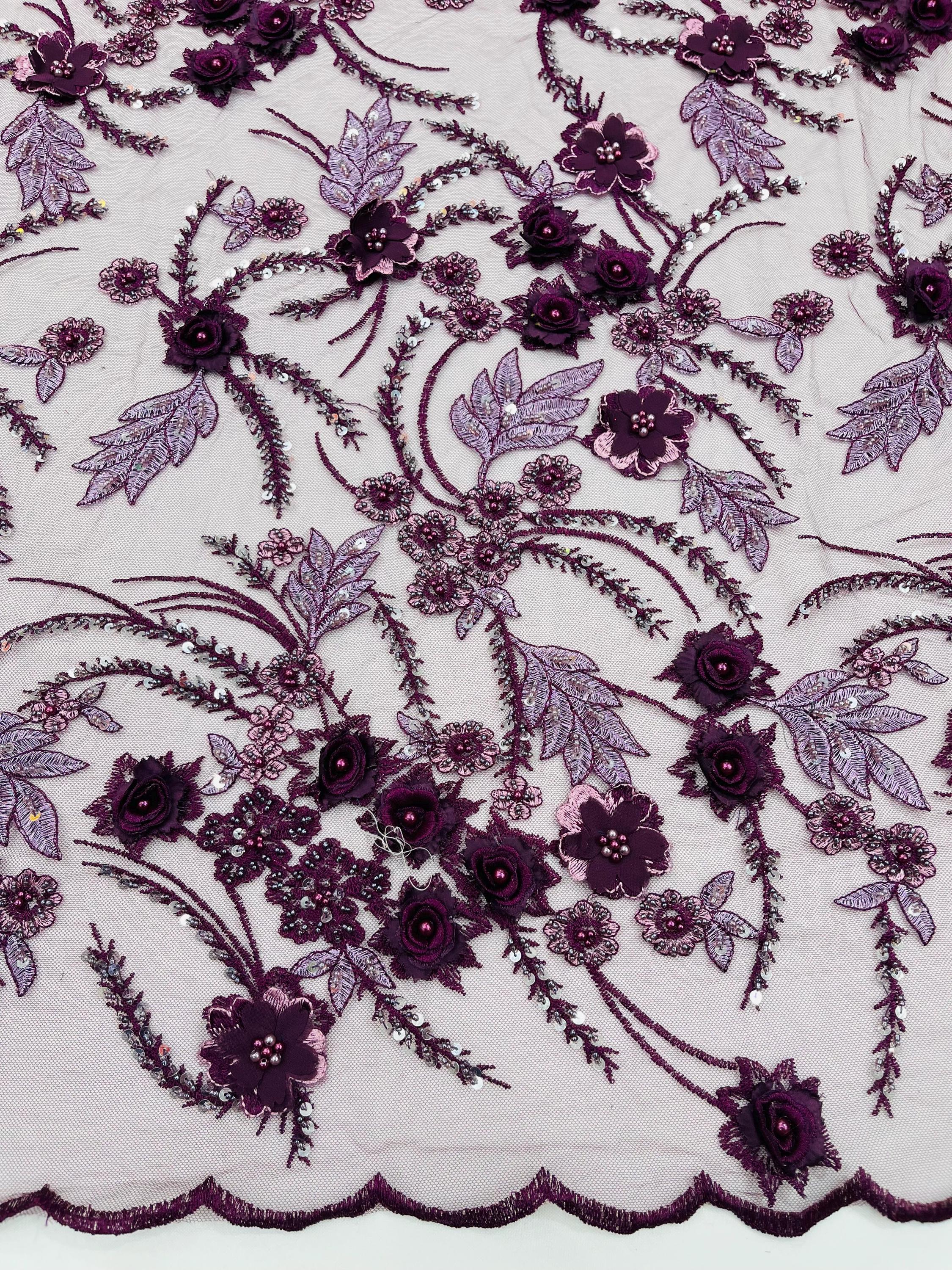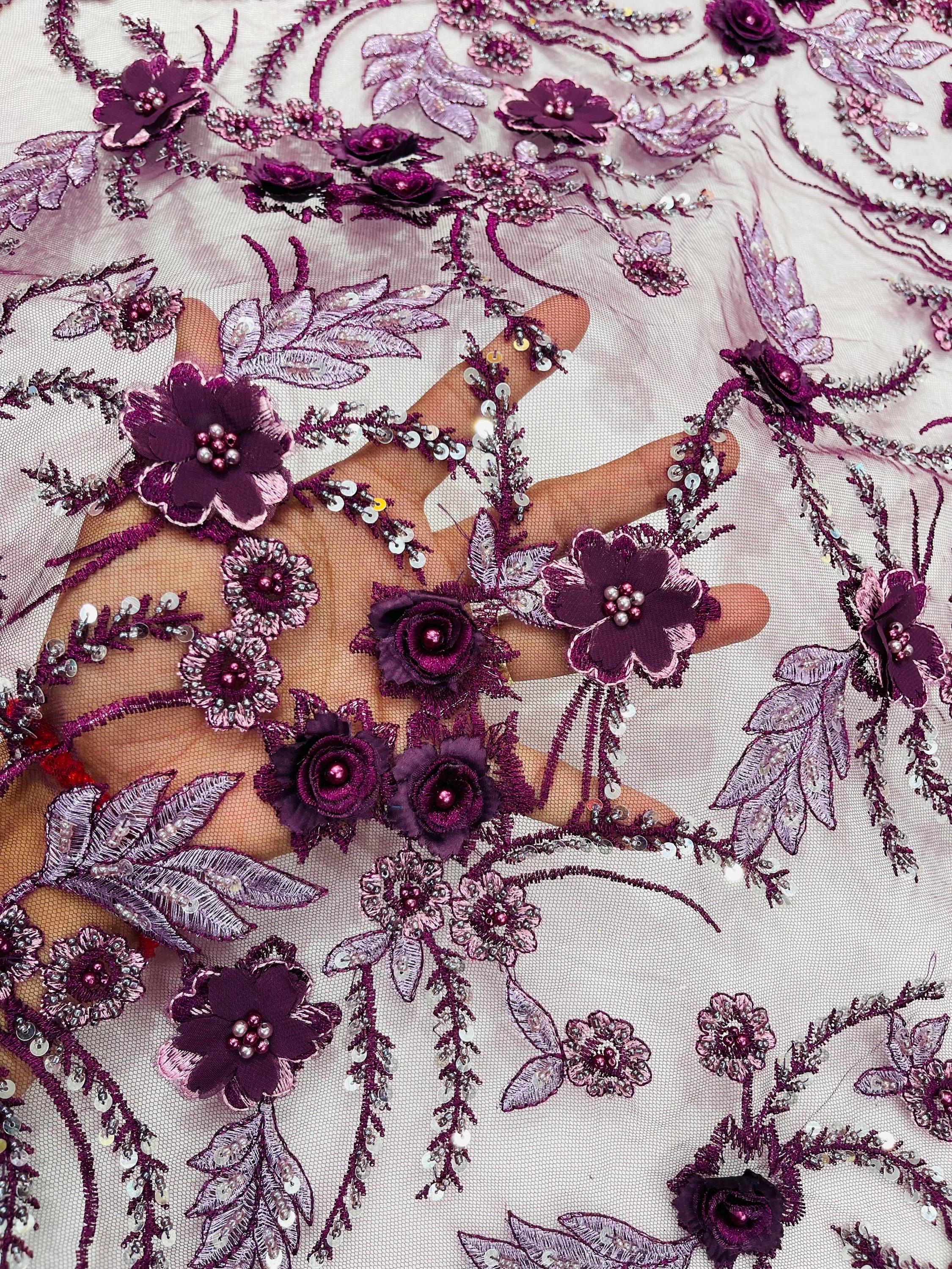 Fancy 3D Floral Beaded Lace Fabric