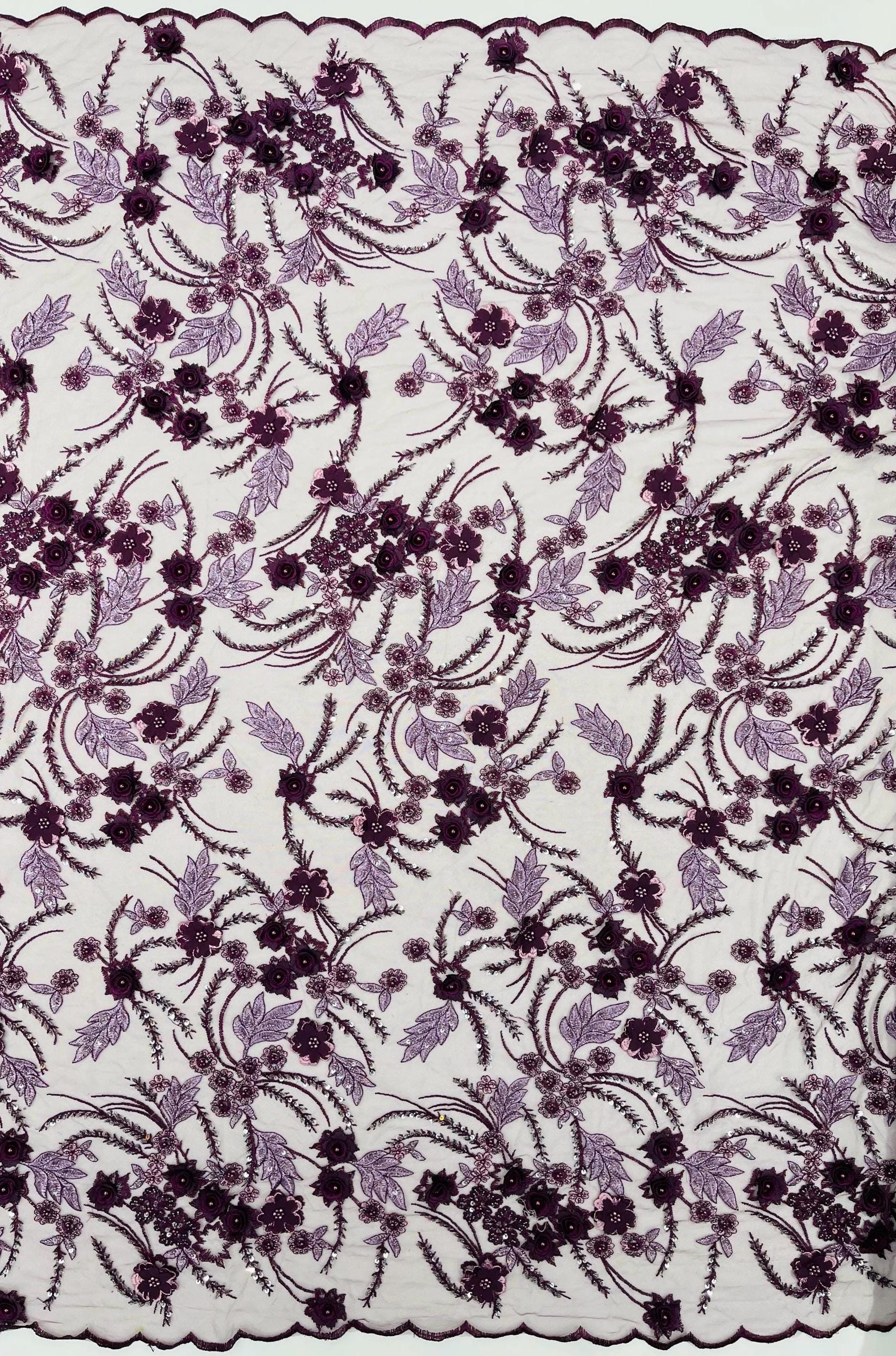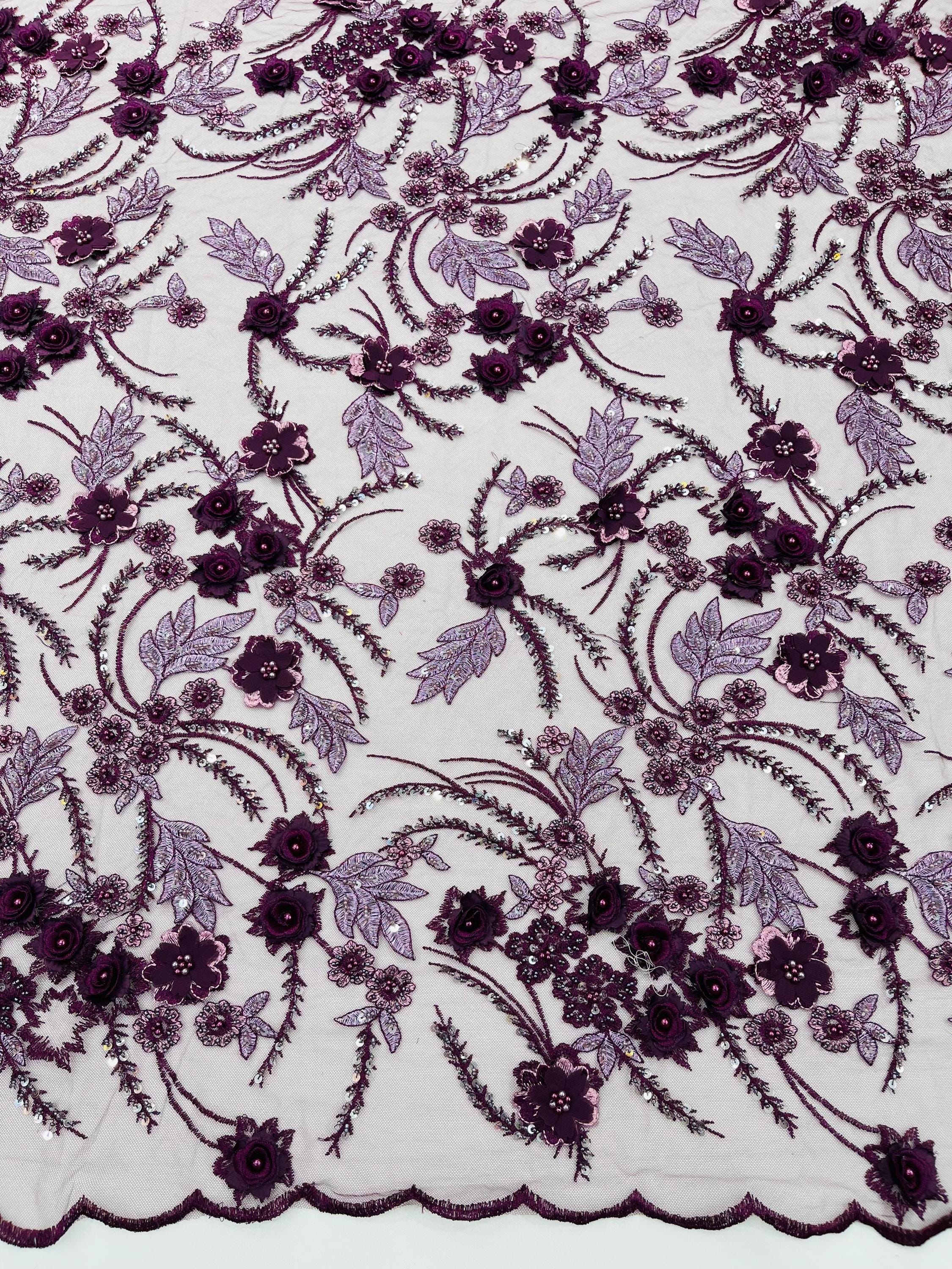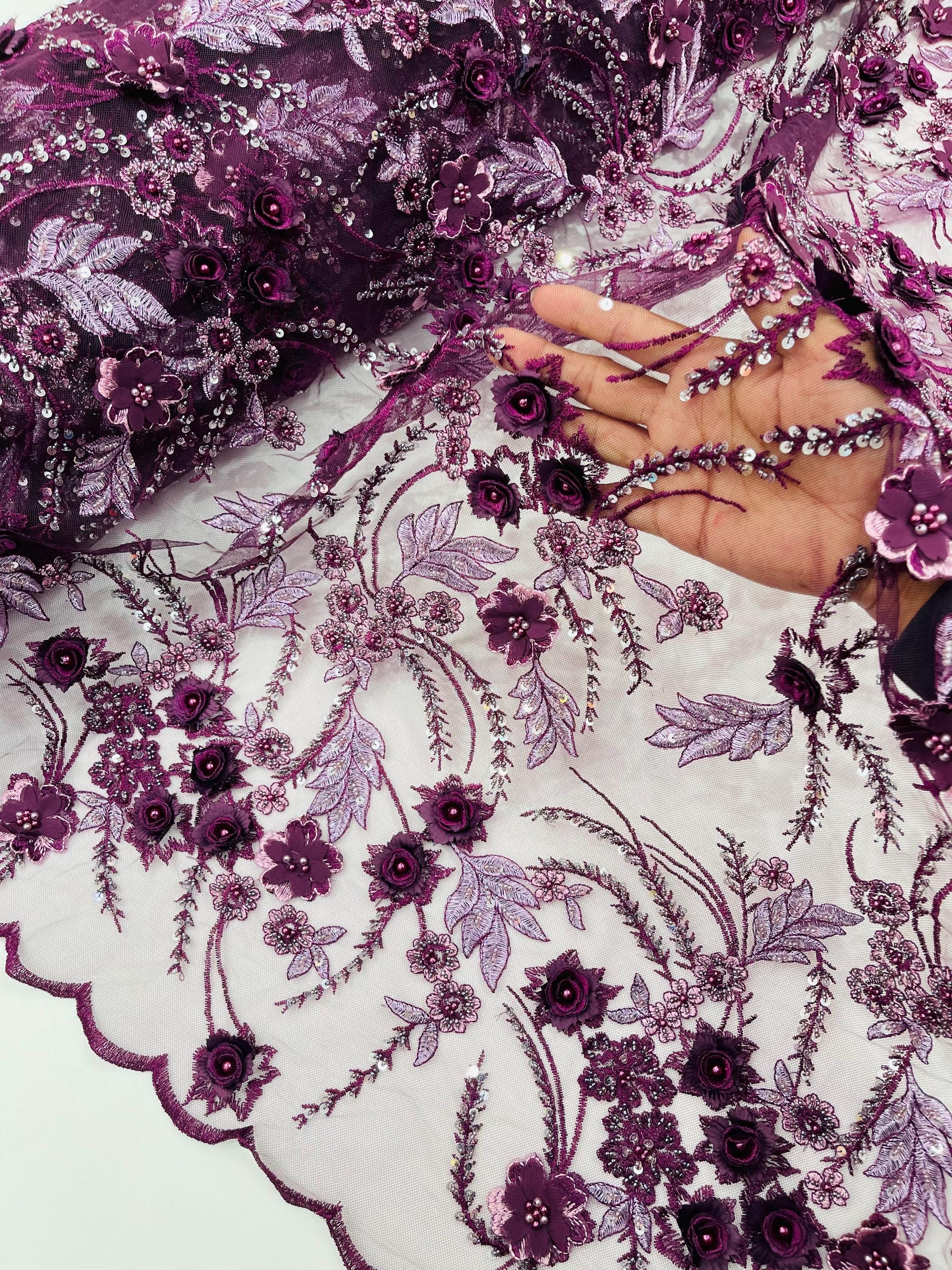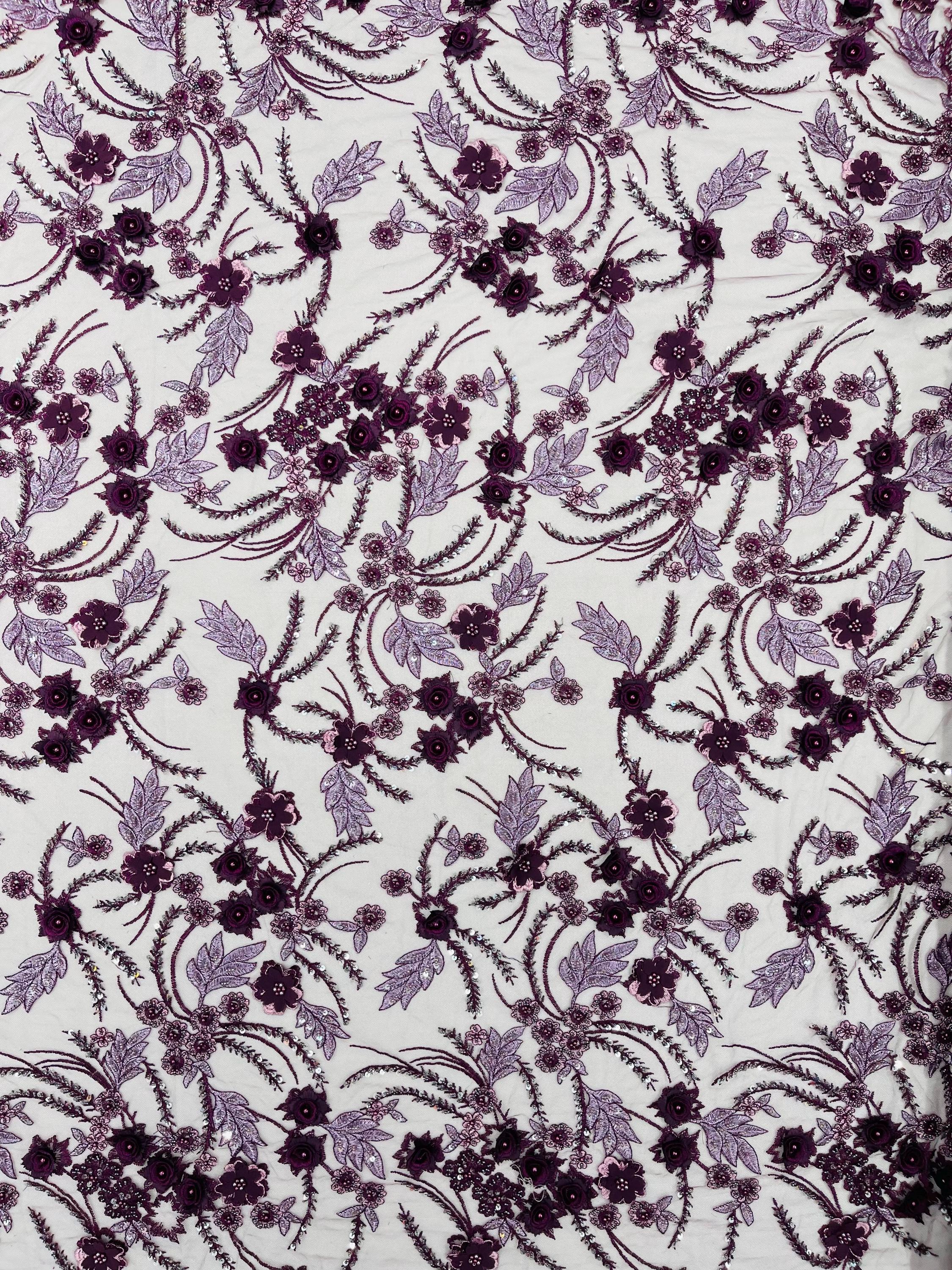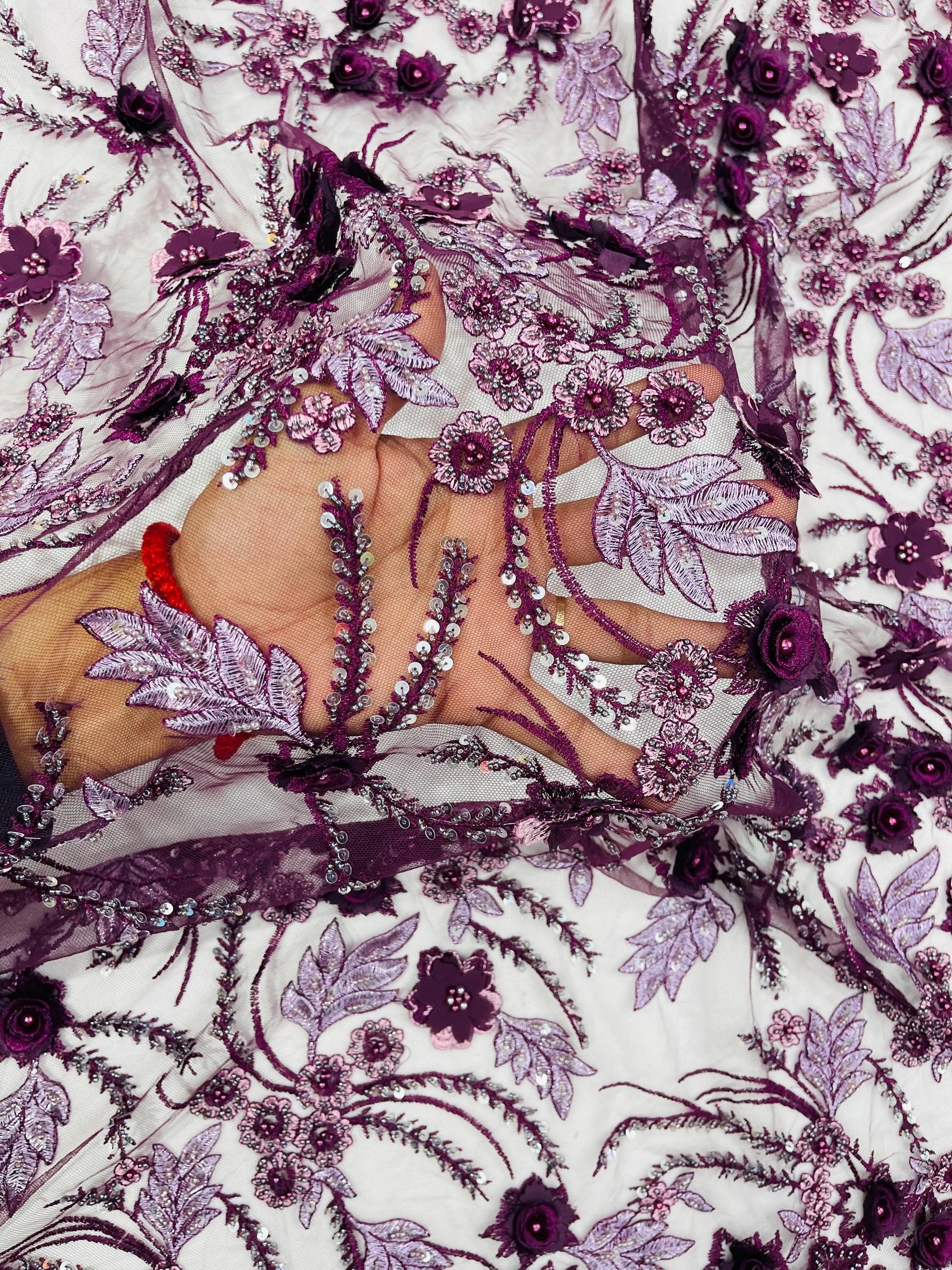 Fancy 3D Floral Beaded Lace Fabric
