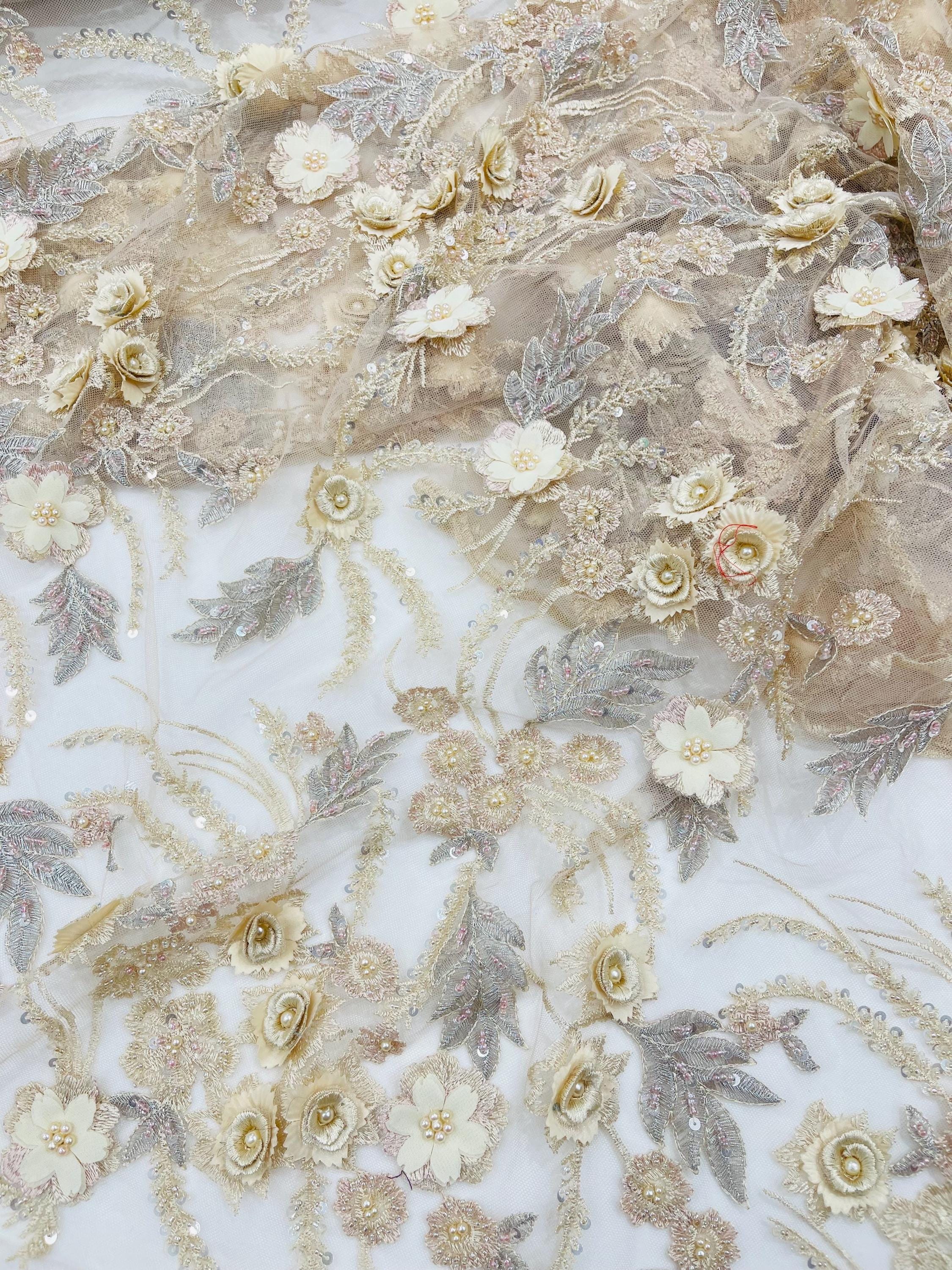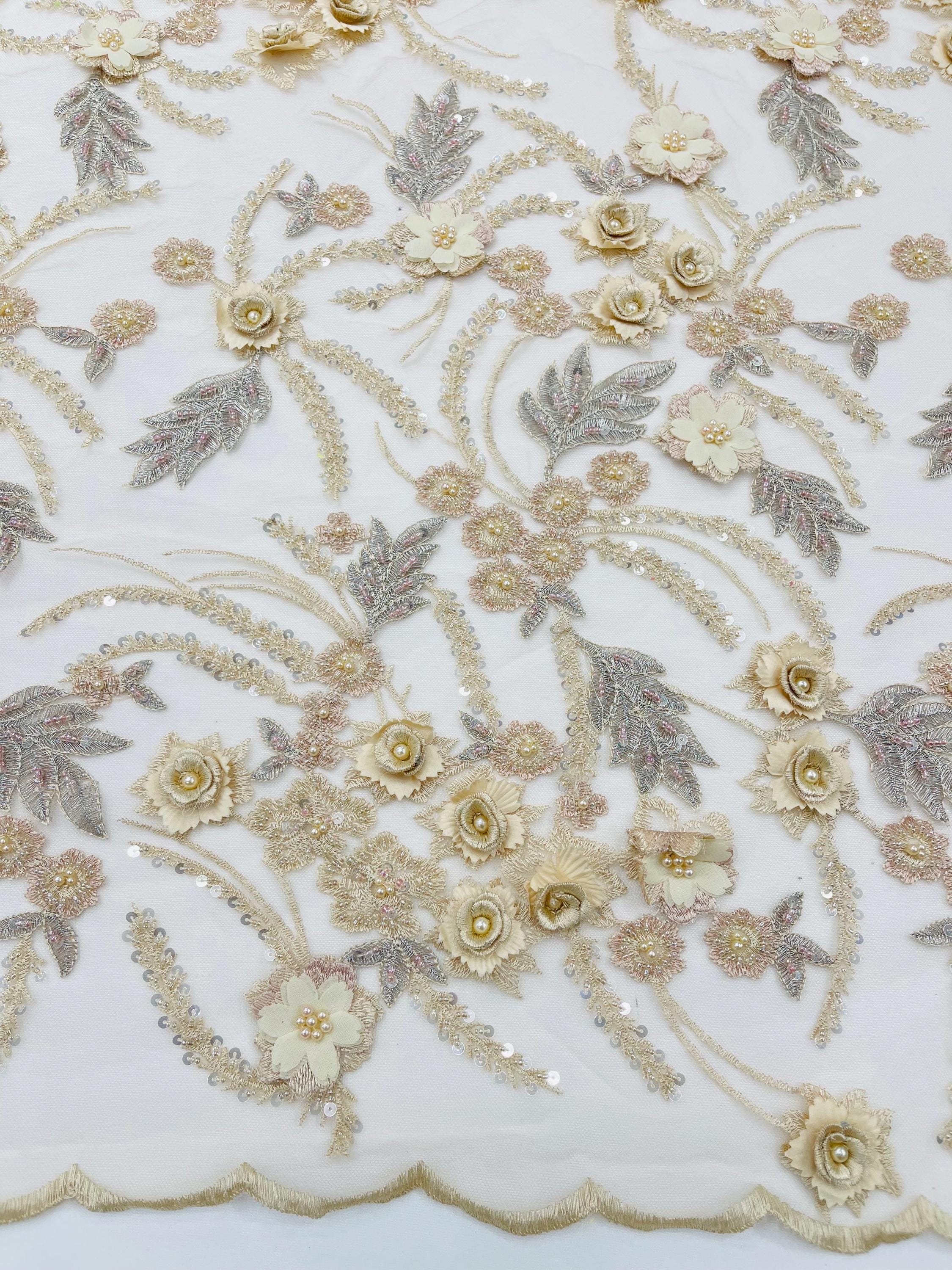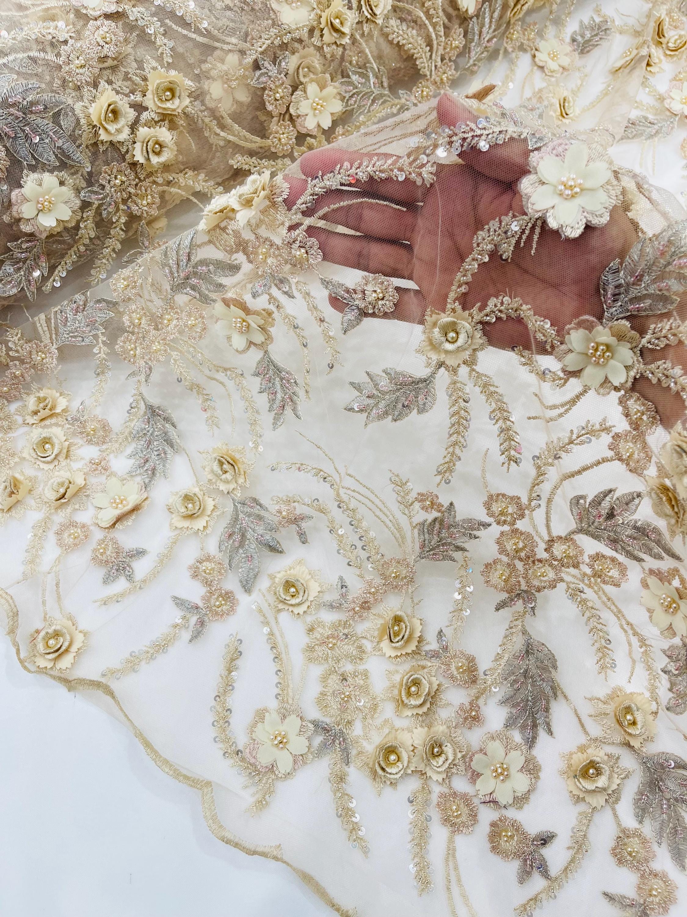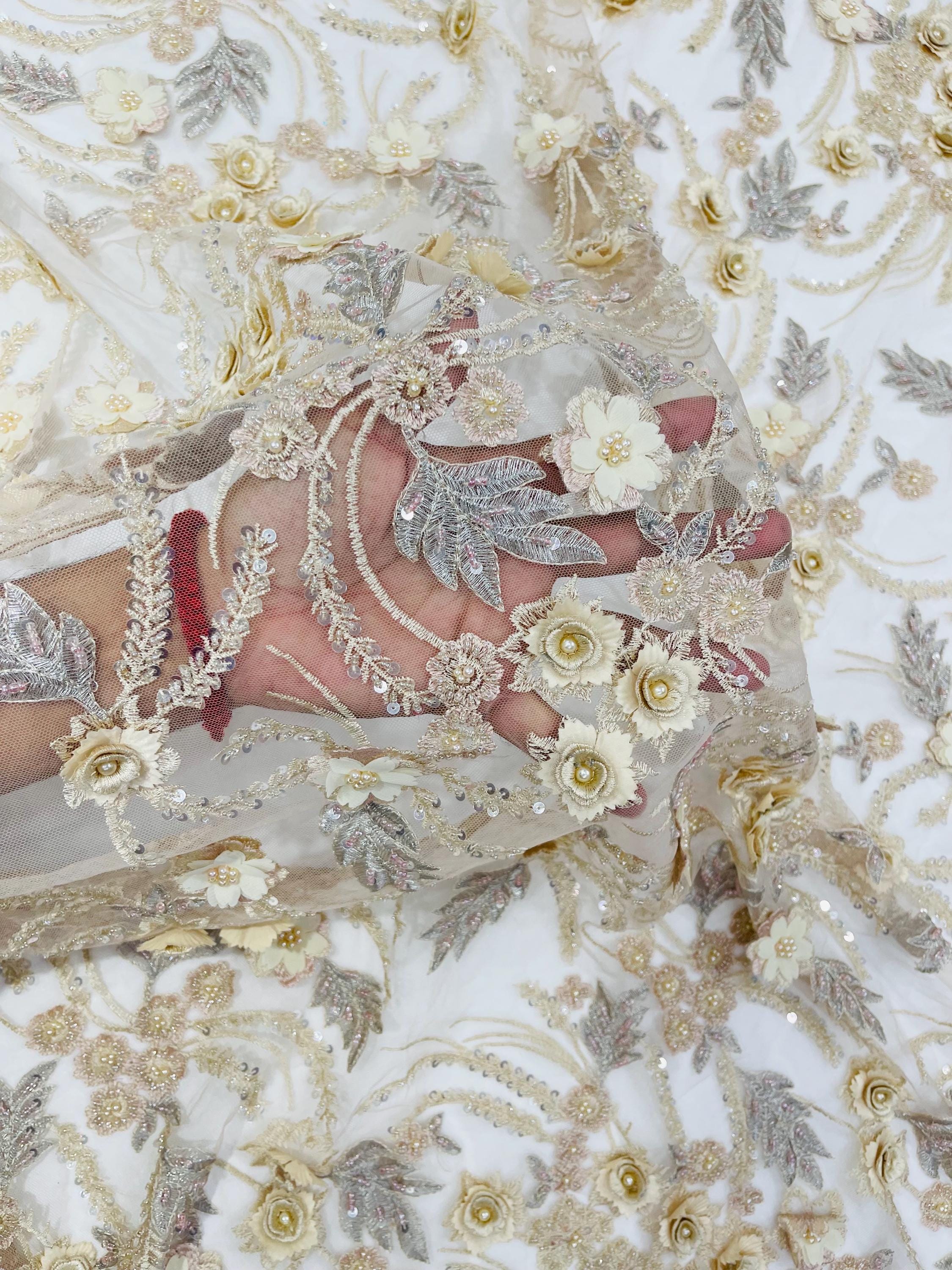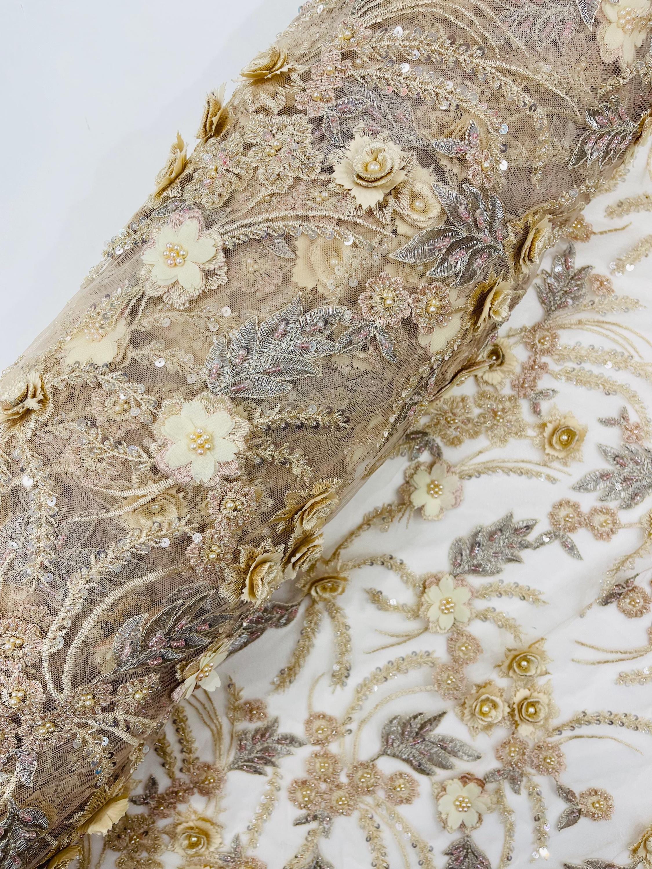 Fancy 3D Floral Beaded Lace Fabric