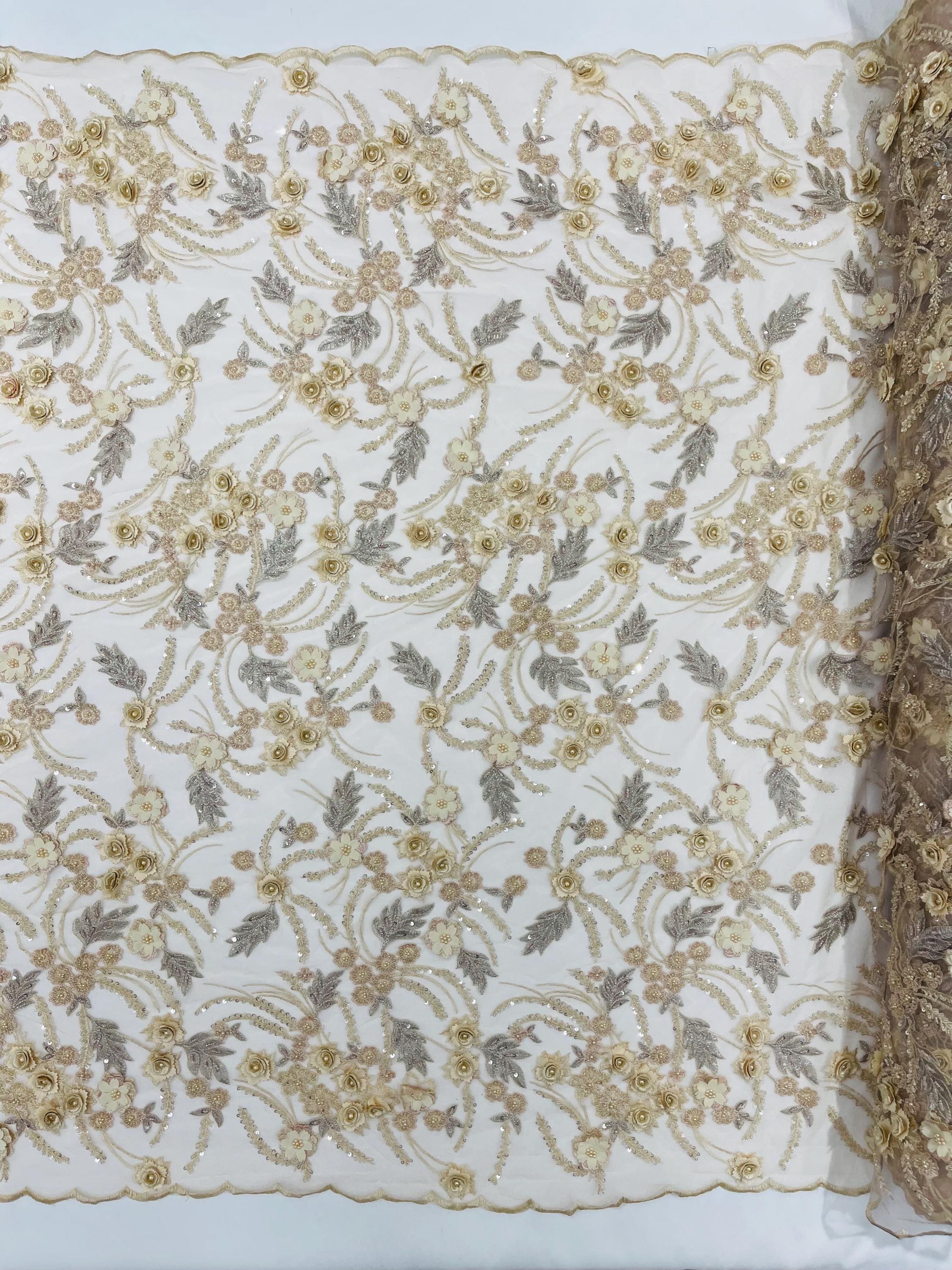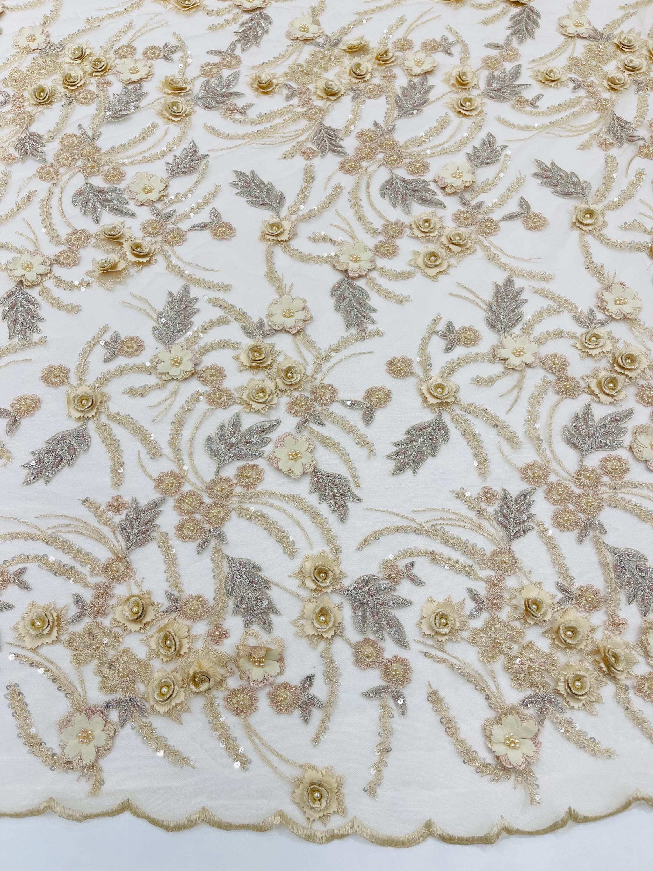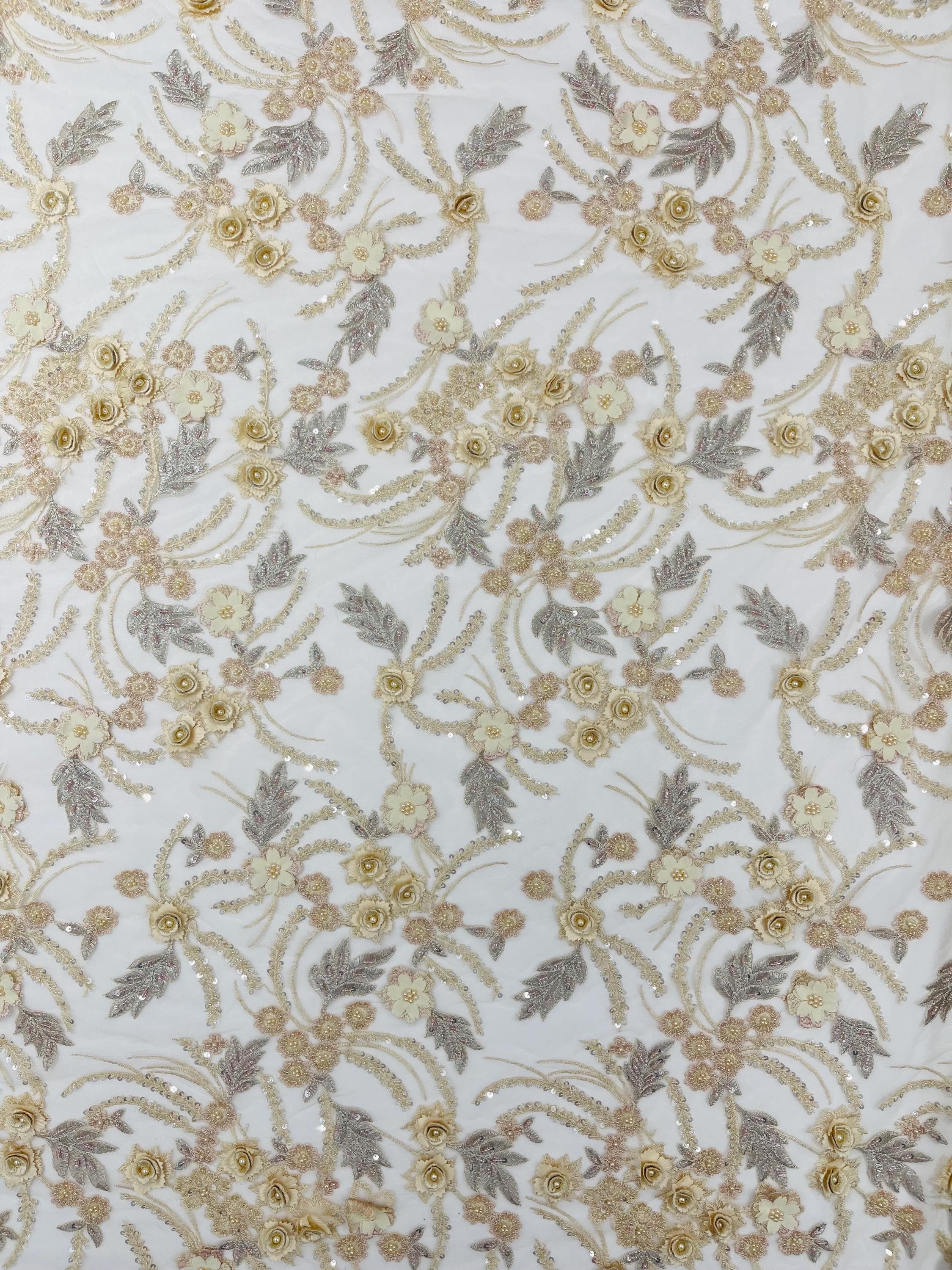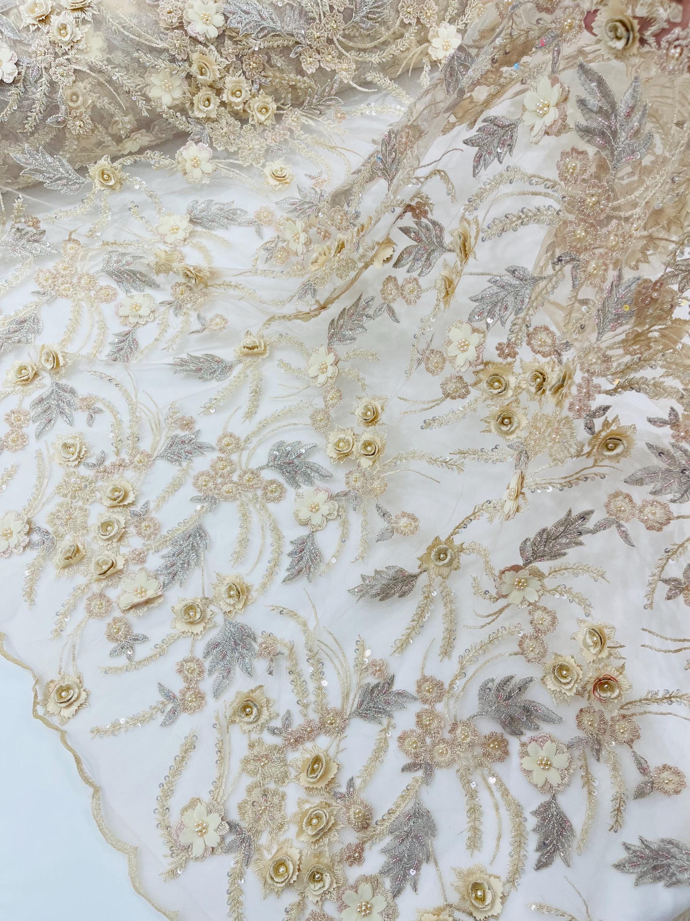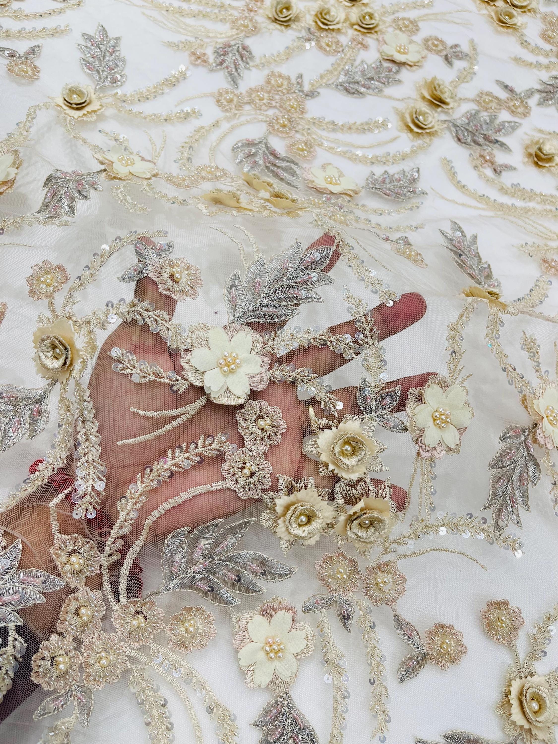 Fancy 3D Floral Beaded Lace Fabric
