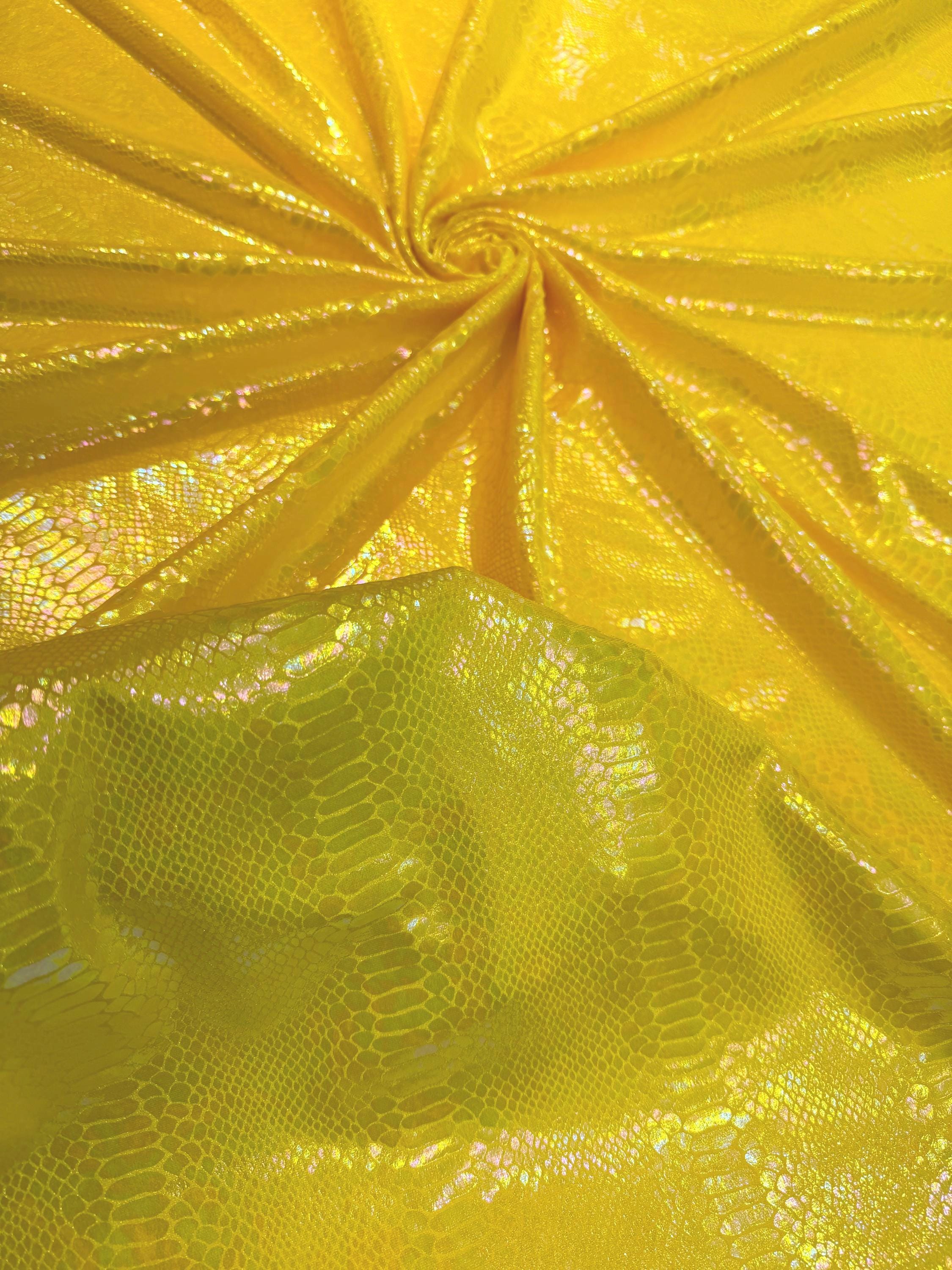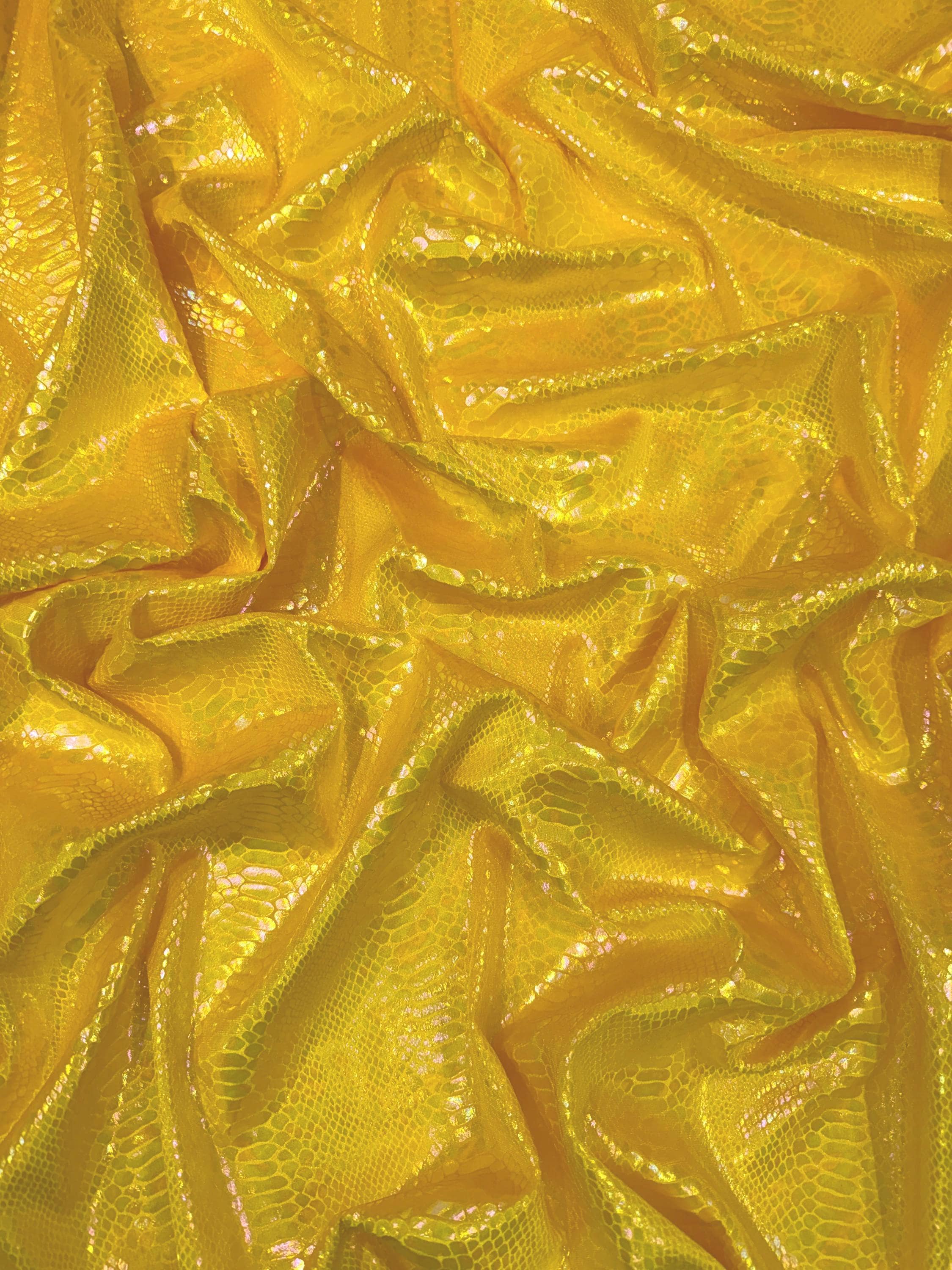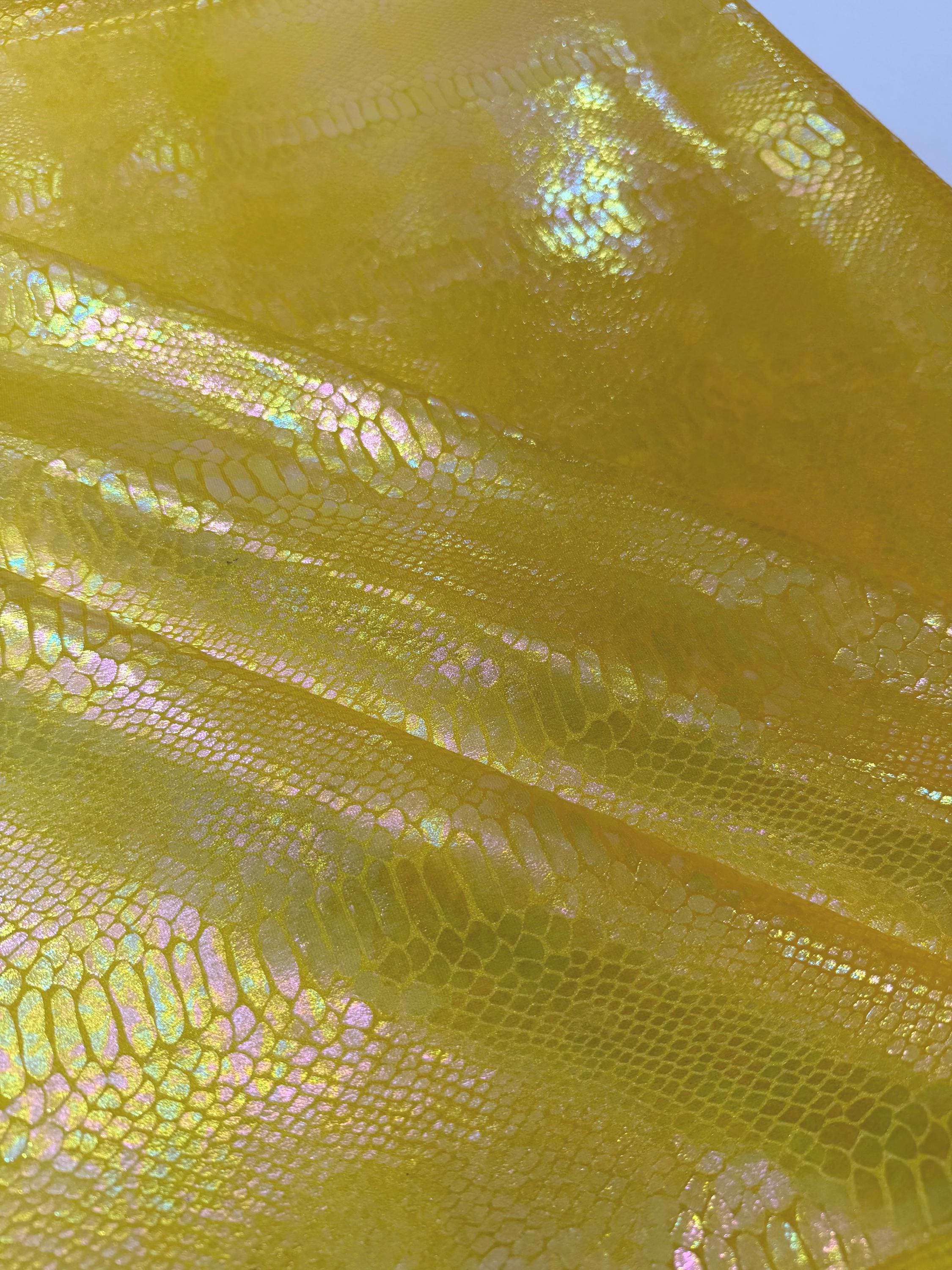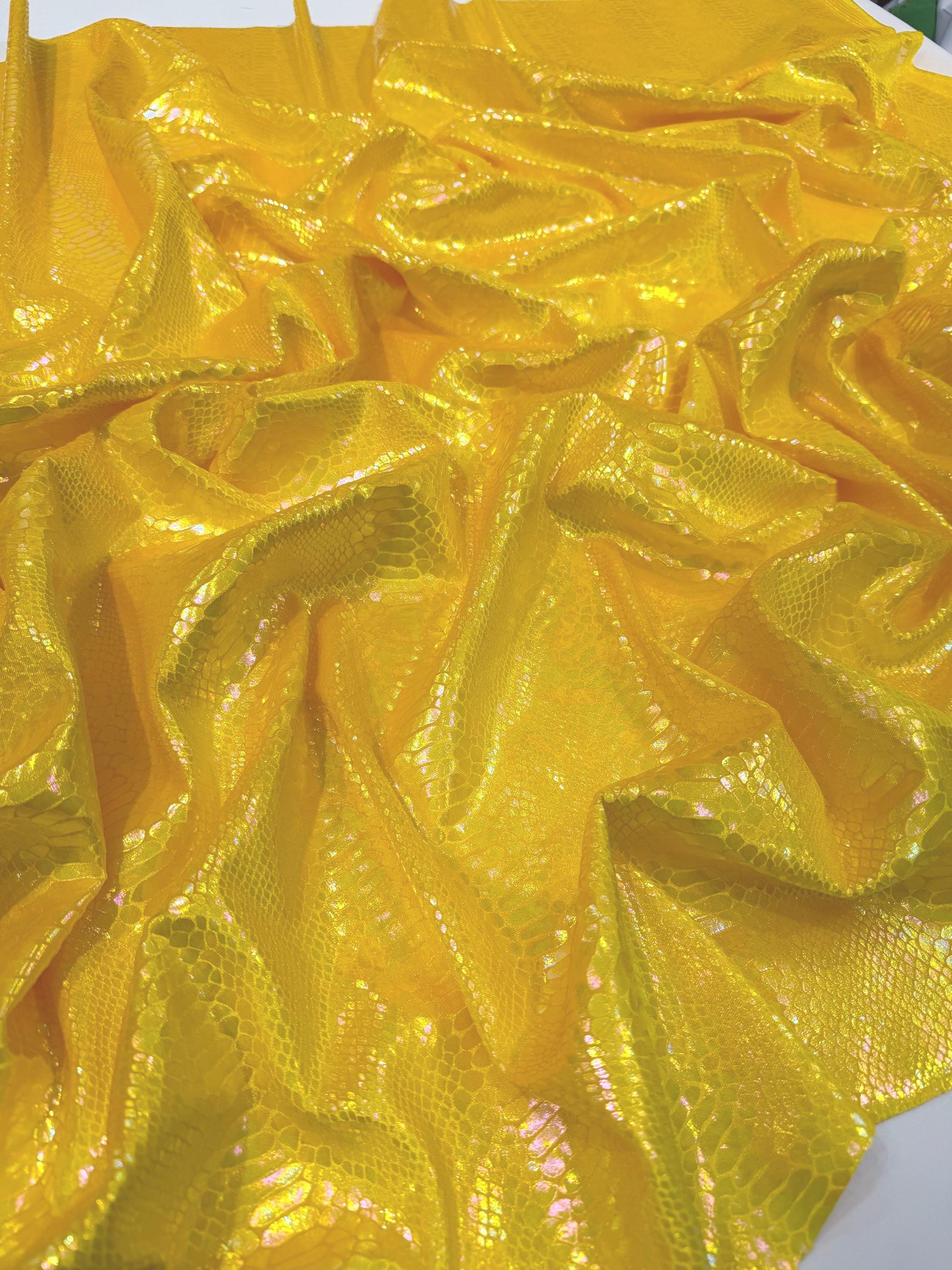 Yellow Iridescent Snake Illusion Foil Stretch Velvet Fabric | Snake Print - by the yard
