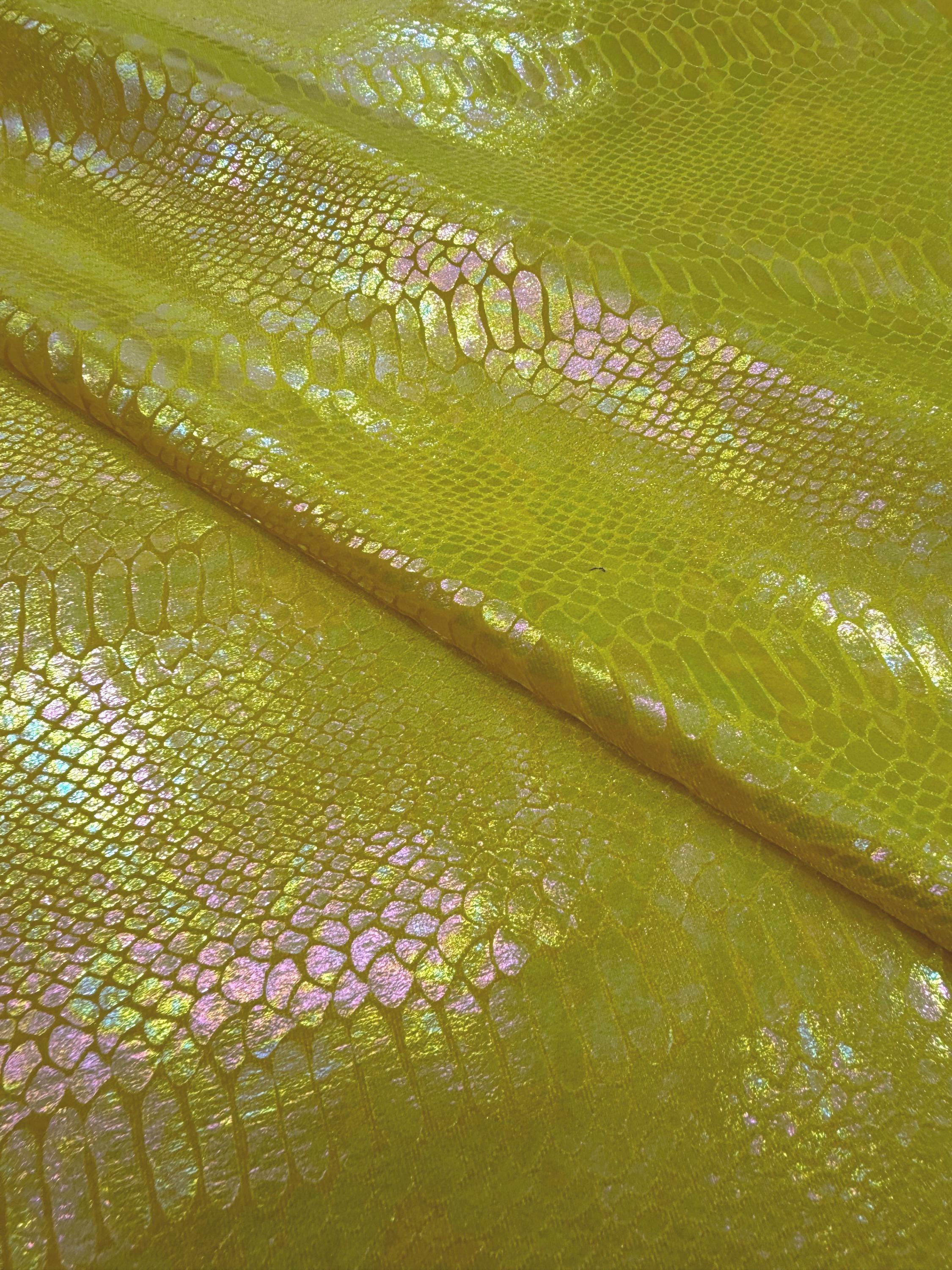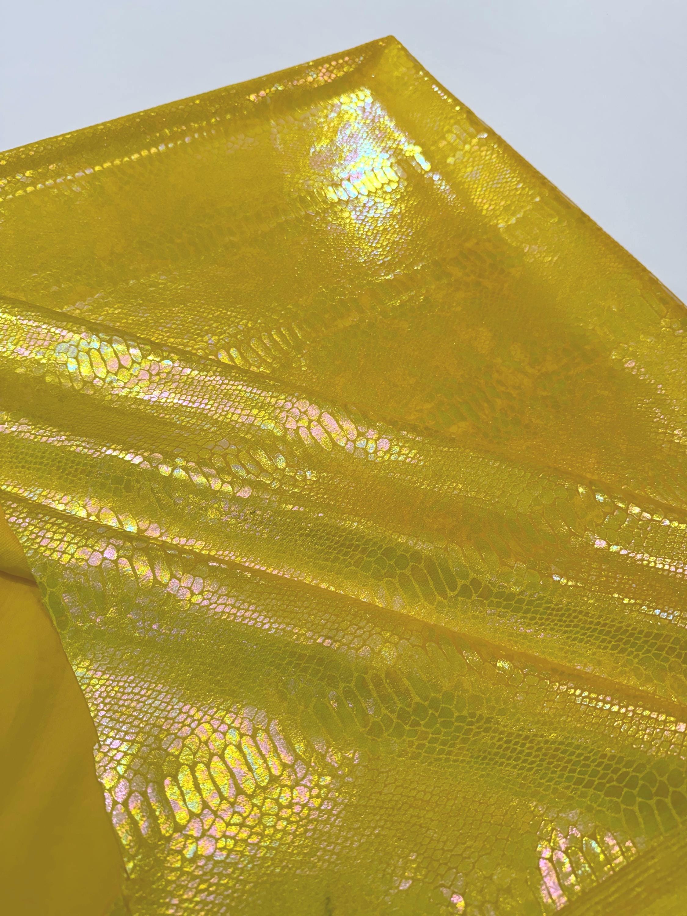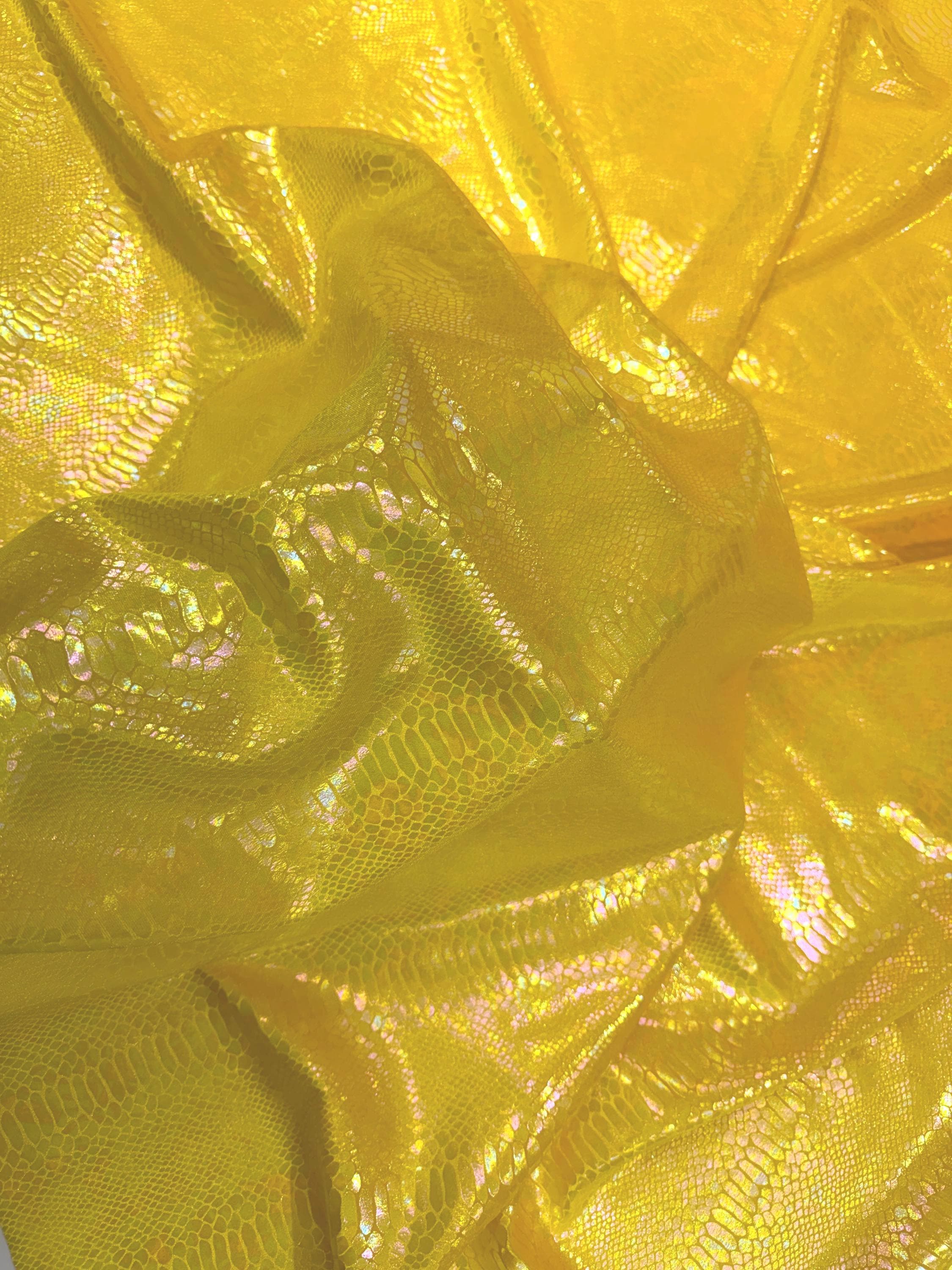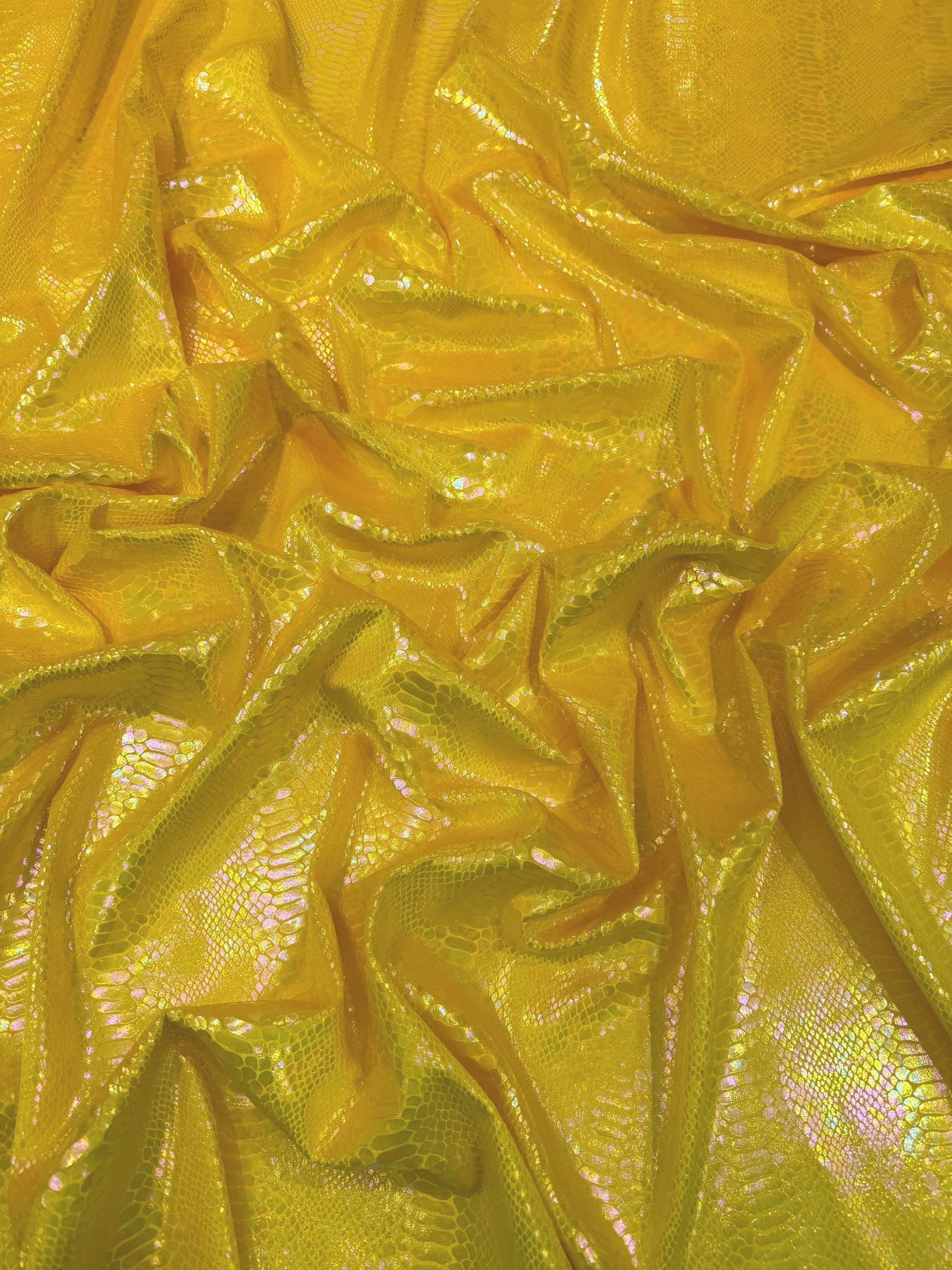 Yellow Iridescent Snake Illusion Foil Stretch Velvet Fabric | Snake Print - by the yard