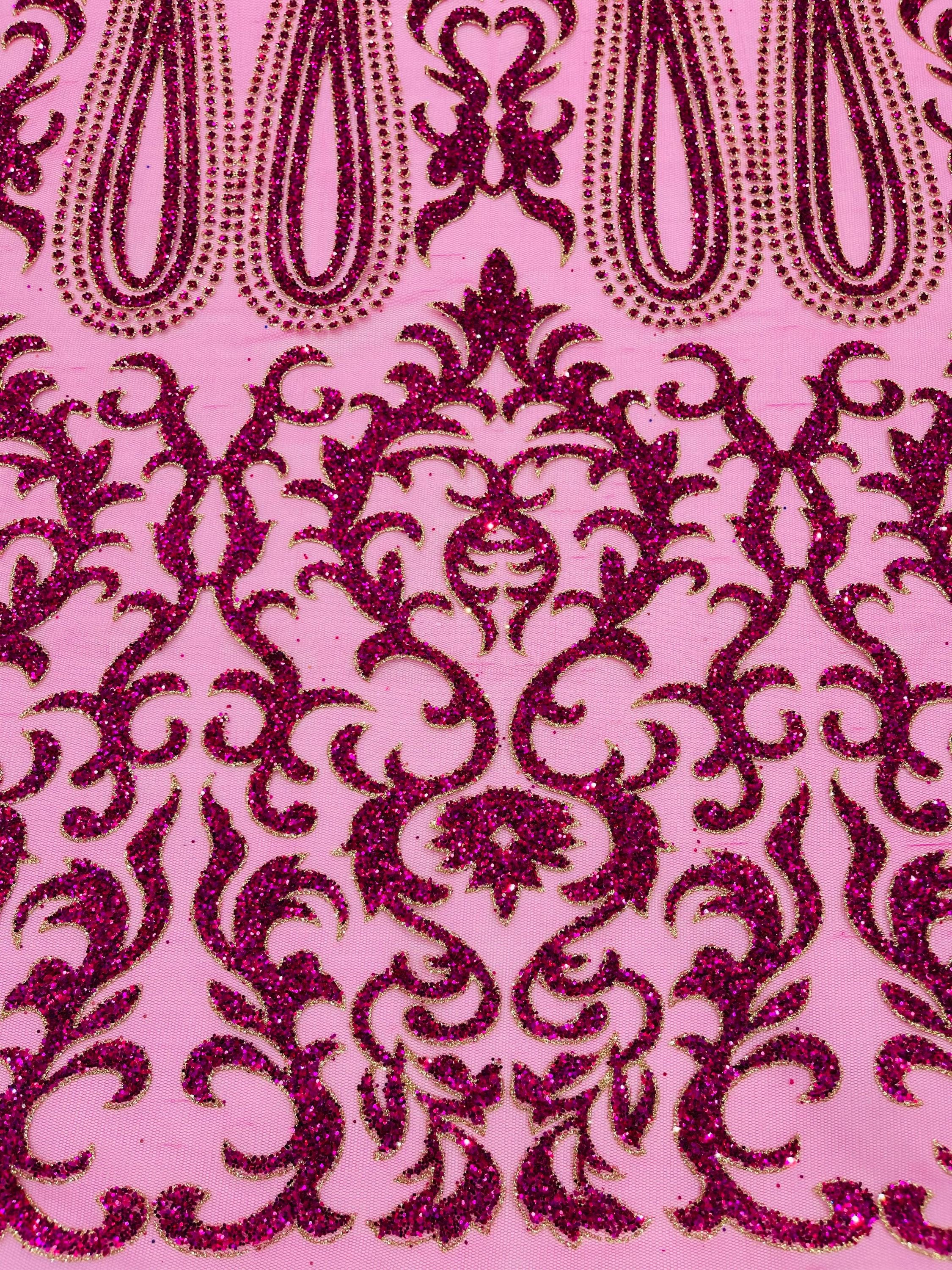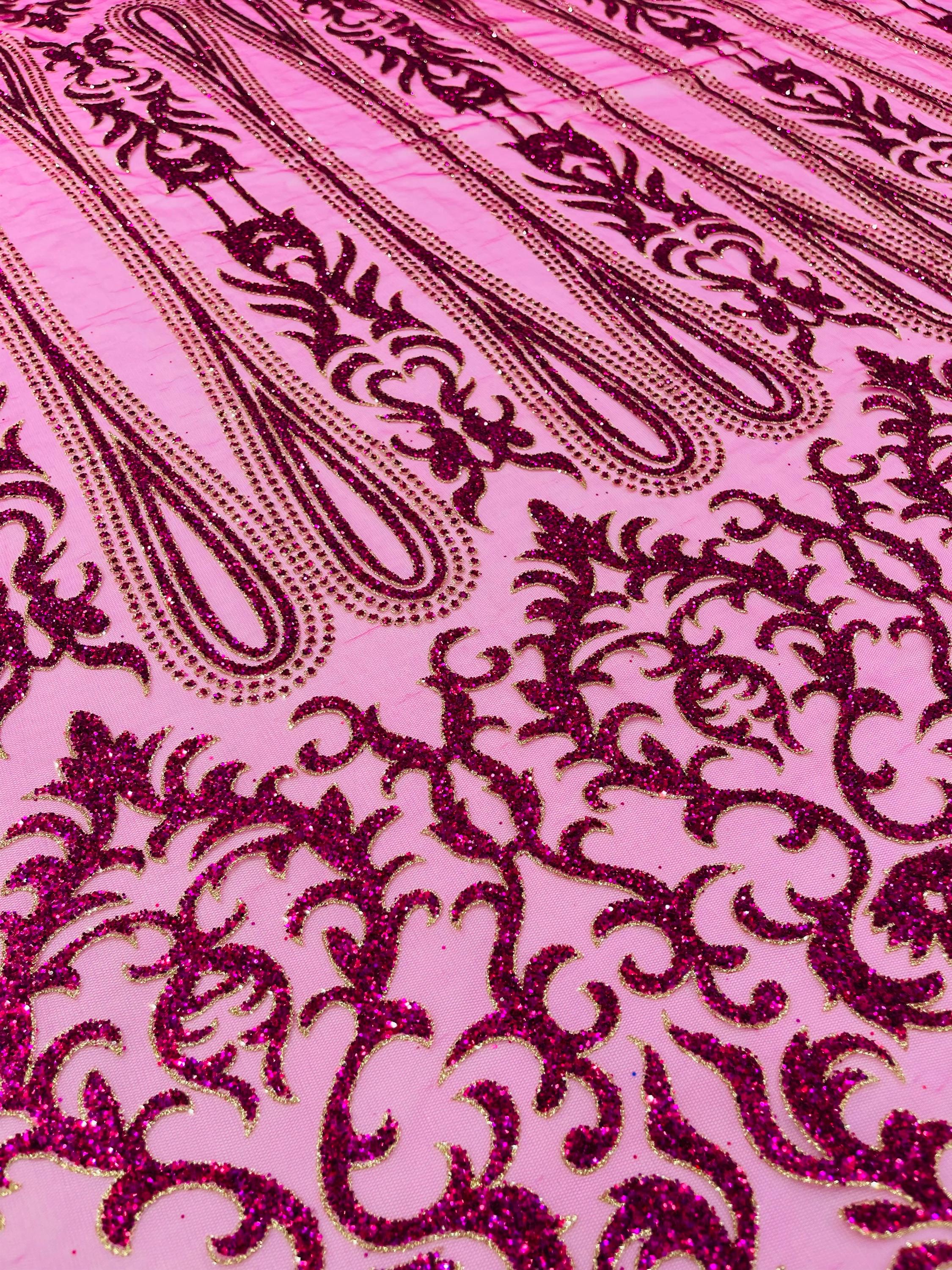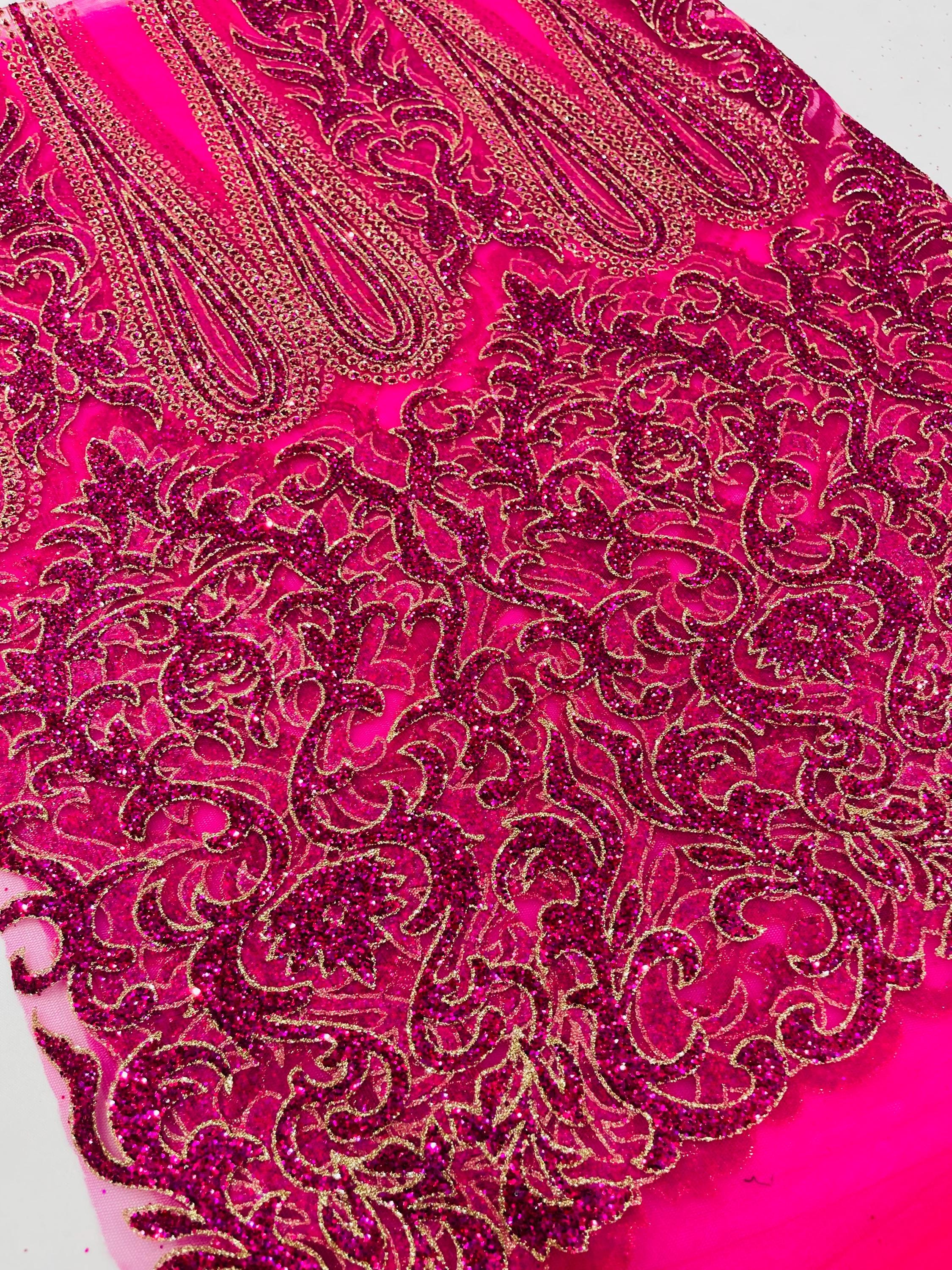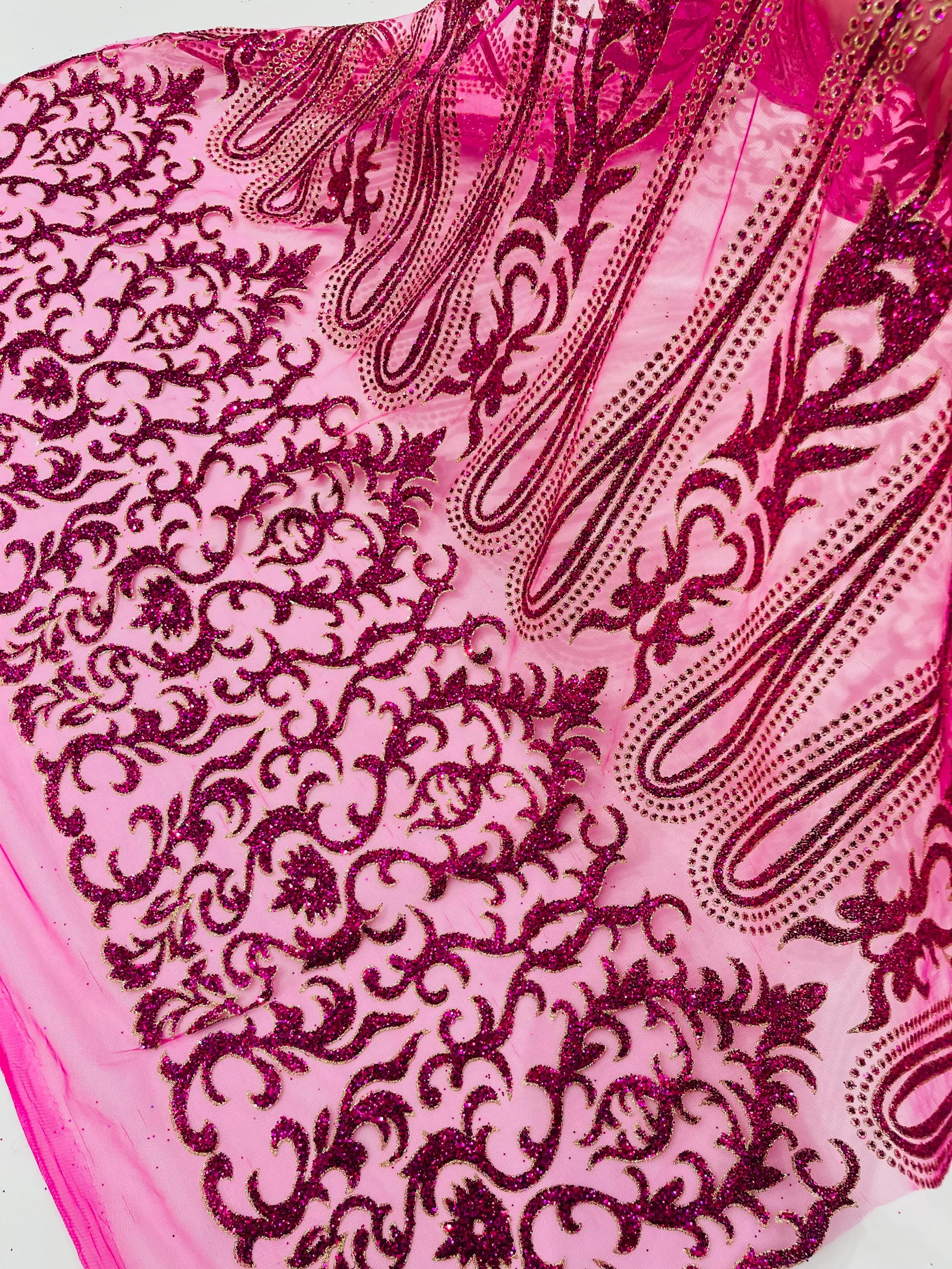 This elegant Glitter on mesh, Stand out magnificently as you gracefully appear wearing this stunning fabric. This lace has small Glitters glued on the mesh fabric and sheds too. Also this fabric is sheer with lots of glitters. If there is any shedding, it remains very sparkly. The whole Fabric Intricate throughout with color Glitter giving it a gorgeous and regal feel.