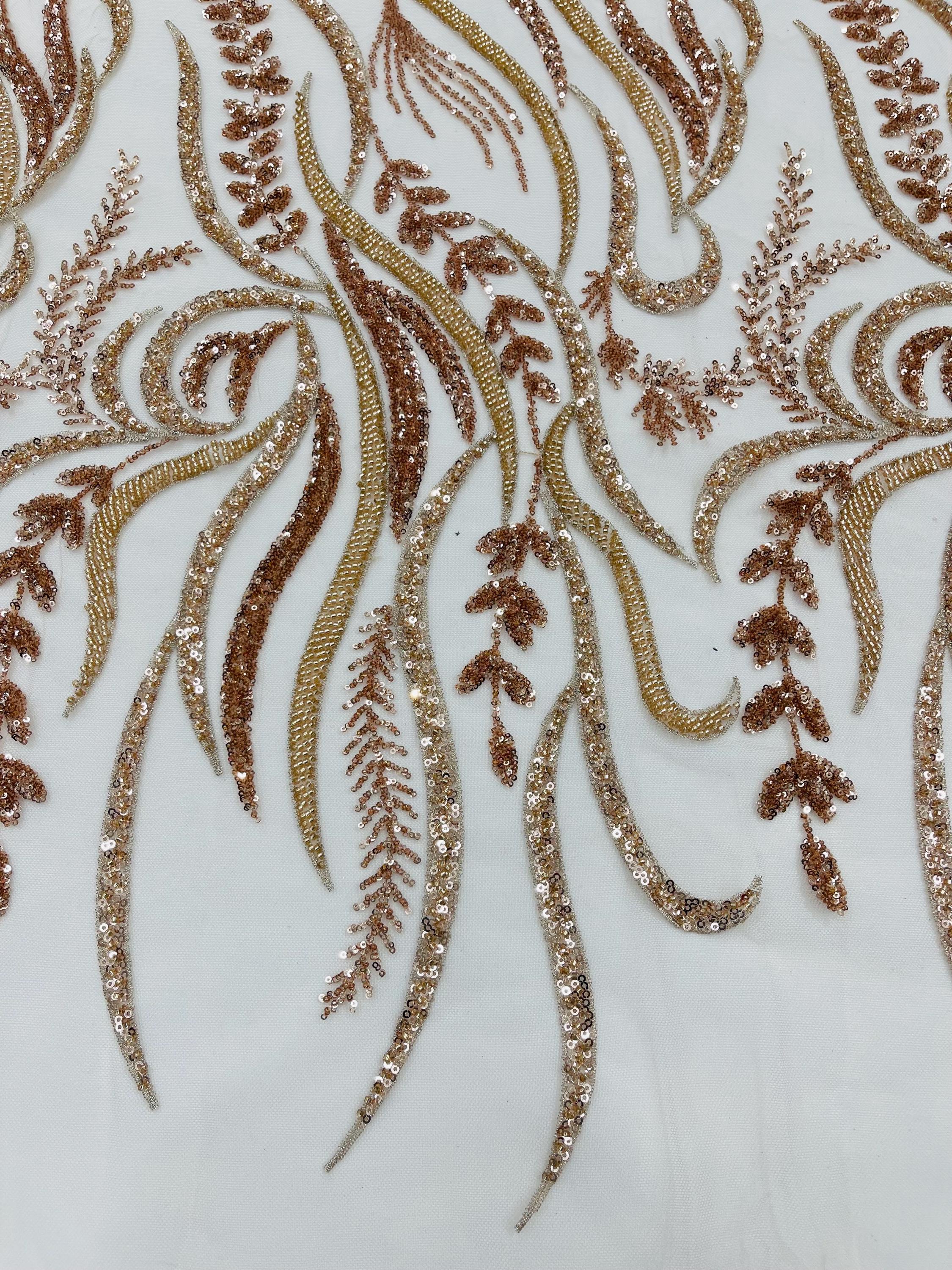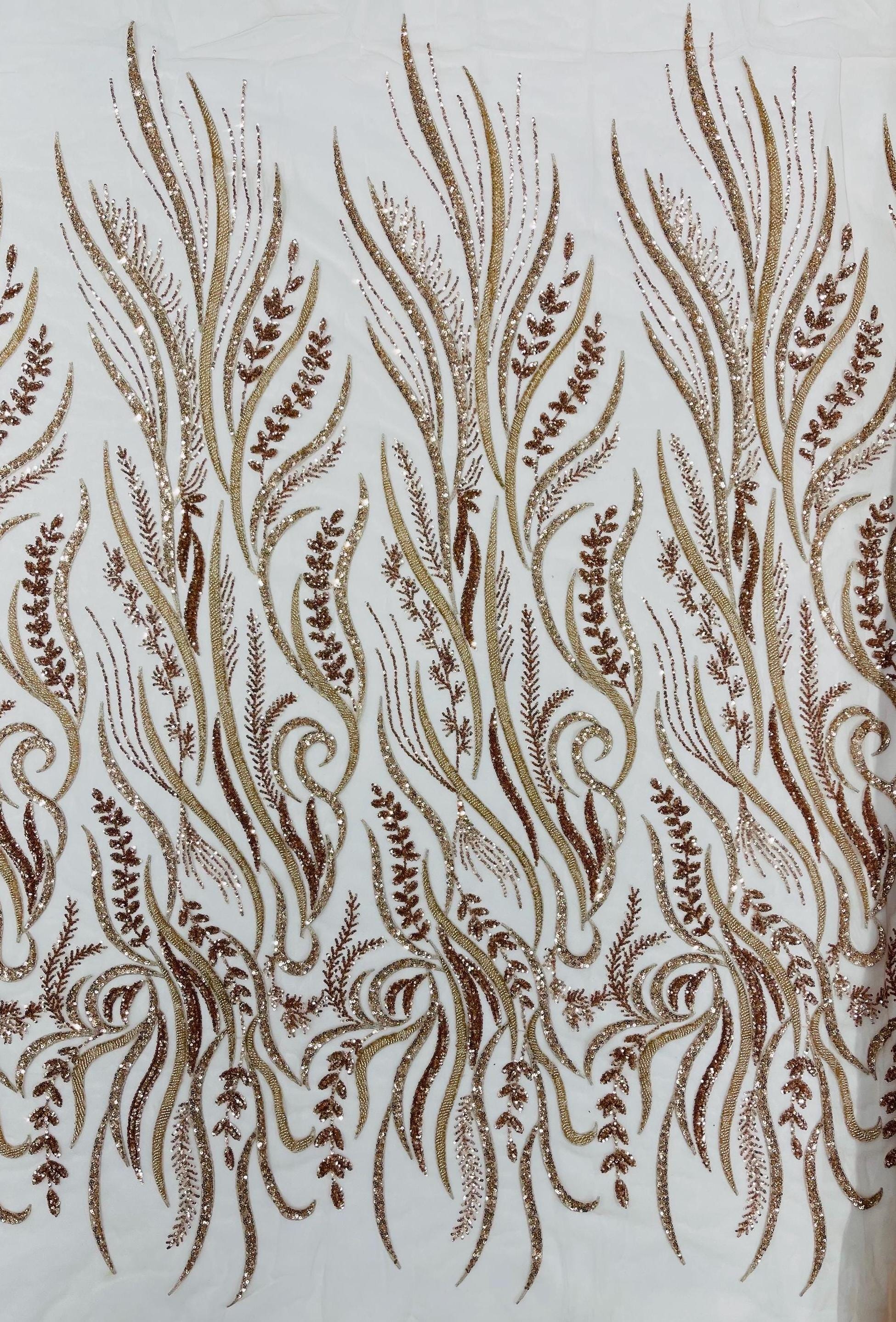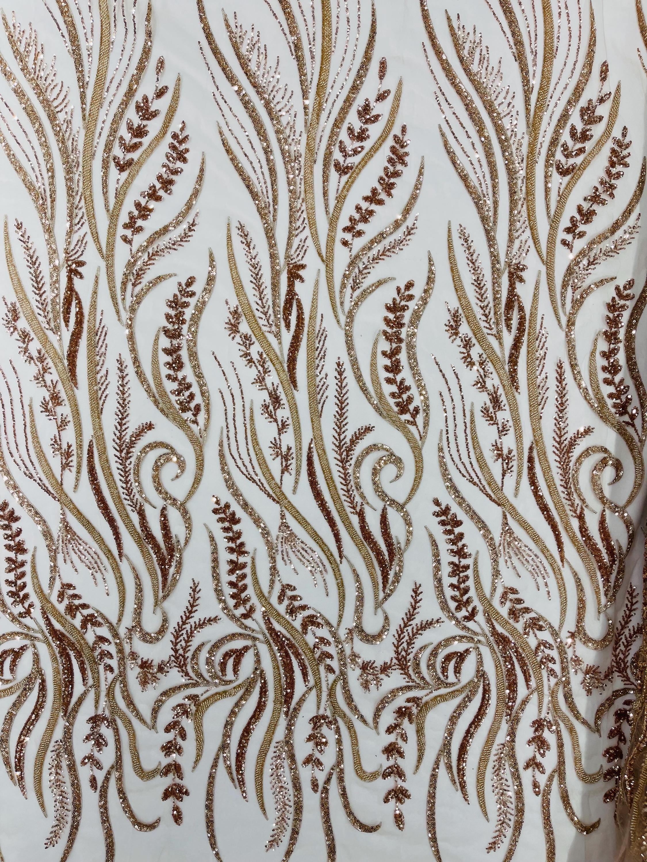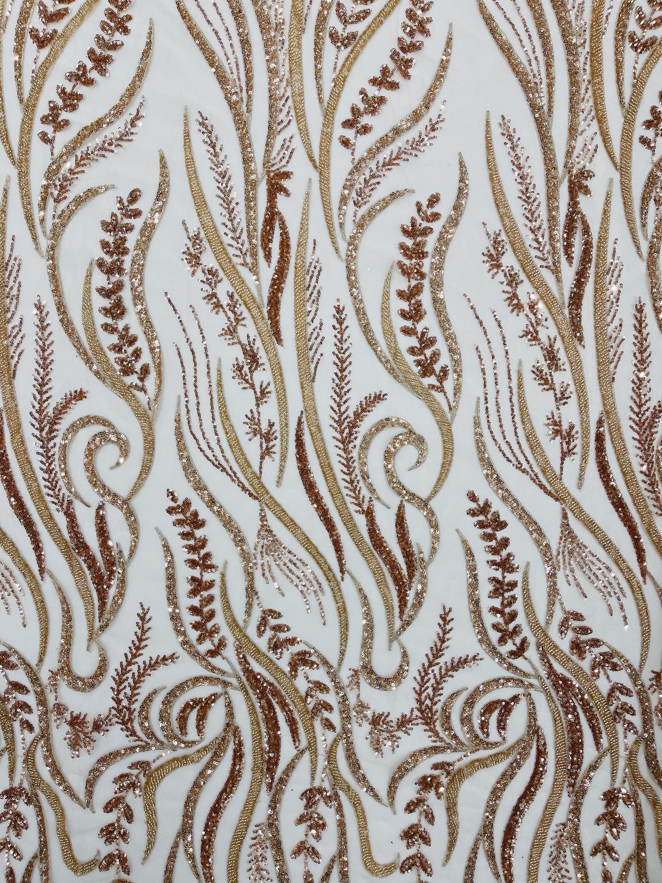 Rose Gold Beaded Lace Fabric: Embroidered Floral Mesh, Bridal Gown Material