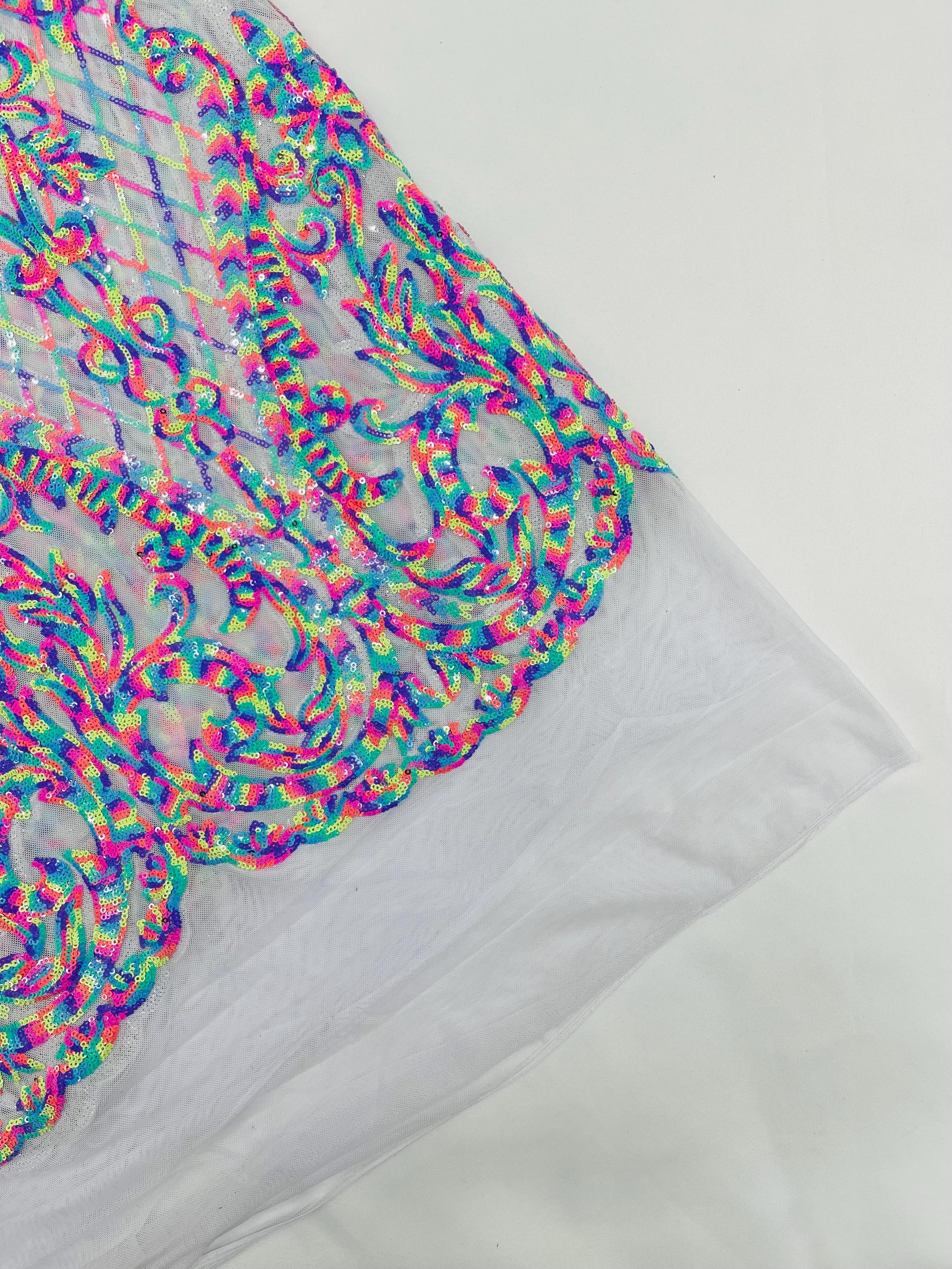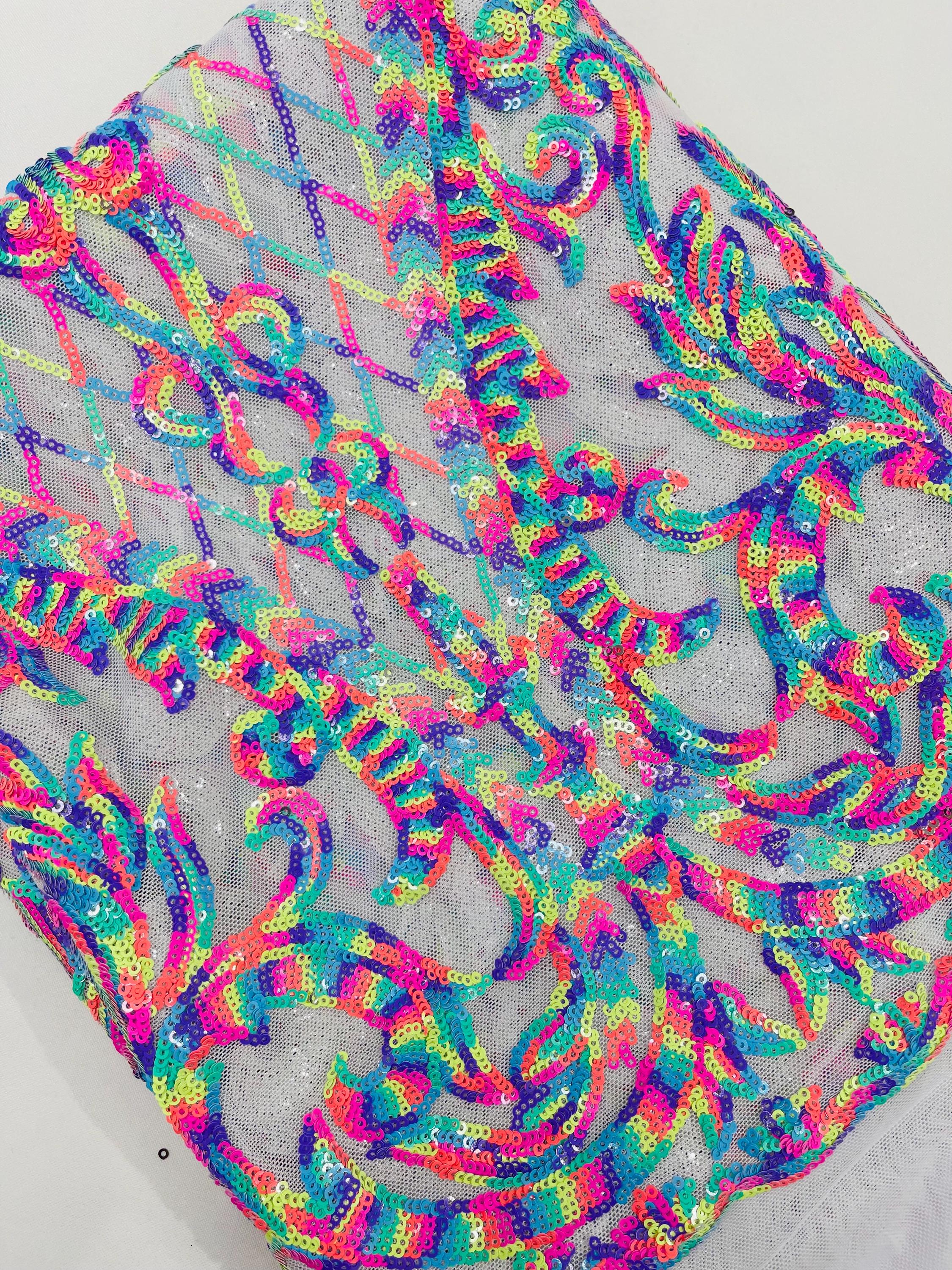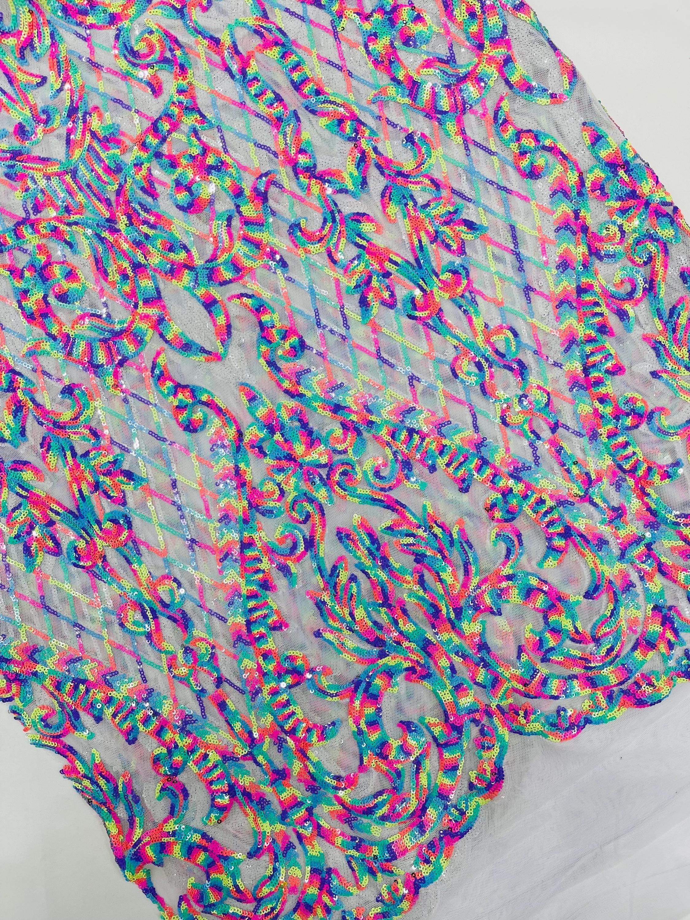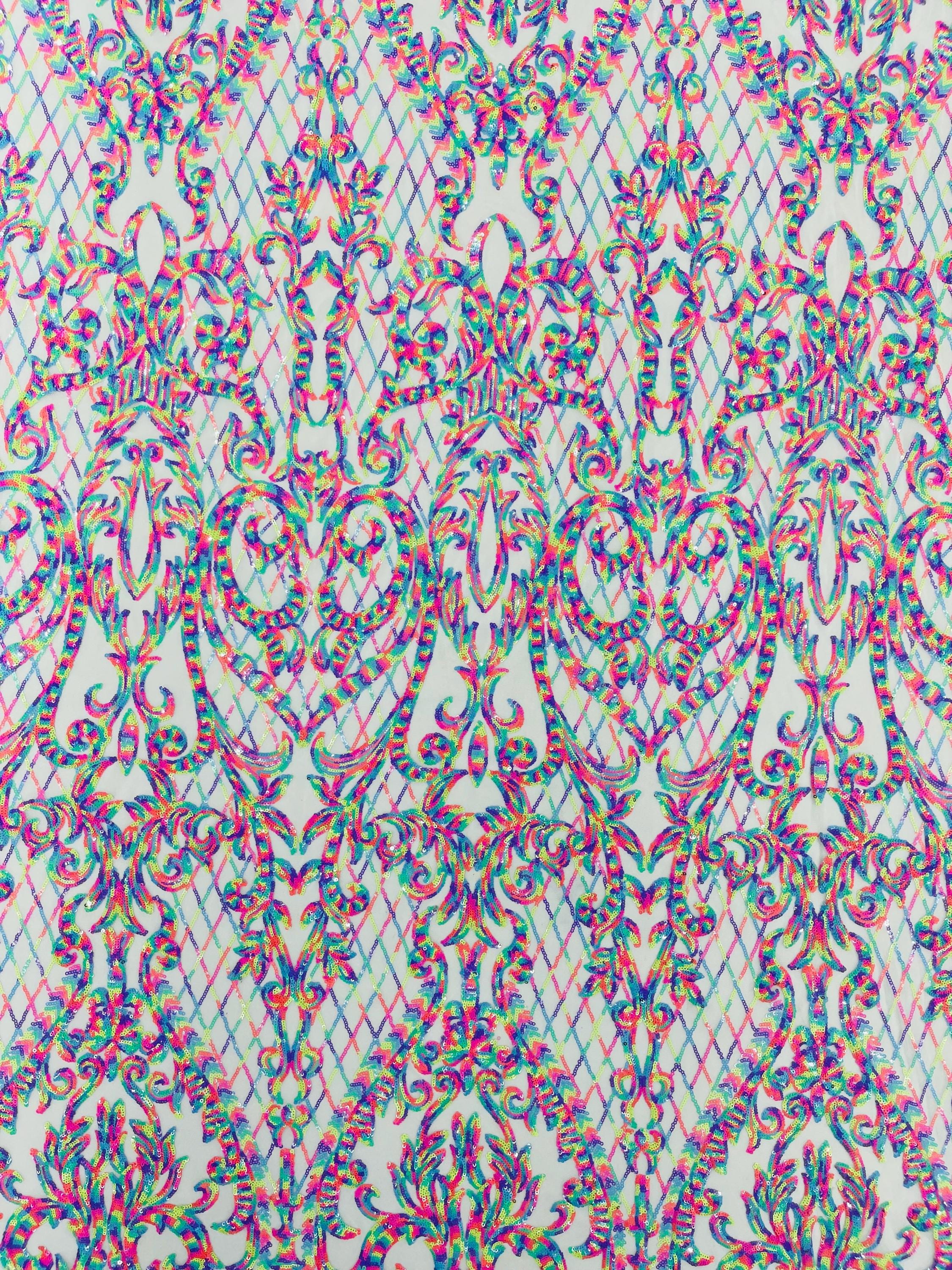 The material has a luxurious sequin design embroidered on the mesh.