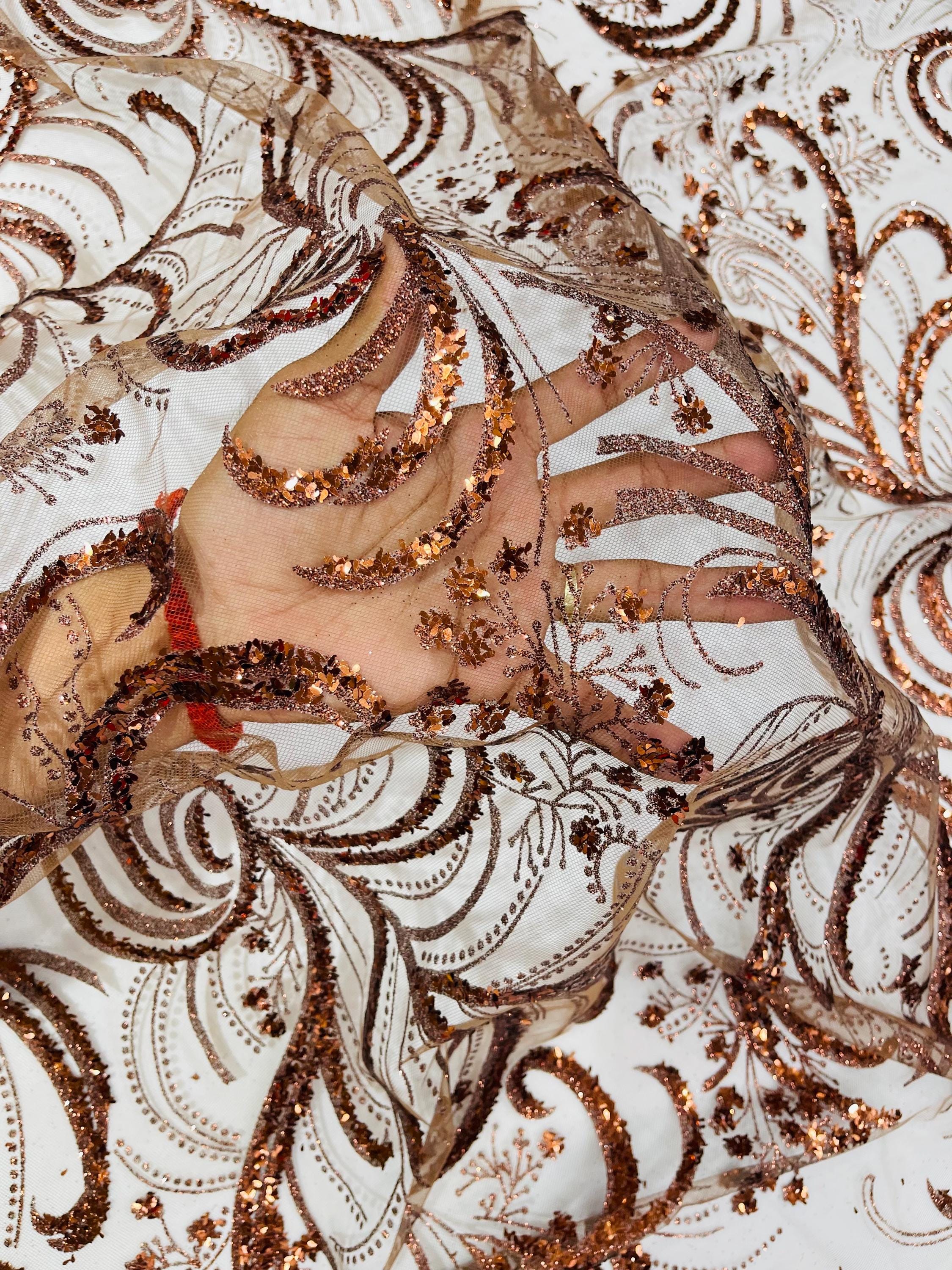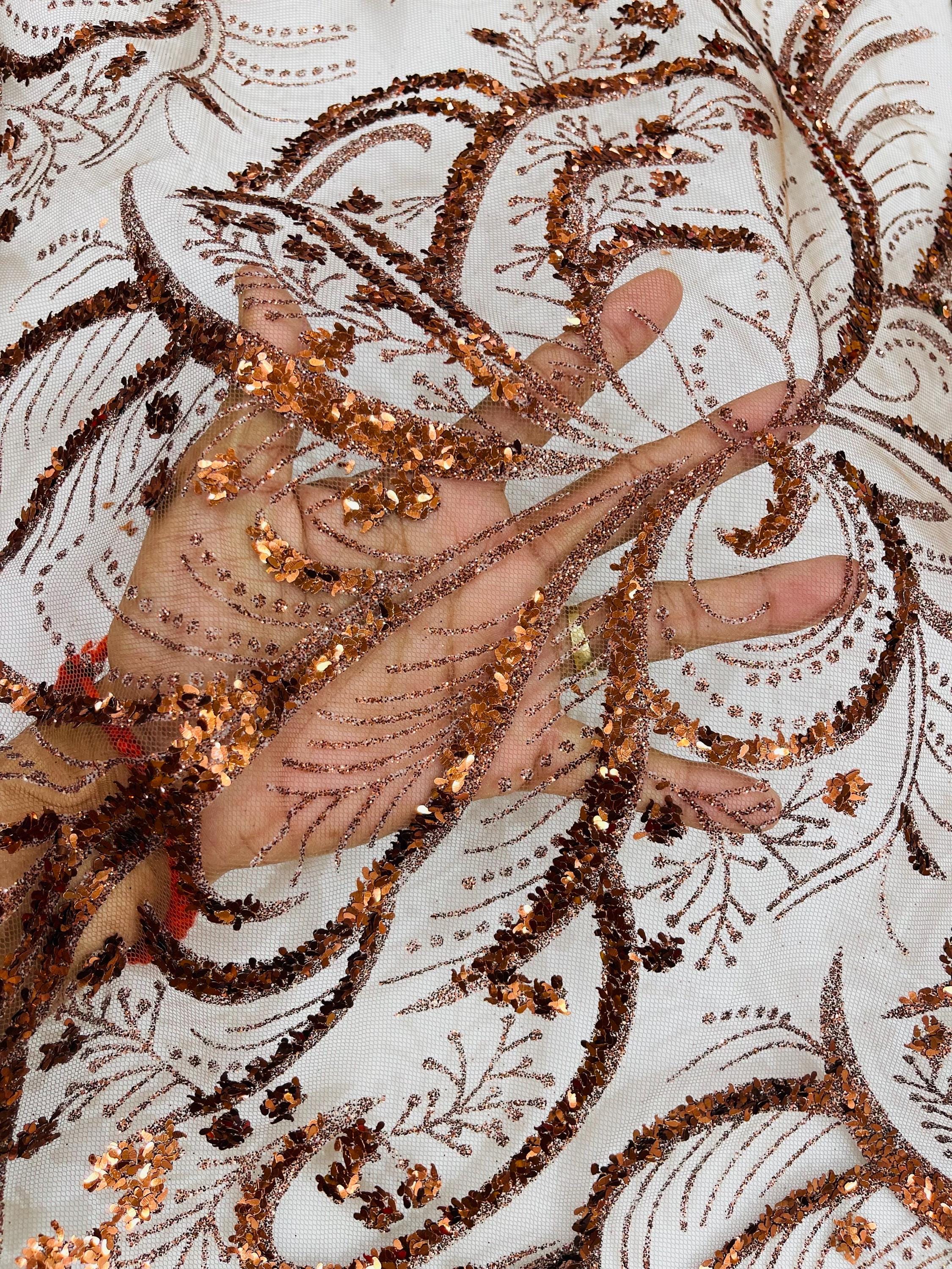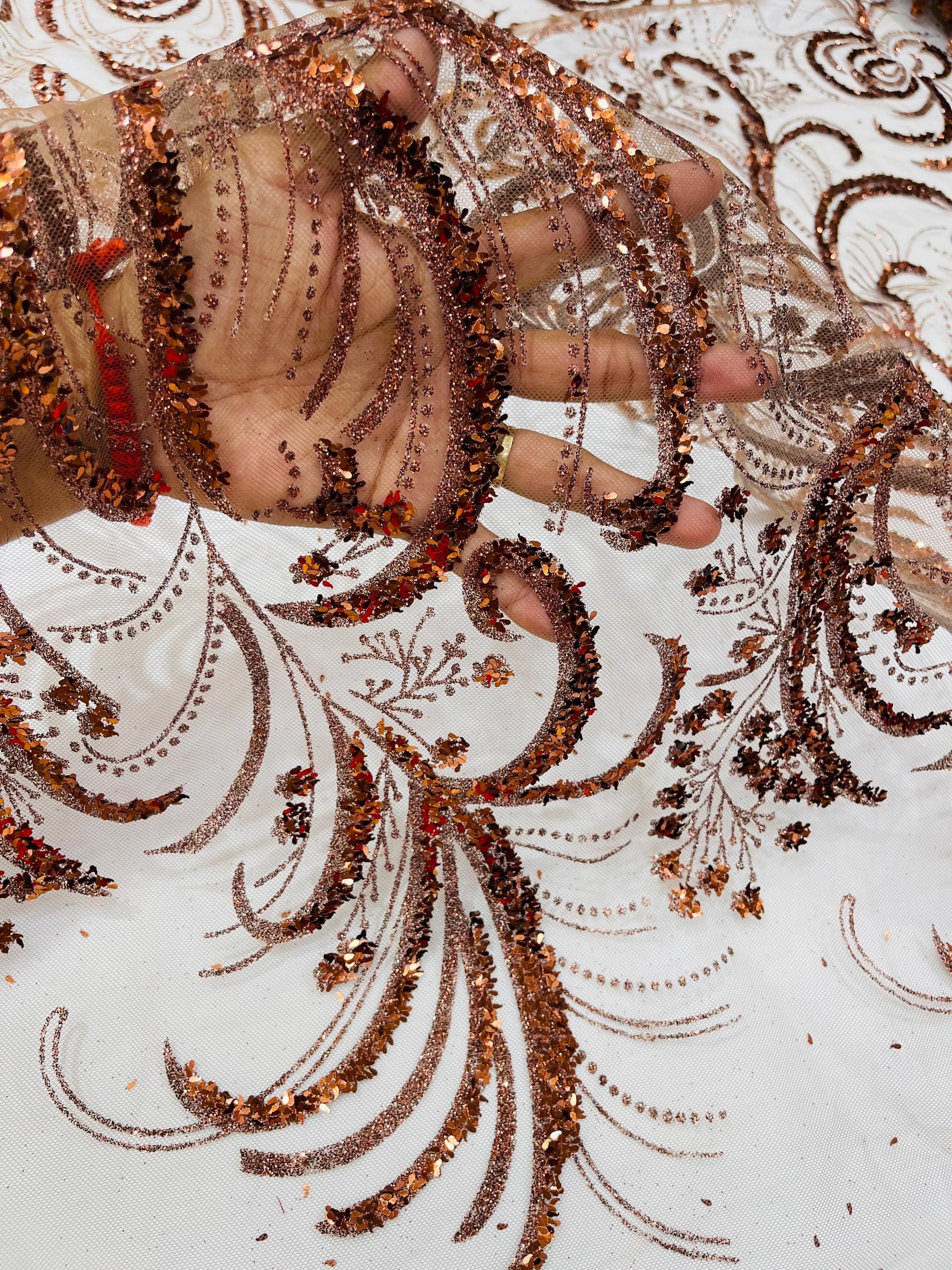 This elegant Glitter on mesh, Stand out magnificently as you gracefully appear wearing this stunning fabric. This lace has small Glitters glued on the mesh fabric and sheds too. Also this fabric is sheer with lots of glitters. If there is any shedding, it remains very sparkly. The whole Fabric Intricate throughout with color Glitter giving it a gorgeous and regal feel.