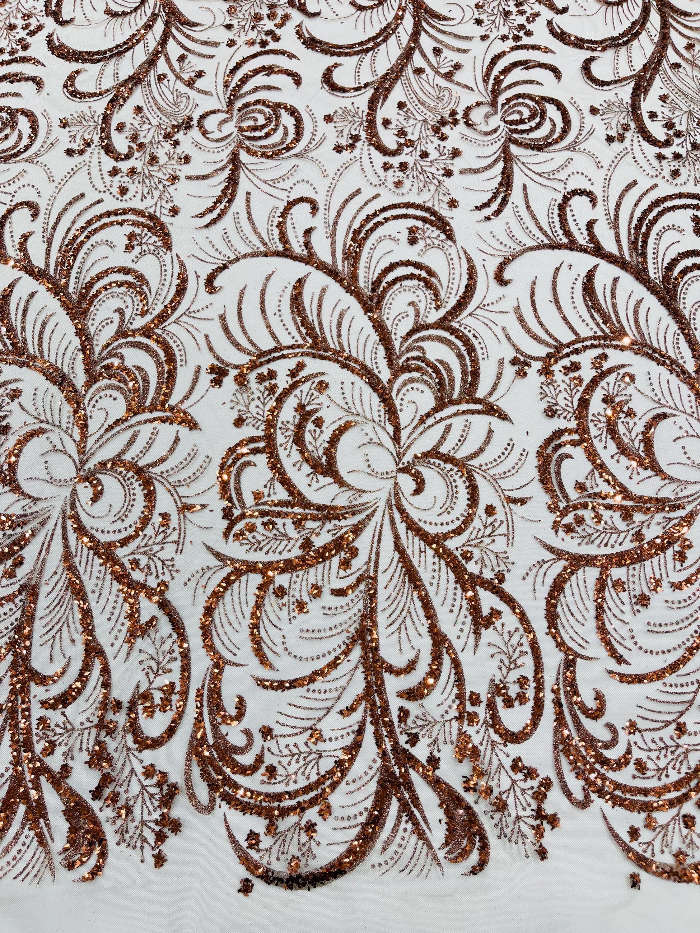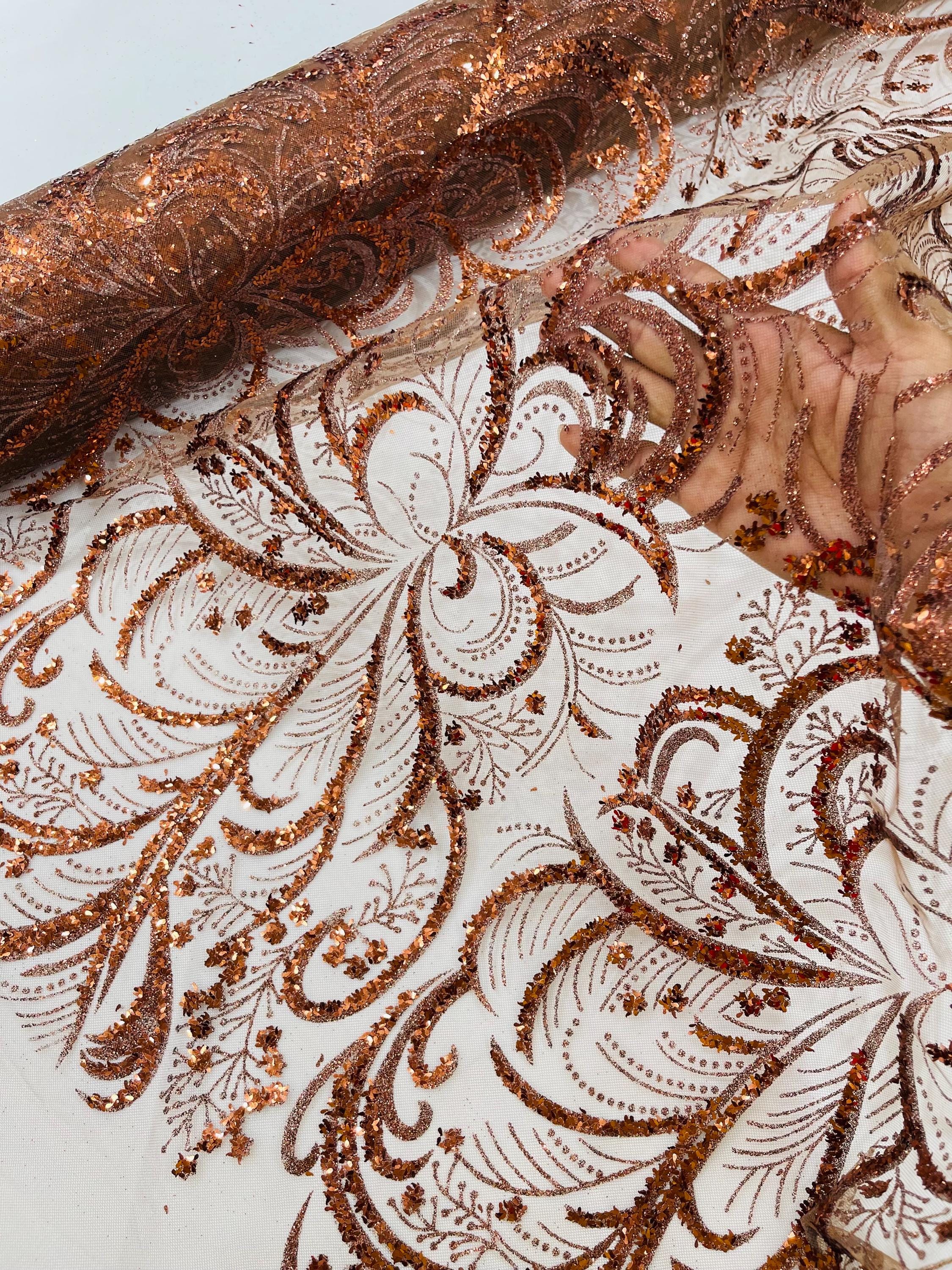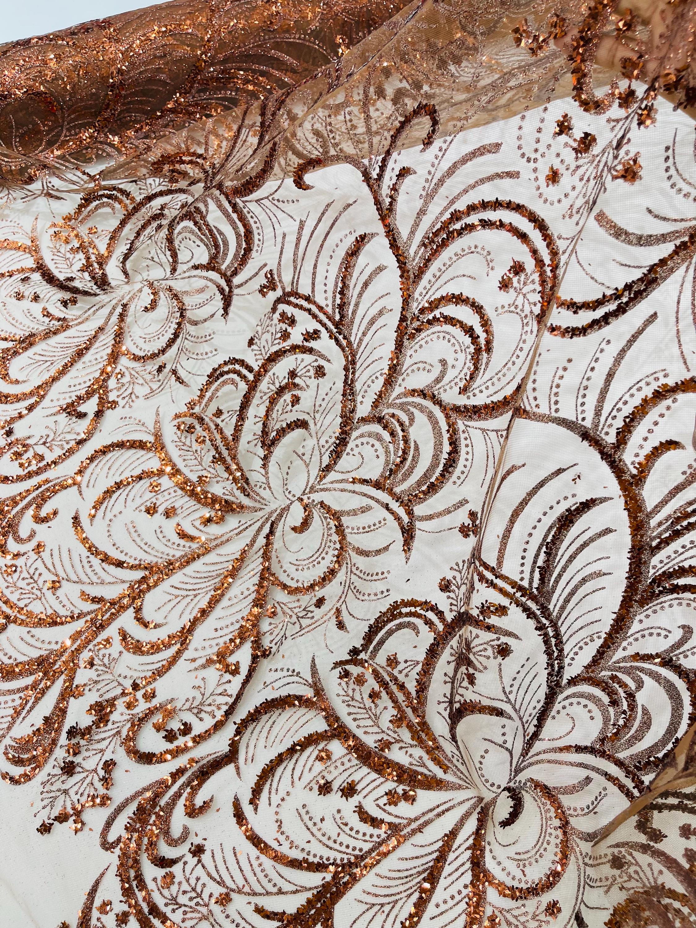 This elegant Glitter on mesh, Stand out magnificently as you gracefully appear wearing this stunning fabric. This lace has small Glitters glued on the mesh fabric and sheds too. Also this fabric is sheer with lots of glitters. If there is any shedding, it remains very sparkly. The whole Fabric Intricate throughout with color Glitter giving it a gorgeous and regal feel.