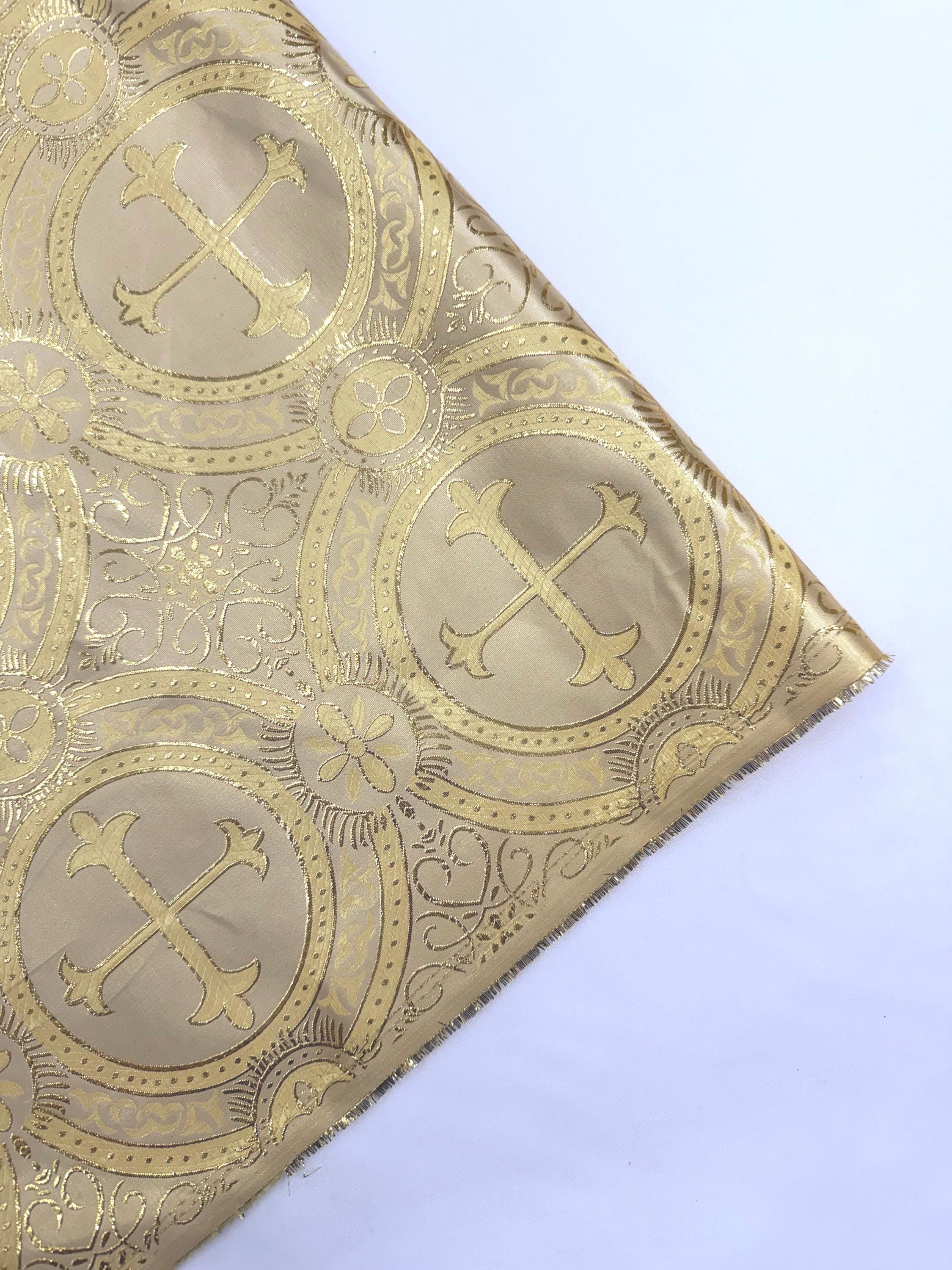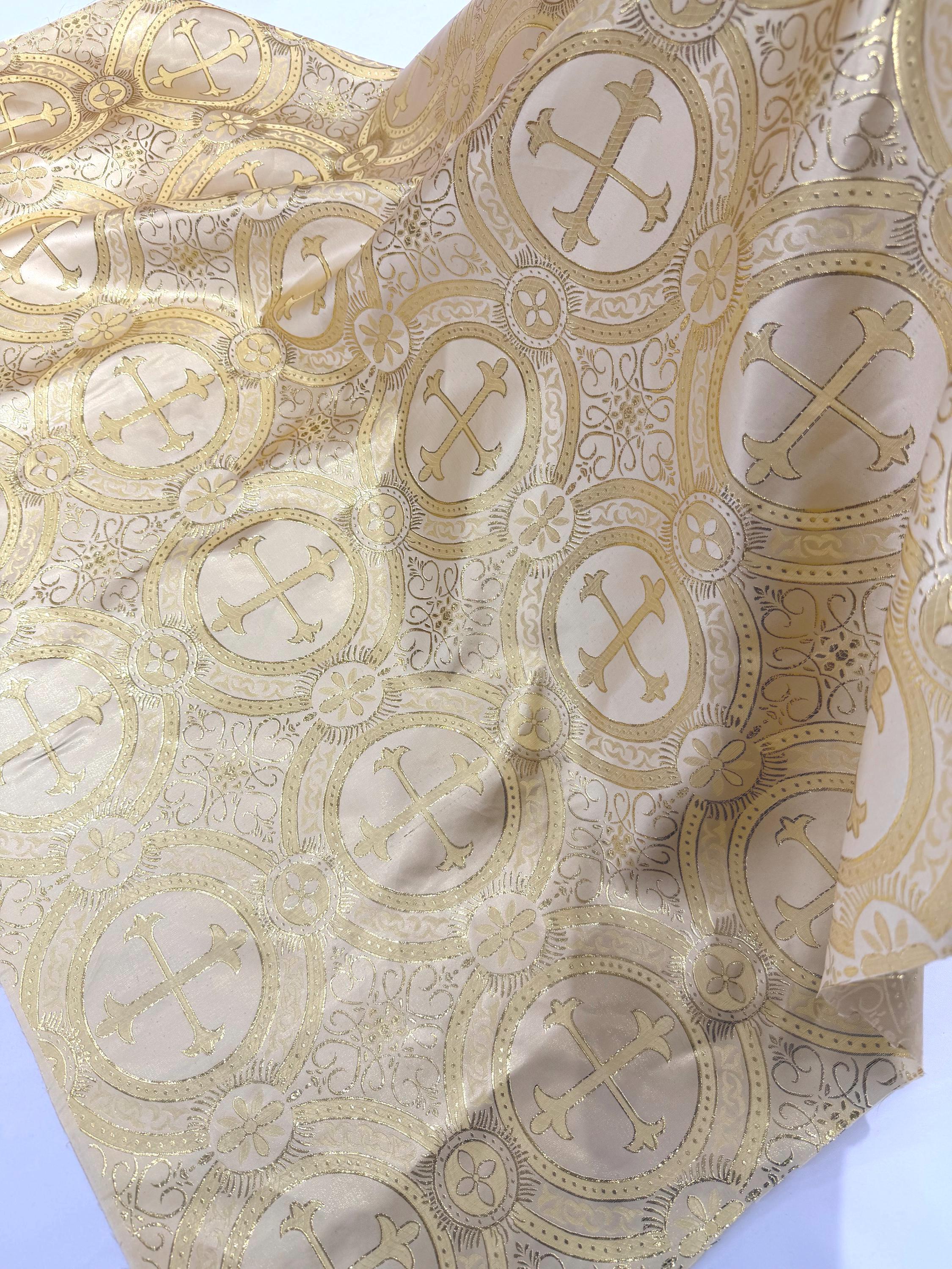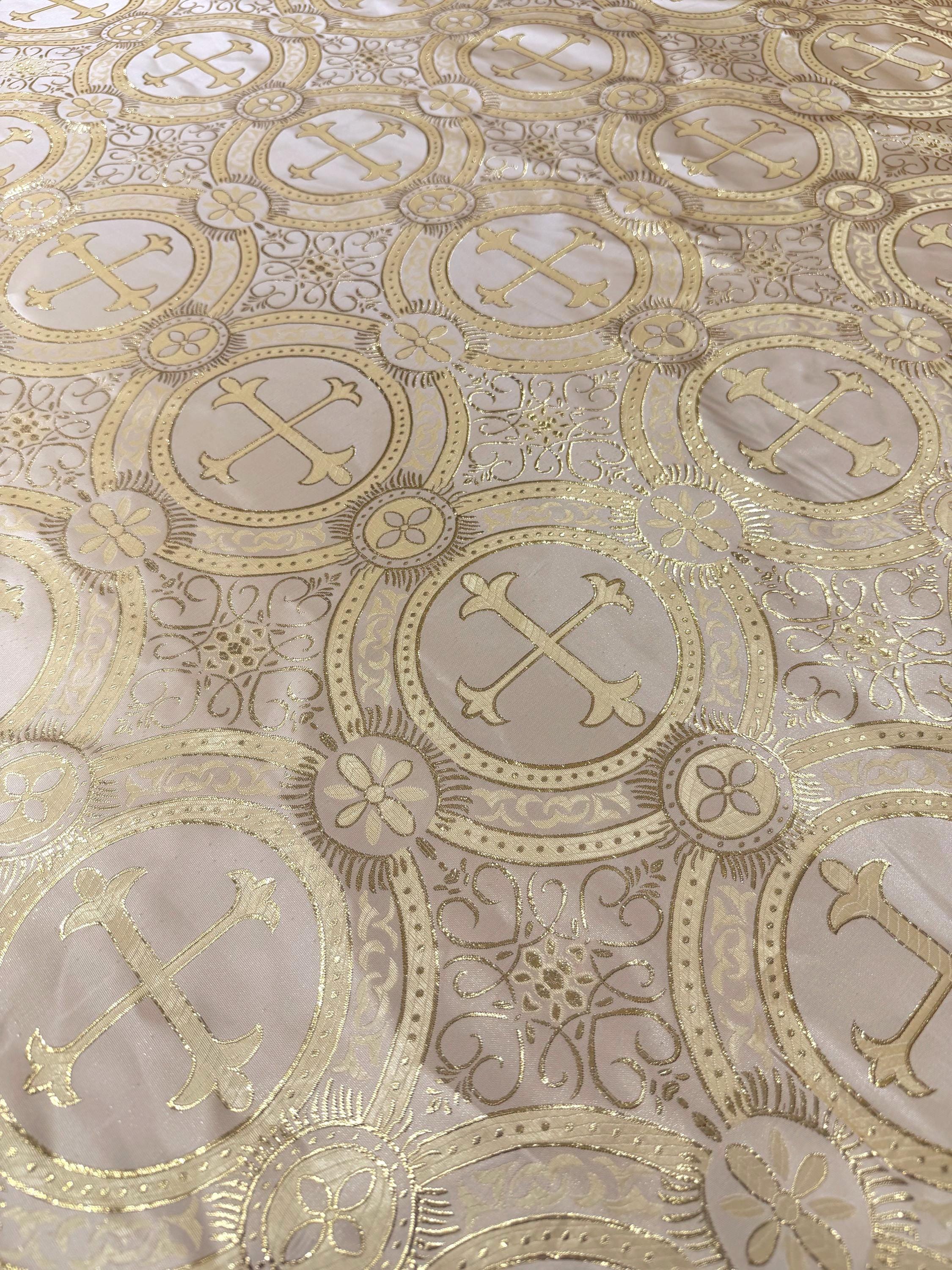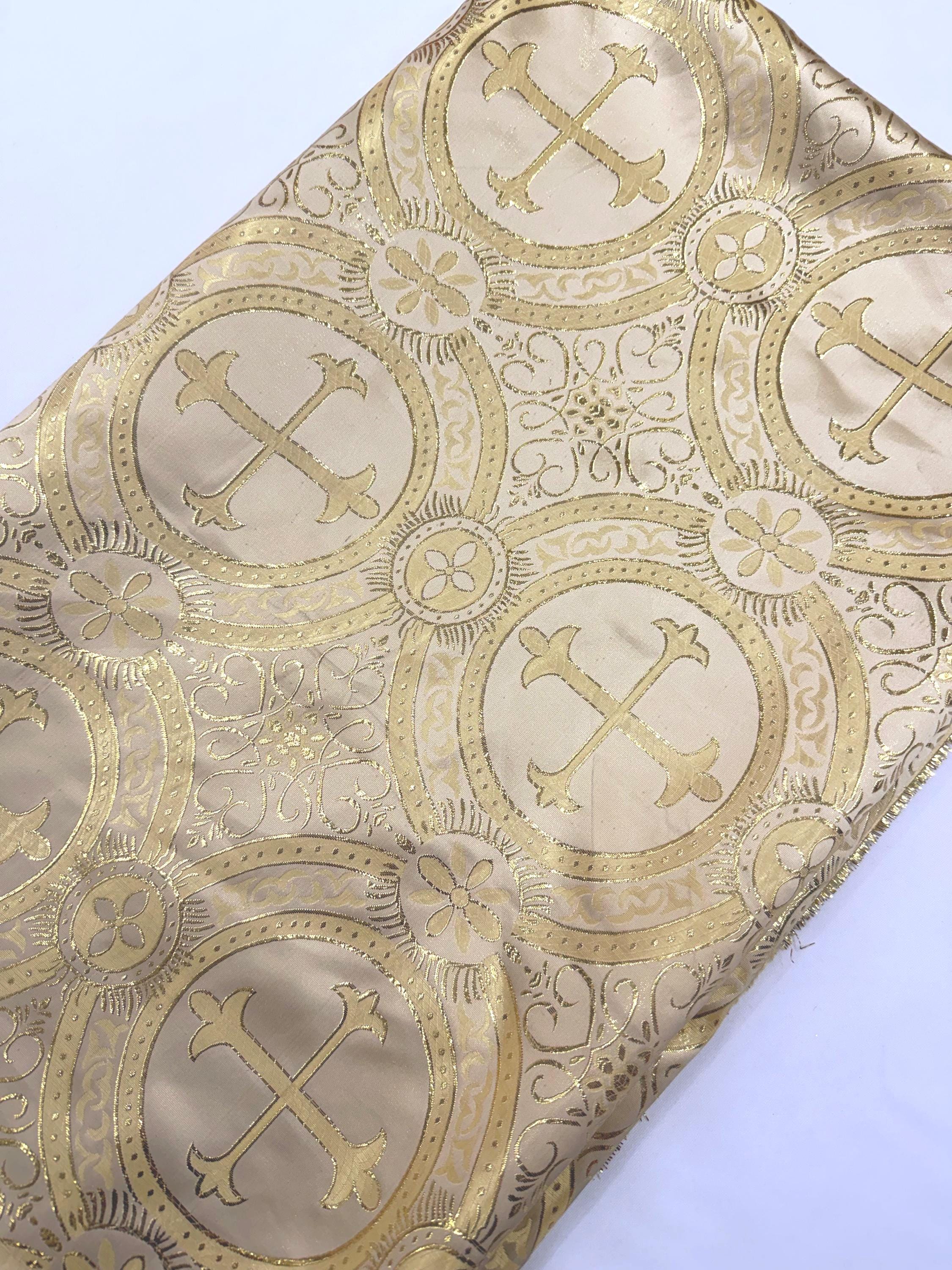 Gold/Gold Cross Brocade Fabric: Religious Vestment Material - 58/60" Wide