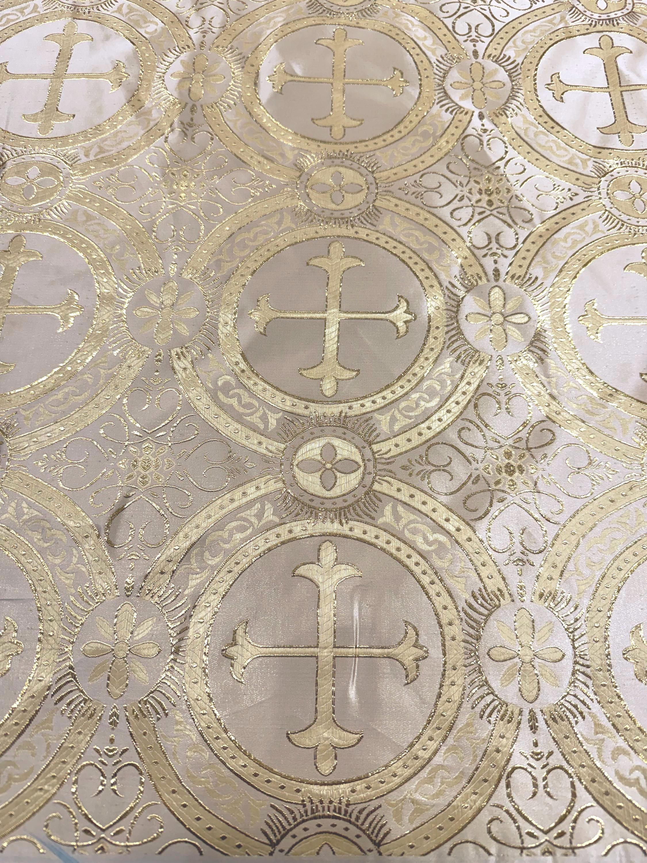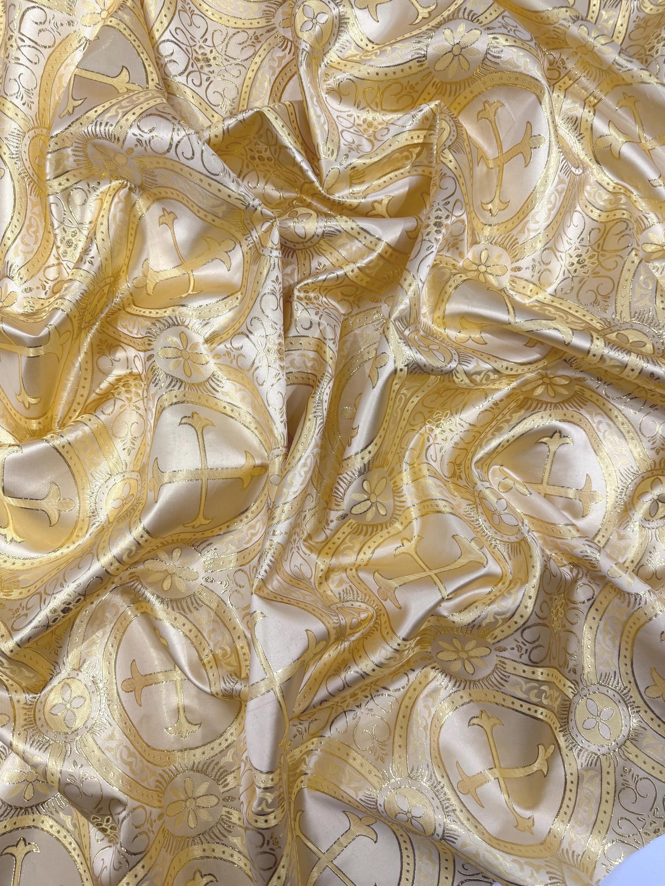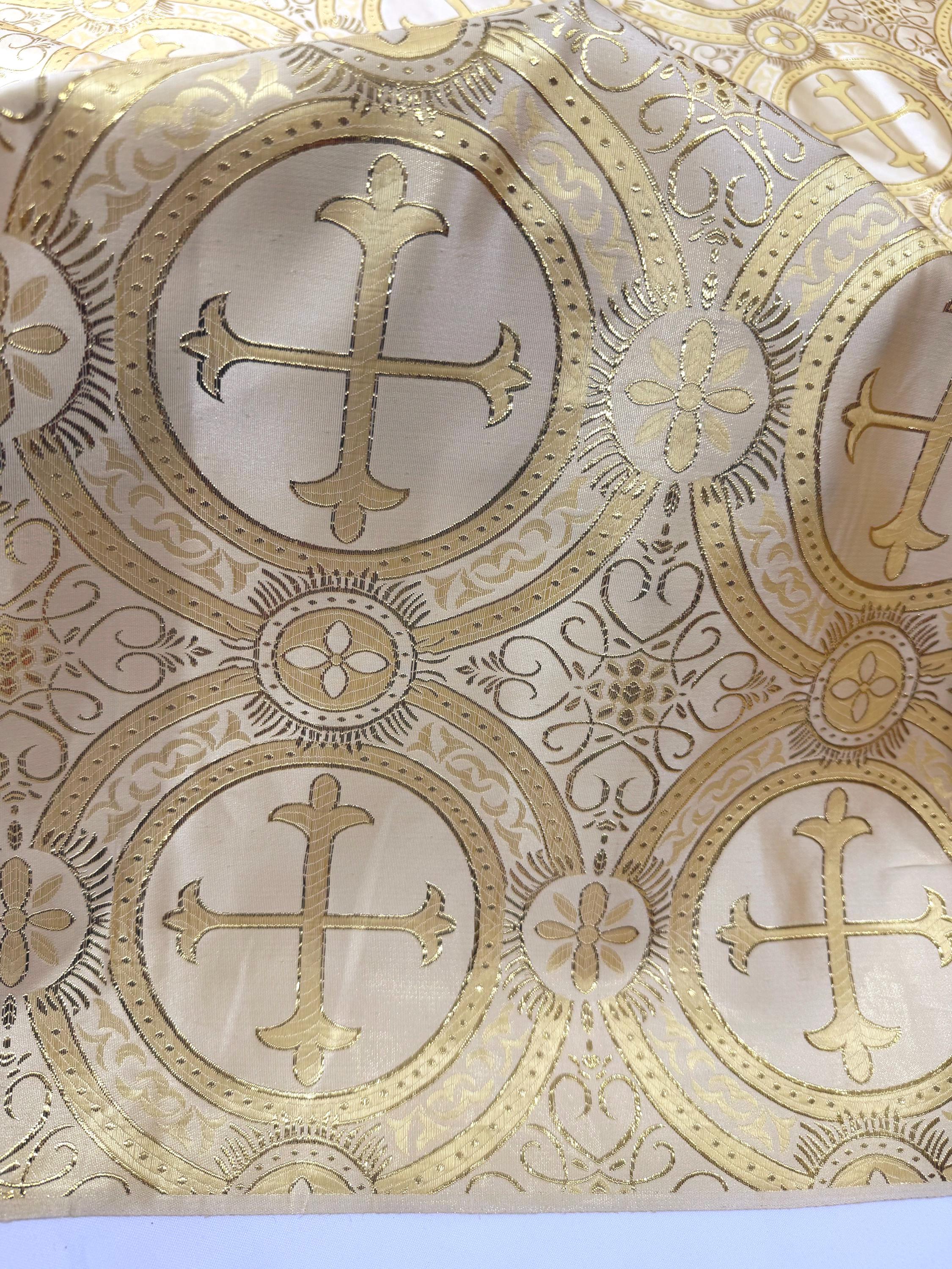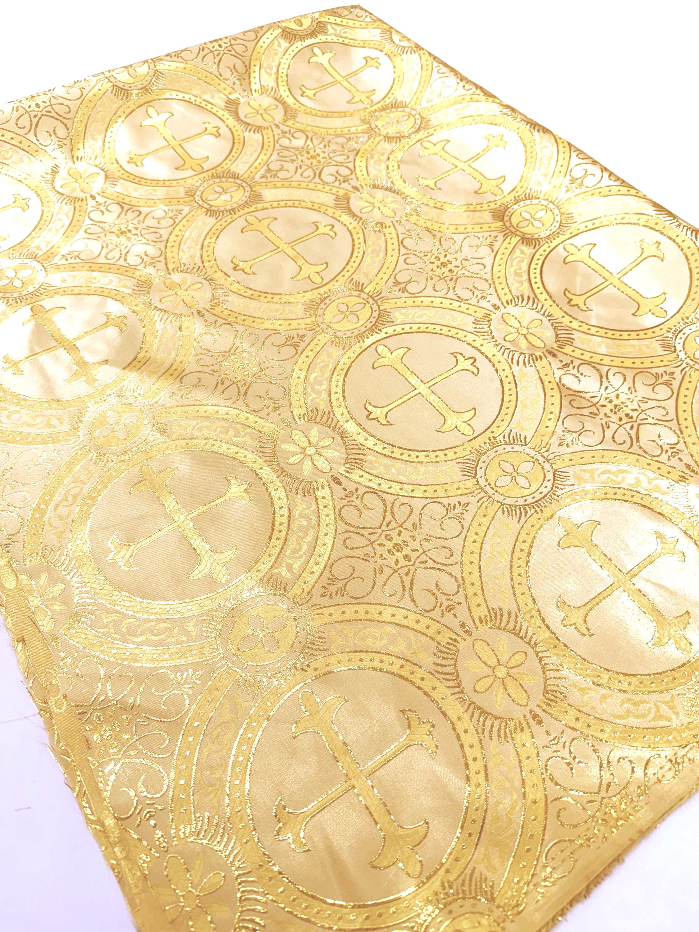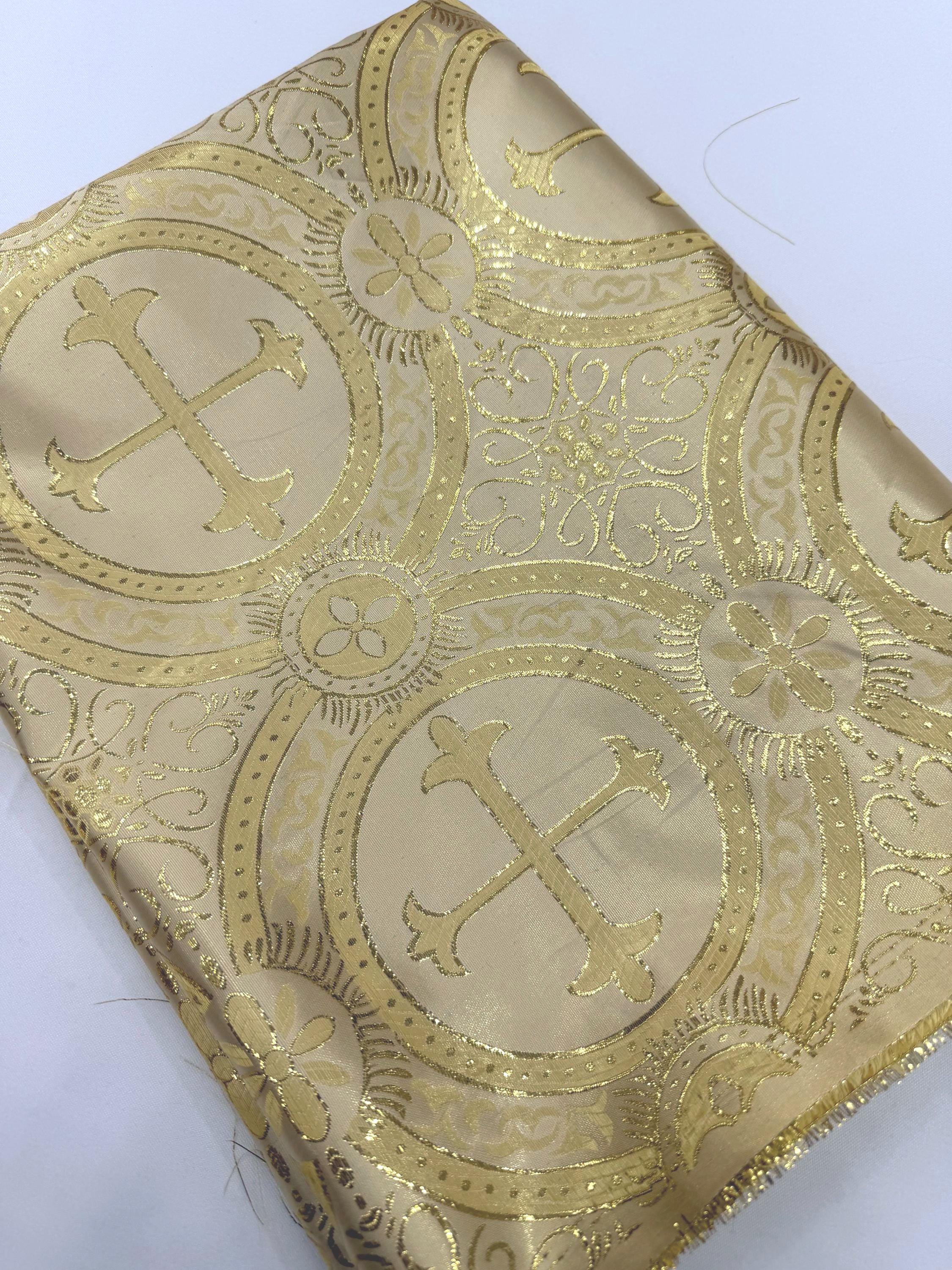 Gold/Gold Cross Brocade Fabric: Religious Vestment Material - 58/60" Wide
